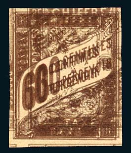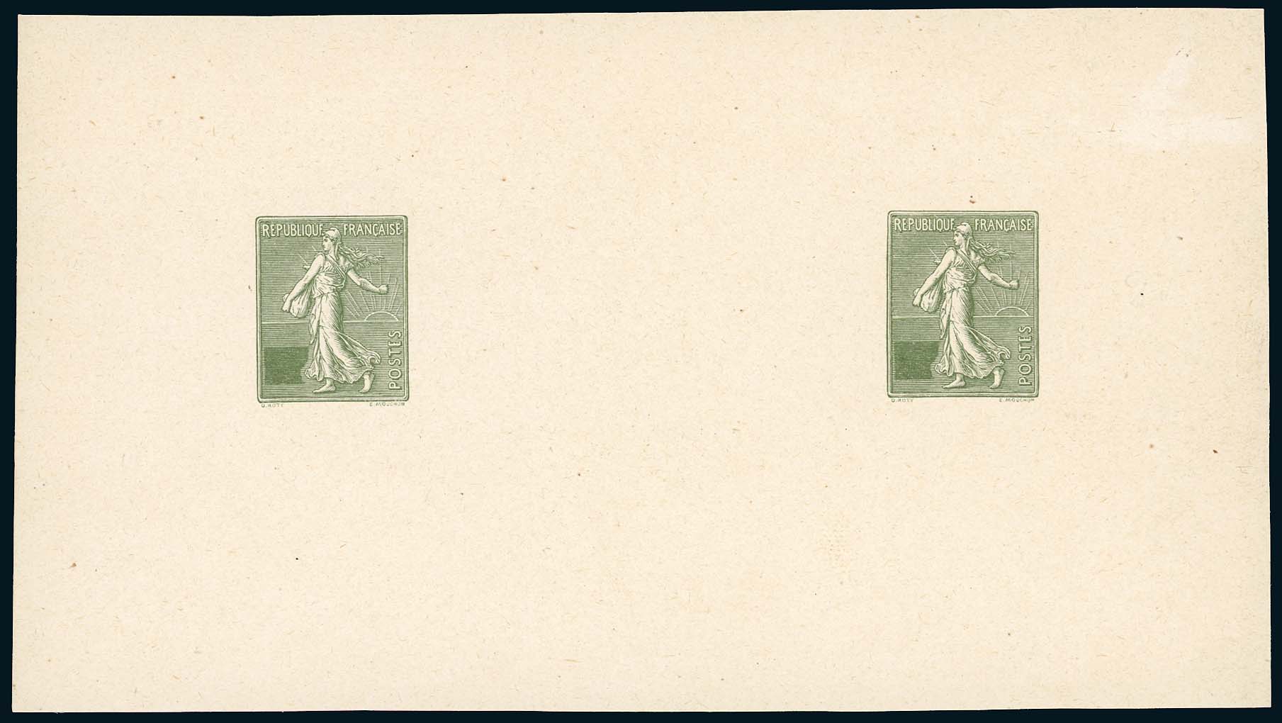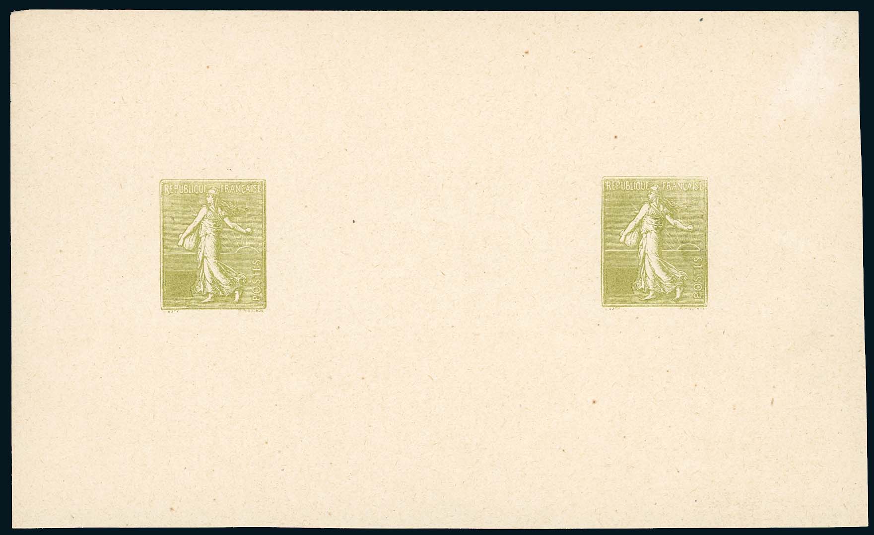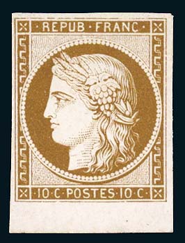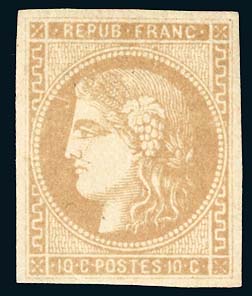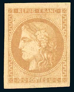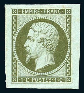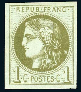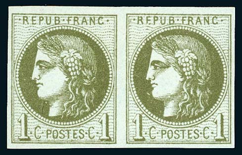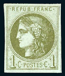 1 | N°1, 10 centimes, Lot de 2 essais de couleurs (bleu et bistre) TB | 40 | 80 | 40 | enchérir | |