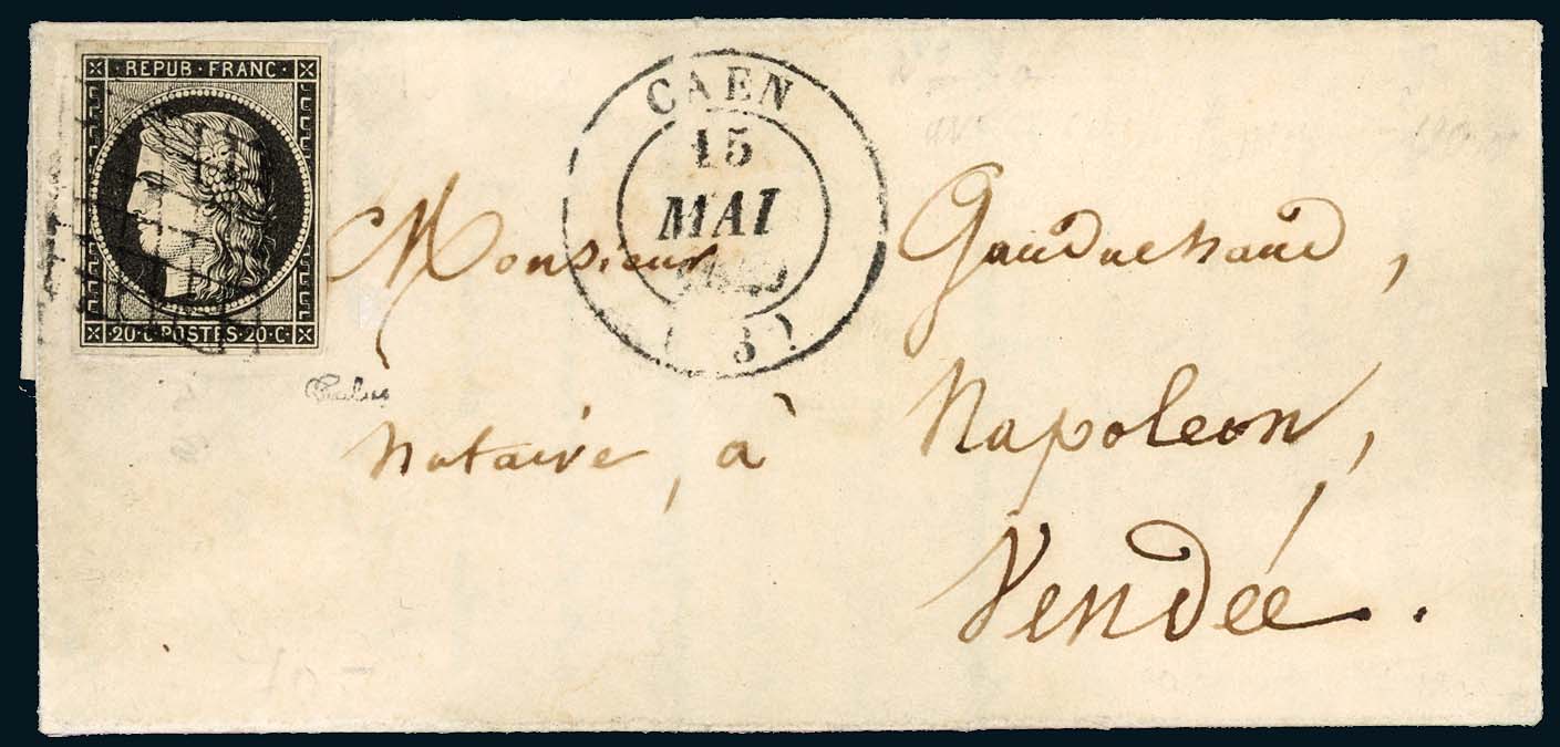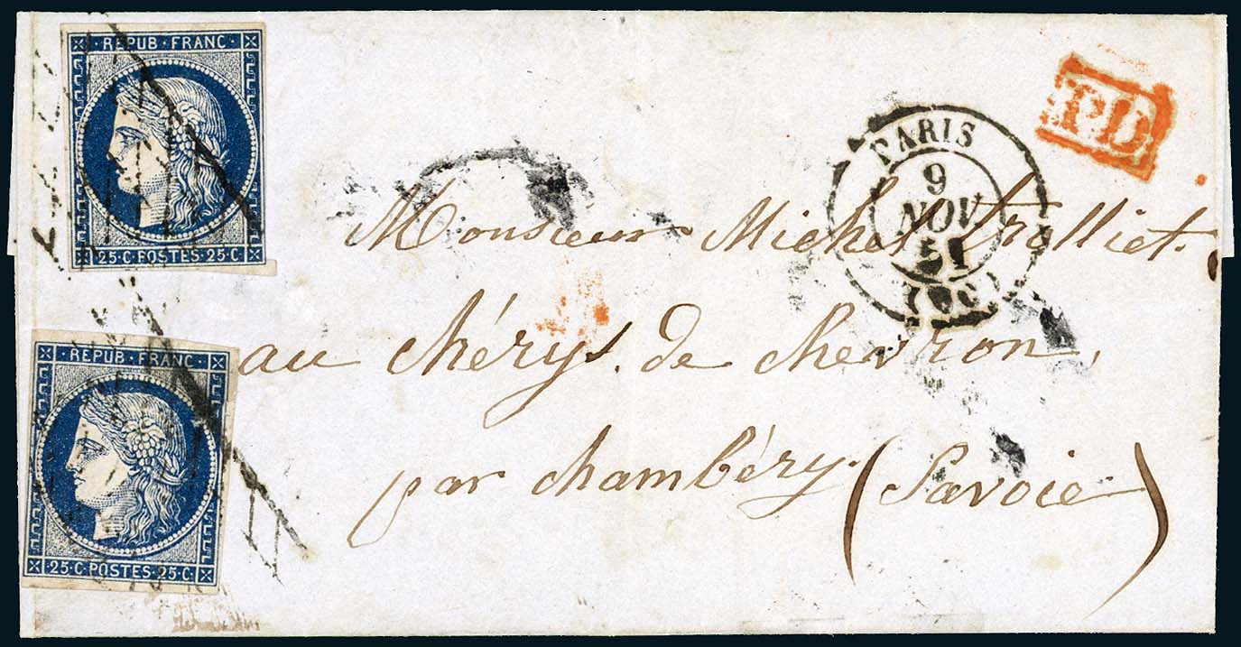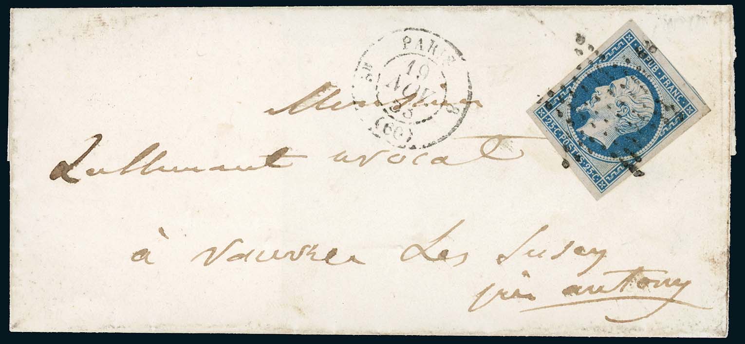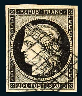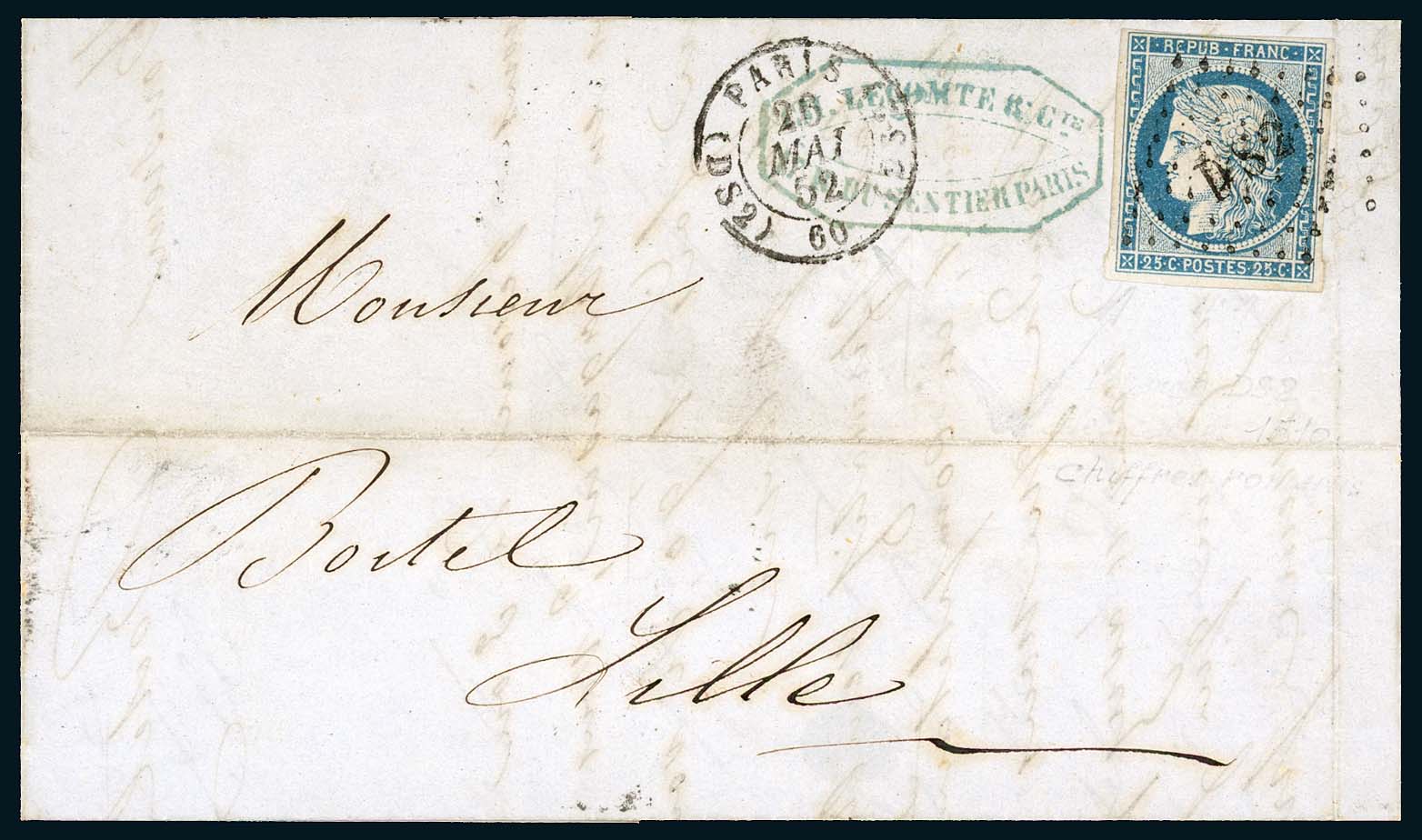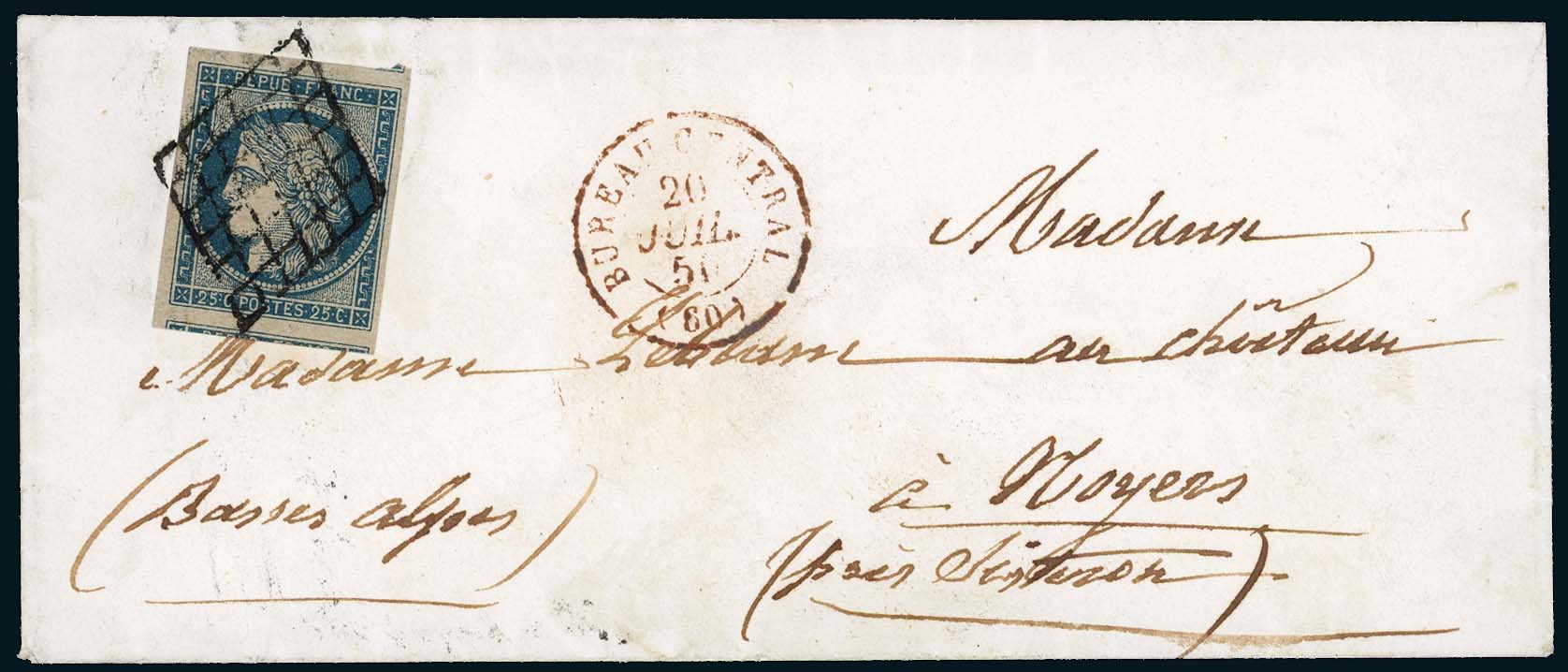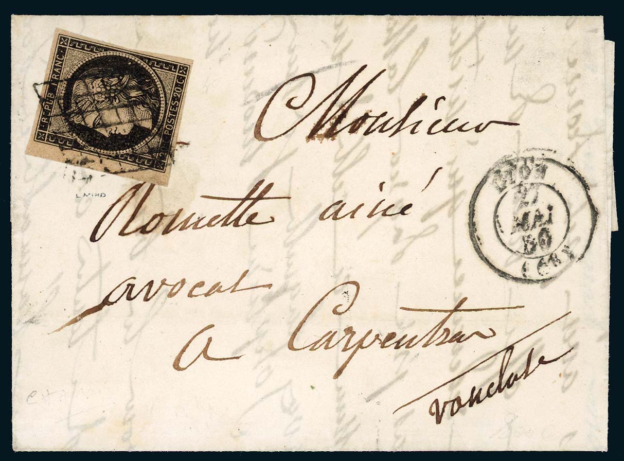63 | N°3c, gris-noir, OB grille, C. PARIS sur lettre pour Lyon 1849 Signé et certificat Calves TB | 150 | 300 | 150 | enchérir | |