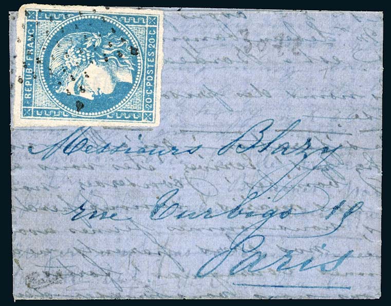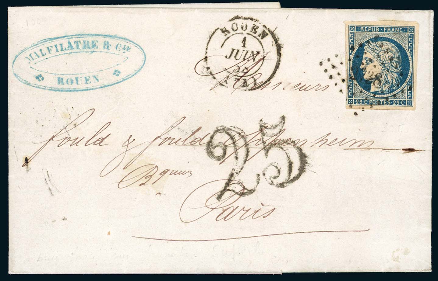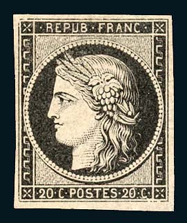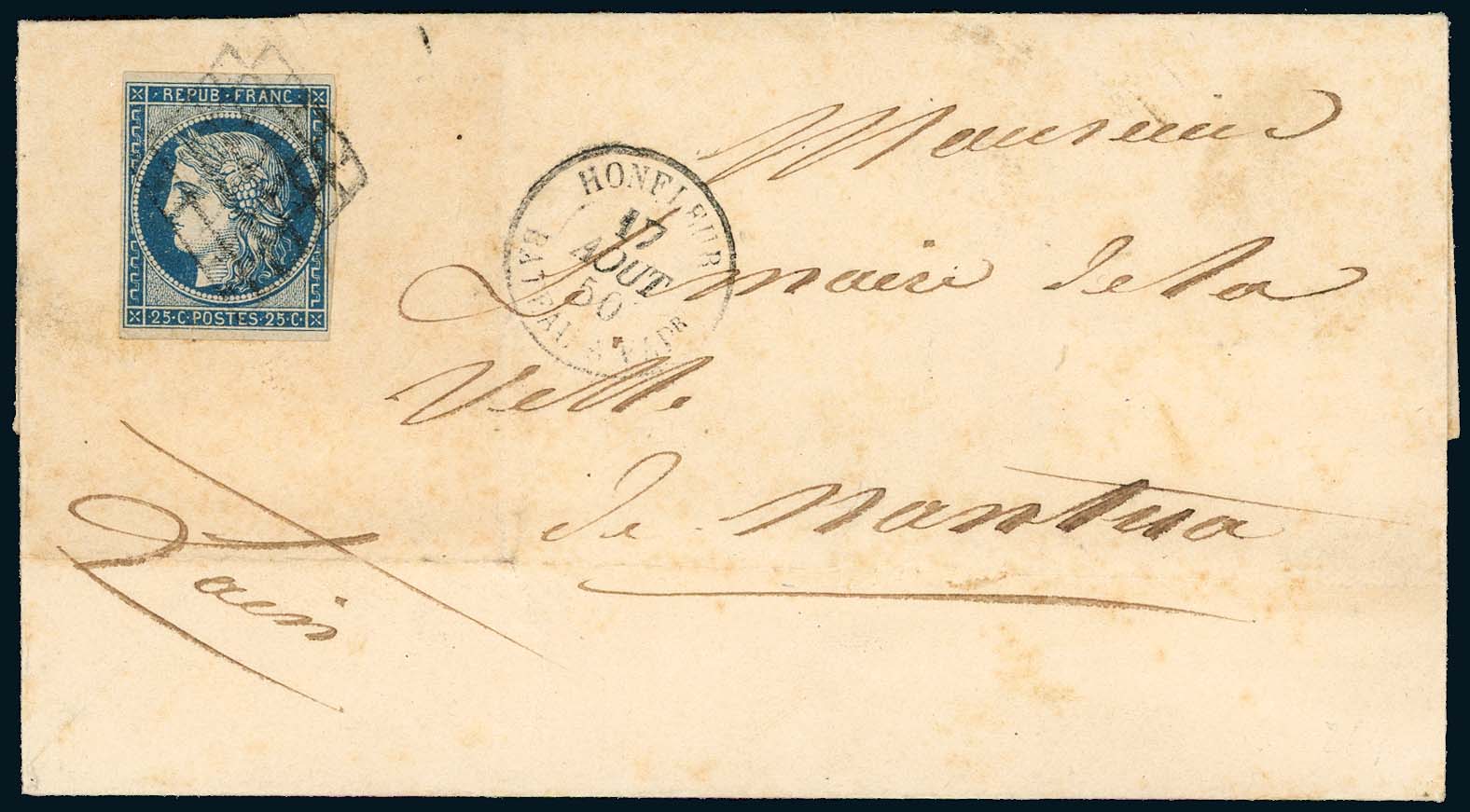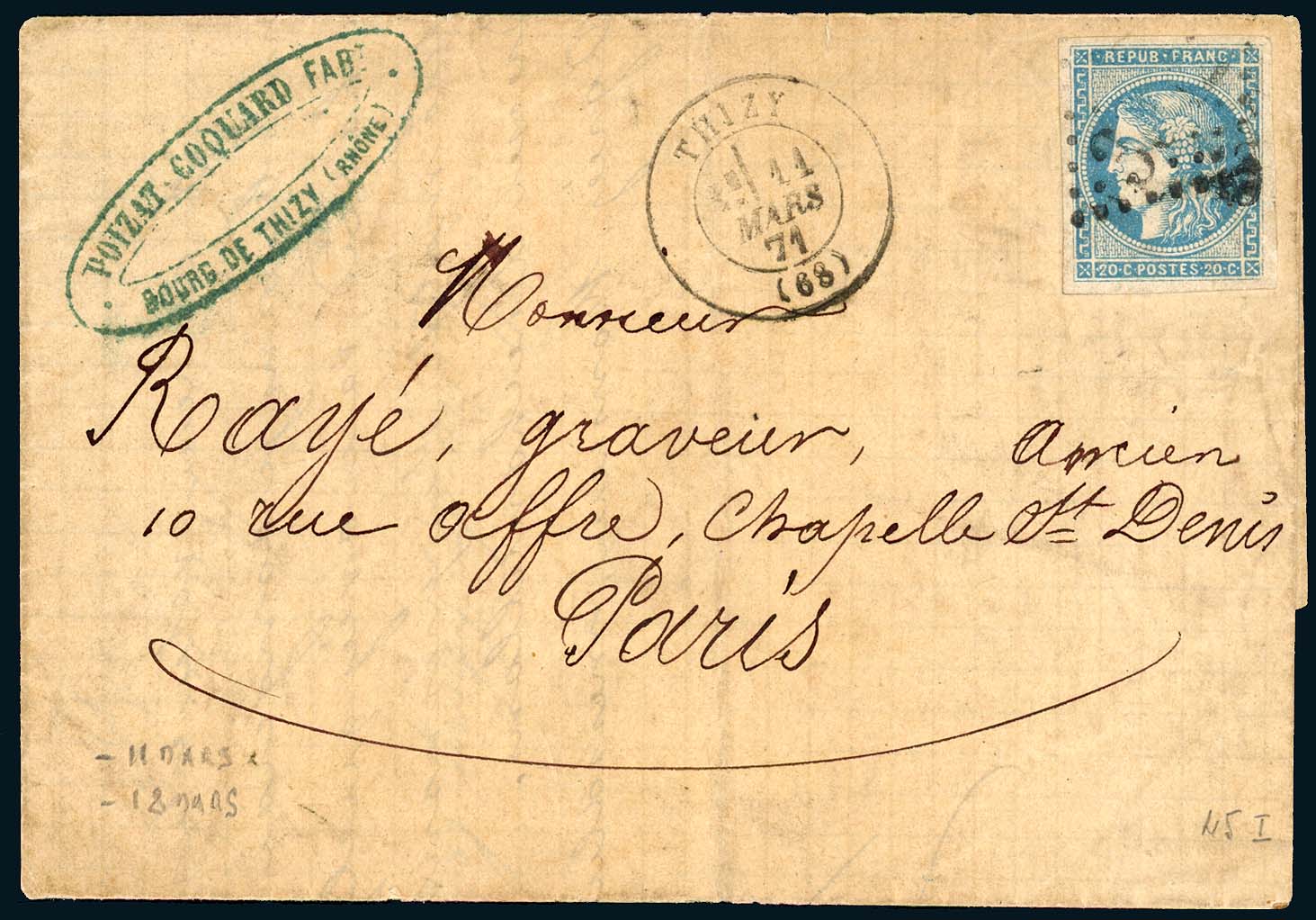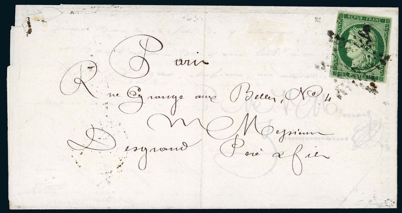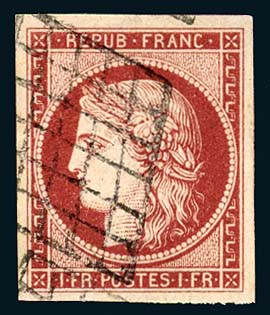 63 | N°3c, gris-noir, OB grille, C. PARIS sur lettre pour Lyon 1849 Signé et certificat Calves TB | 150 | 300 | 150 | enchérir | |