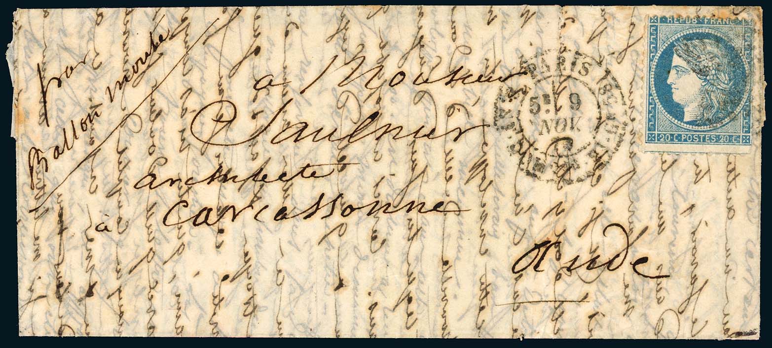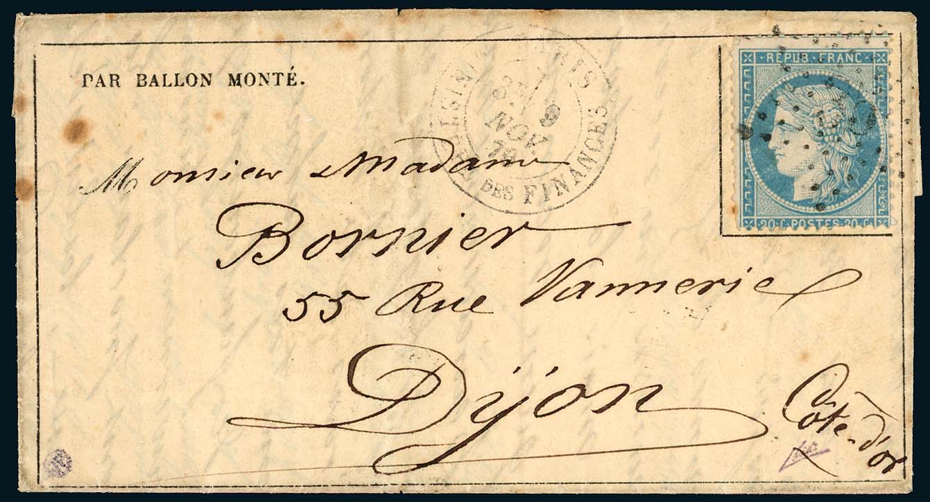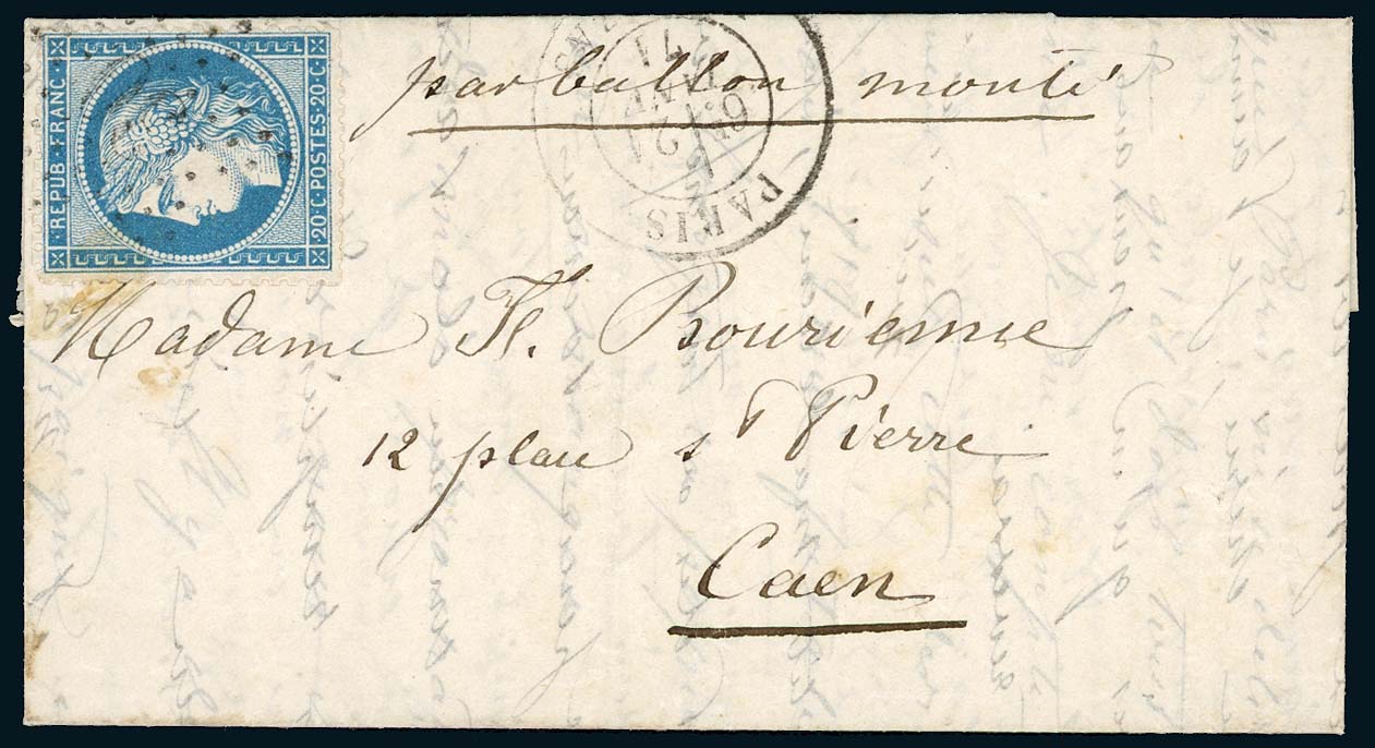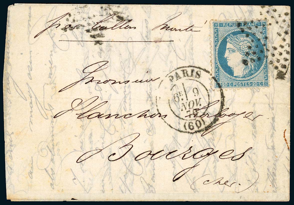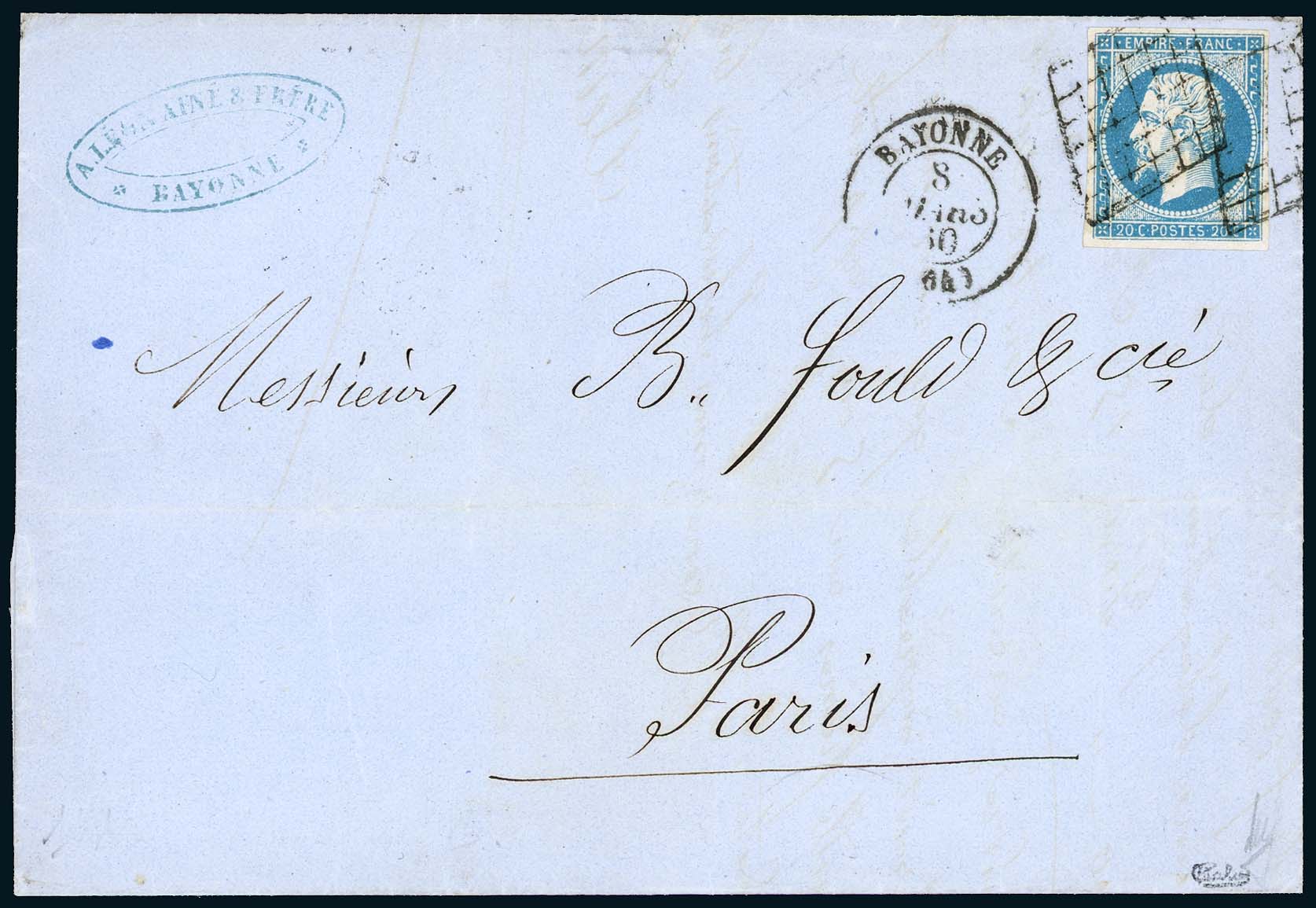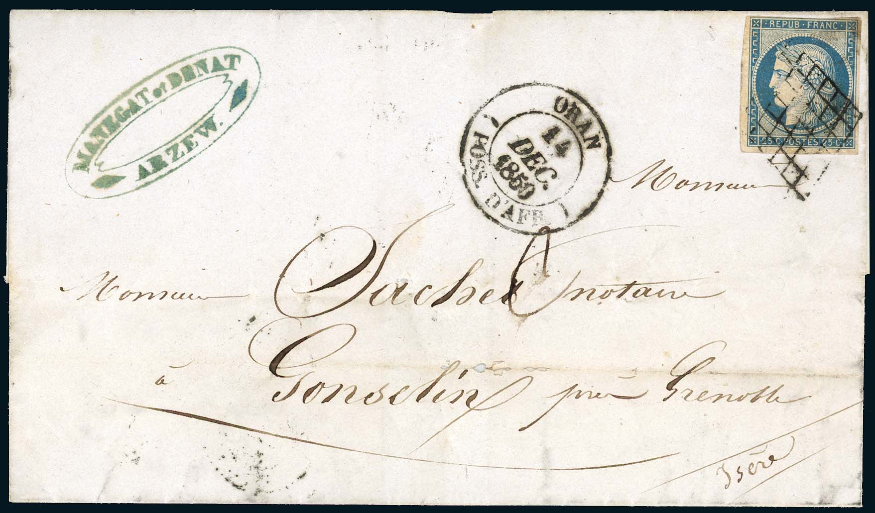 63 | N°3c, gris-noir, OB grille, C. PARIS sur lettre pour Lyon 1849 Signé et certificat Calves TB | 150 | 300 | 150 | enchérir | |