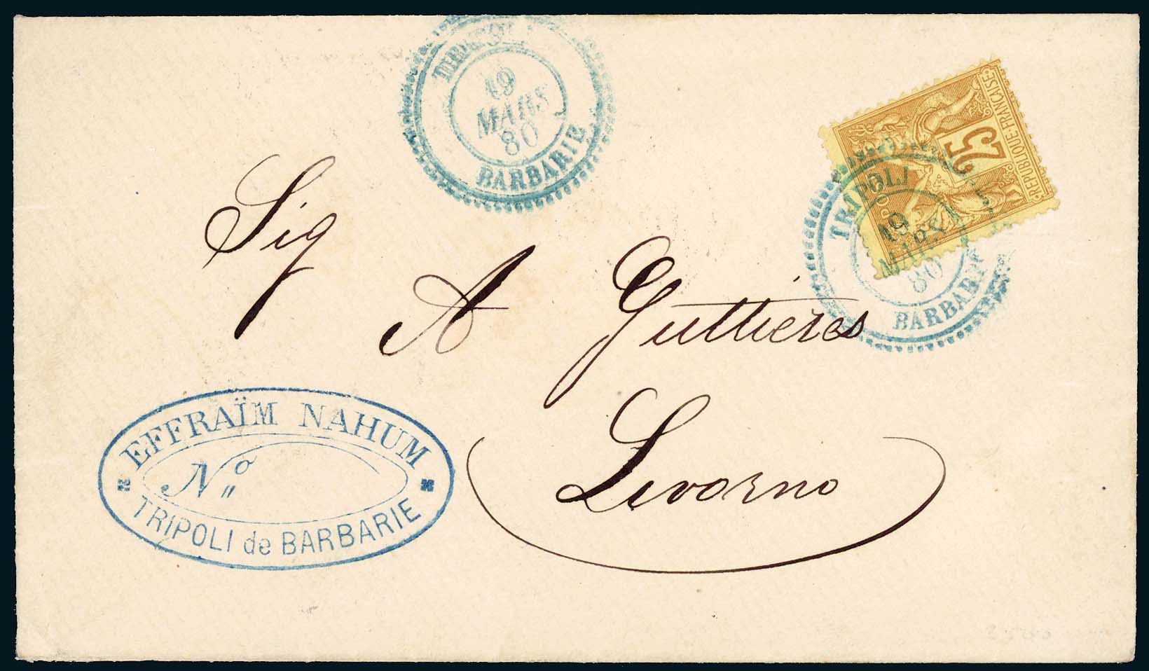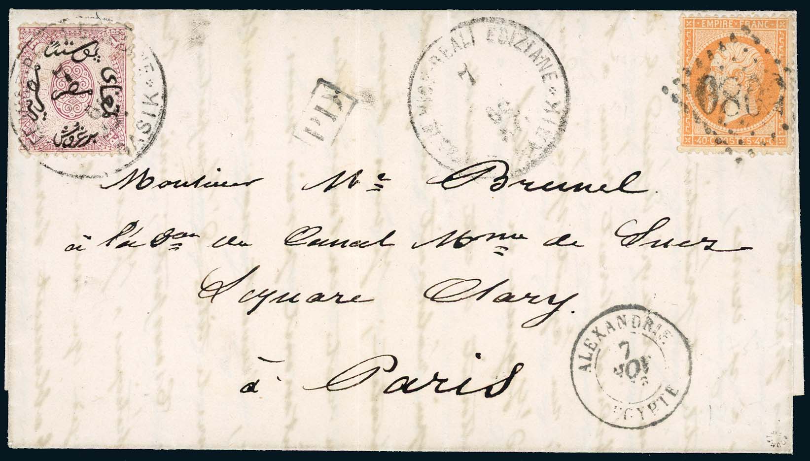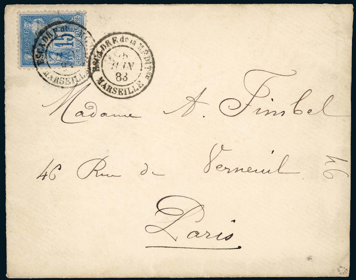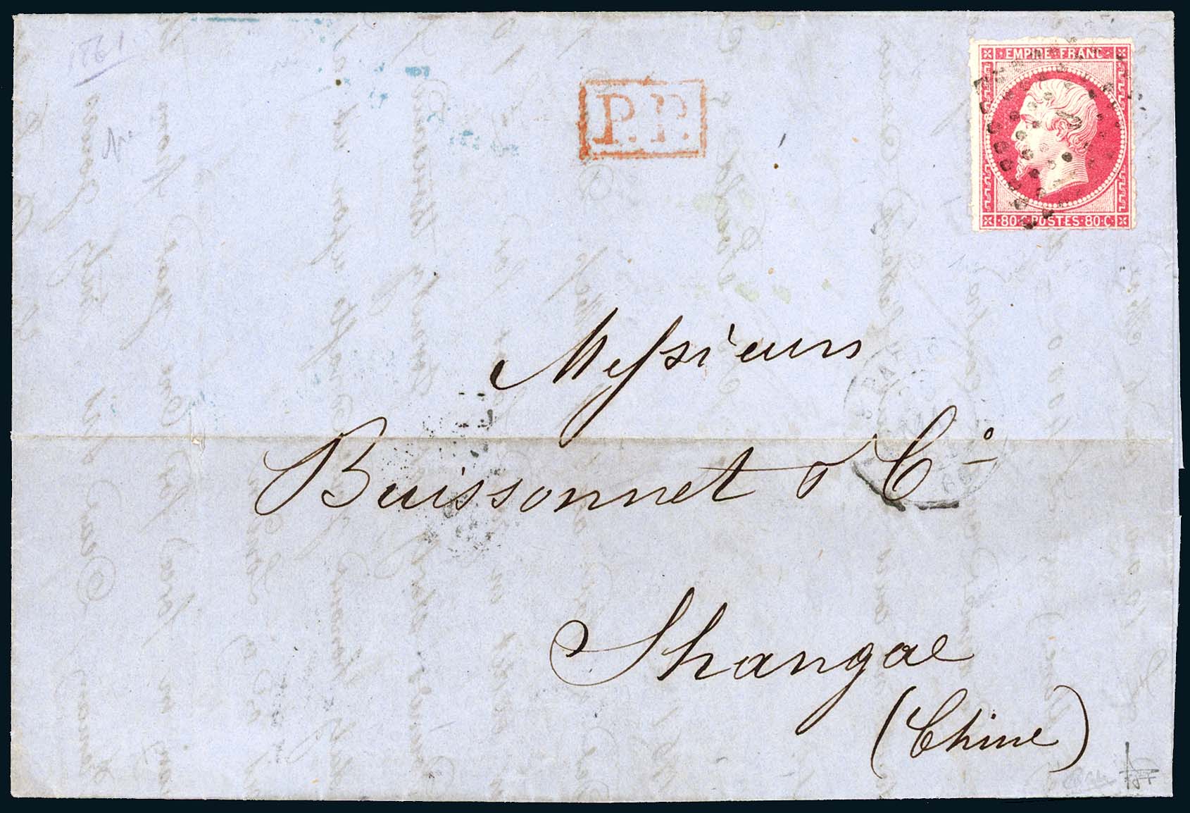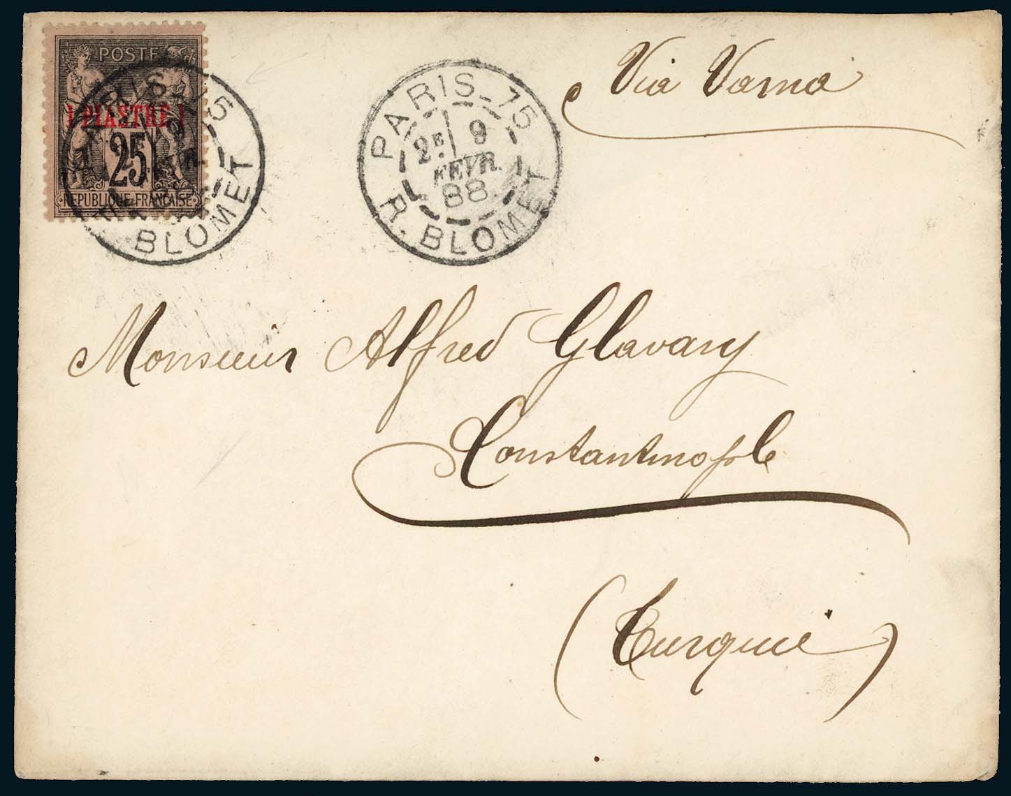 2483 | Lot de 7 lettres oblitérées dans les bureaux du Levant en majorité (Alexandrie, Beyrouth (2), Salonique, Smyrne, constantinople, Alger) de 1857 à 1884, bonne qualité générale, à étudier | 150 | 300 | 150 | enchérir | |