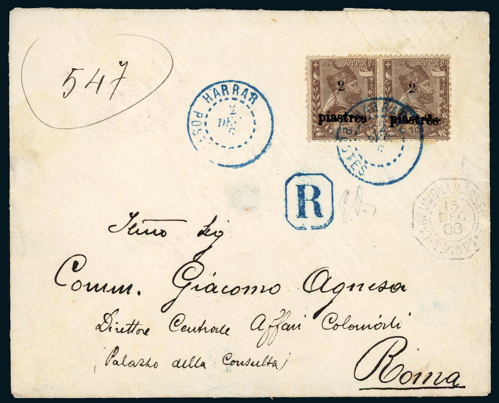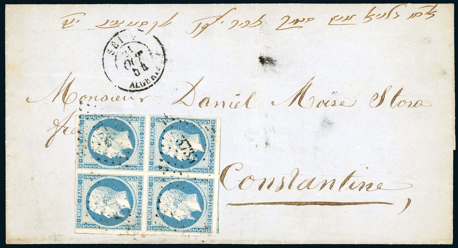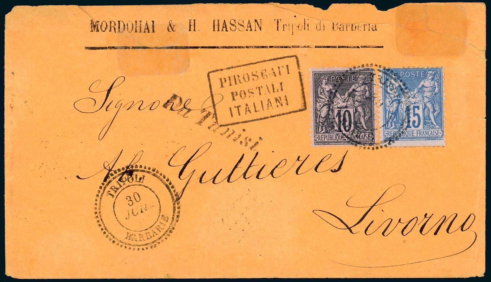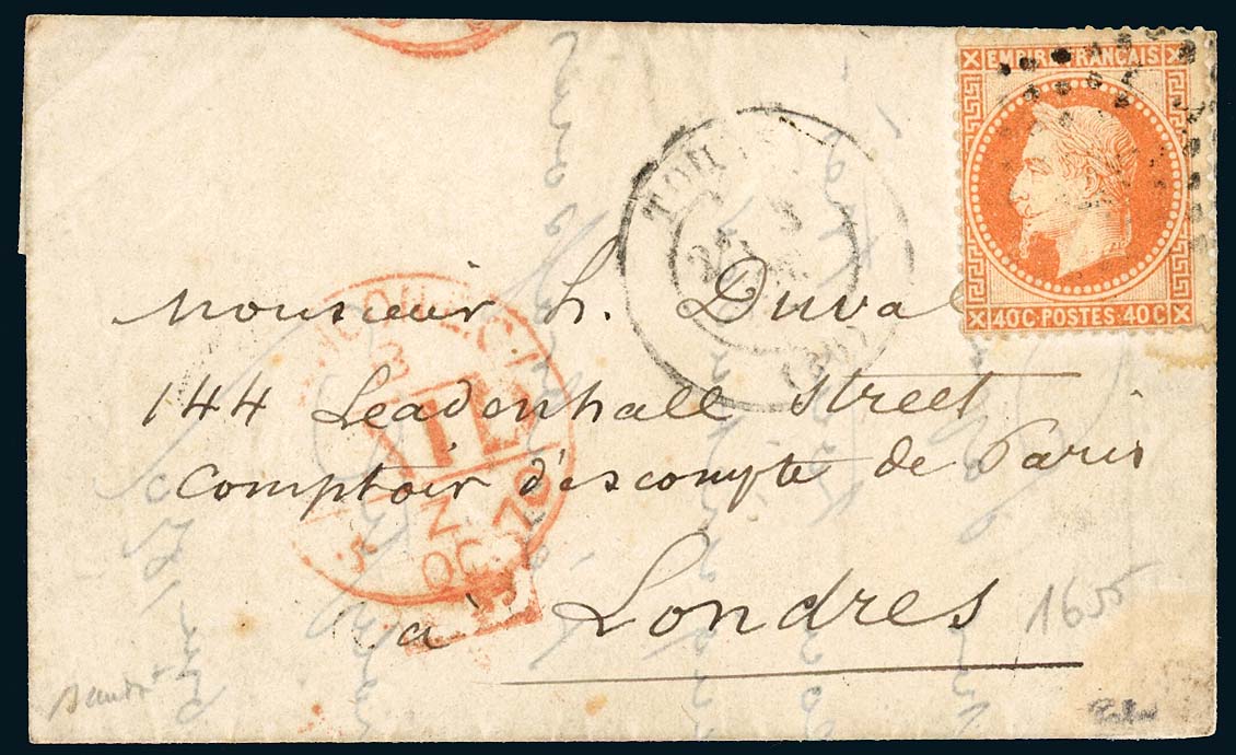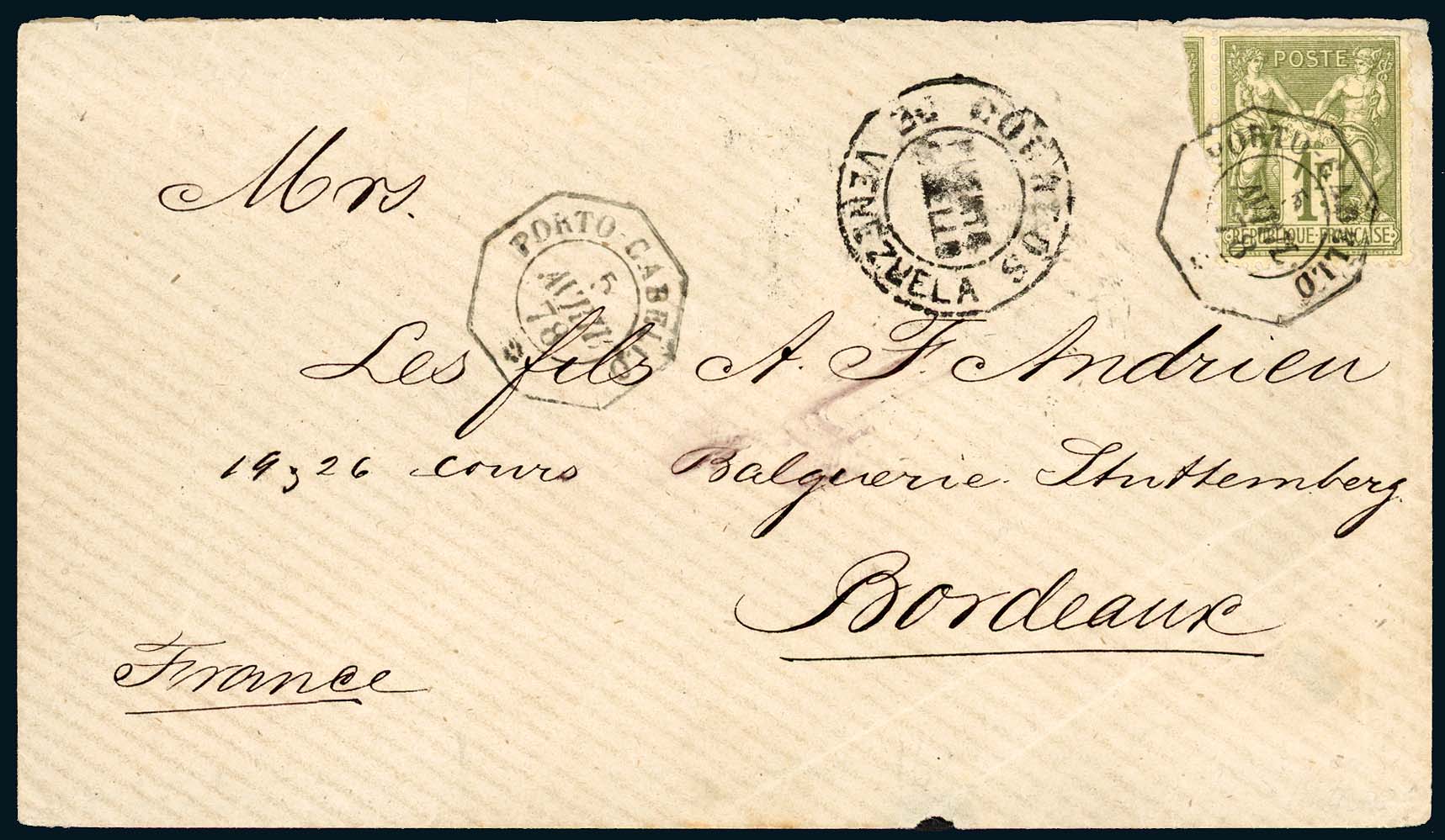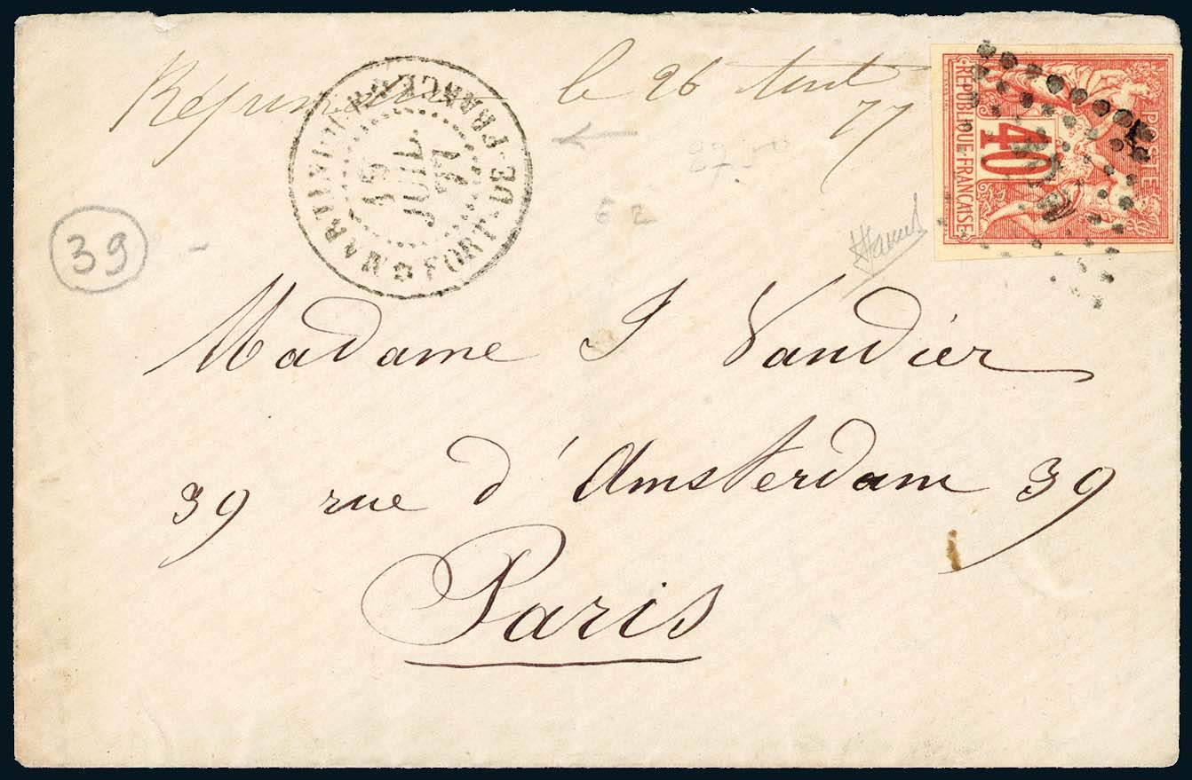2483 | Lot de 7 lettres oblitérées dans les bureaux du Levant en majorité (Alexandrie, Beyrouth (2), Salonique, Smyrne, constantinople, Alger) de 1857 à 1884, bonne qualité générale, à étudier | 150 | 300 | 150 | enchérir | |