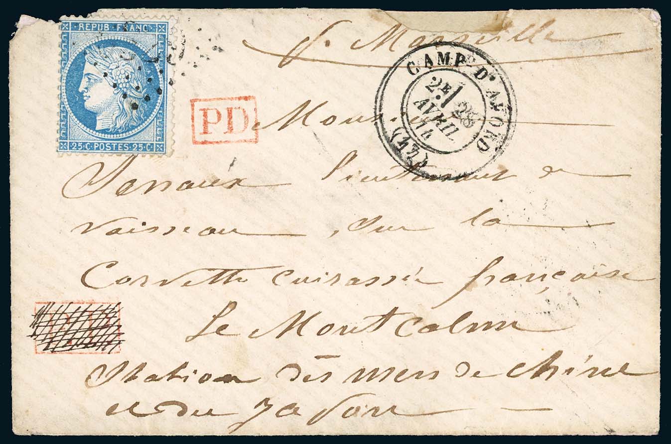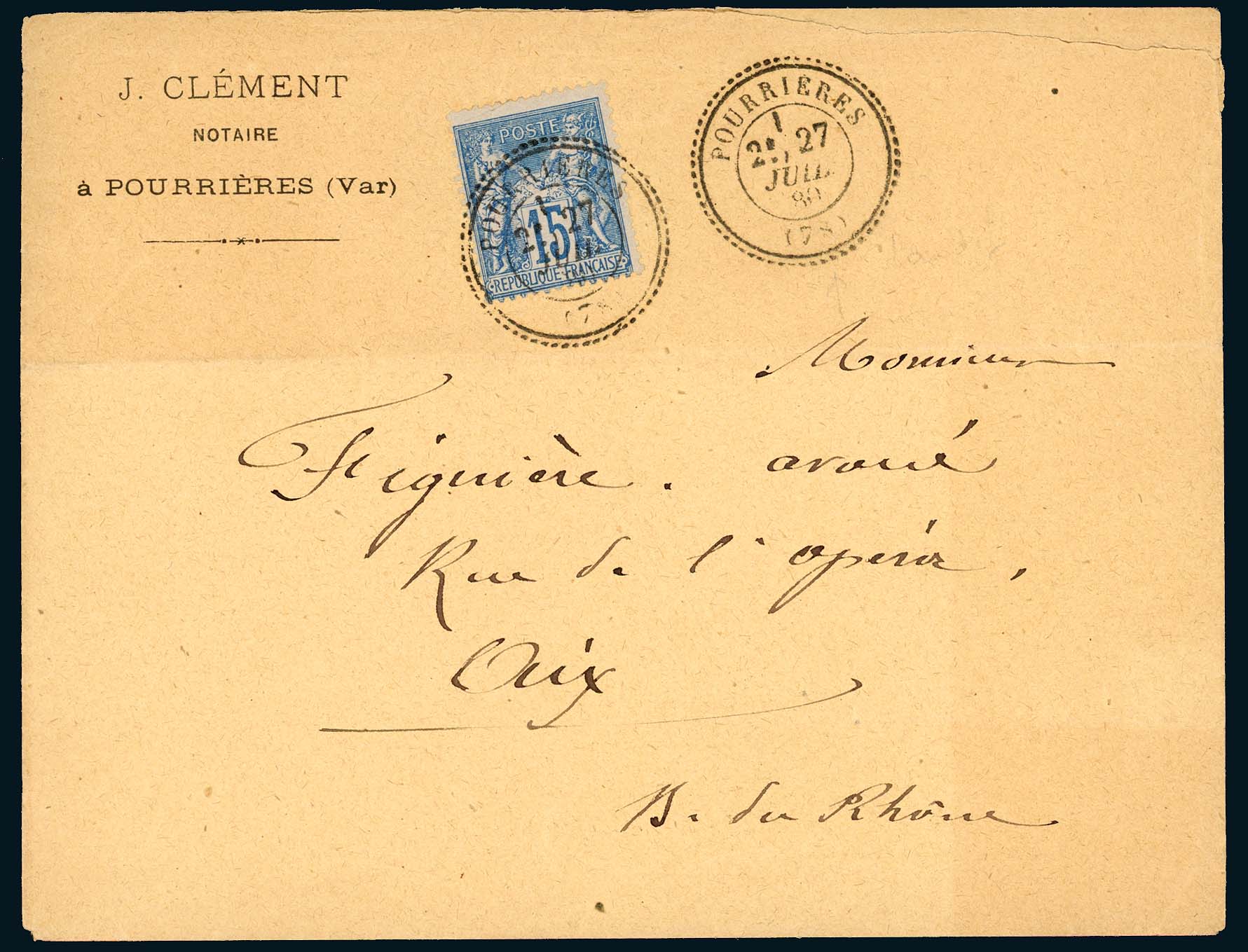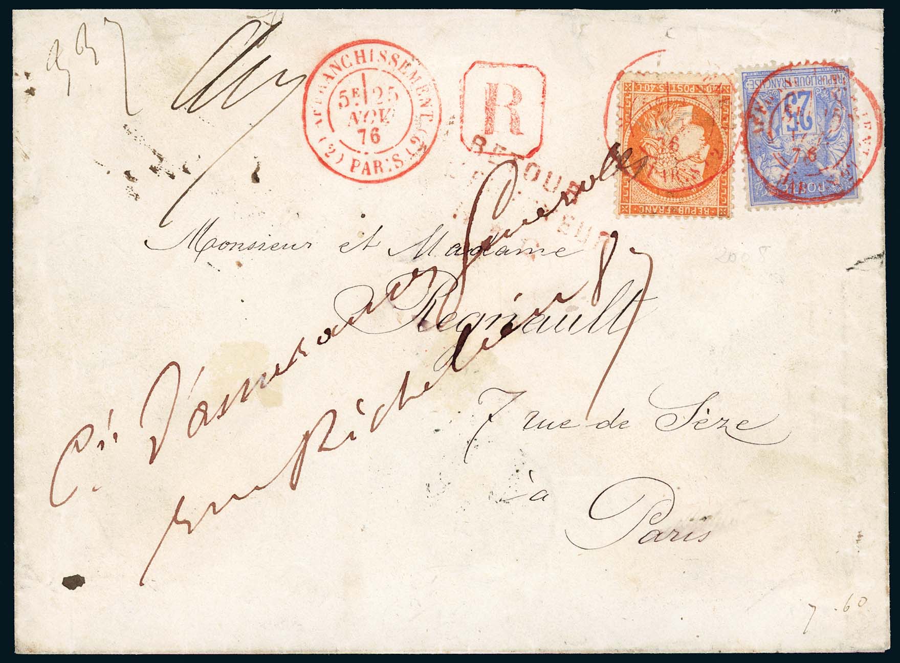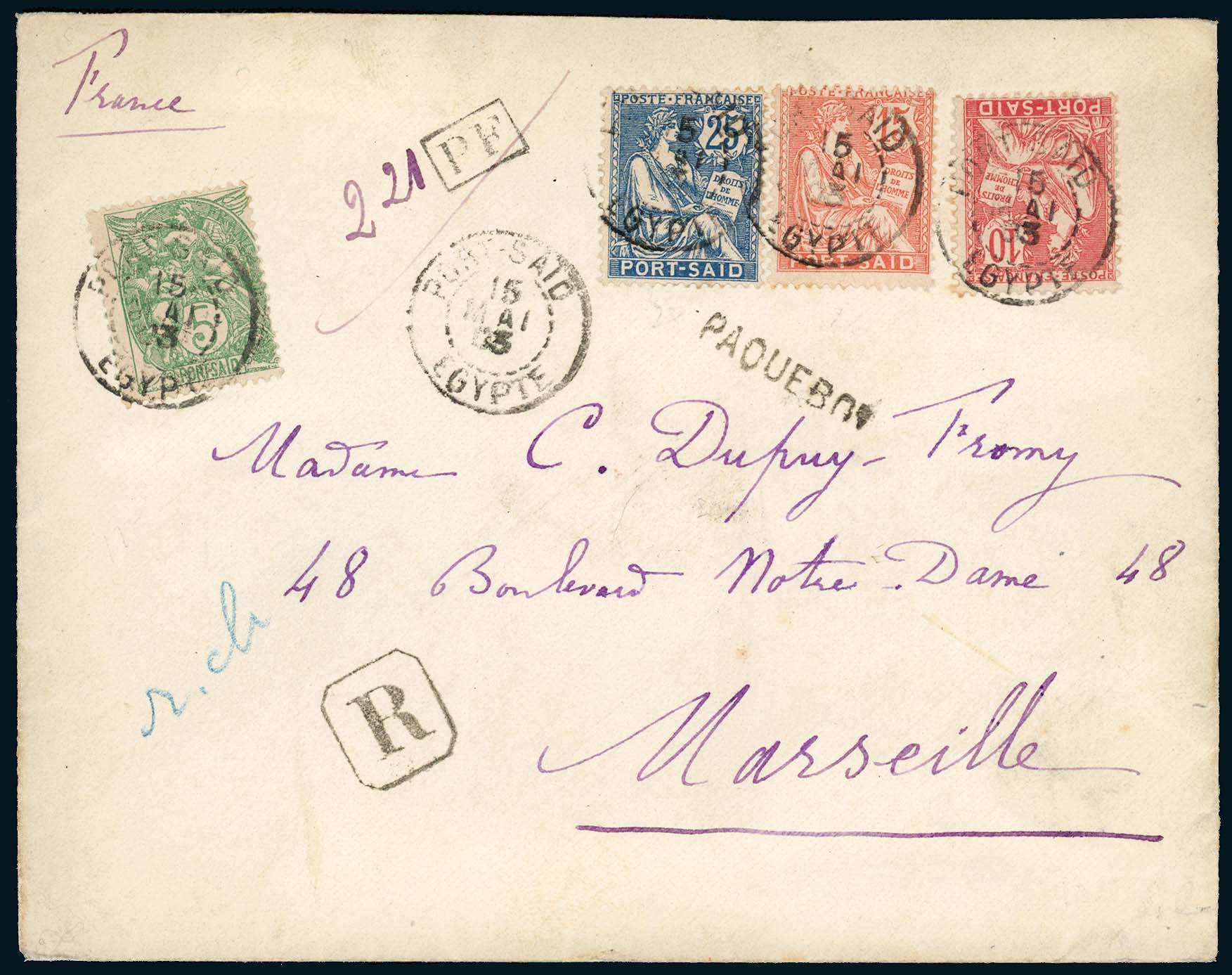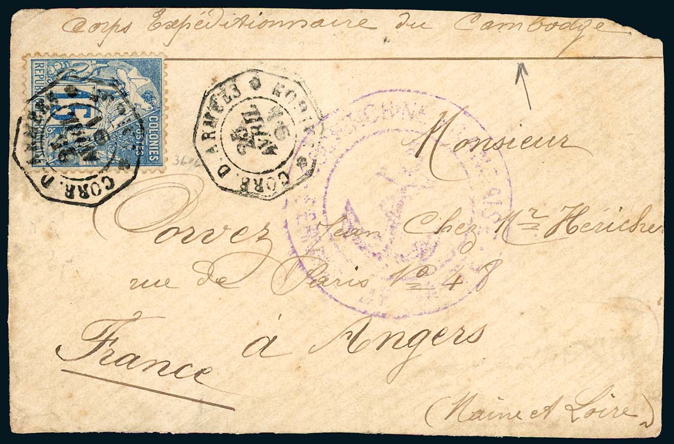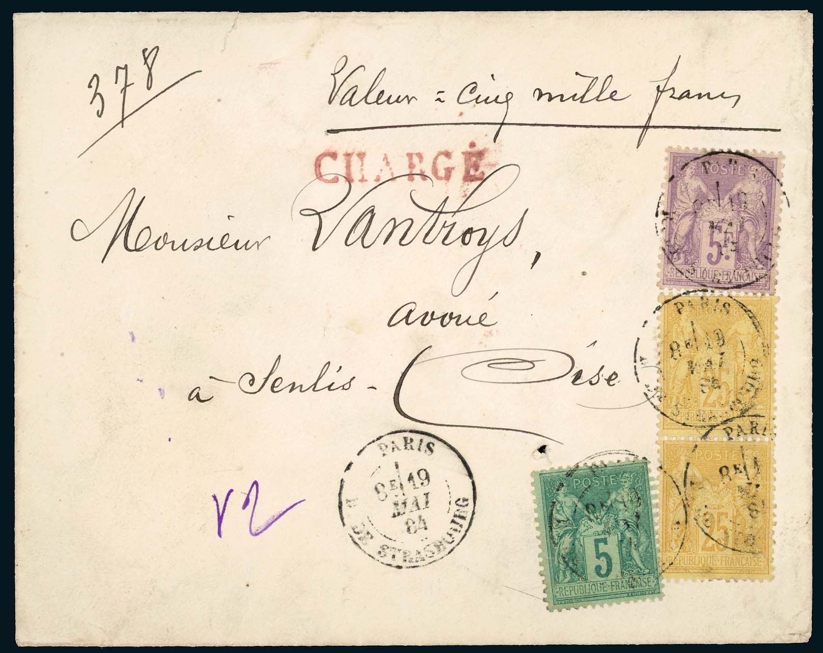 2483 | Lot de 7 lettres oblitérées dans les bureaux du Levant en majorité (Alexandrie, Beyrouth (2), Salonique, Smyrne, constantinople, Alger) de 1857 à 1884, bonne qualité générale, à étudier | 150 | 300 | 150 | enchérir | |