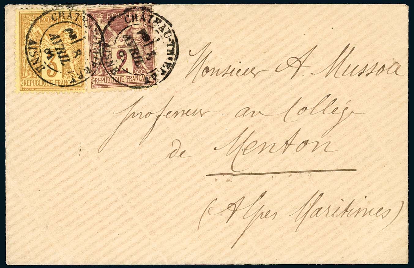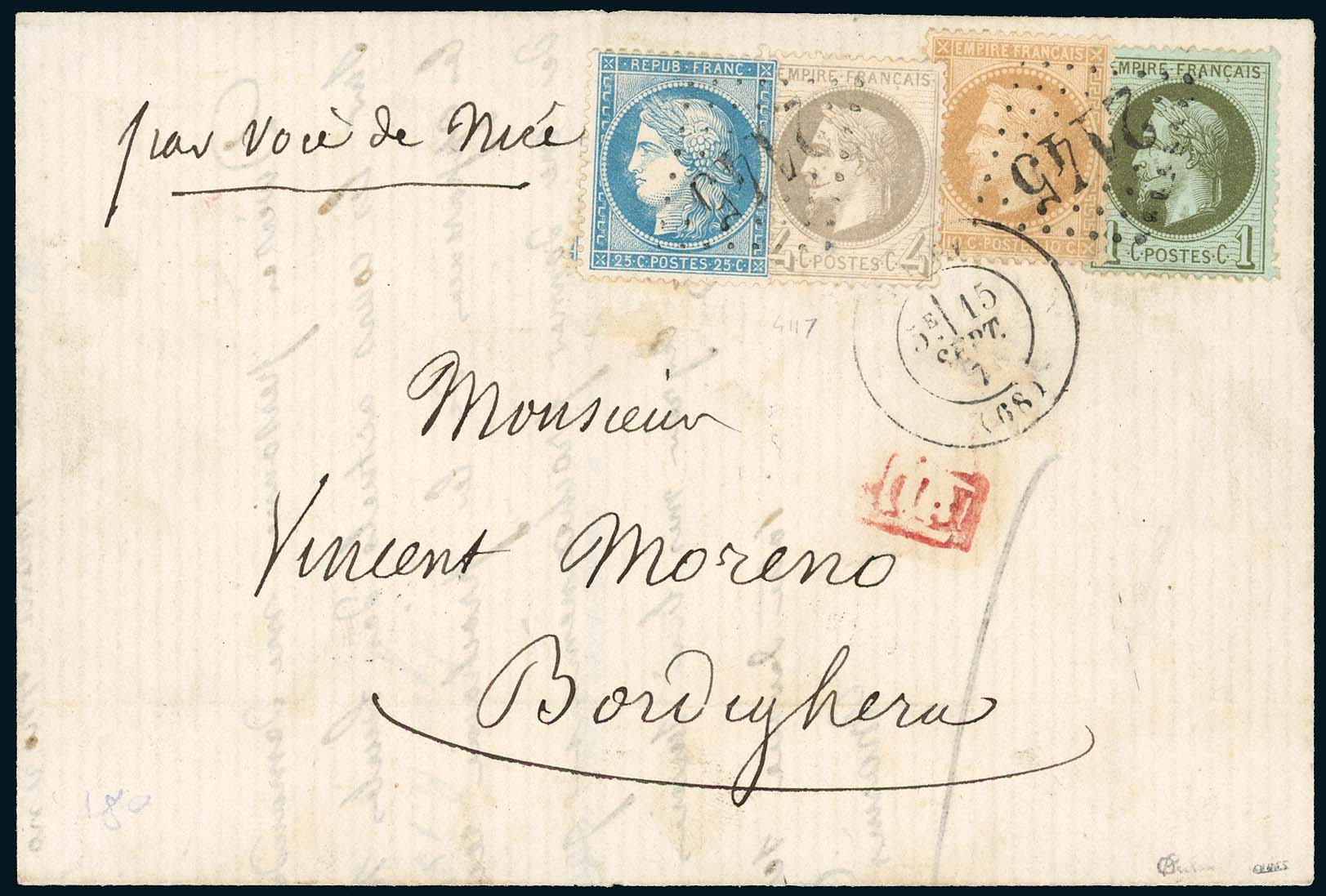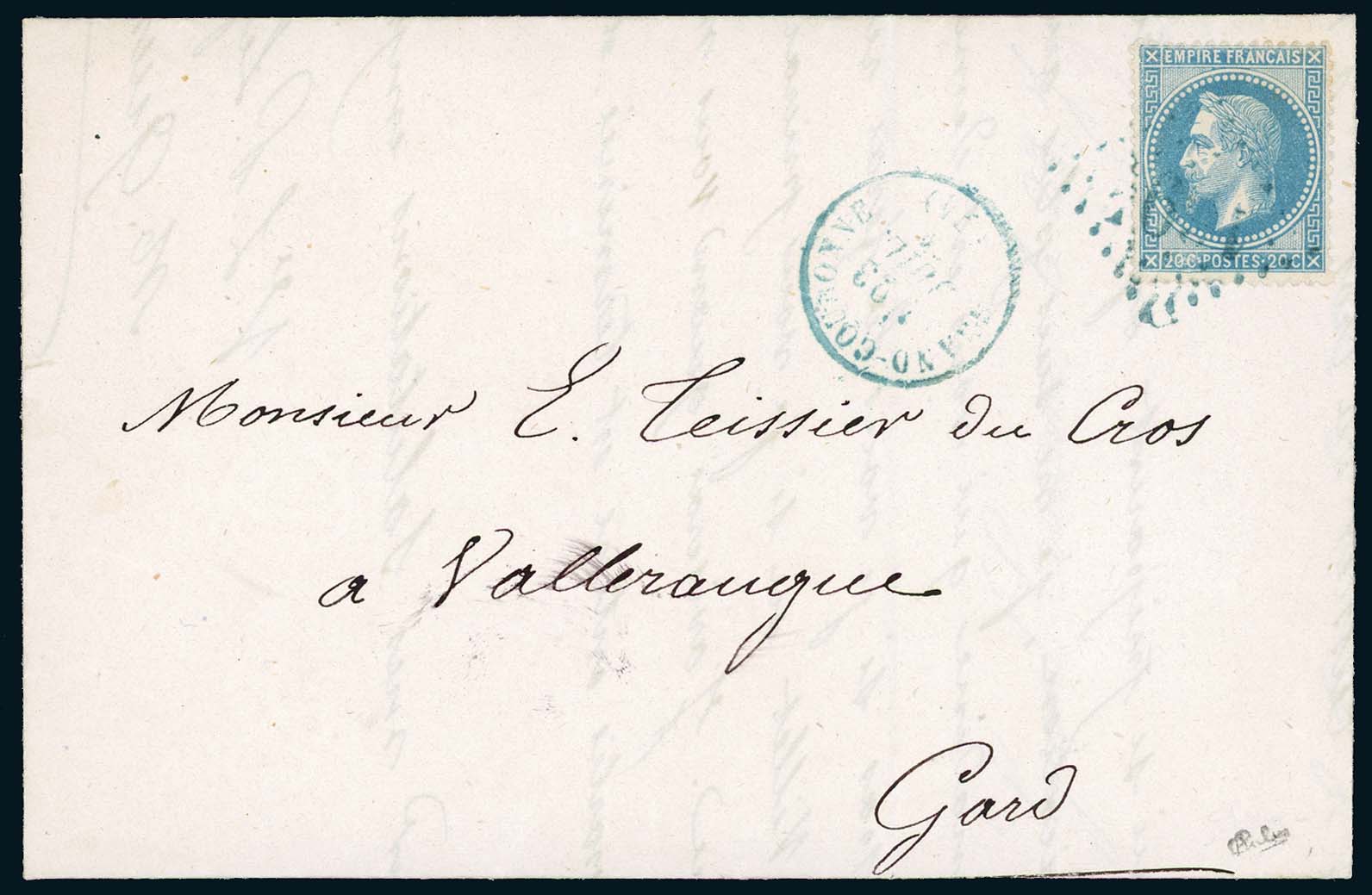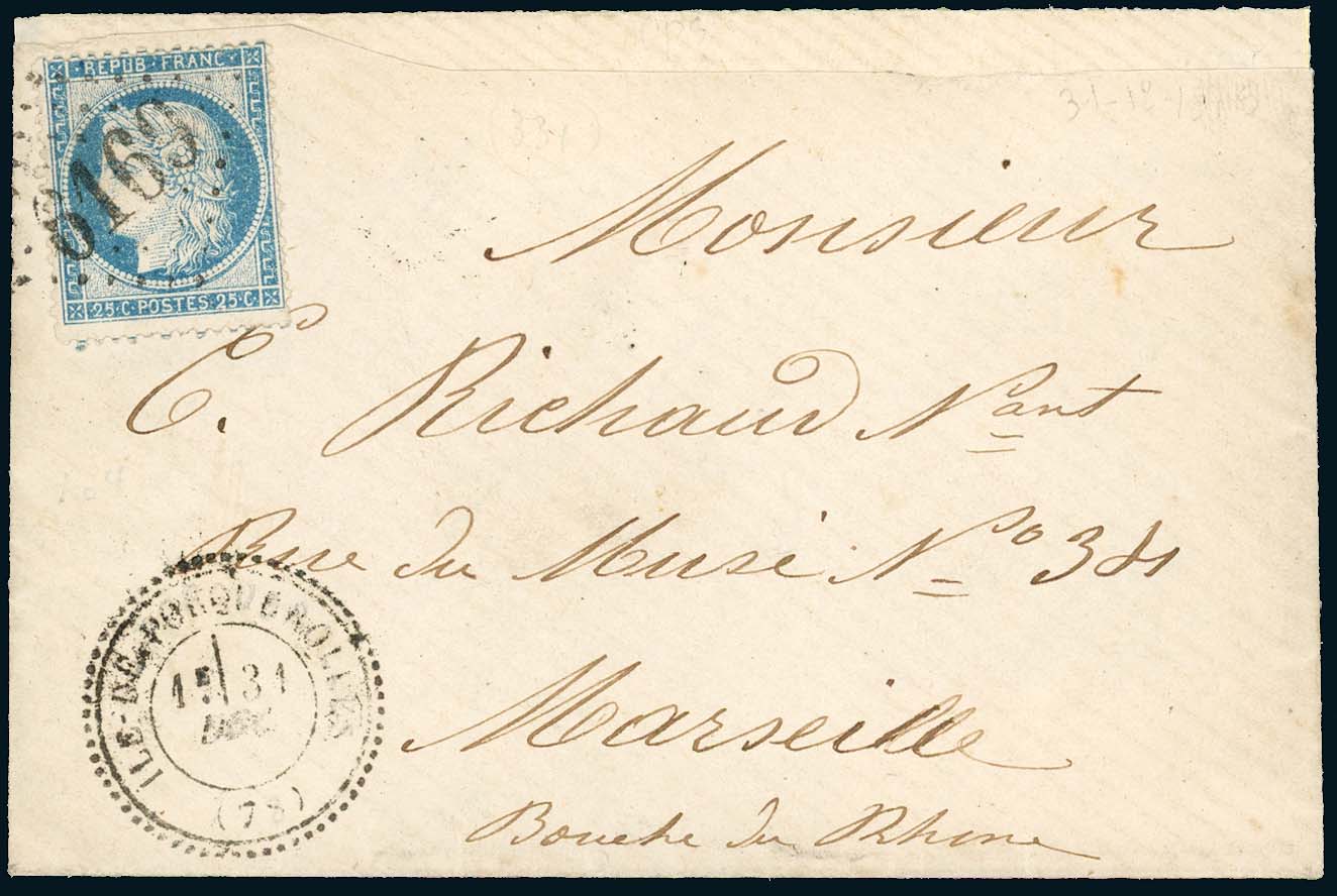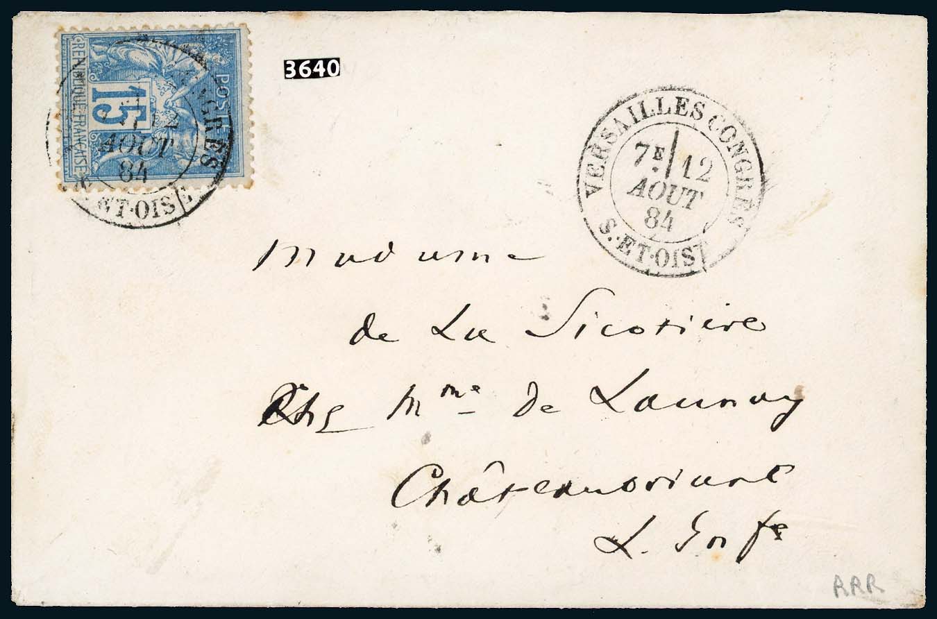 2483 | Lot de 7 lettres oblitérées dans les bureaux du Levant en majorité (Alexandrie, Beyrouth (2), Salonique, Smyrne, constantinople, Alger) de 1857 à 1884, bonne qualité générale, à étudier | 150 | 300 | 150 | enchérir | |