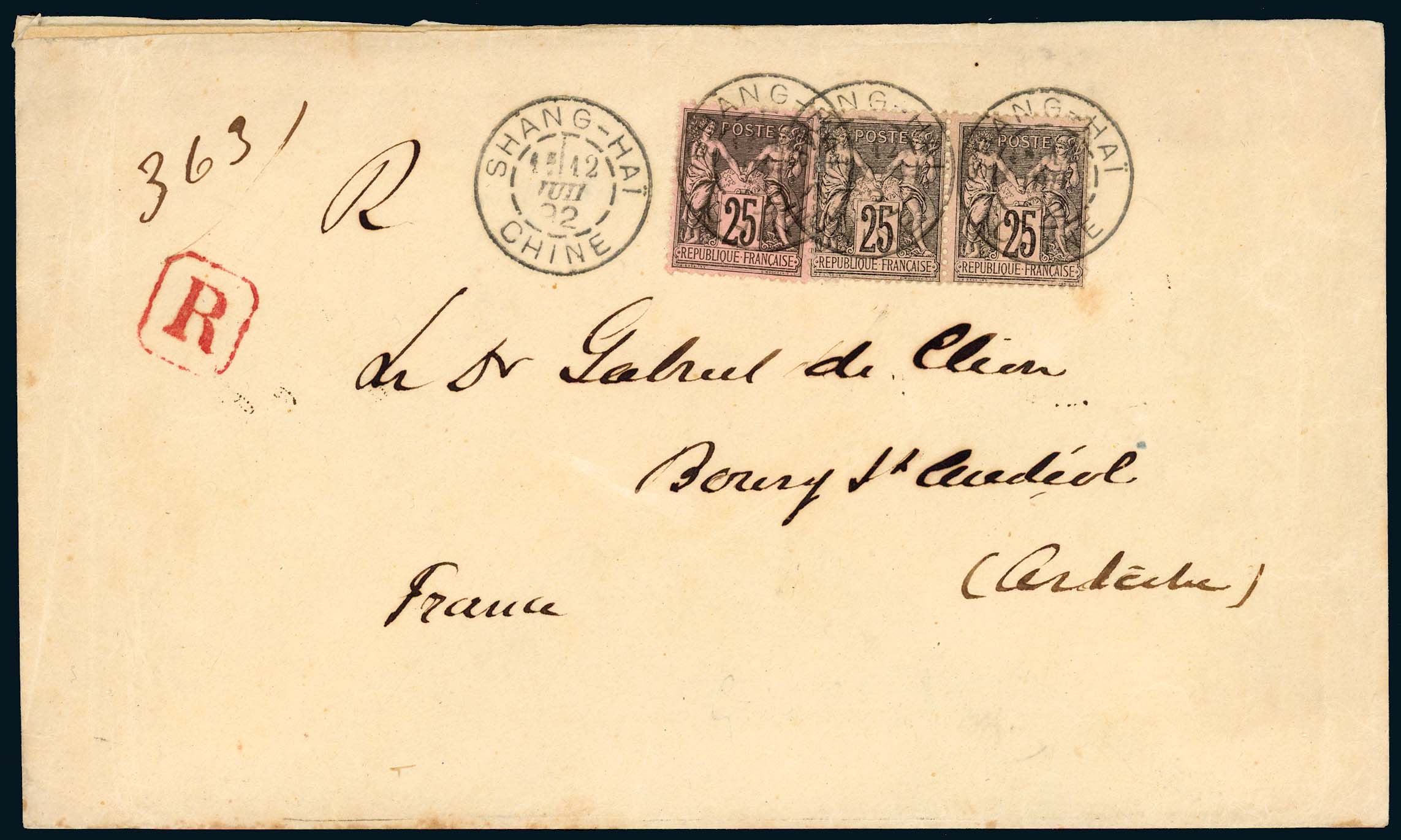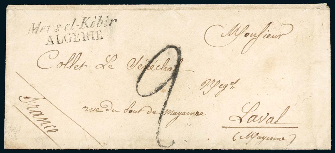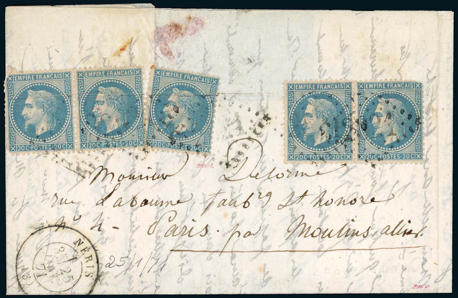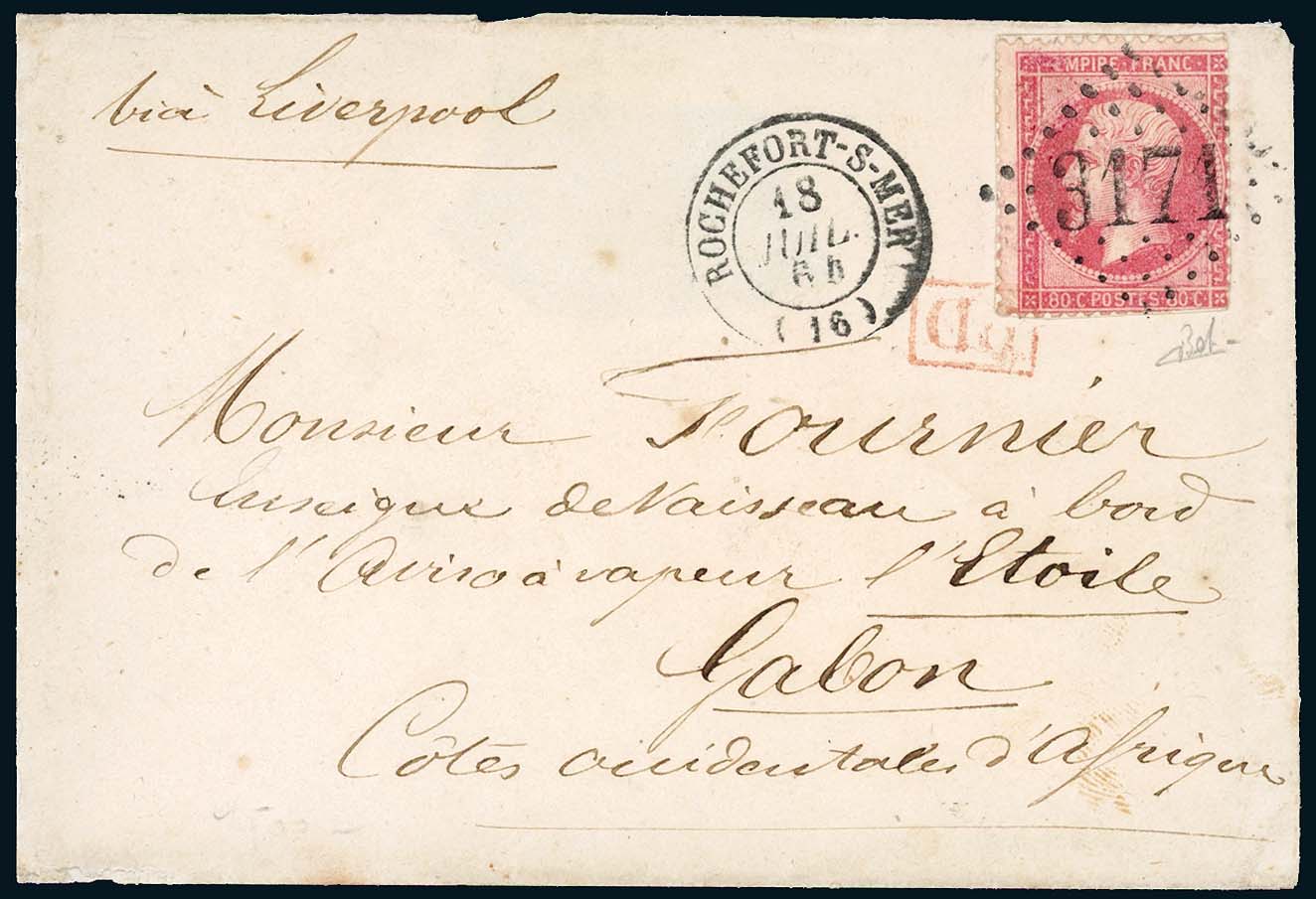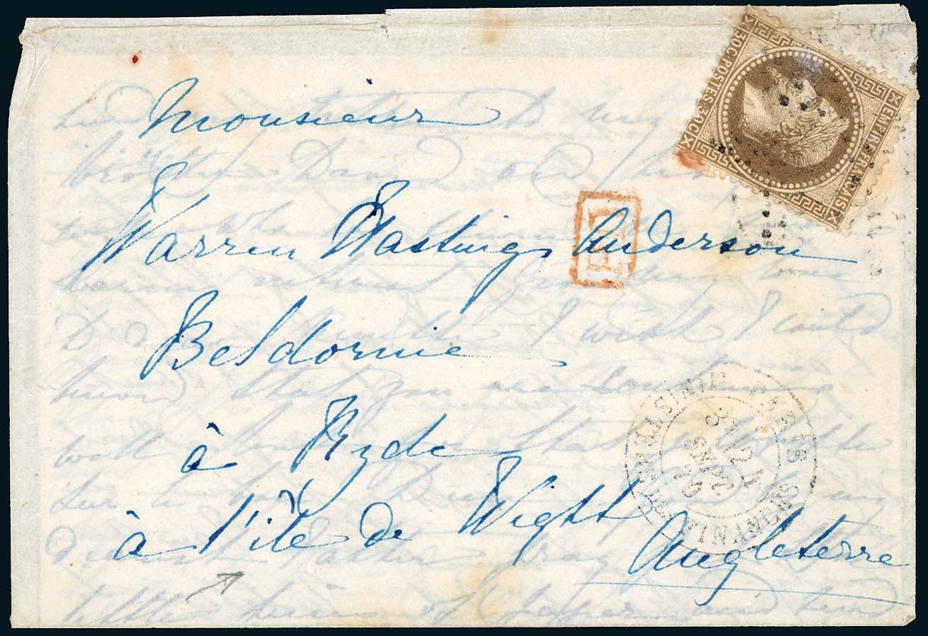2483 | Lot de 7 lettres oblitérées dans les bureaux du Levant en majorité (Alexandrie, Beyrouth (2), Salonique, Smyrne, constantinople, Alger) de 1857 à 1884, bonne qualité générale, à étudier | 150 | 300 | 150 | enchérir | |
