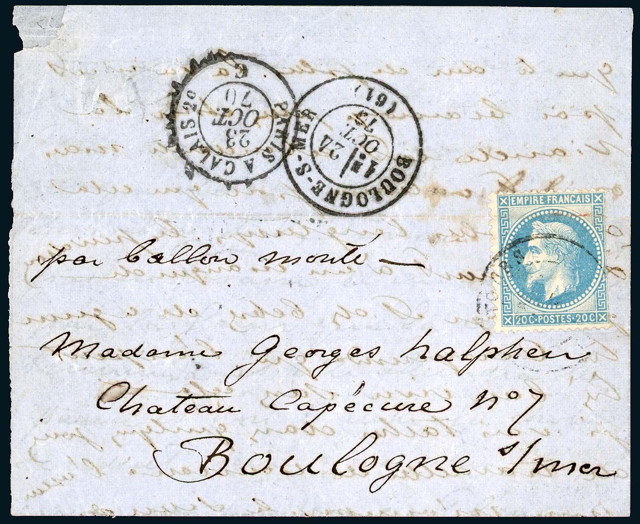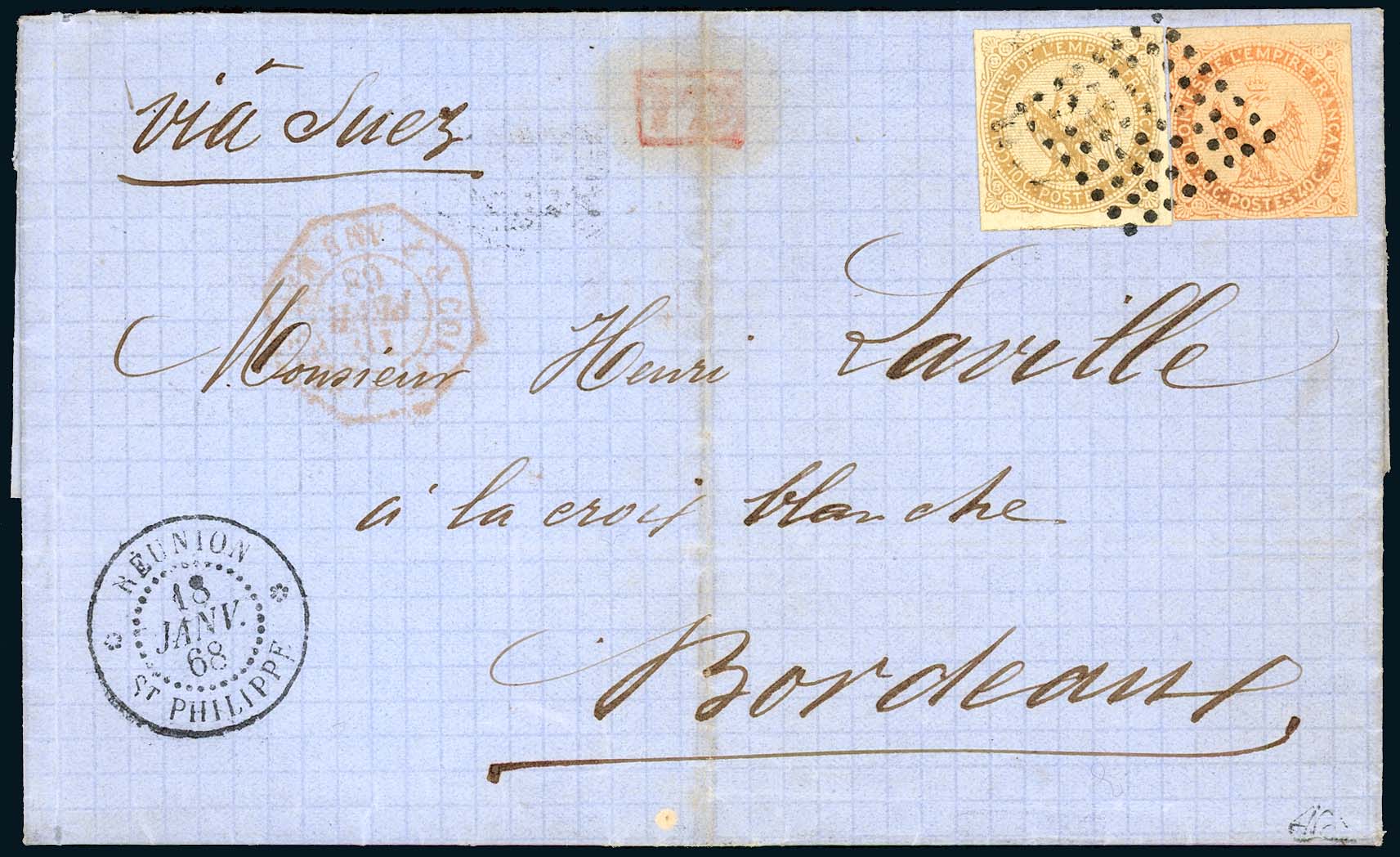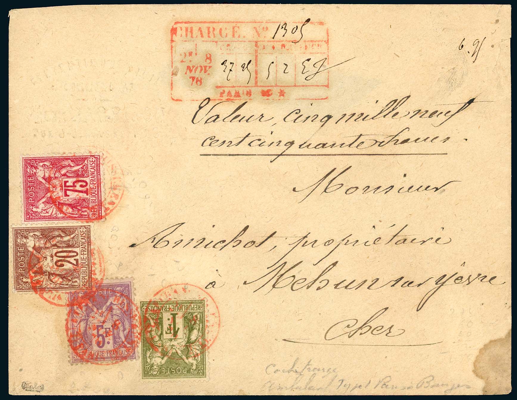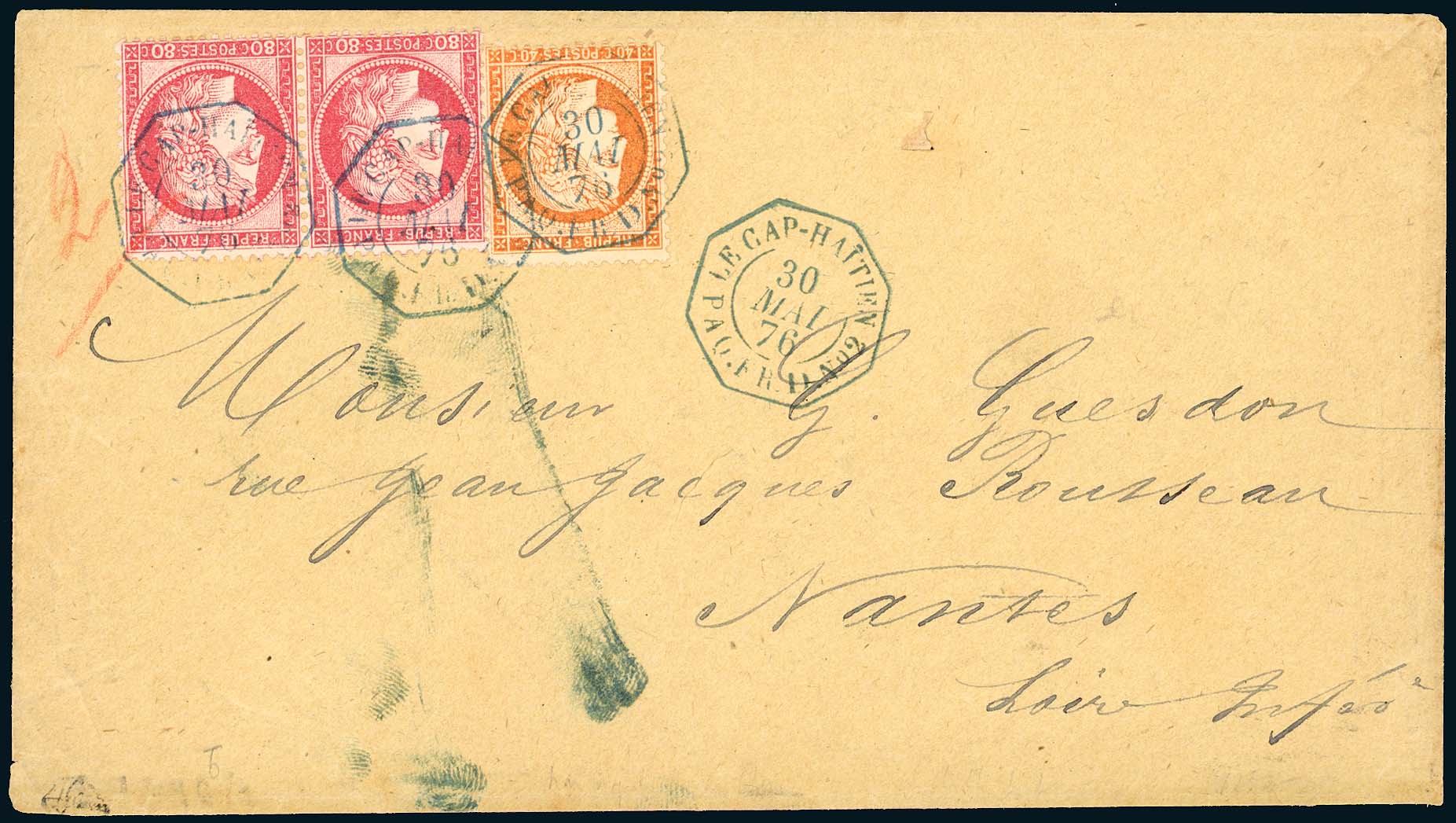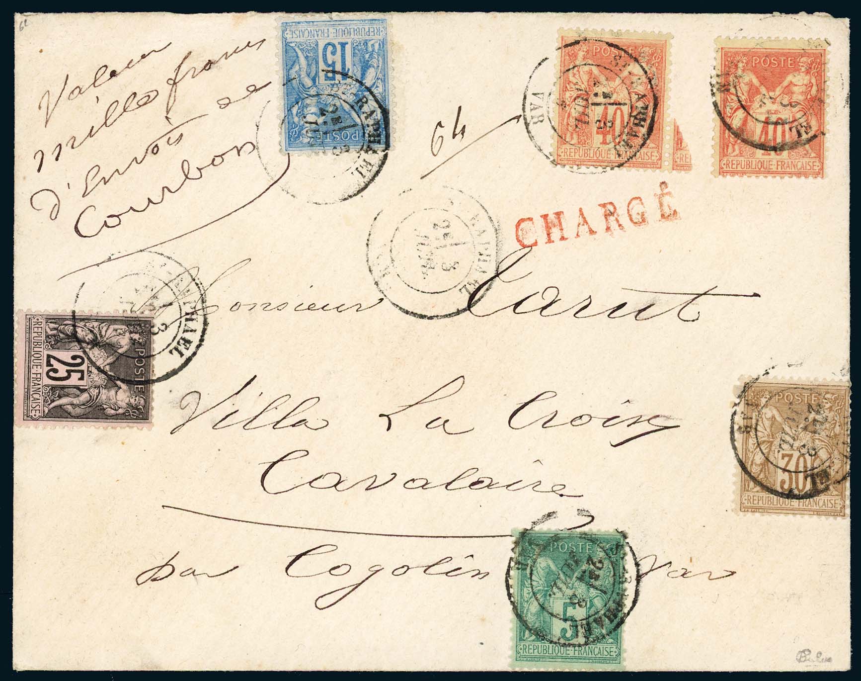 2483 | Lot de 7 lettres oblitérées dans les bureaux du Levant en majorité (Alexandrie, Beyrouth (2), Salonique, Smyrne, constantinople, Alger) de 1857 à 1884, bonne qualité générale, à étudier | 150 | 300 | 150 | enchérir | |