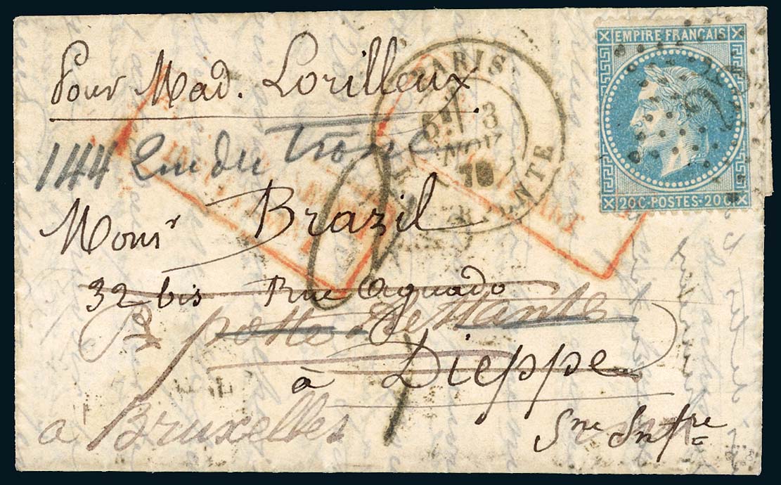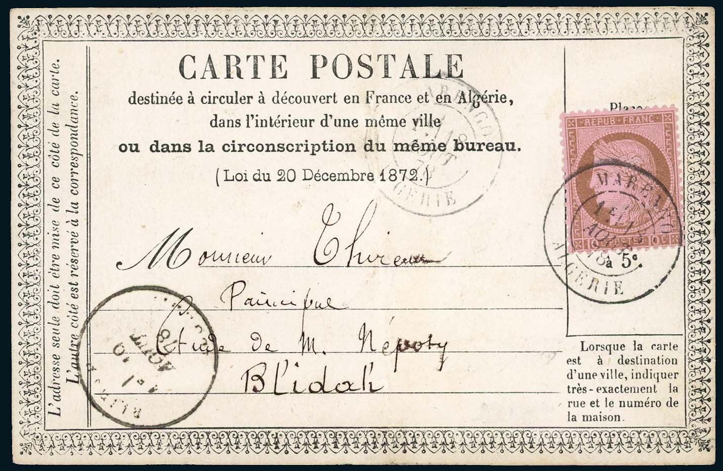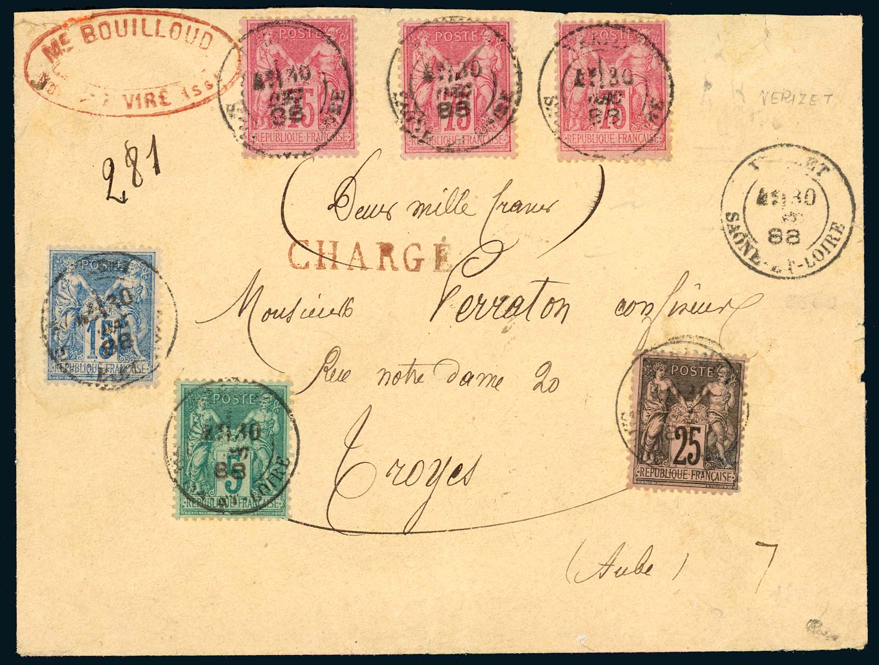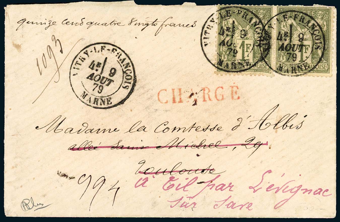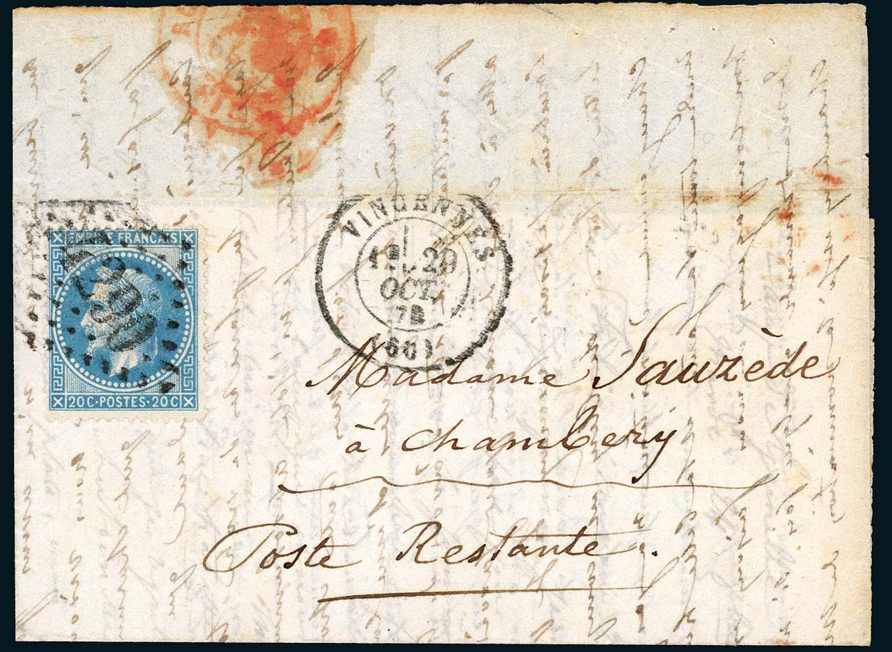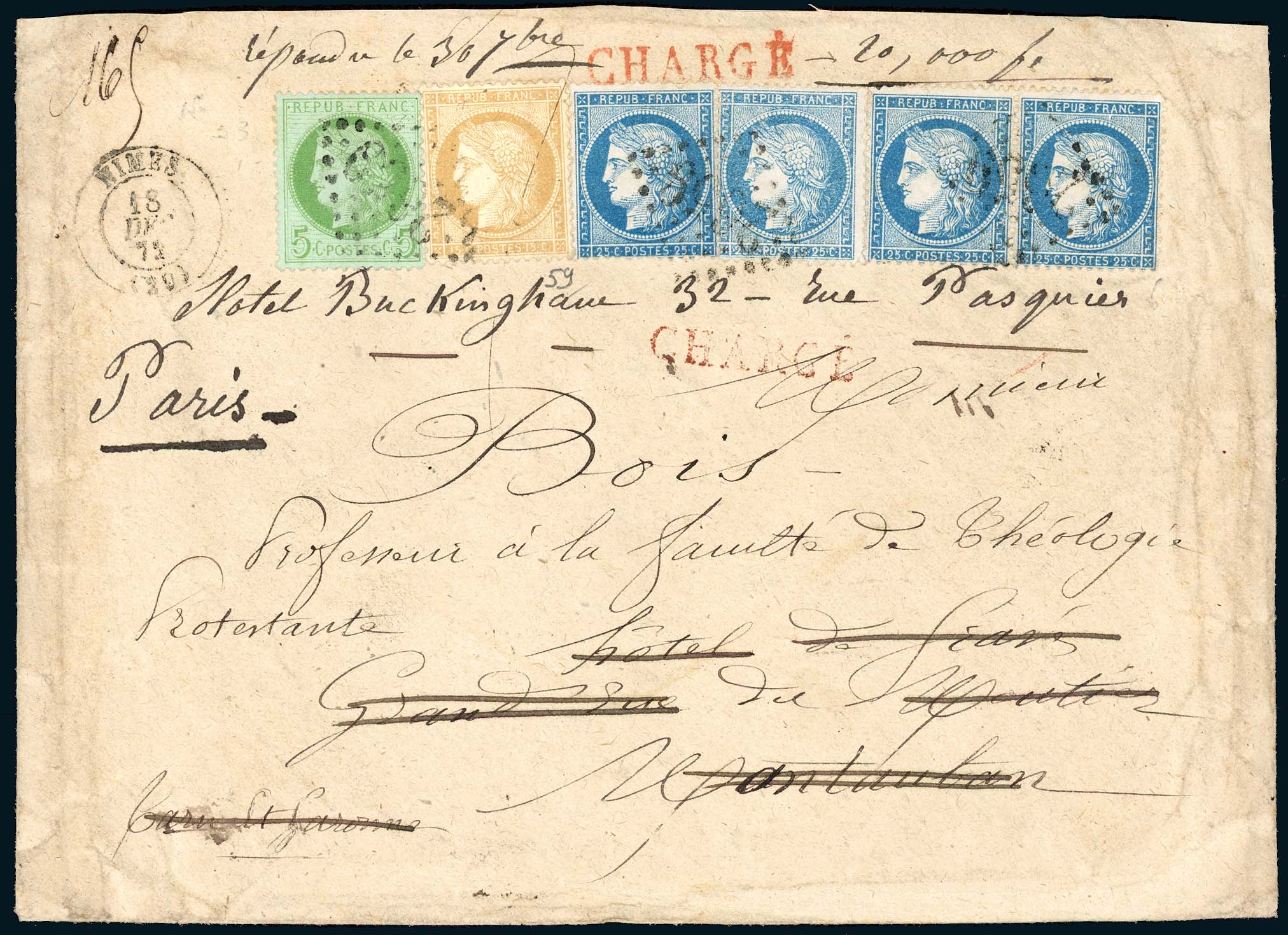 2483 | Lot de 7 lettres oblitérées dans les bureaux du Levant en majorité (Alexandrie, Beyrouth (2), Salonique, Smyrne, constantinople, Alger) de 1857 à 1884, bonne qualité générale, à étudier | 150 | 300 | 150 | enchérir | |