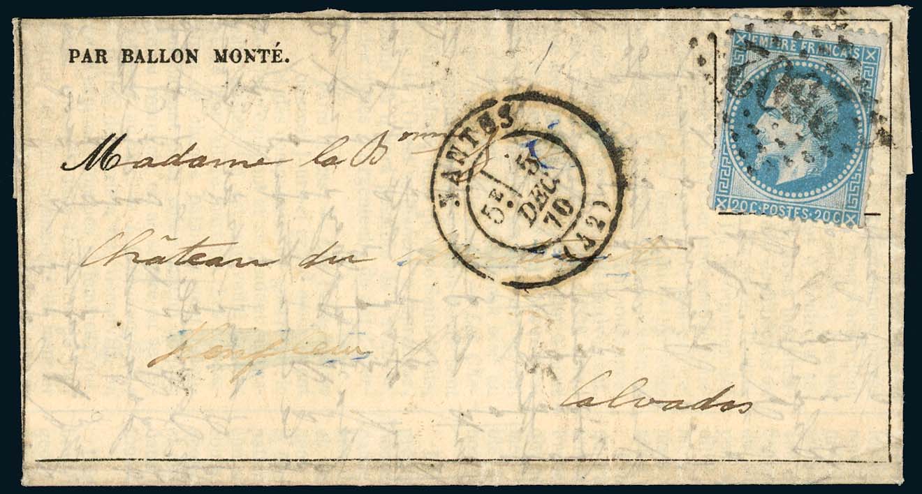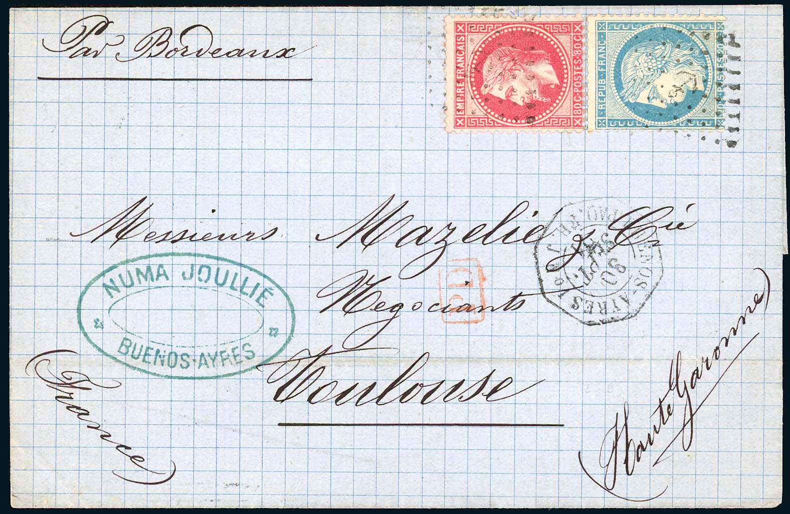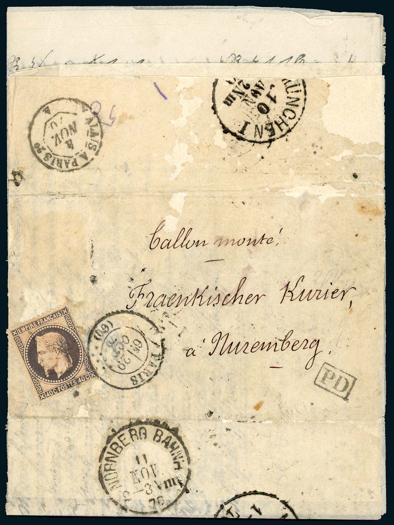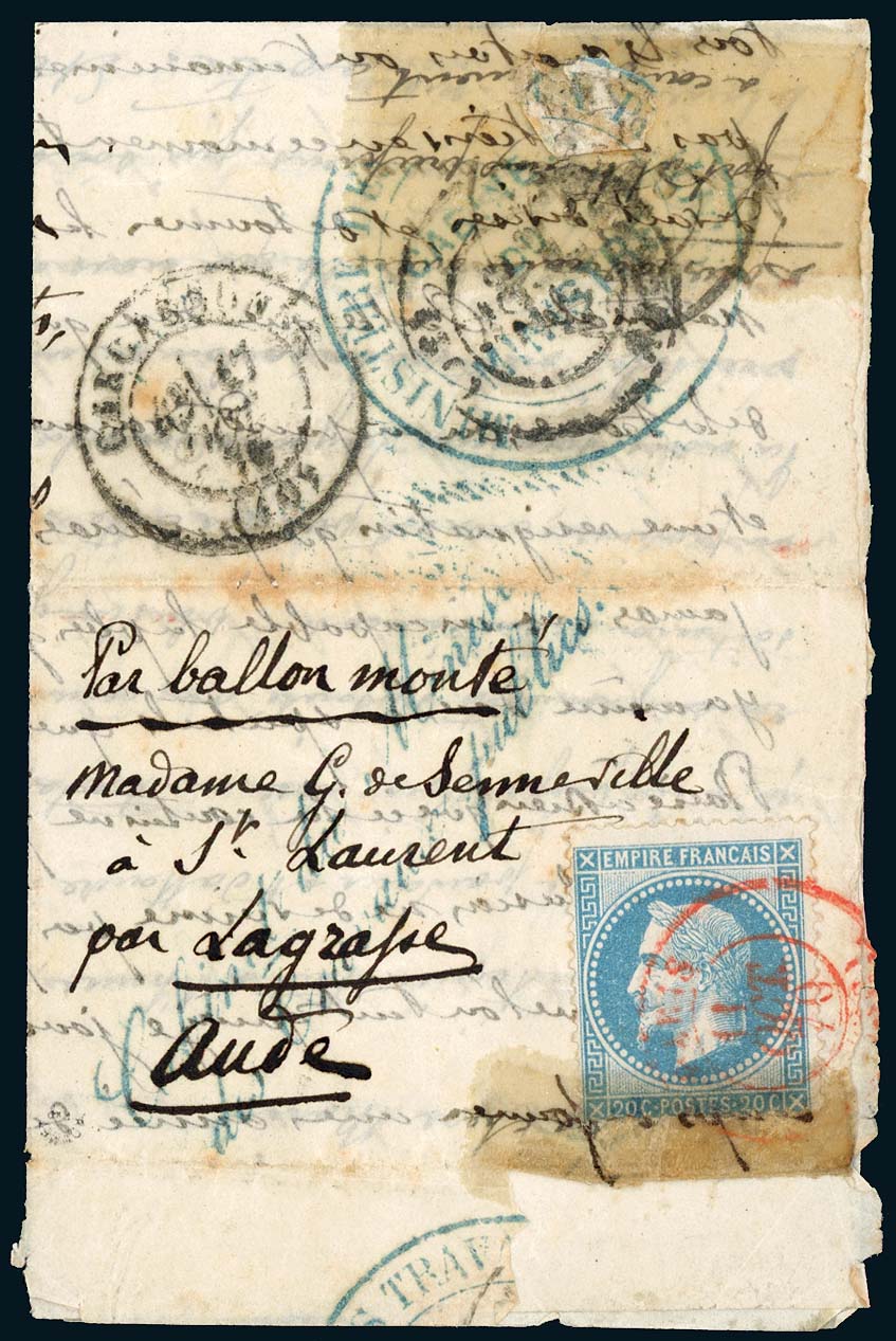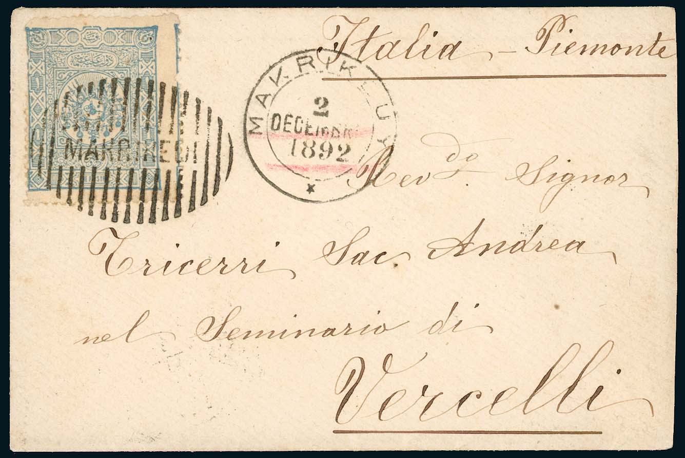 2483 | Lot de 7 lettres oblitérées dans les bureaux du Levant en majorité (Alexandrie, Beyrouth (2), Salonique, Smyrne, constantinople, Alger) de 1857 à 1884, bonne qualité générale, à étudier | 150 | 300 | 150 | enchérir | |