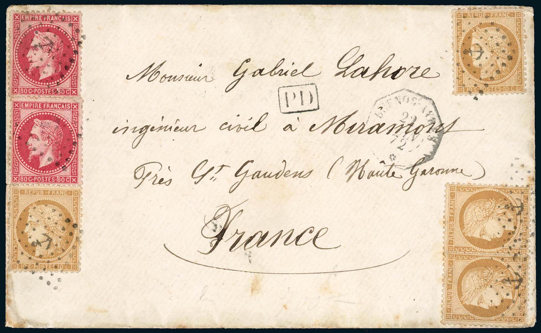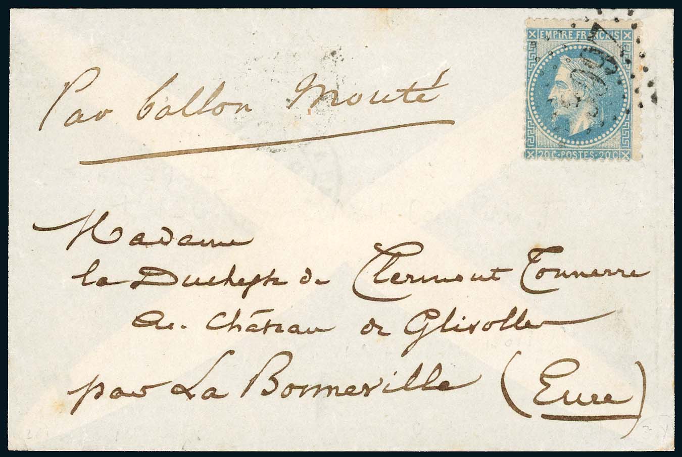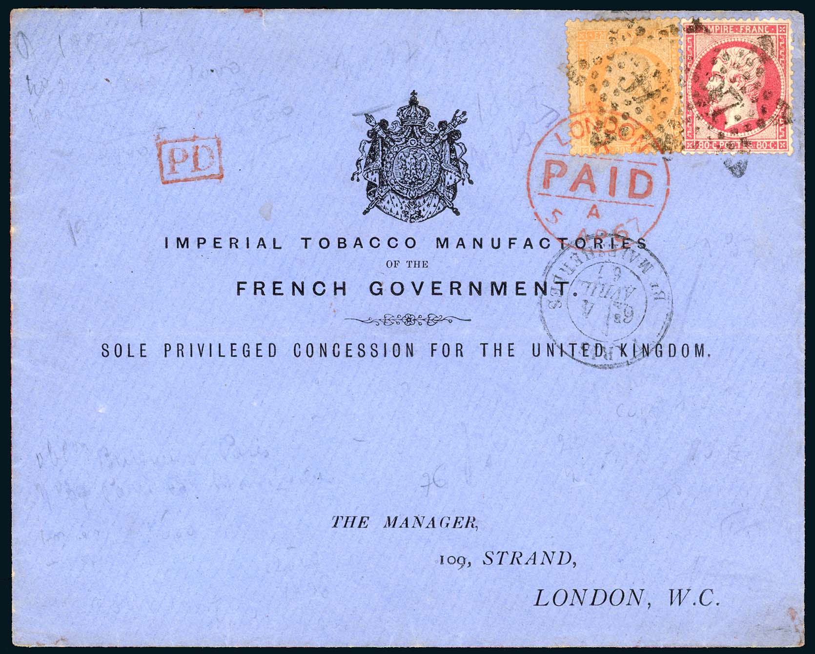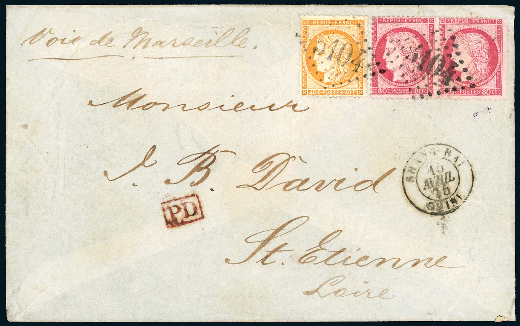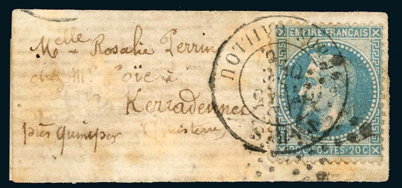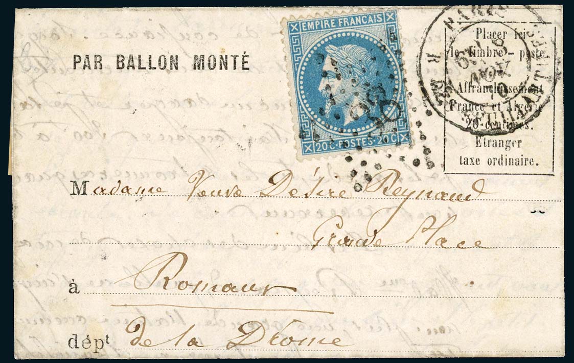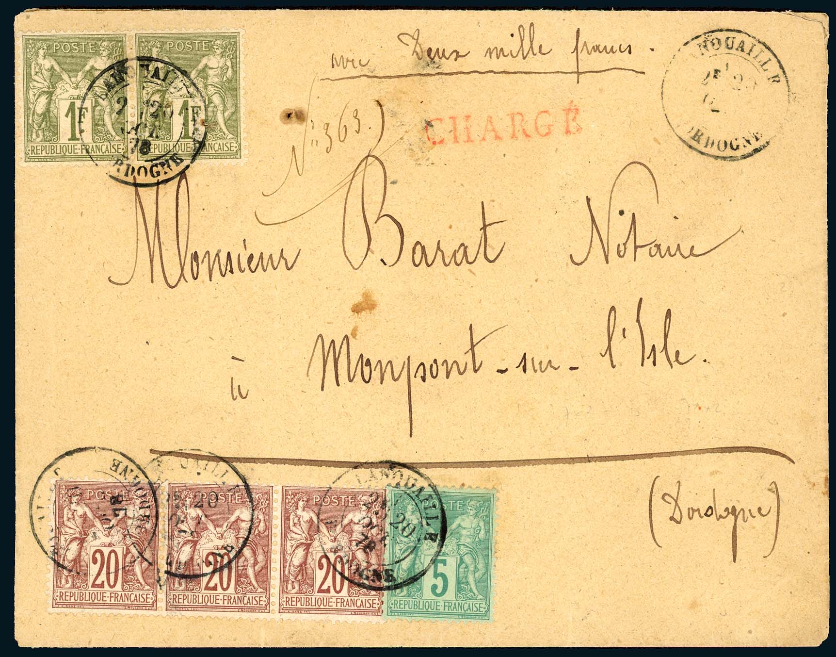 2483 | Lot de 7 lettres oblitérées dans les bureaux du Levant en majorité (Alexandrie, Beyrouth (2), Salonique, Smyrne, constantinople, Alger) de 1857 à 1884, bonne qualité générale, à étudier | 150 | 300 | 150 | enchérir | |