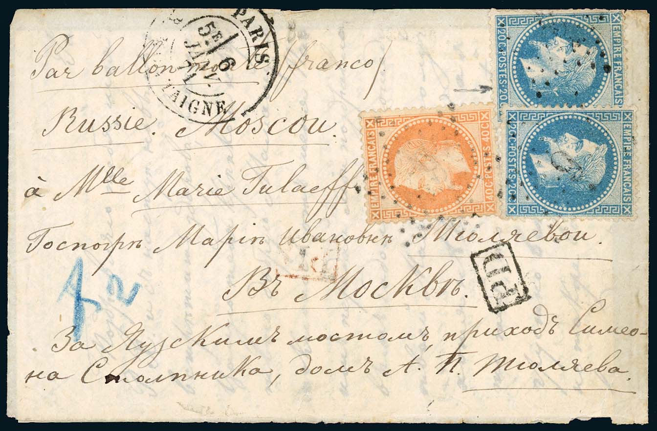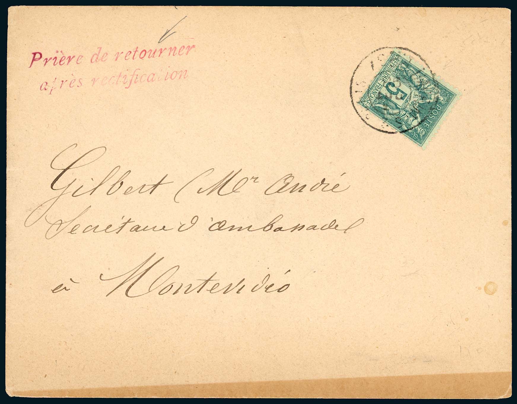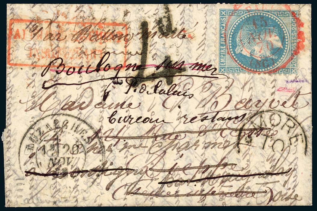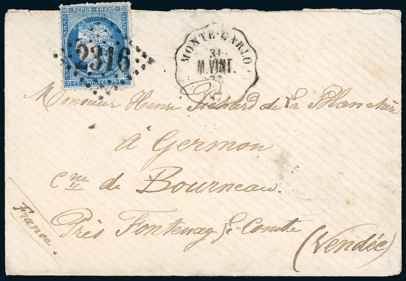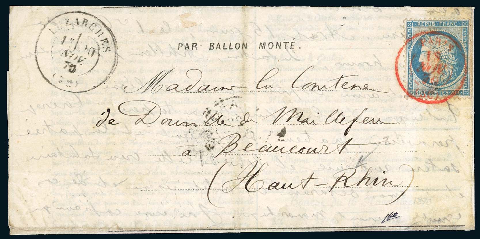 2483 | Lot de 7 lettres oblitérées dans les bureaux du Levant en majorité (Alexandrie, Beyrouth (2), Salonique, Smyrne, constantinople, Alger) de 1857 à 1884, bonne qualité générale, à étudier | 150 | 300 | 150 | enchérir | |