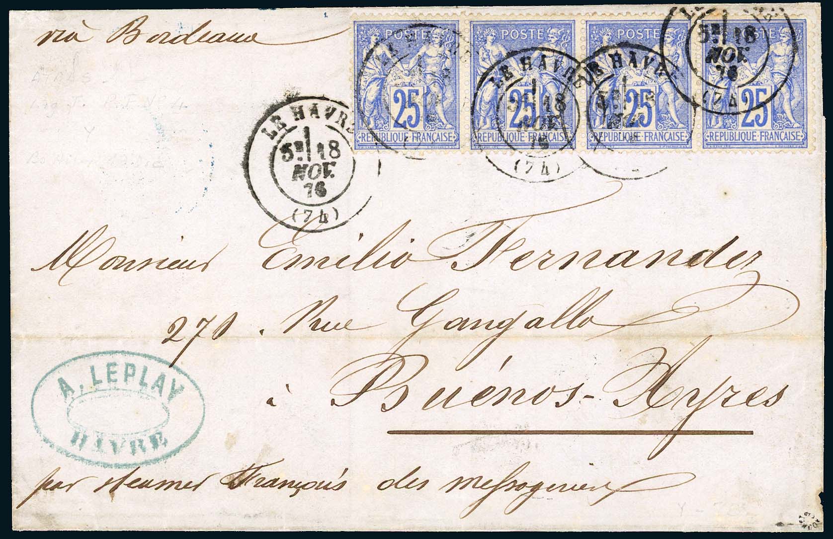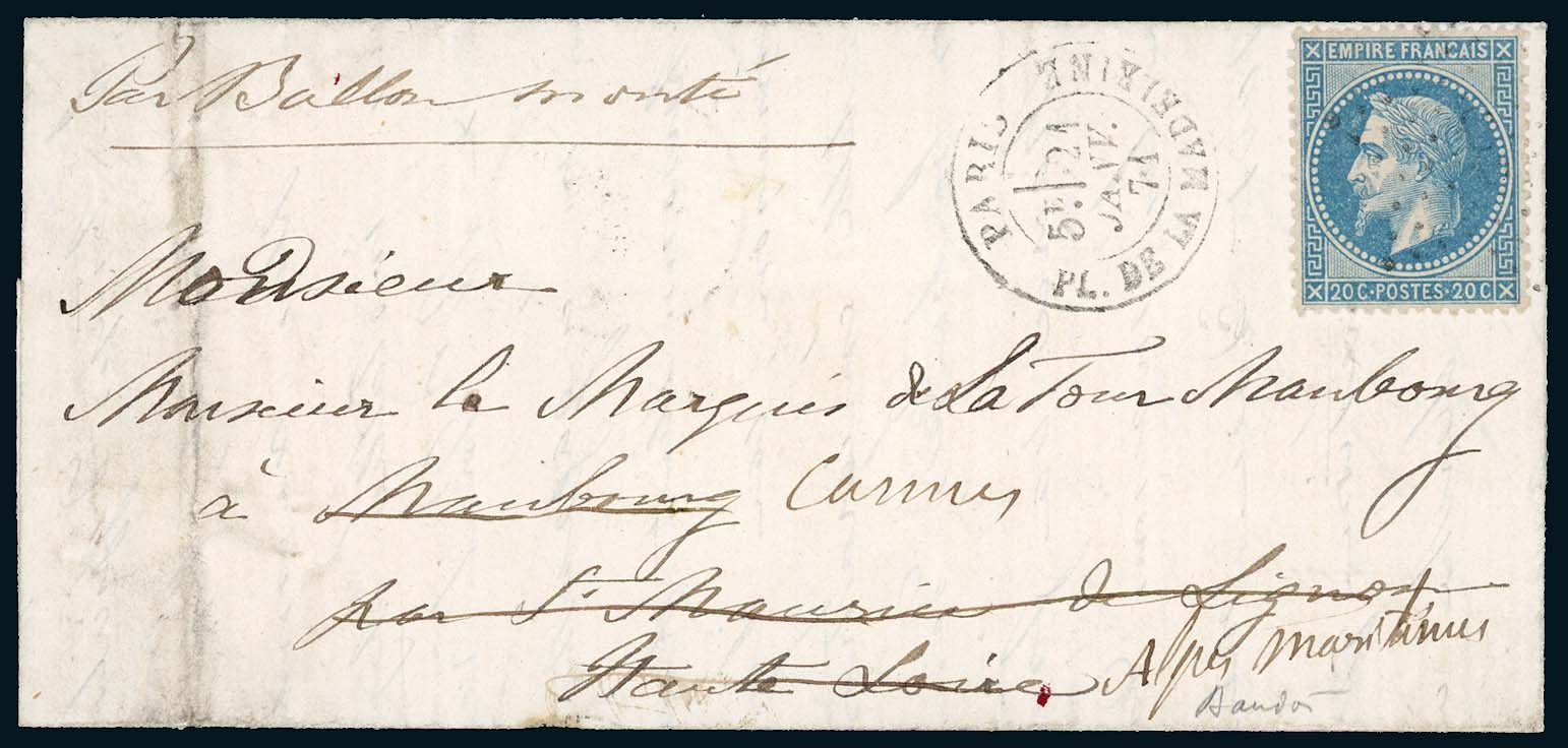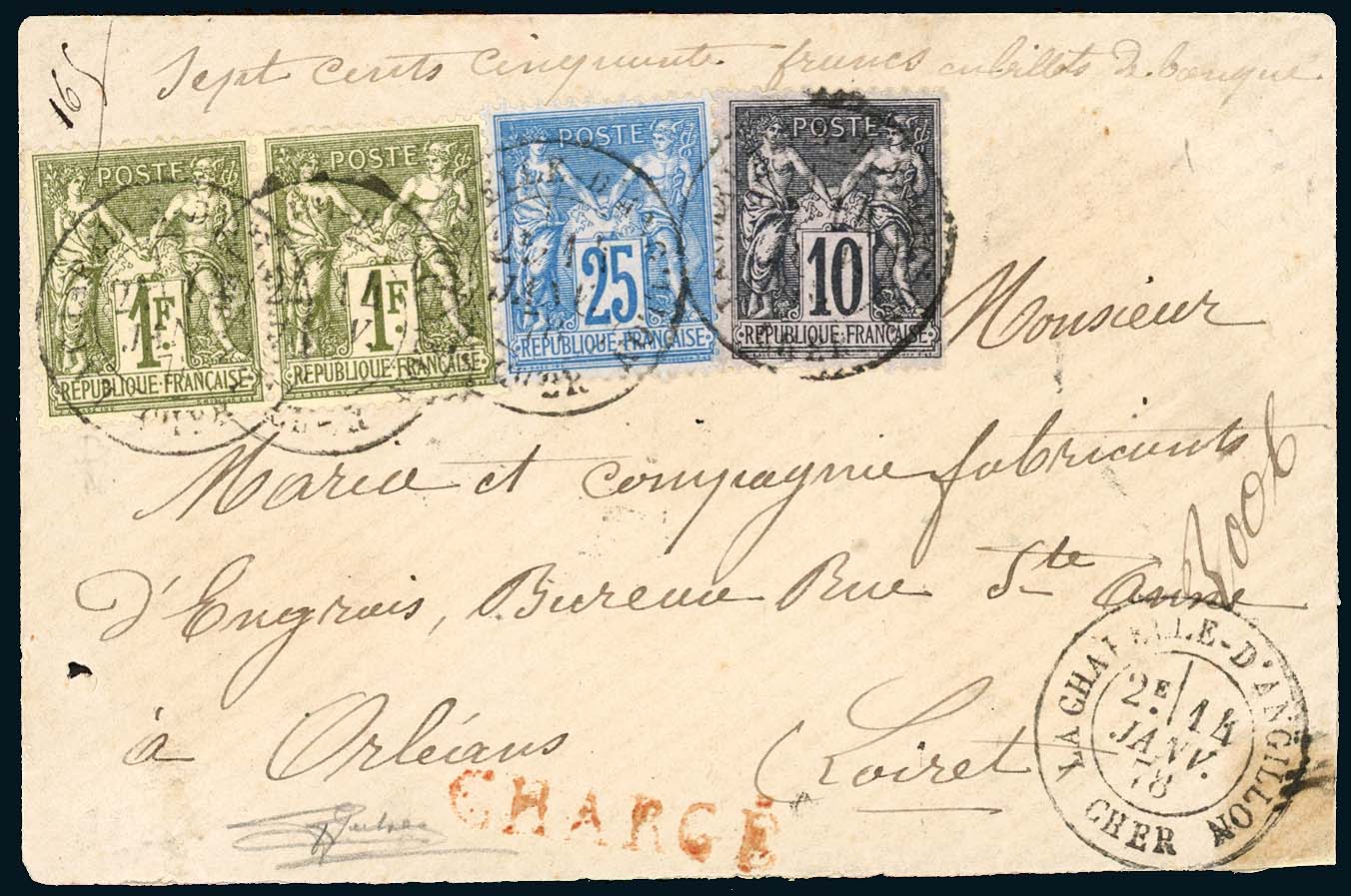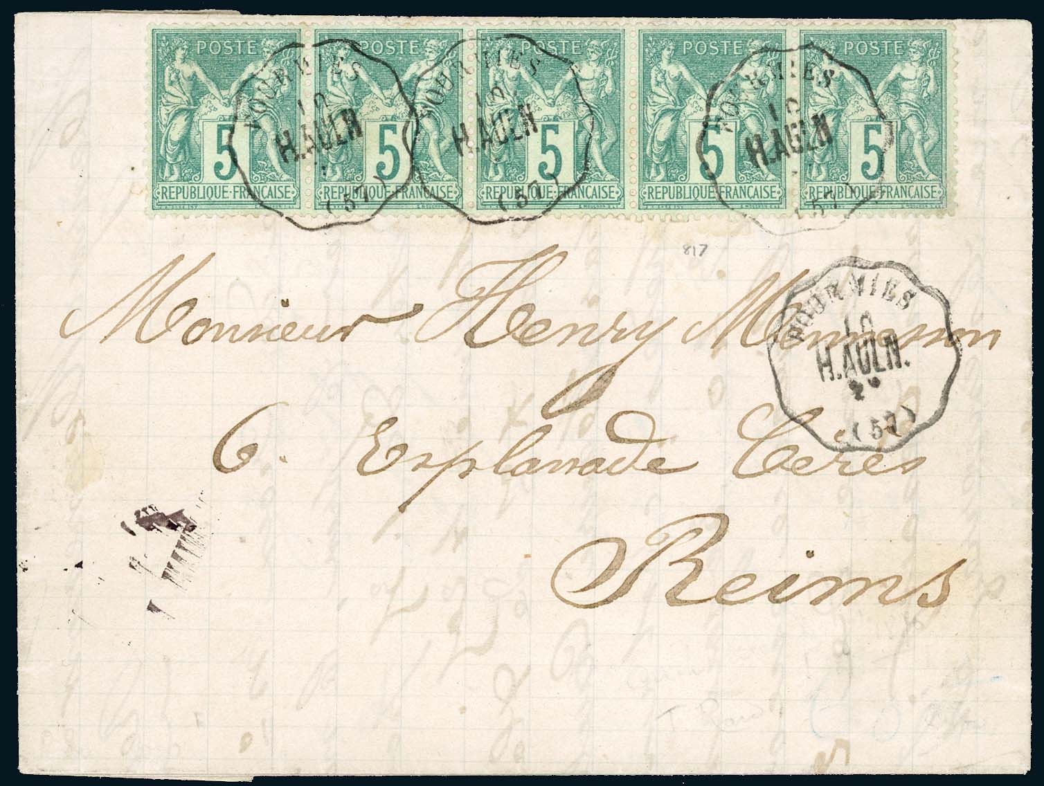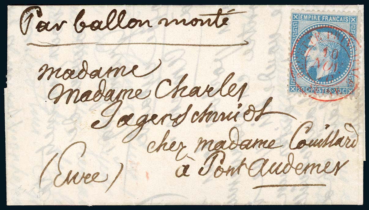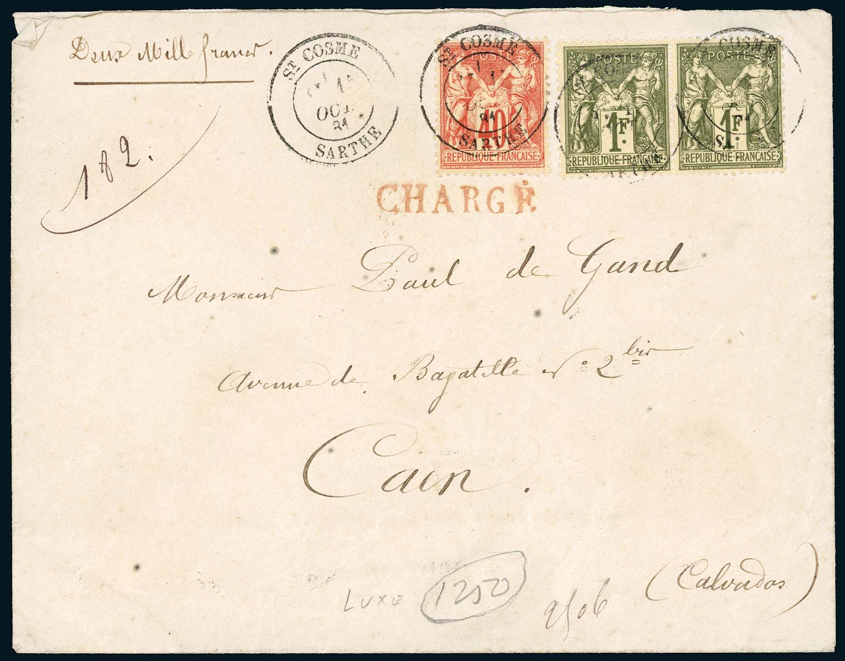 2483 | Lot de 7 lettres oblitérées dans les bureaux du Levant en majorité (Alexandrie, Beyrouth (2), Salonique, Smyrne, constantinople, Alger) de 1857 à 1884, bonne qualité générale, à étudier | 150 | 300 | 150 | enchérir | |