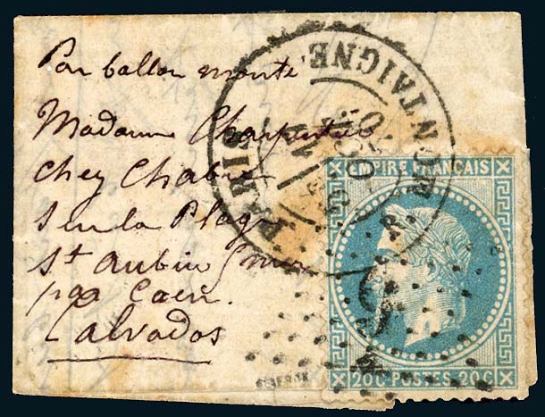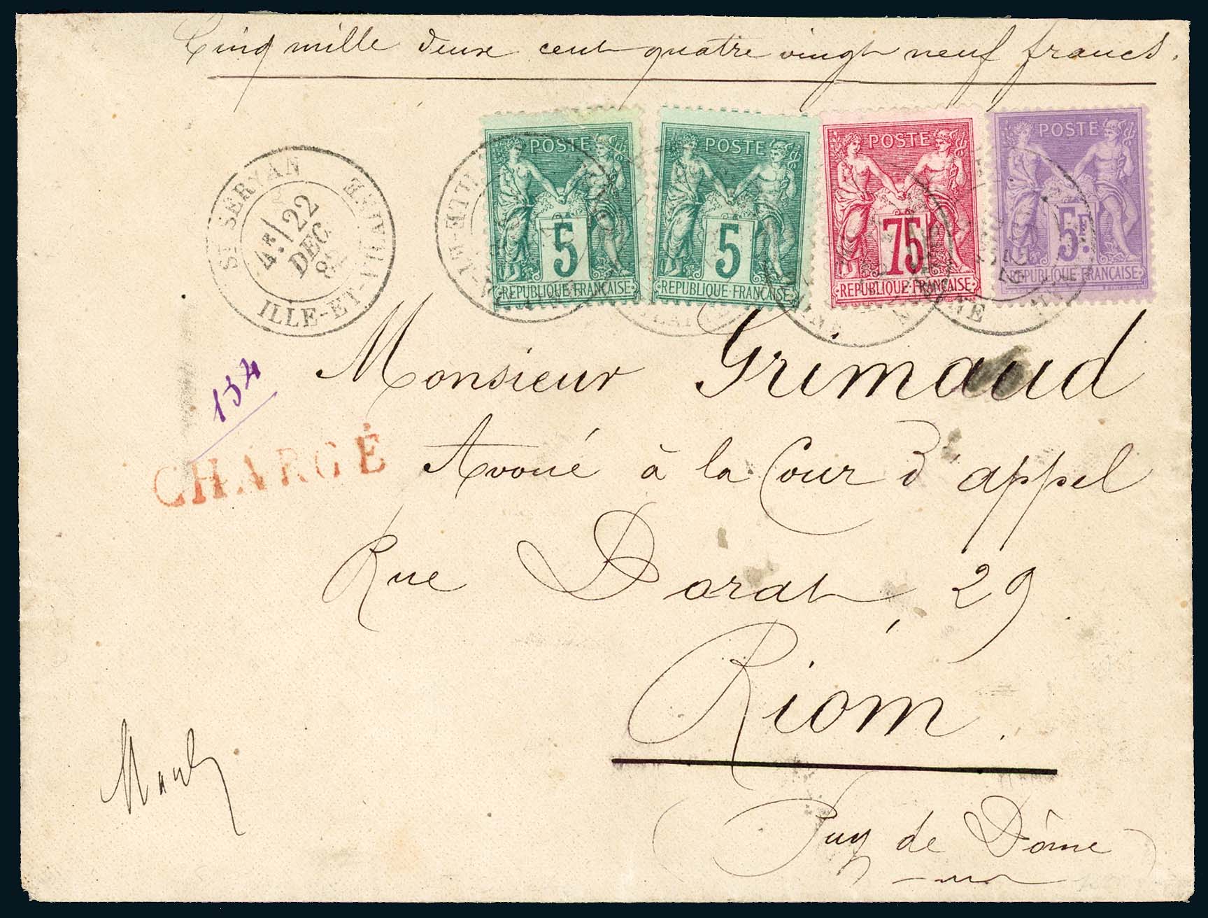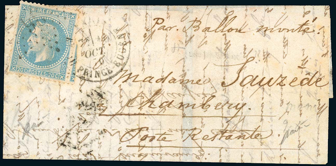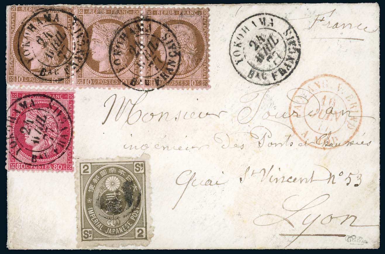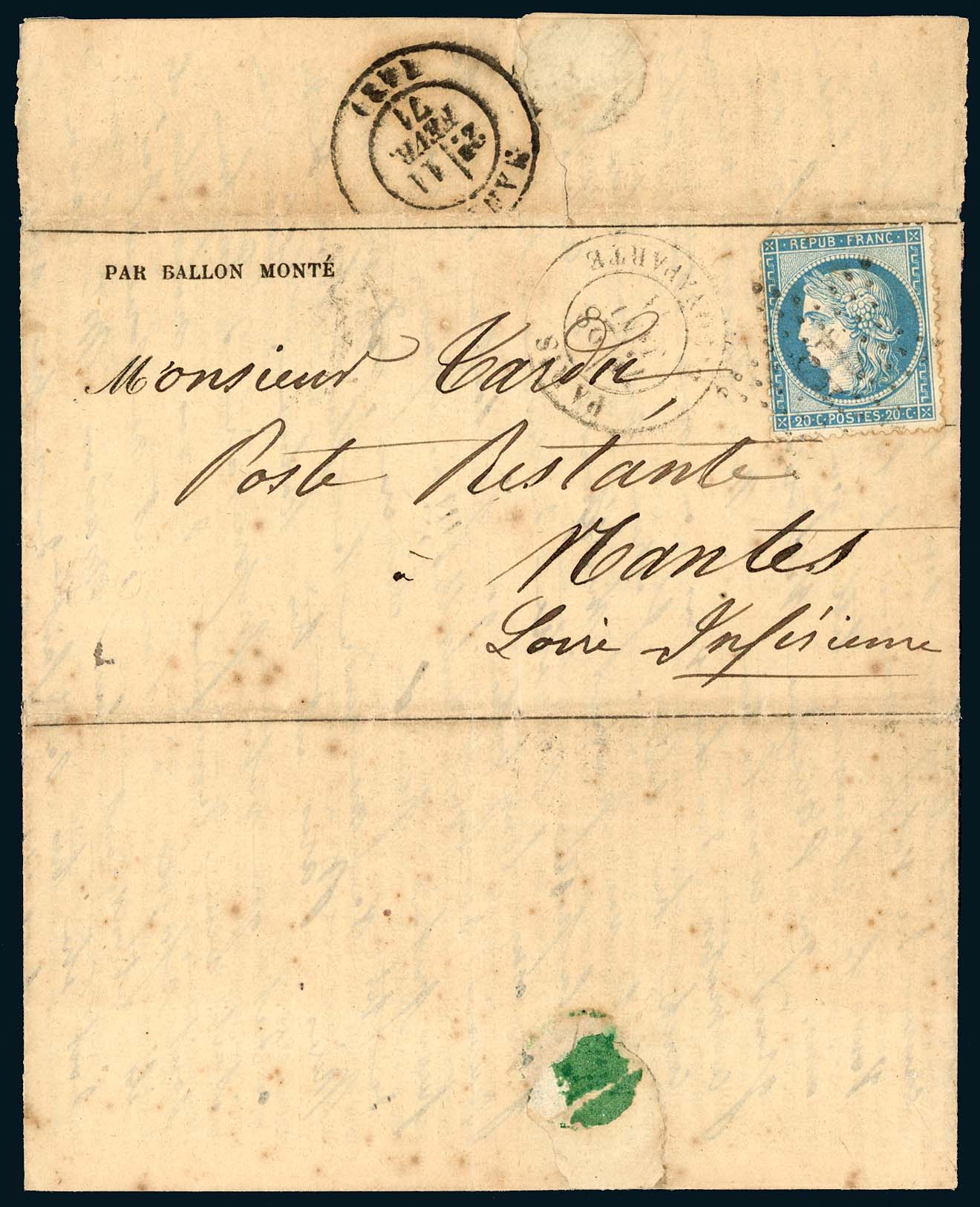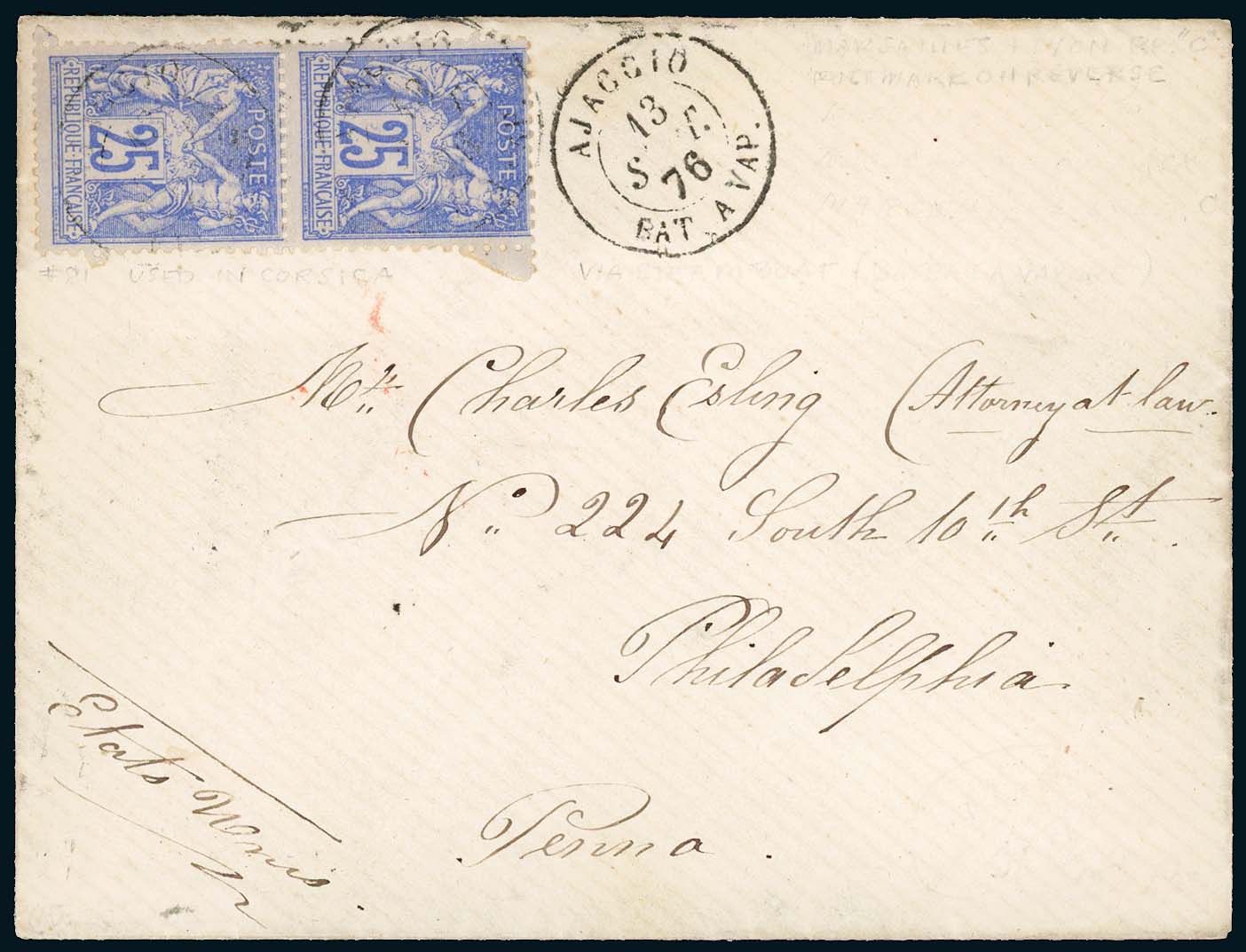 2483 | Lot de 7 lettres oblitérées dans les bureaux du Levant en majorité (Alexandrie, Beyrouth (2), Salonique, Smyrne, constantinople, Alger) de 1857 à 1884, bonne qualité générale, à étudier | 150 | 300 | 150 | enchérir | |