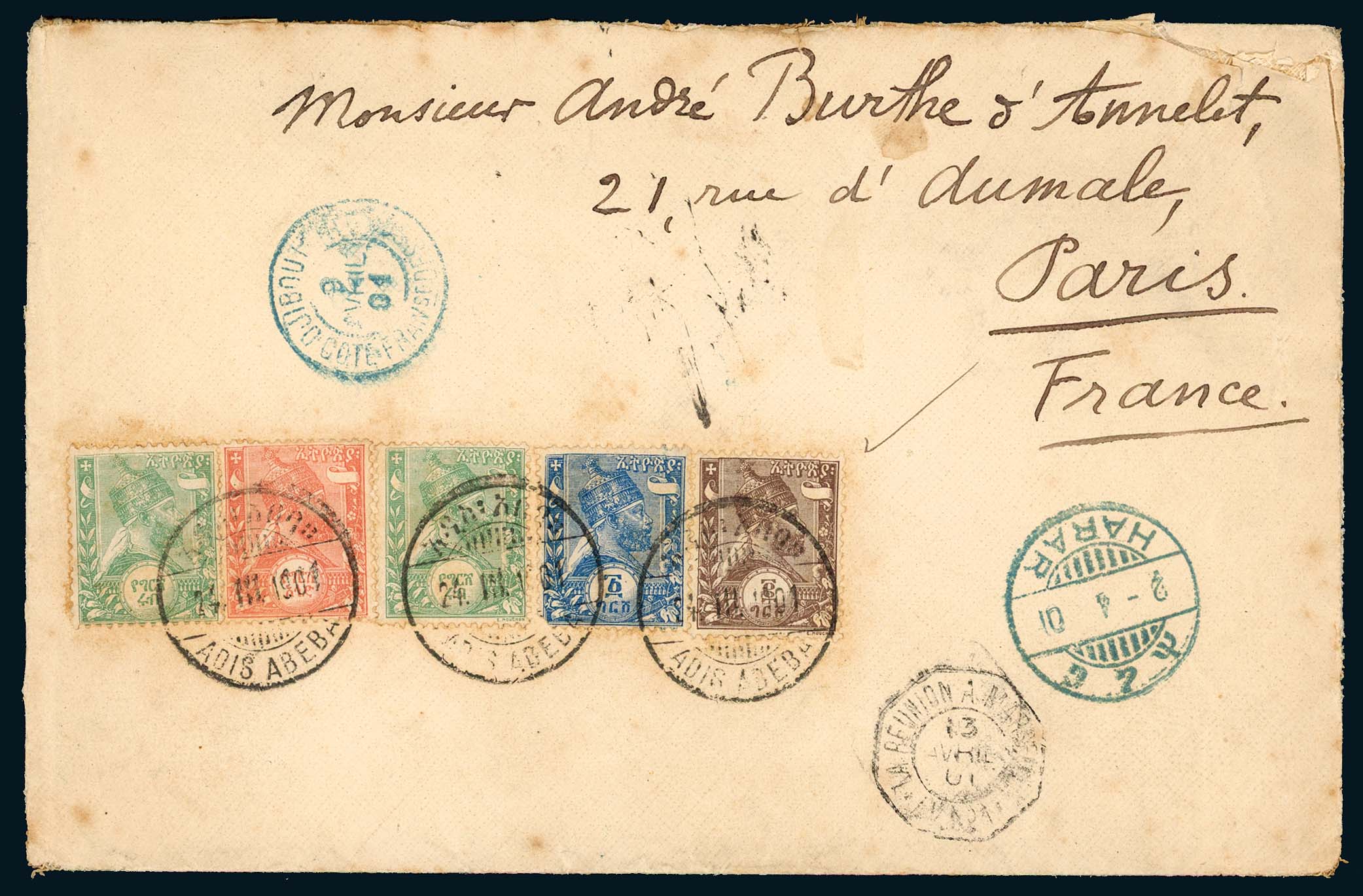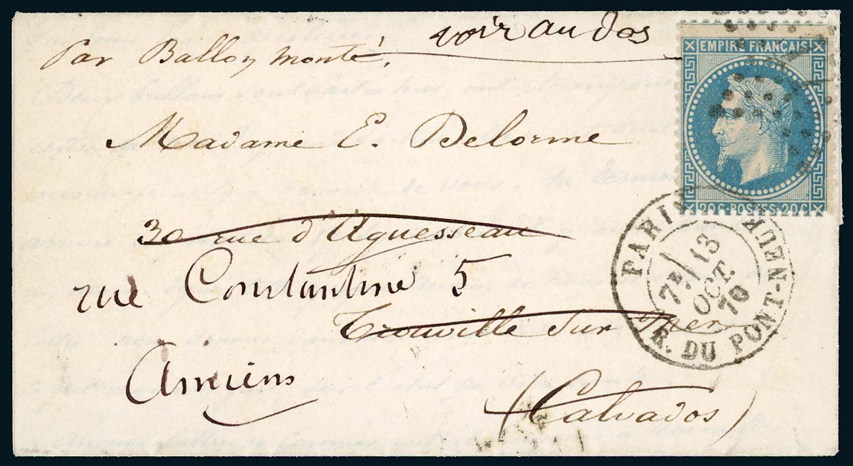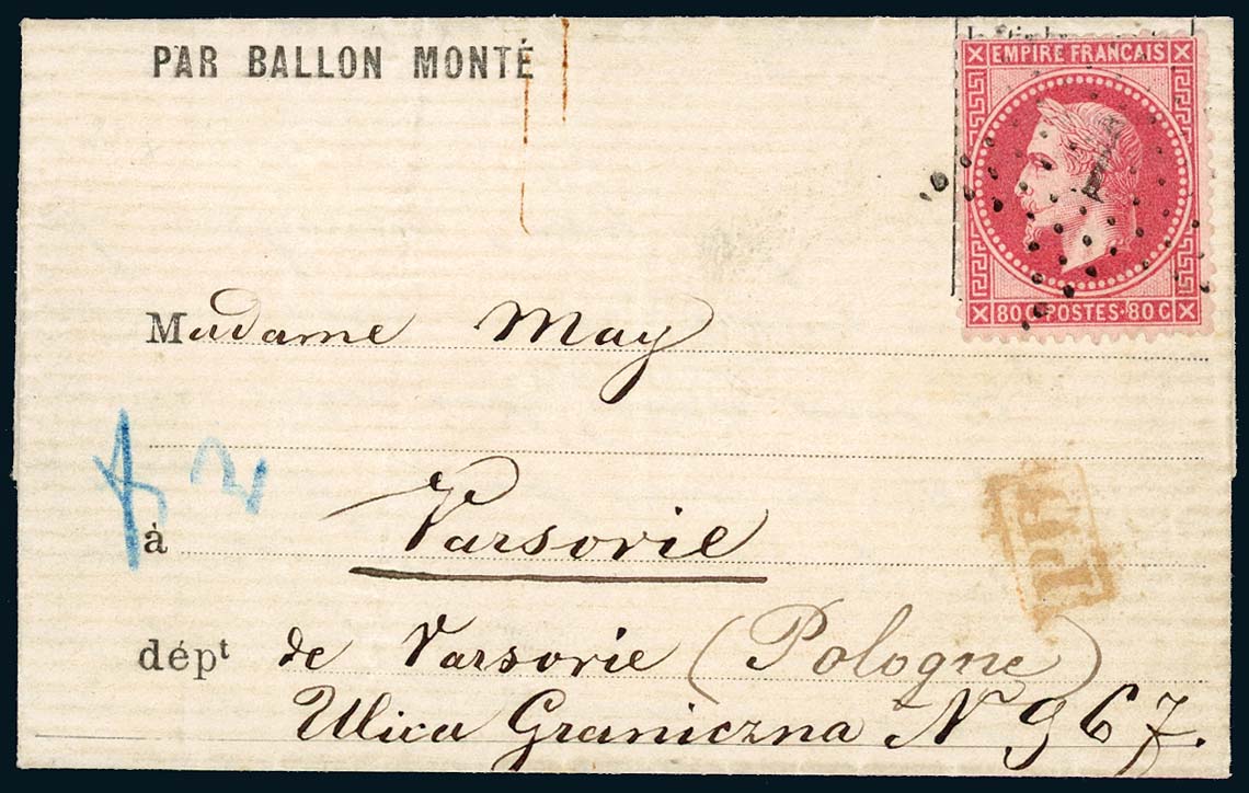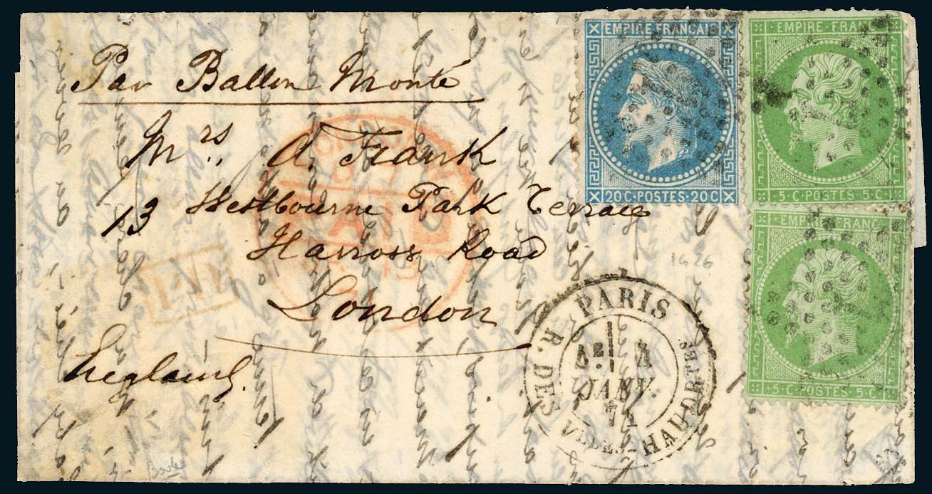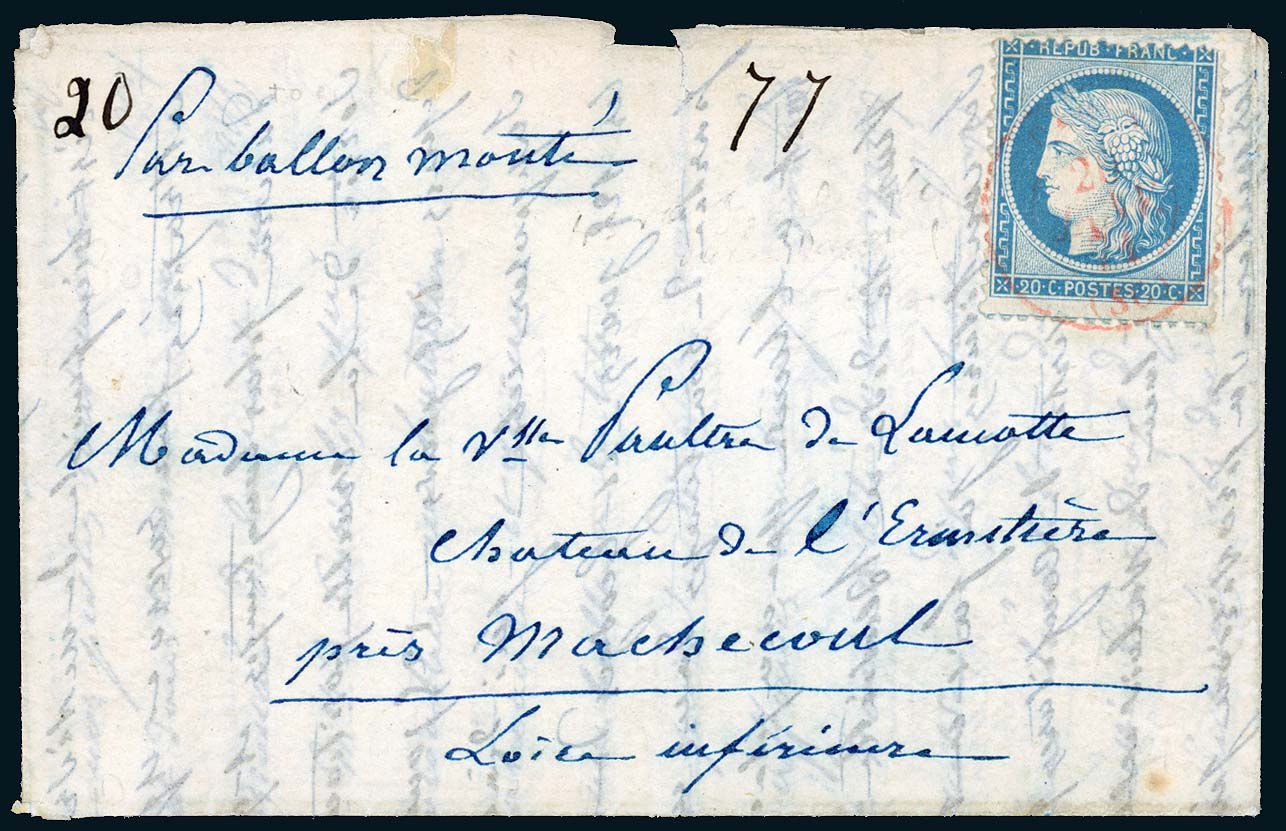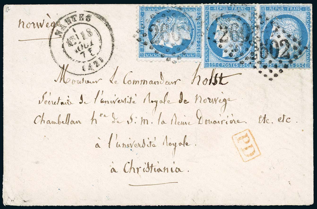 2483 | Lot de 7 lettres oblitérées dans les bureaux du Levant en majorité (Alexandrie, Beyrouth (2), Salonique, Smyrne, constantinople, Alger) de 1857 à 1884, bonne qualité générale, à étudier | 150 | 300 | 150 | enchérir | |