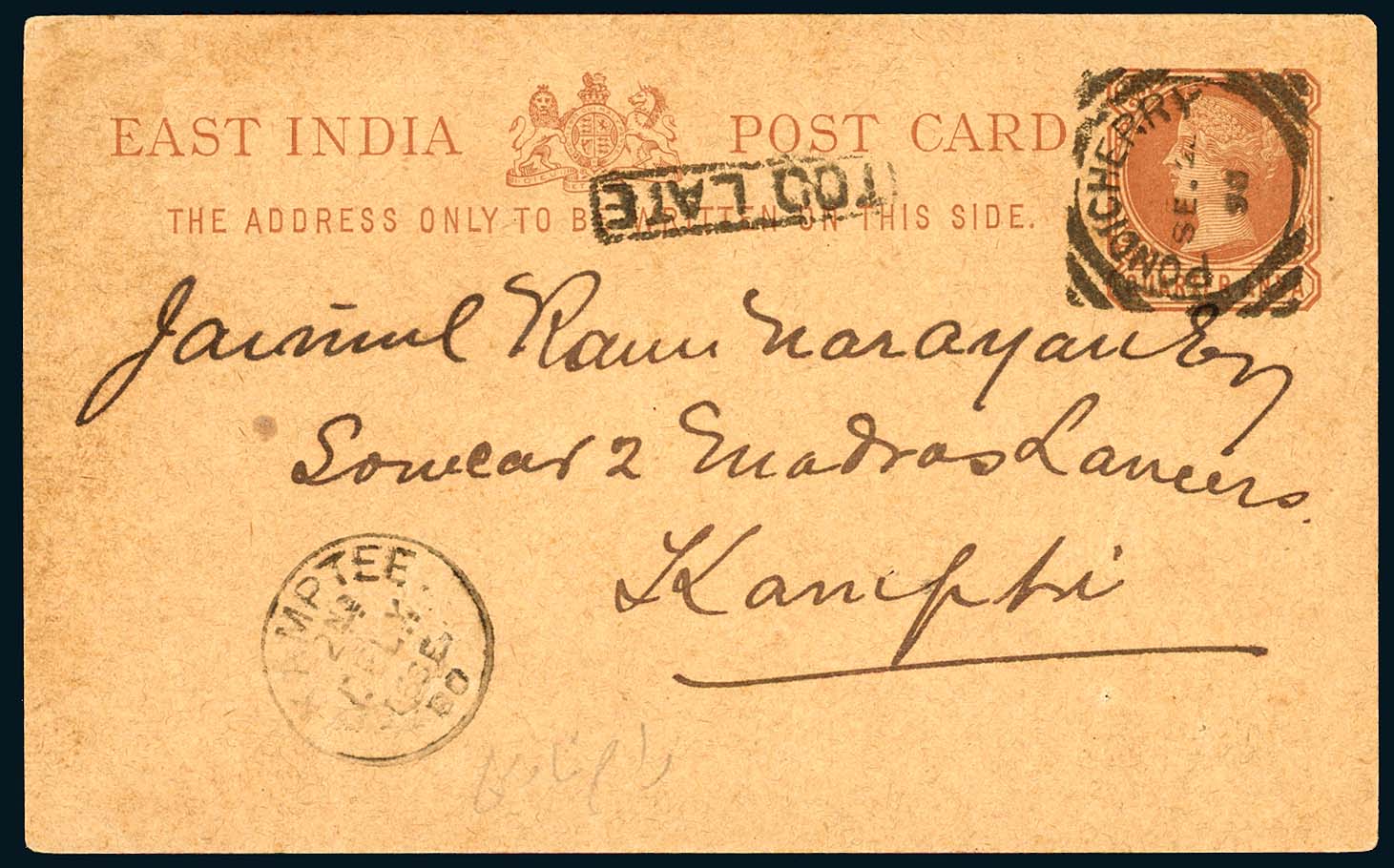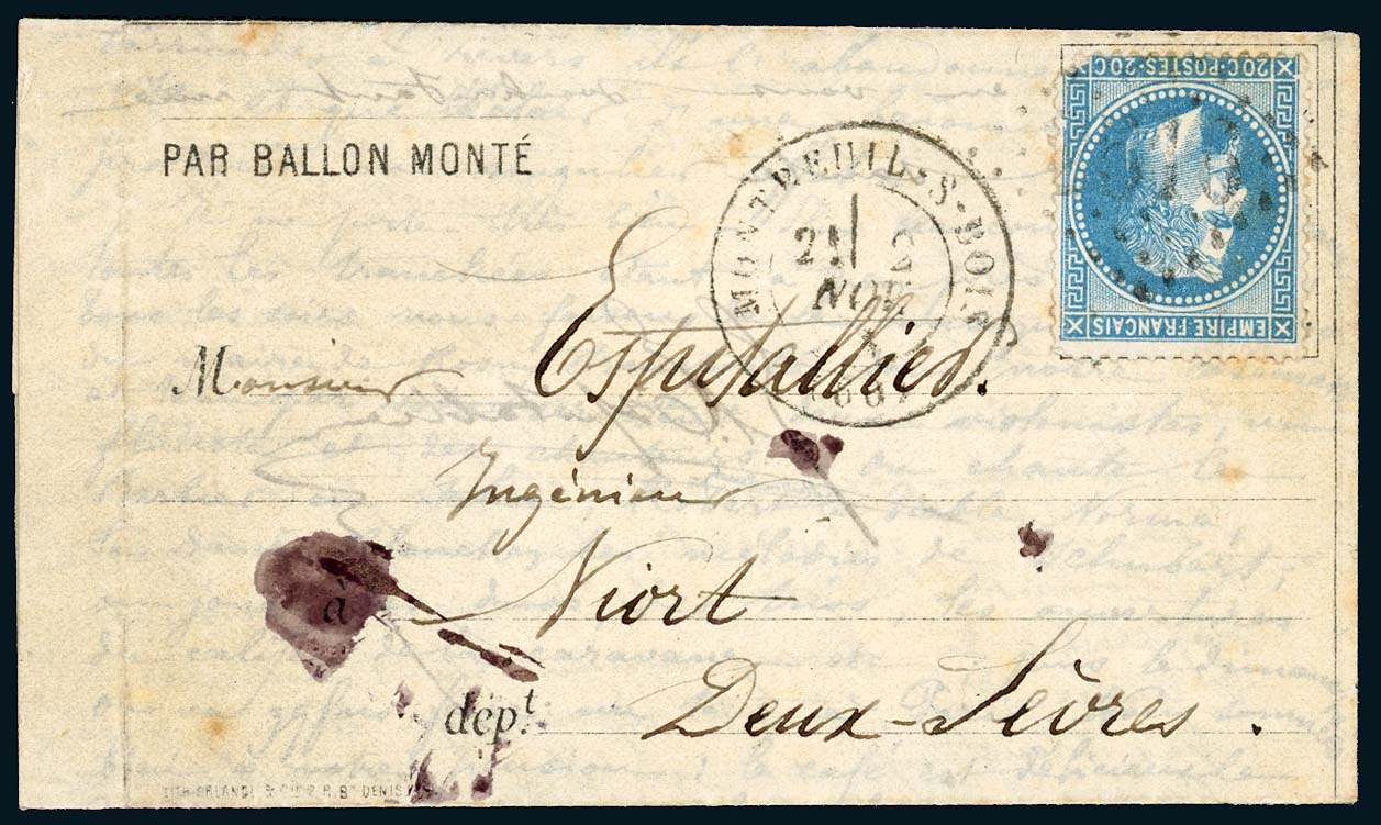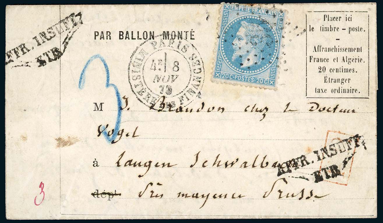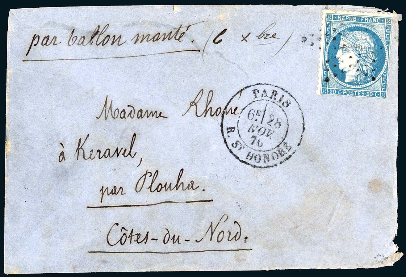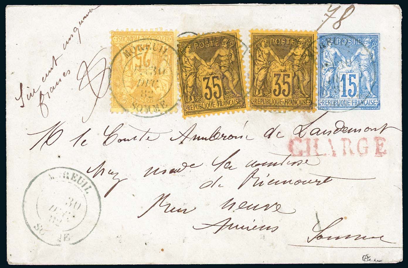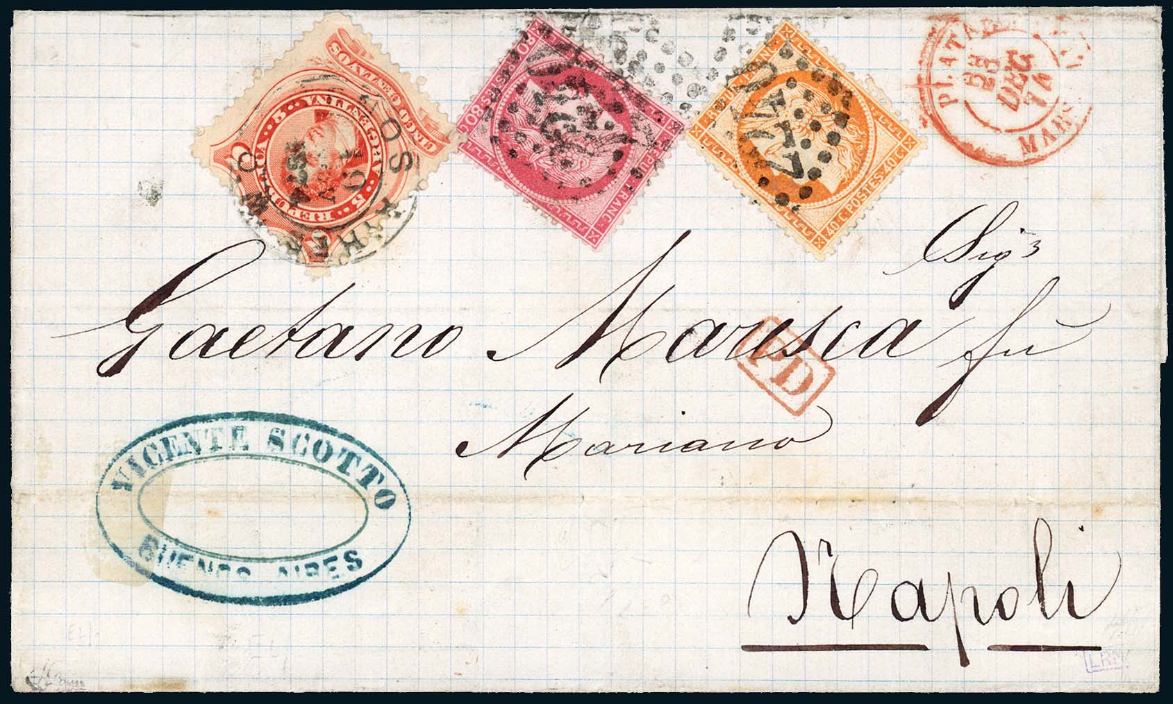 2483 | Lot de 7 lettres oblitérées dans les bureaux du Levant en majorité (Alexandrie, Beyrouth (2), Salonique, Smyrne, constantinople, Alger) de 1857 à 1884, bonne qualité générale, à étudier | 150 | 300 | 150 | enchérir | |