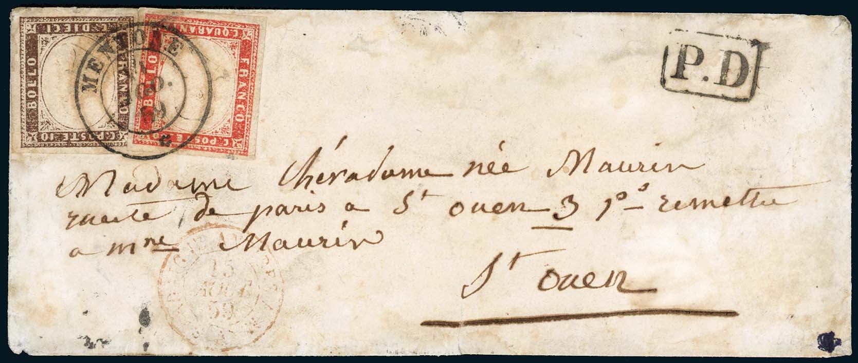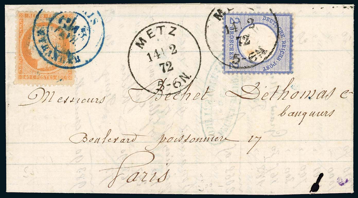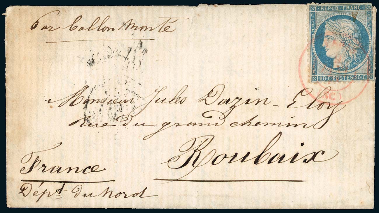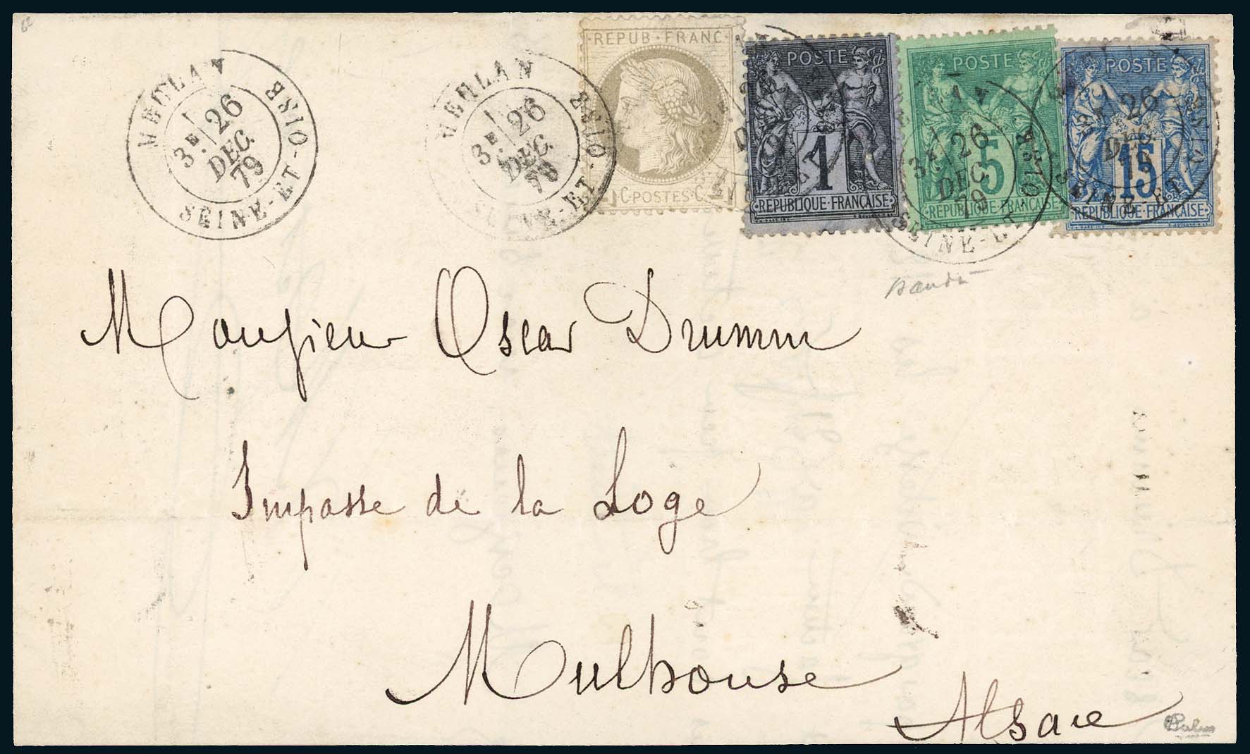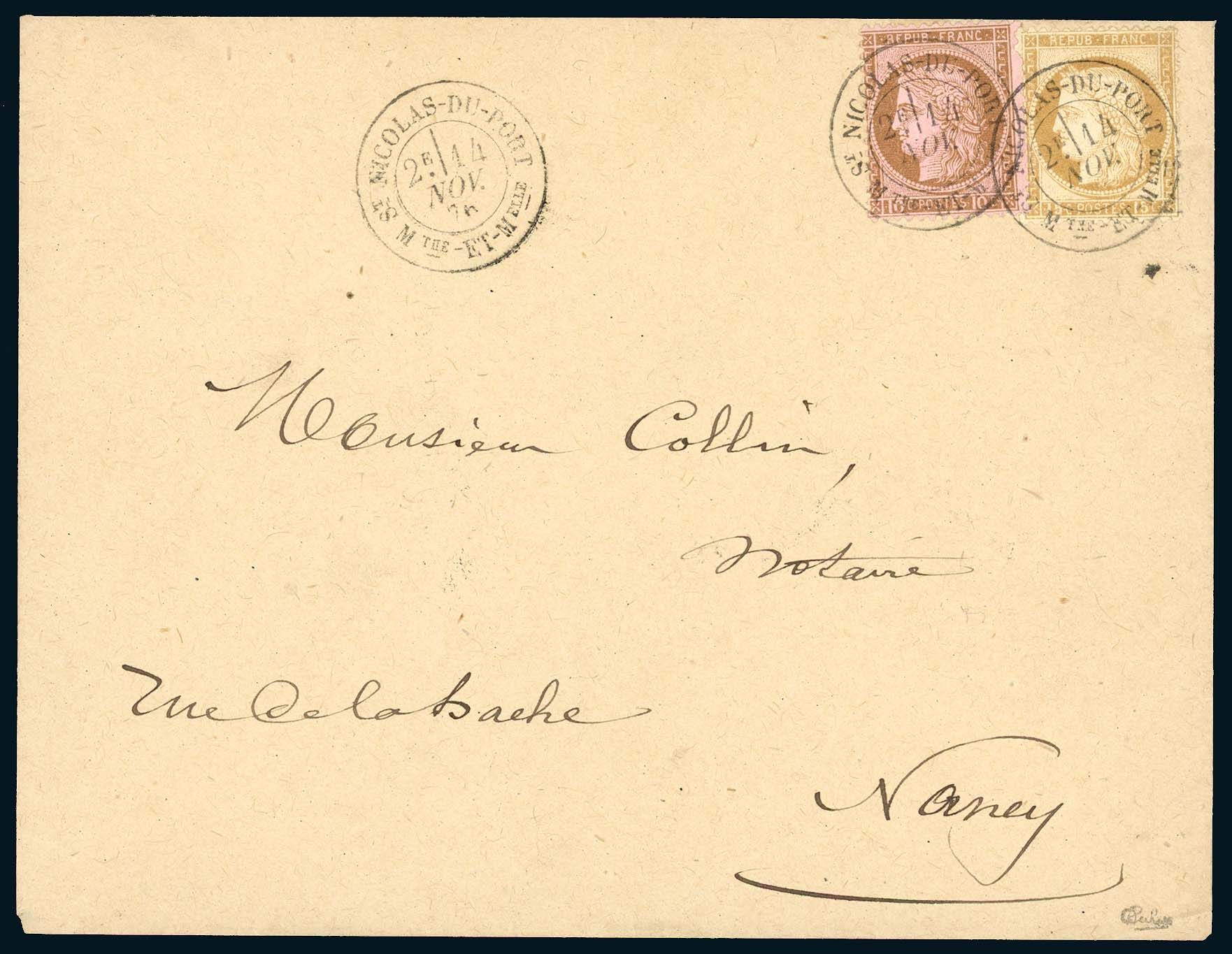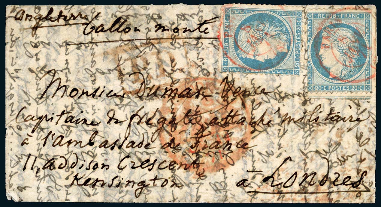 53 | N°3 OB C. MUTZIG sur enveloppe (légèrement consolidée) à destination de Paris avec C. PARIS au verso 1849 Utilisation très tardive du cachet à date pour oblitérer les timbres, signé Calves et Brun TB | 180 | 250 | 180 | enchérir | |