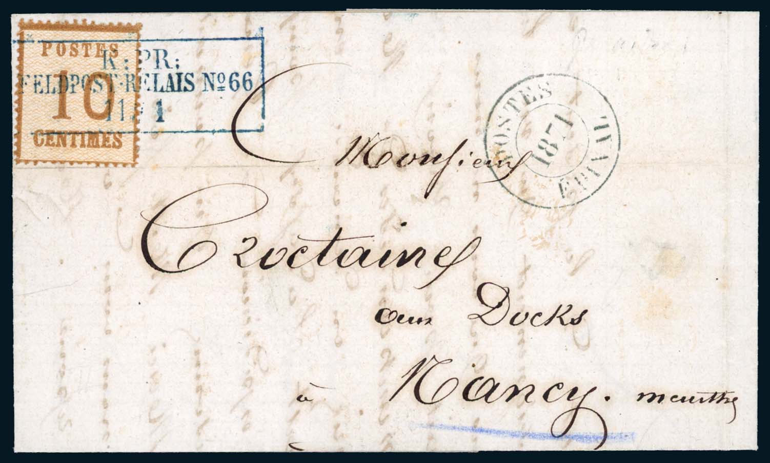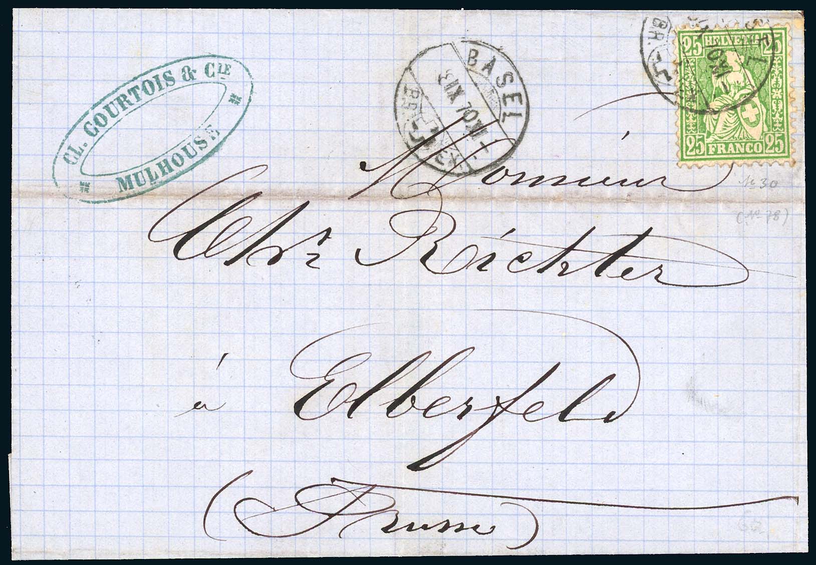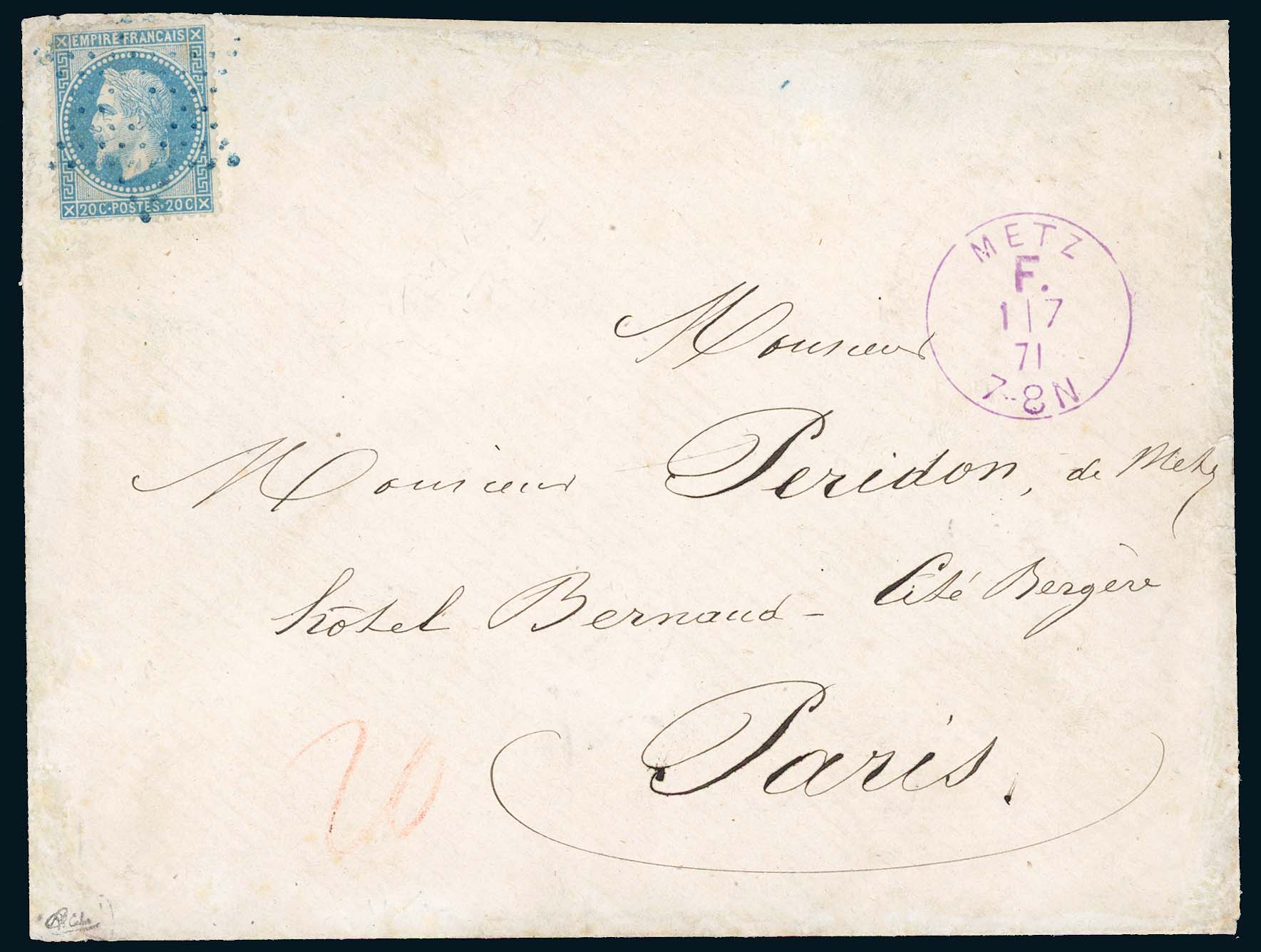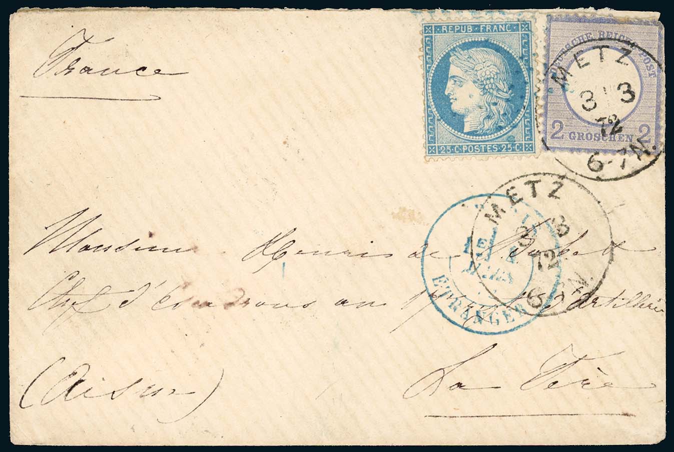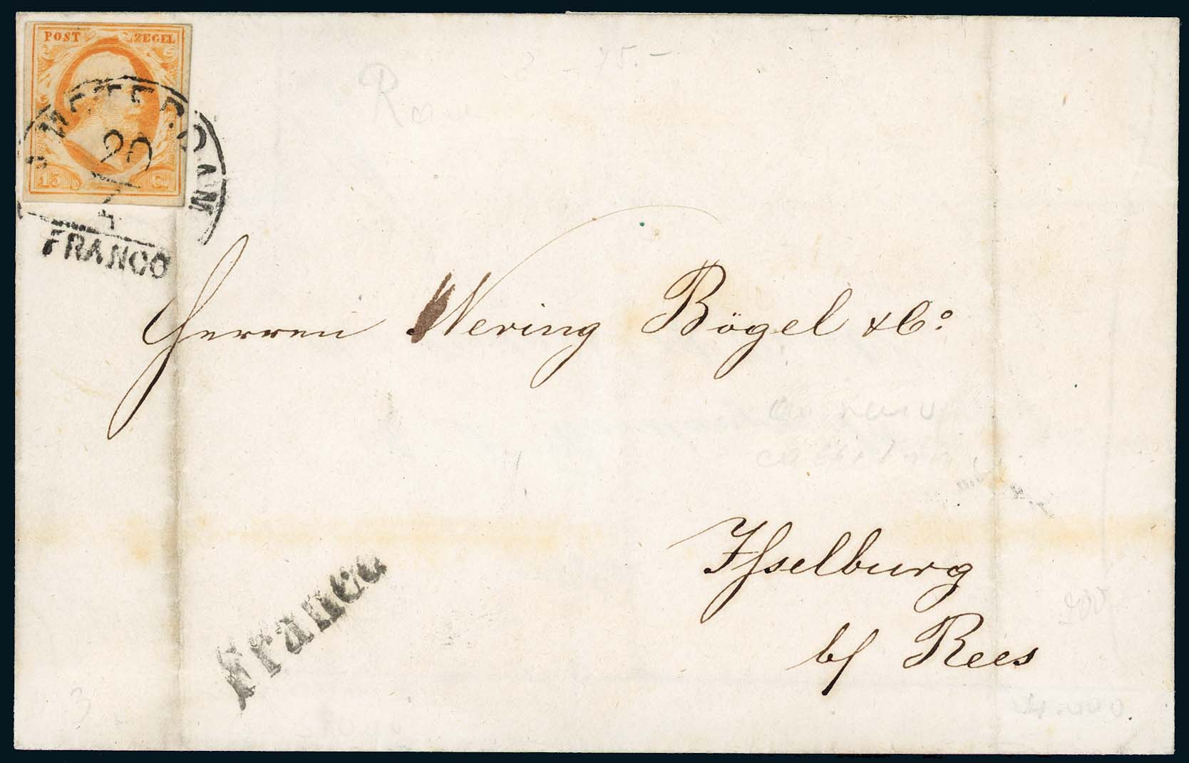 53 | N°3 OB C. MUTZIG sur enveloppe (légèrement consolidée) à destination de Paris avec C. PARIS au verso 1849 Utilisation très tardive du cachet à date pour oblitérer les timbres, signé Calves et Brun TB | 180 | 250 | 180 | enchérir | |