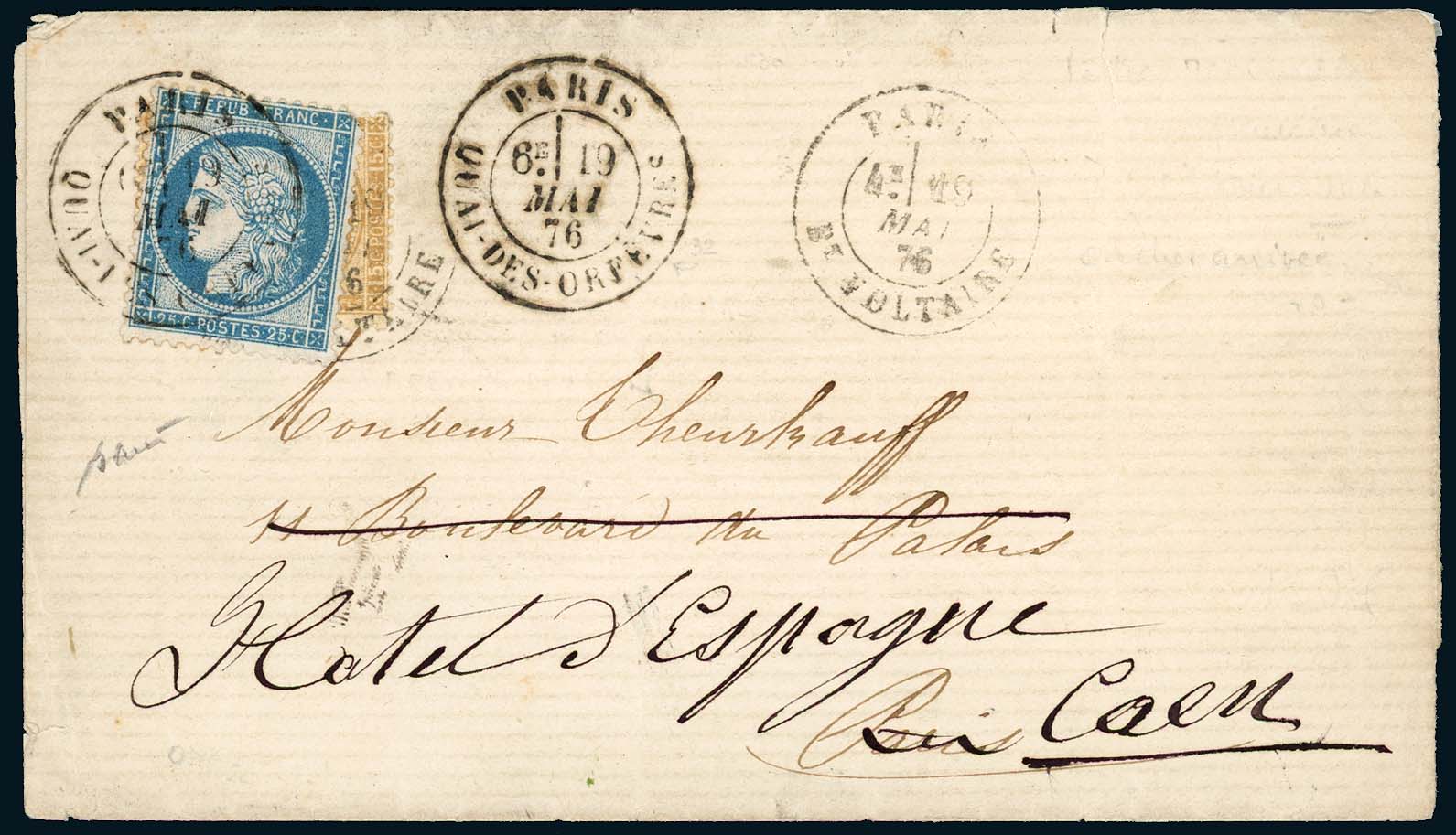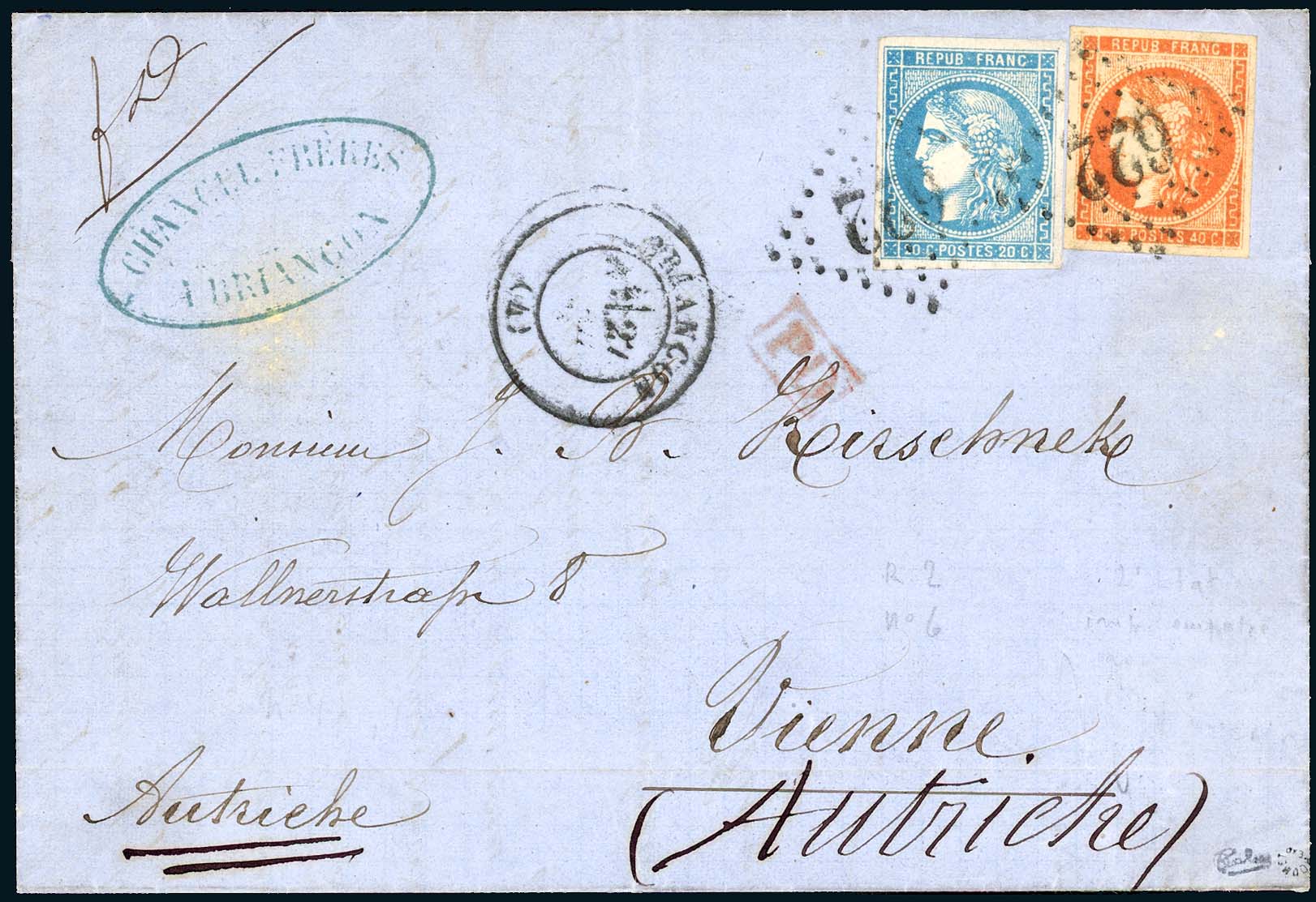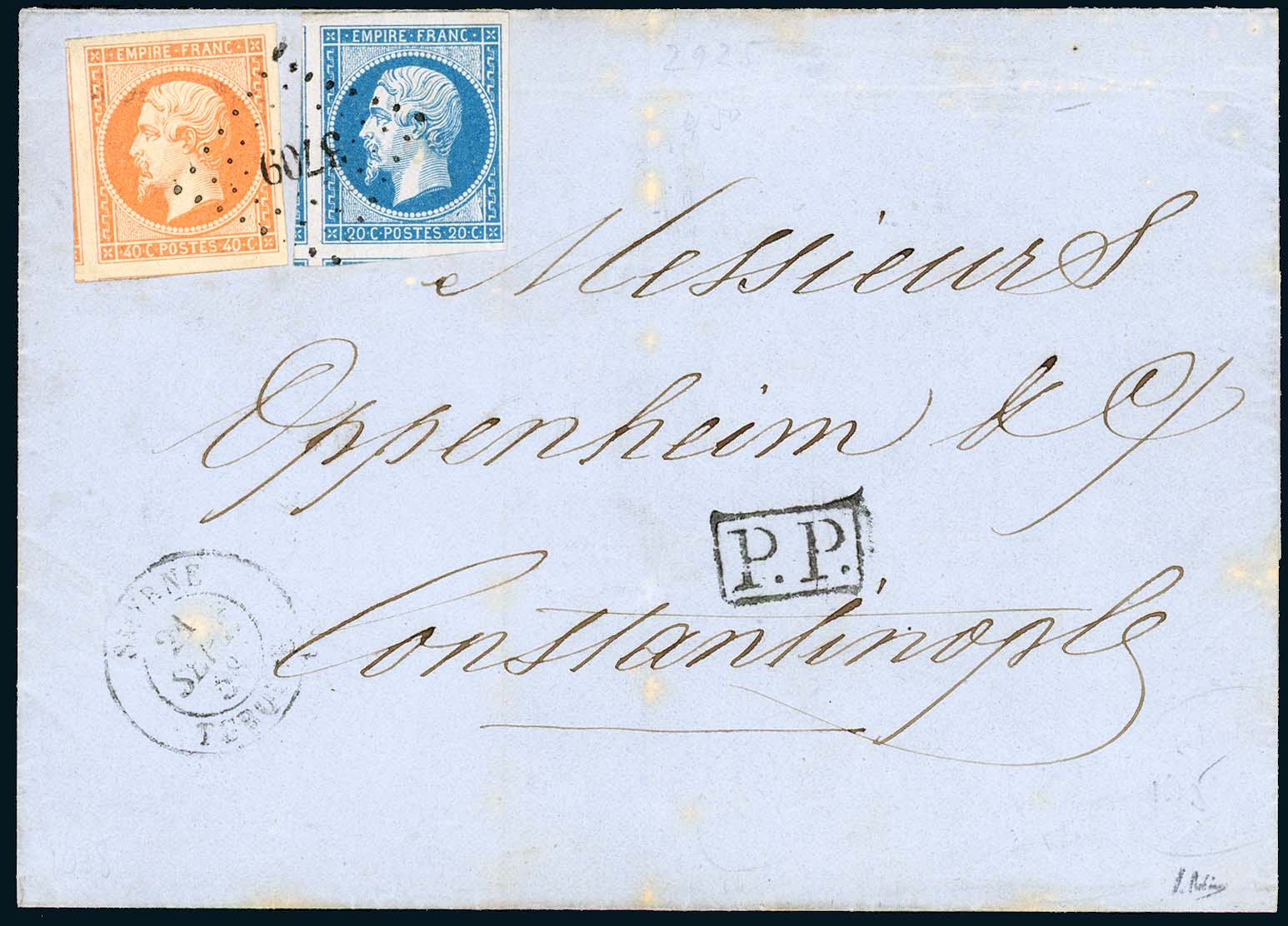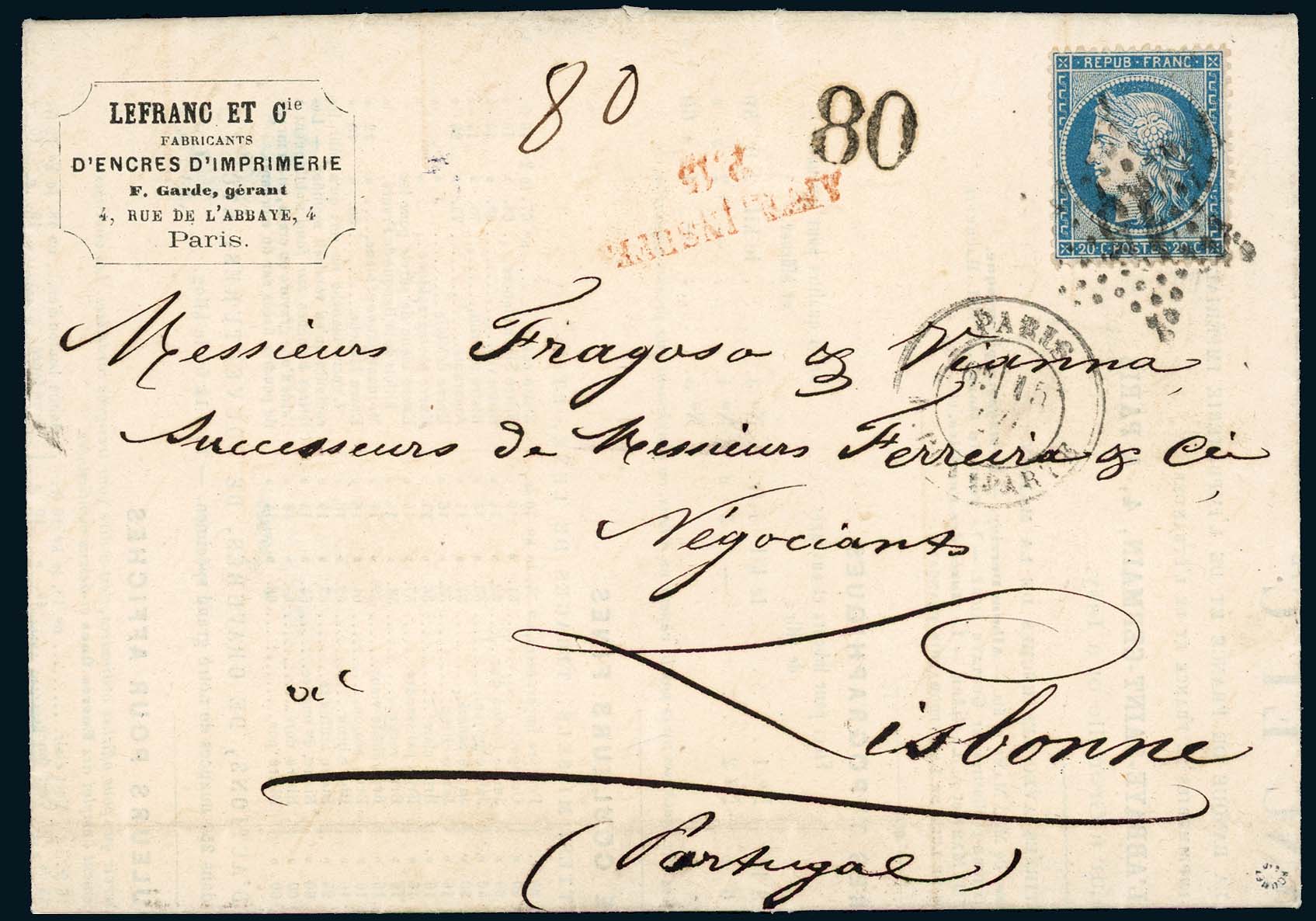 60 | N°3 OB étoile, C. PARIS/60 sur enveloppe pour Vienne, date illisible mais après le retour du tarif à 20c du 1et juillet 54, signé Calves TB | 500 | 900 | 500 | enchérir | |