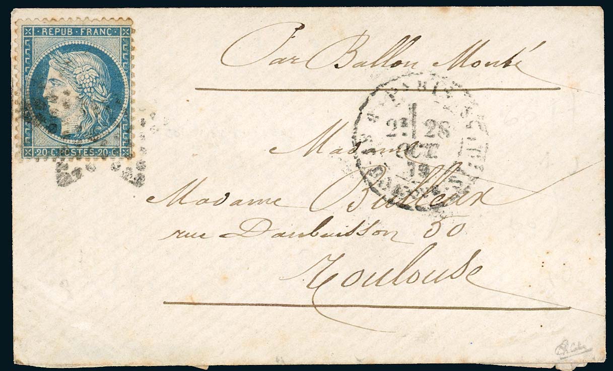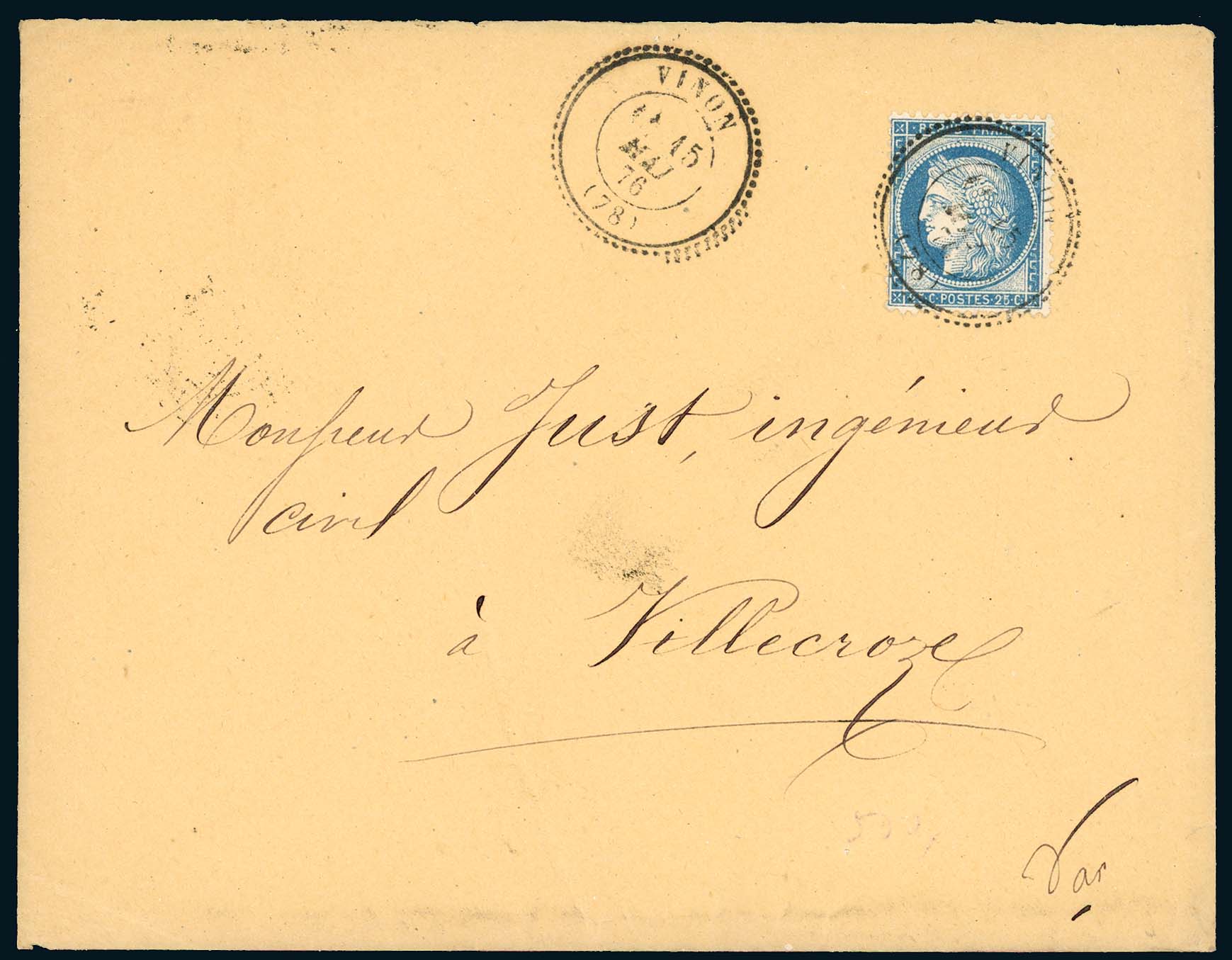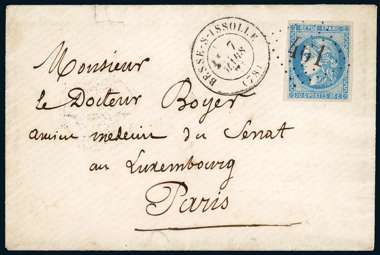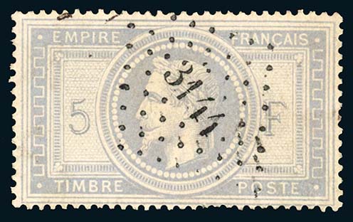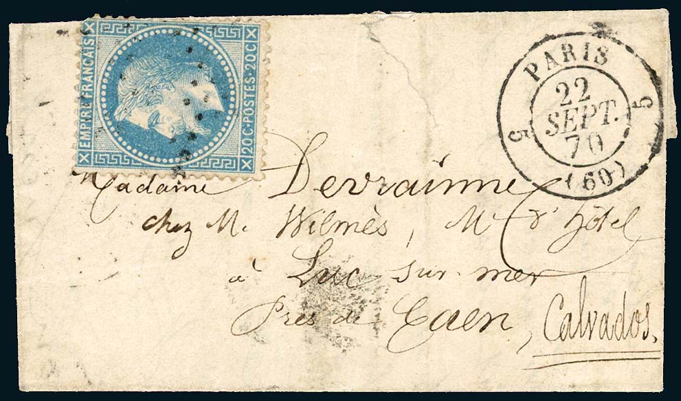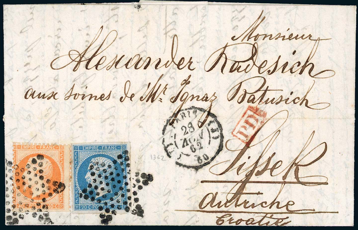 60 | N°3 OB étoile, C. PARIS/60 sur enveloppe pour Vienne, date illisible mais après le retour du tarif à 20c du 1et juillet 54, signé Calves TB | 500 | 900 | 500 | enchérir | |