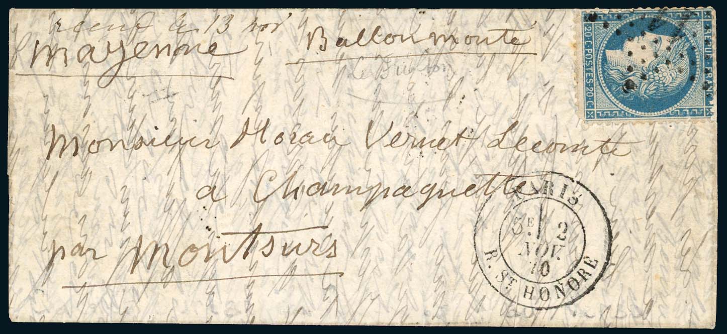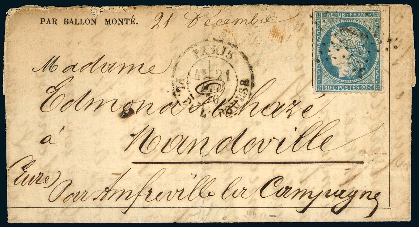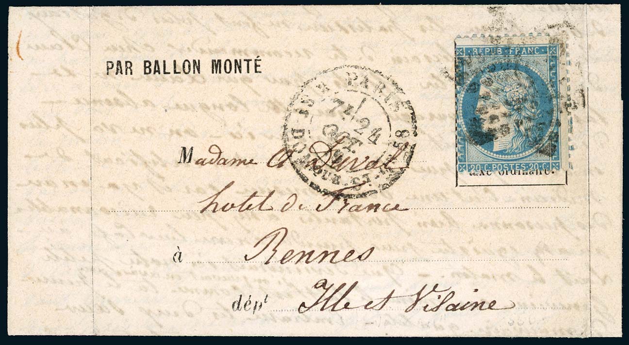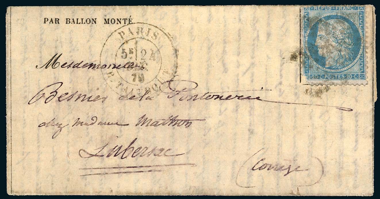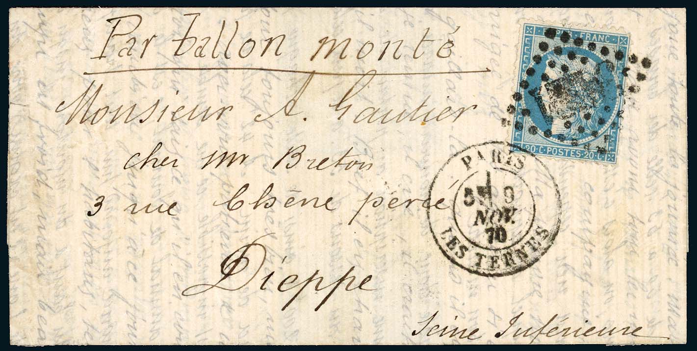 60 | N°3 OB étoile, C. PARIS/60 sur enveloppe pour Vienne, date illisible mais après le retour du tarif à 20c du 1et juillet 54, signé Calves TB | 500 | 900 | 500 | enchérir | |