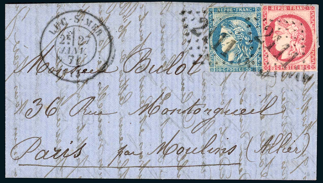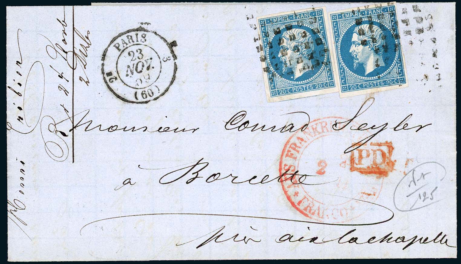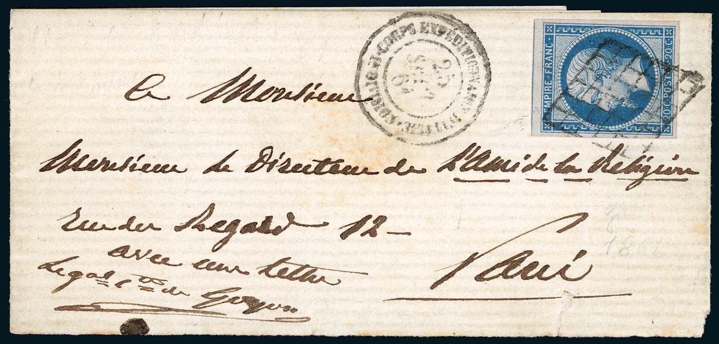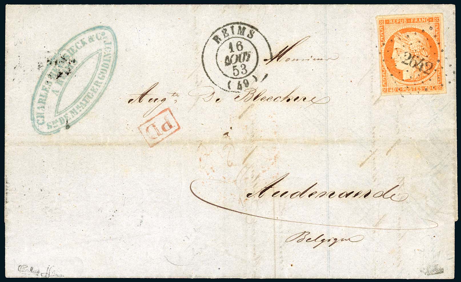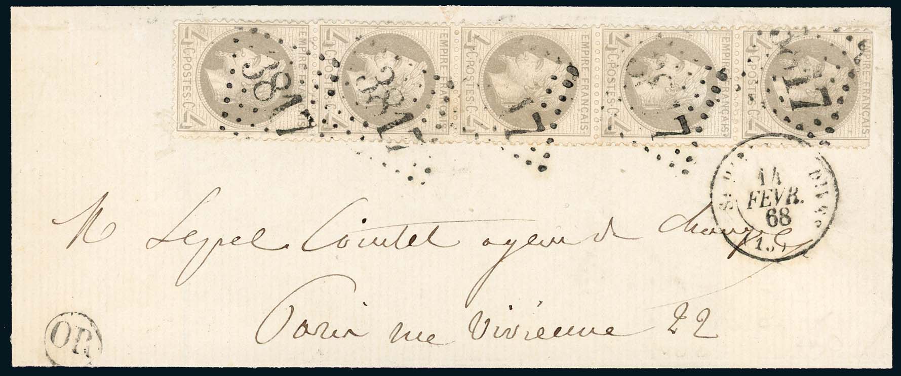 32 | N°2 OB grille, C. BUREAU CENTRAL en rouge sur lettre locale avec C. PARIS et C. 2° LEVEE/11h/PARIS au verso 1851 Combinaison peu courante b:tb | 100 | 200 | 100 | enchérir | |