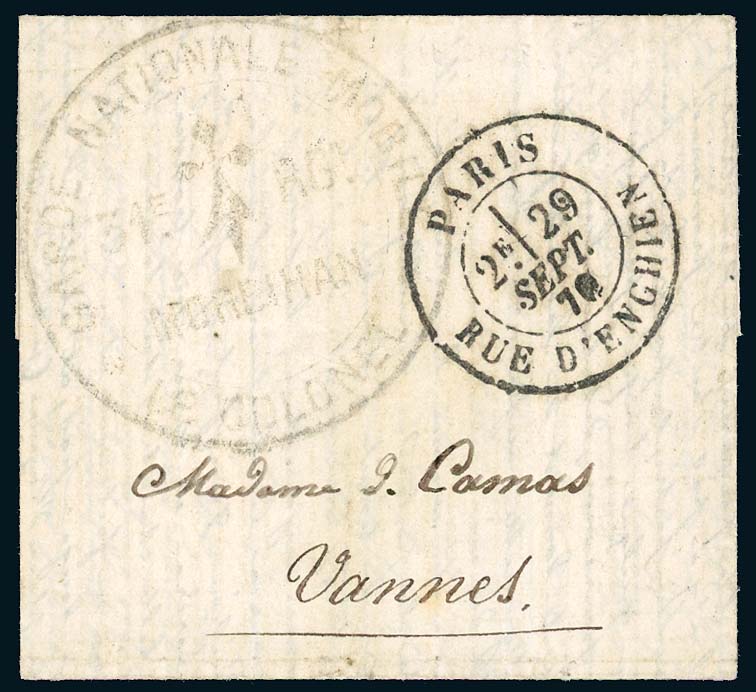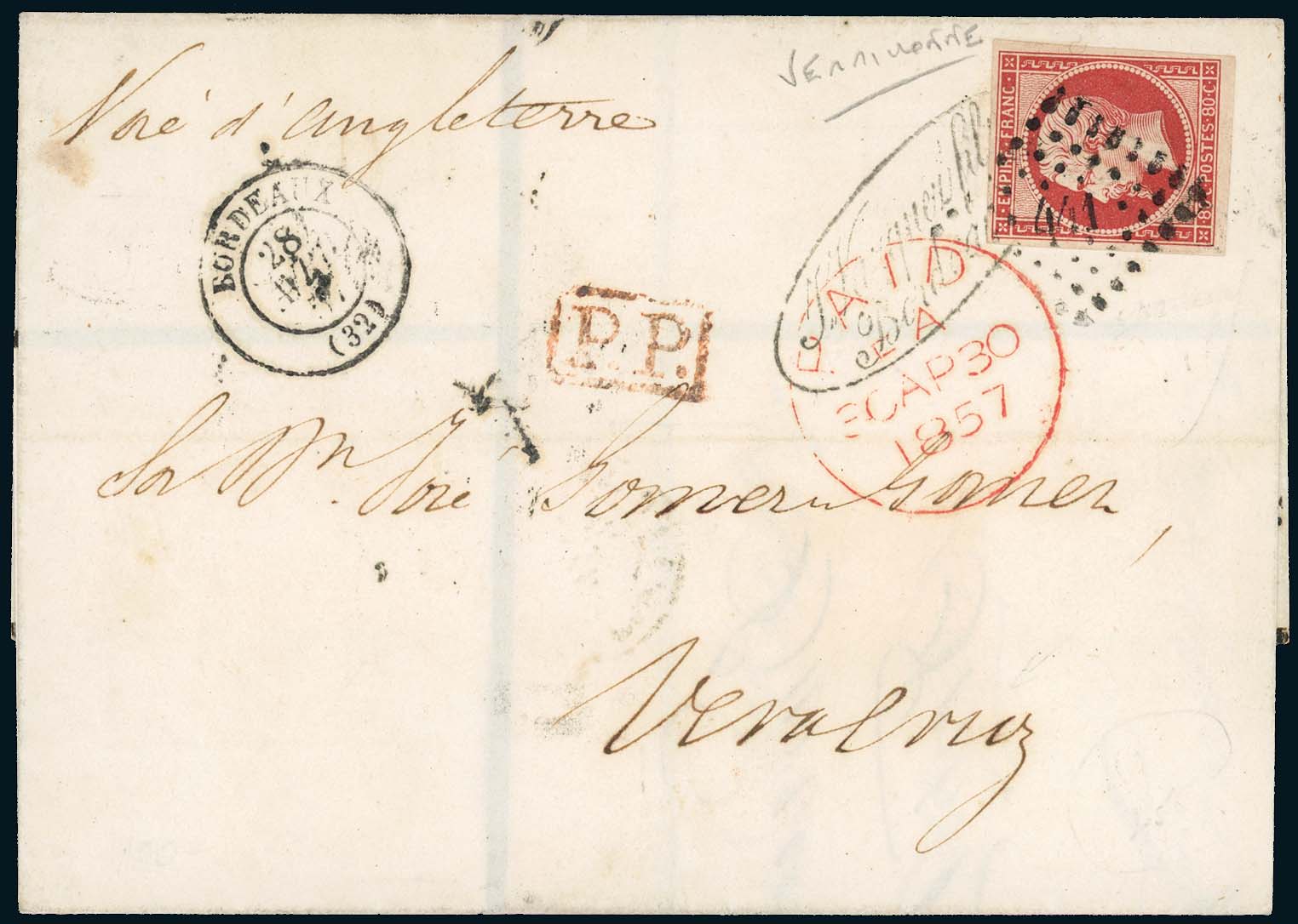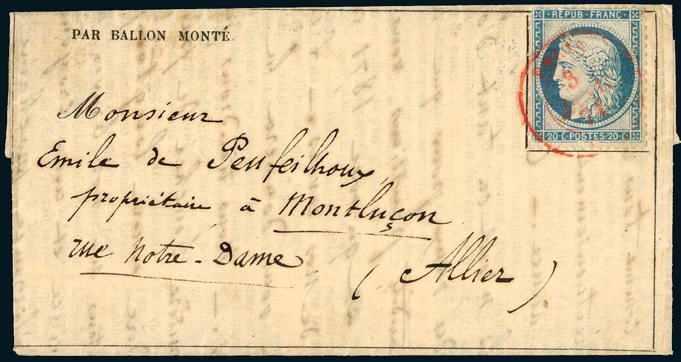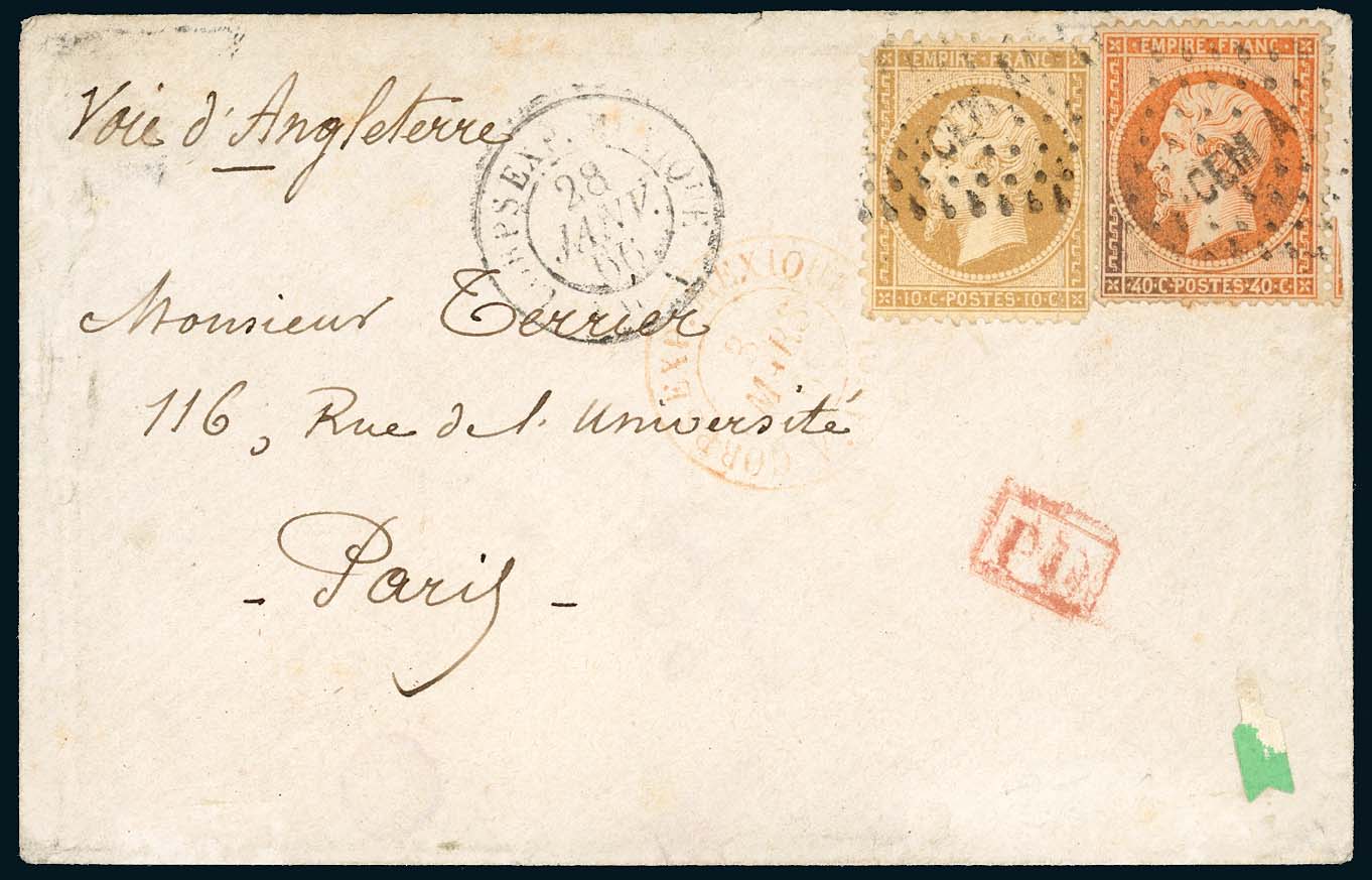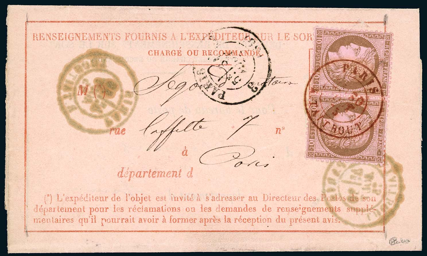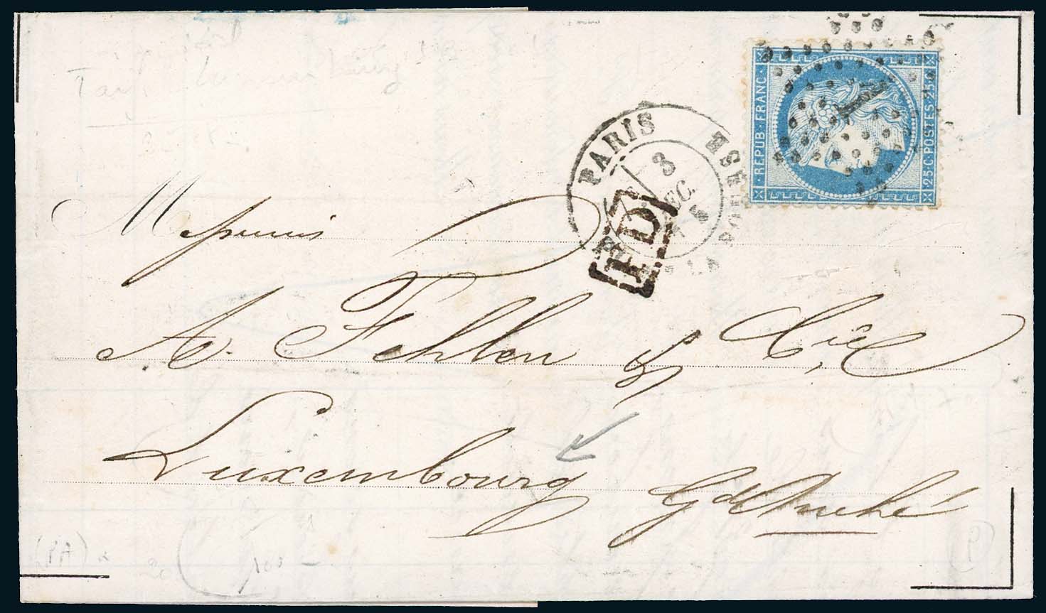 32 | N°2 OB grille, C. BUREAU CENTRAL en rouge sur lettre locale avec C. PARIS et C. 2° LEVEE/11h/PARIS au verso 1851 Combinaison peu courante b:tb | 100 | 200 | 100 | enchérir | |