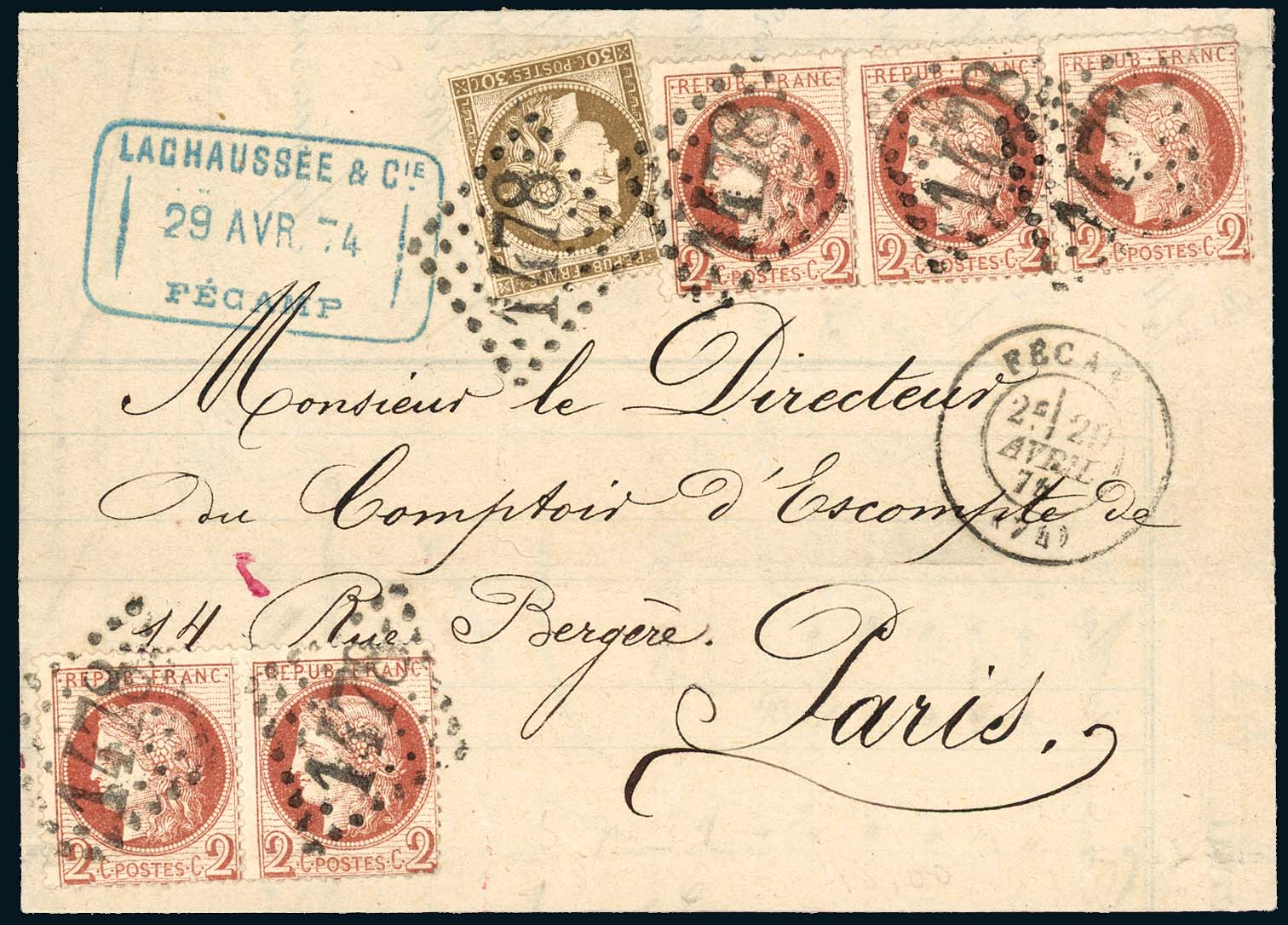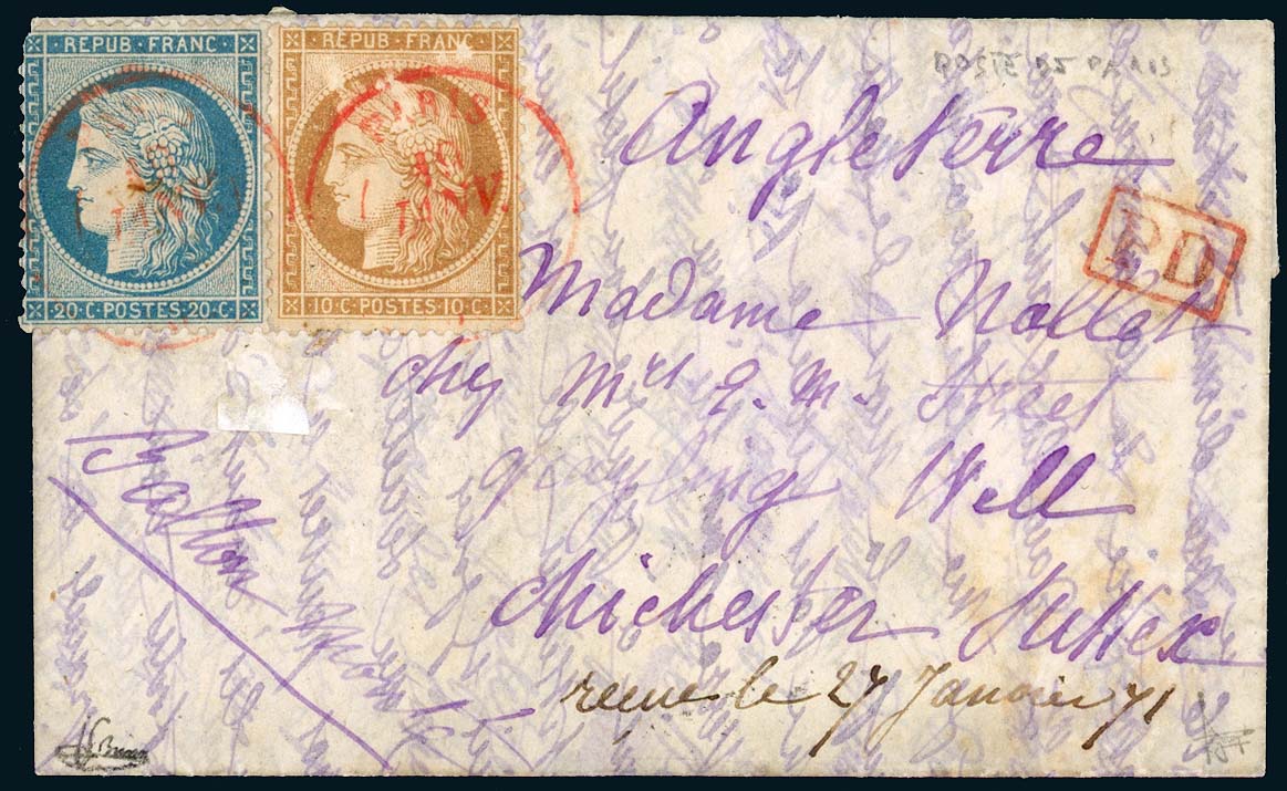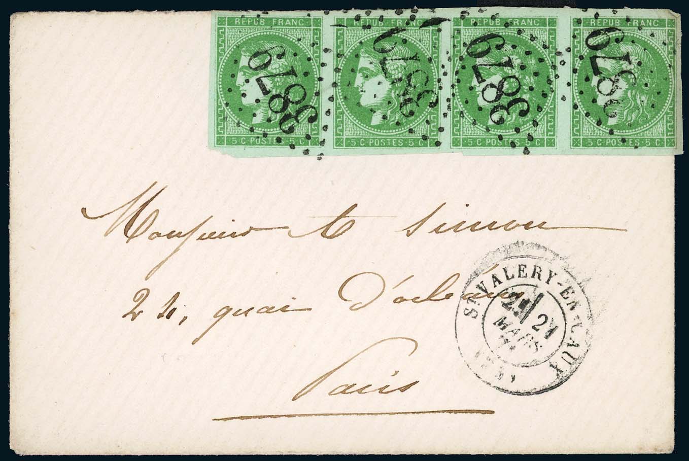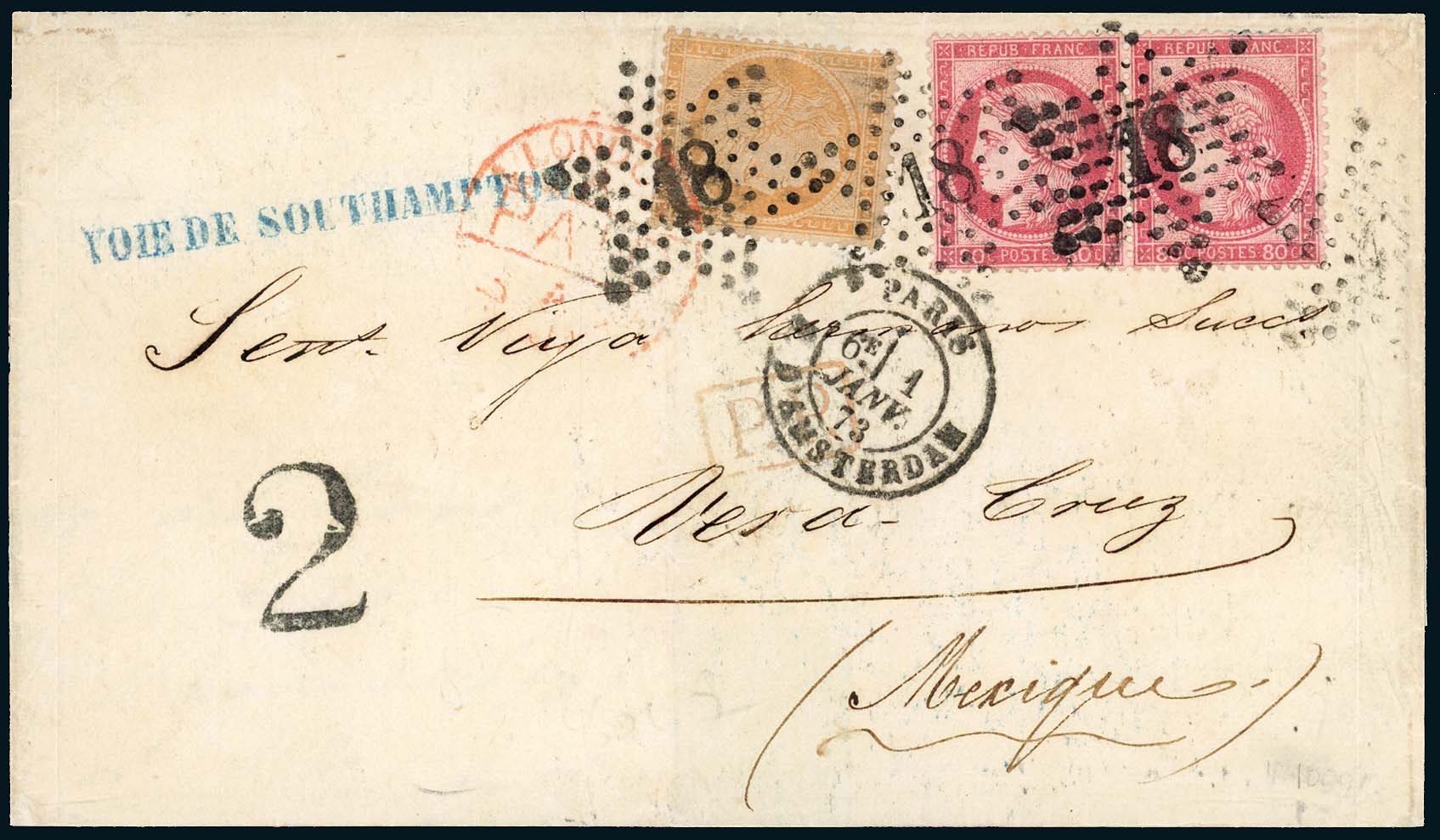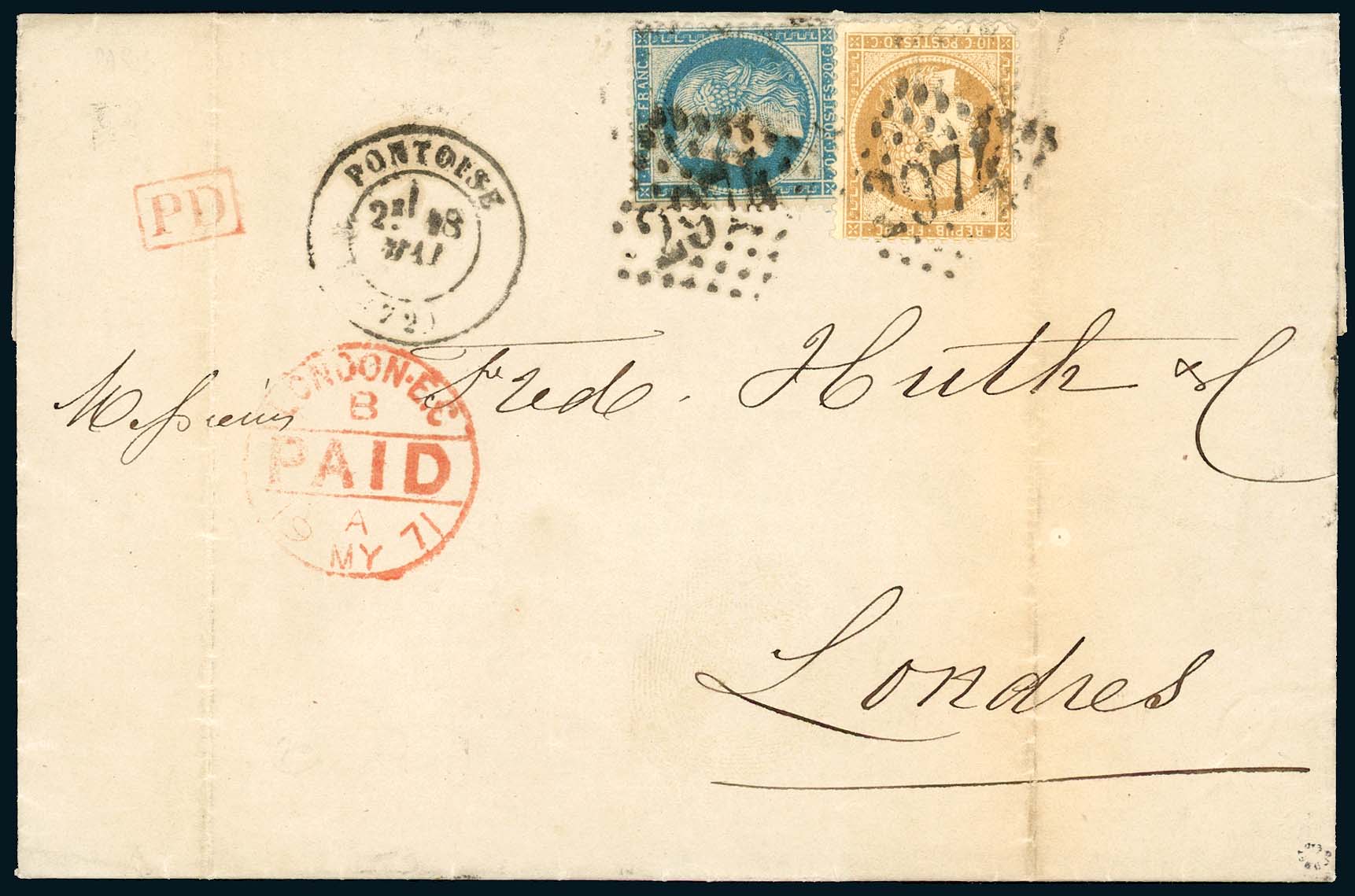 32 | N°2 OB grille, C. BUREAU CENTRAL en rouge sur lettre locale avec C. PARIS et C. 2° LEVEE/11h/PARIS au verso 1851 Combinaison peu courante b:tb | 100 | 200 | 100 | enchérir | |