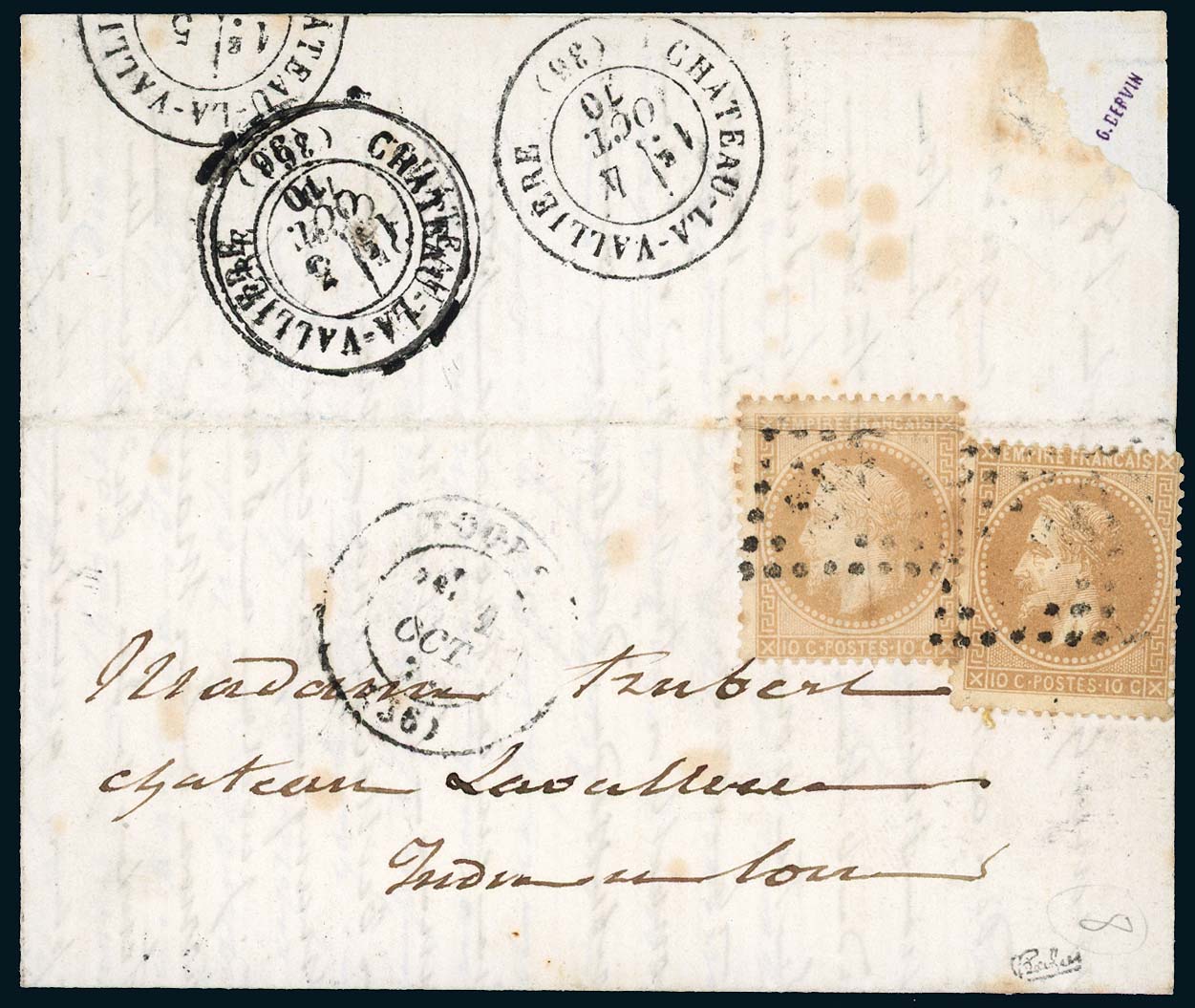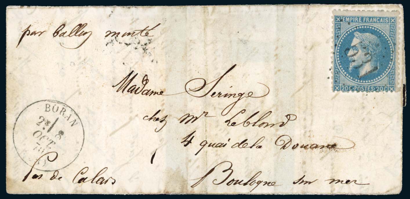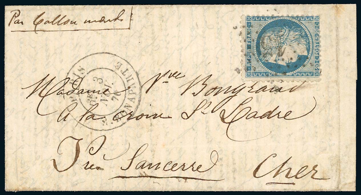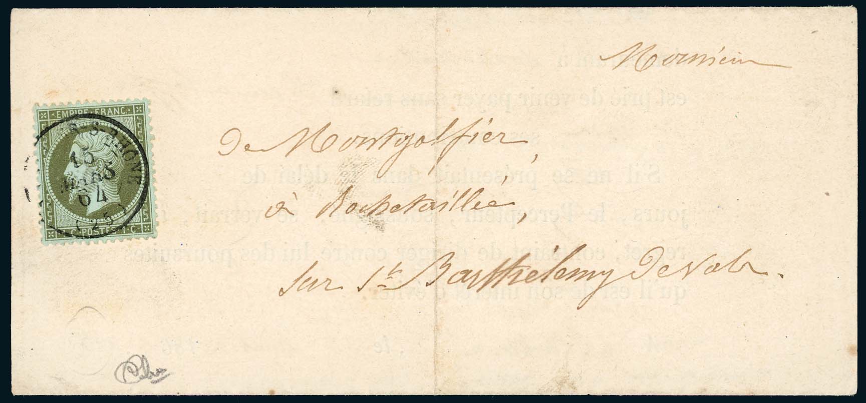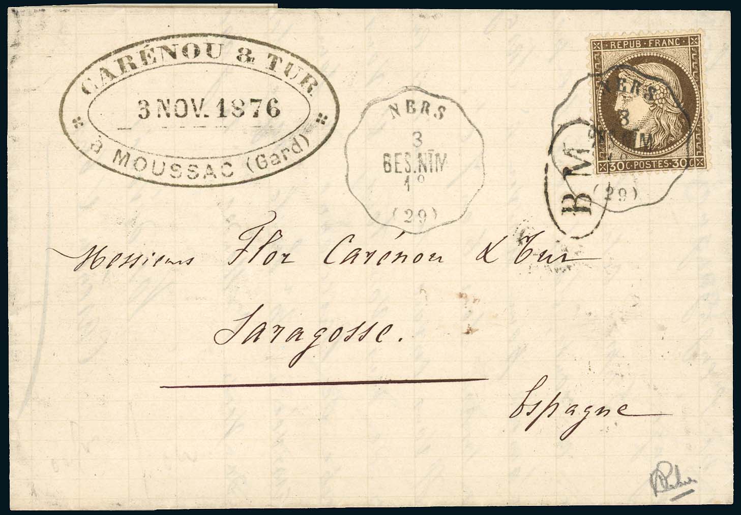 73 | N°3 OB grille sur lettre de Montpellier pour Signant en Camargue avec cursive 12/Albaron (superbe) au verso 1850 TB | 150 | 300 | 150 | enchérir | |