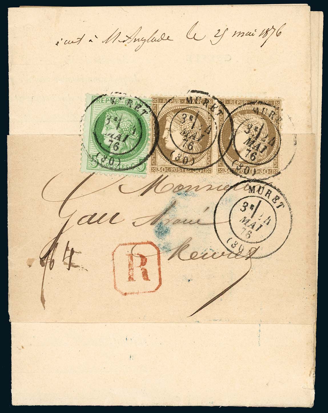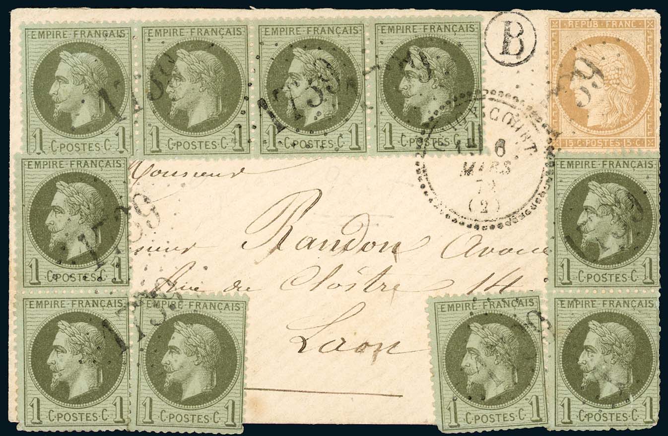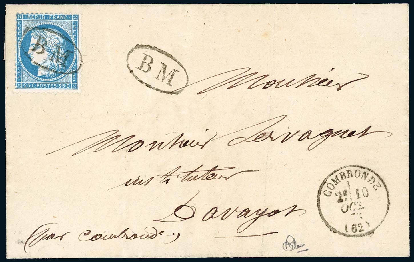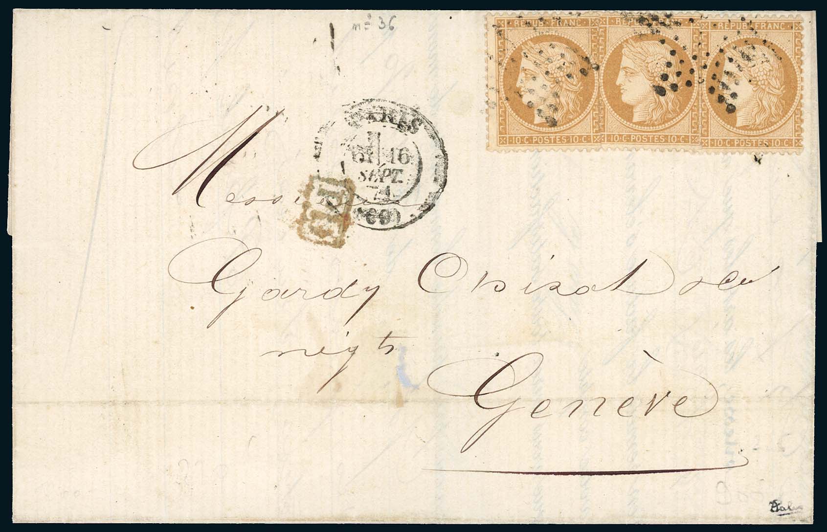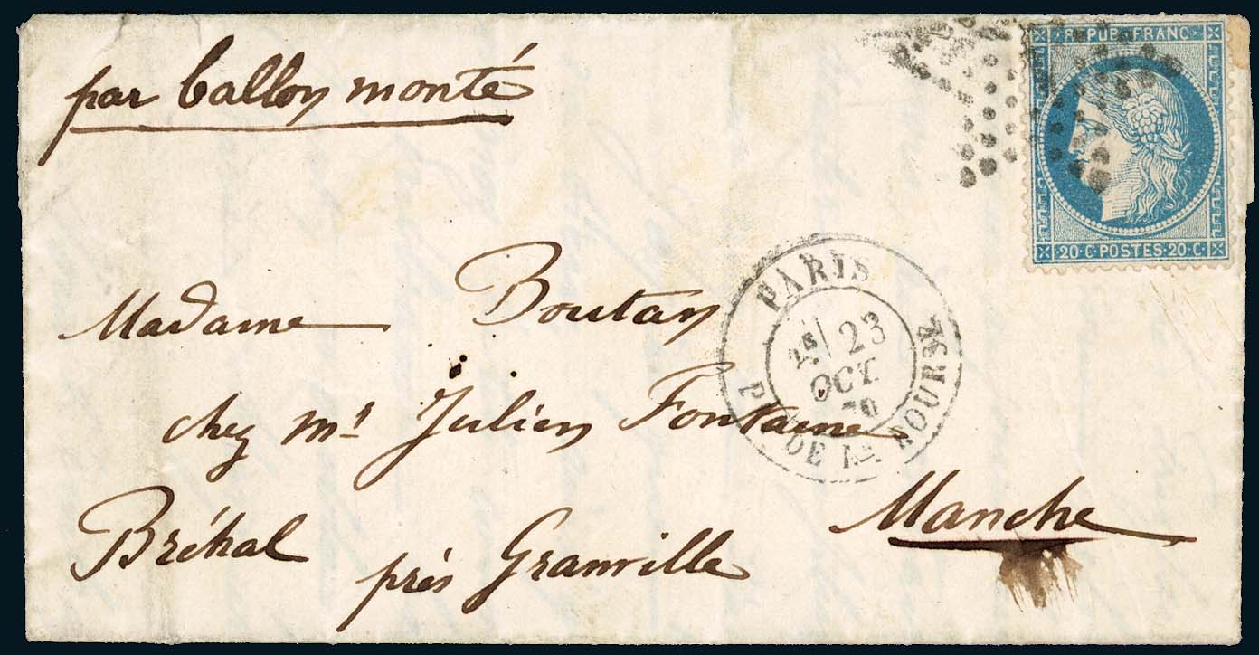 73 | N°3 OB grille sur lettre de Montpellier pour Signant en Camargue avec cursive 12/Albaron (superbe) au verso 1850 TB | 150 | 300 | 150 | enchérir | |