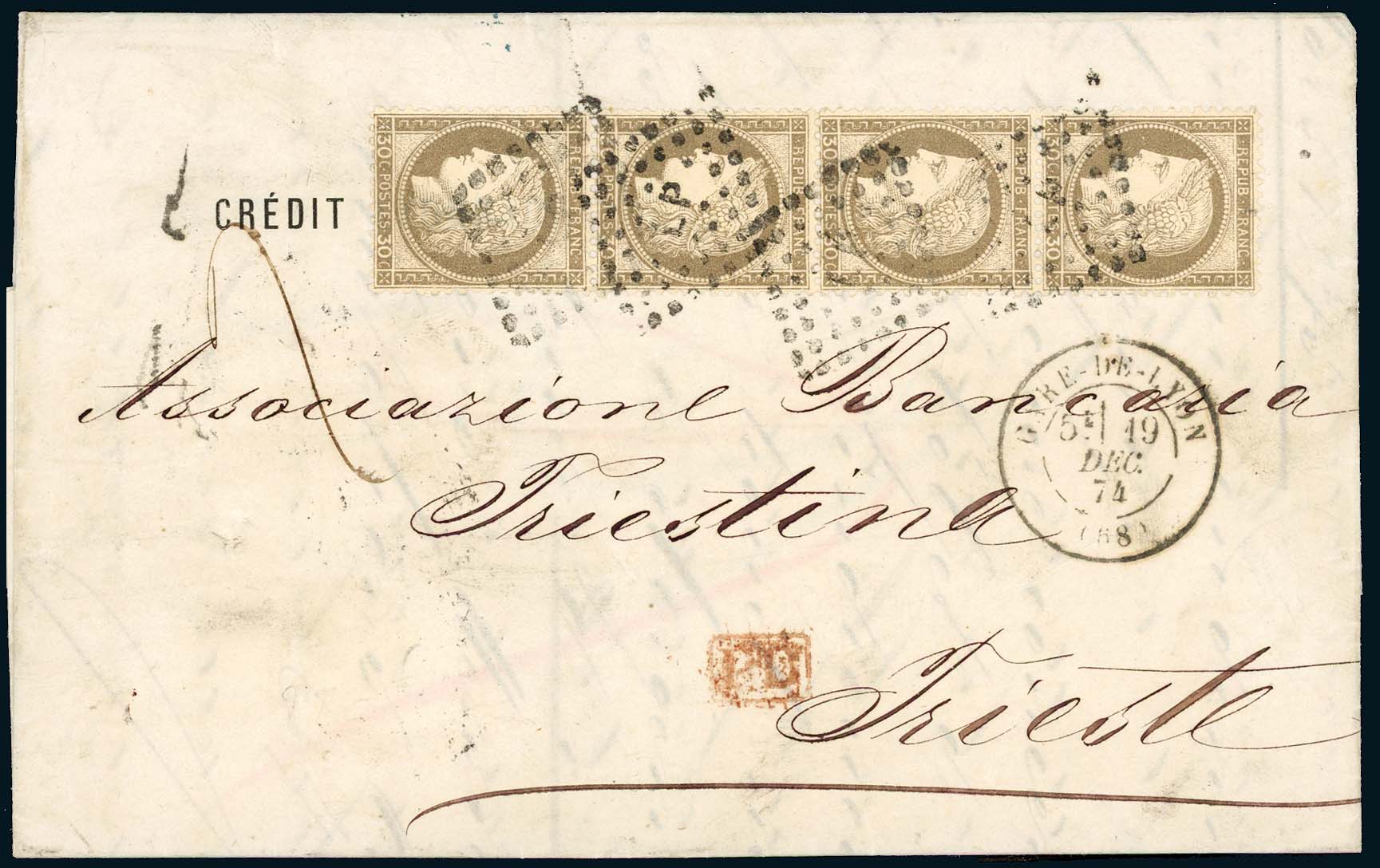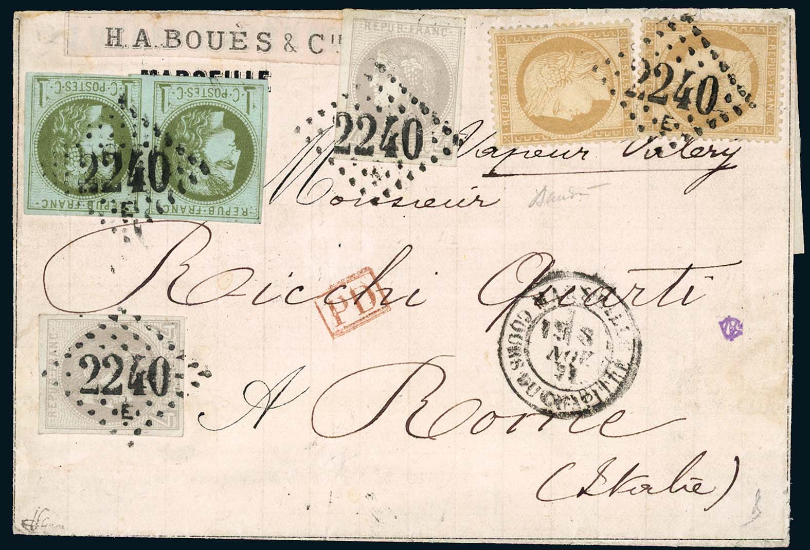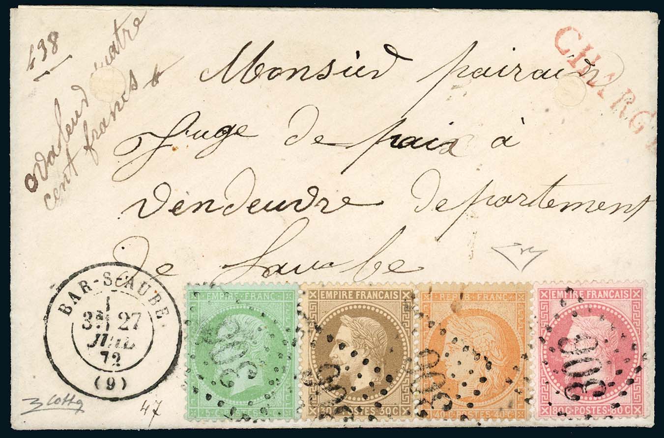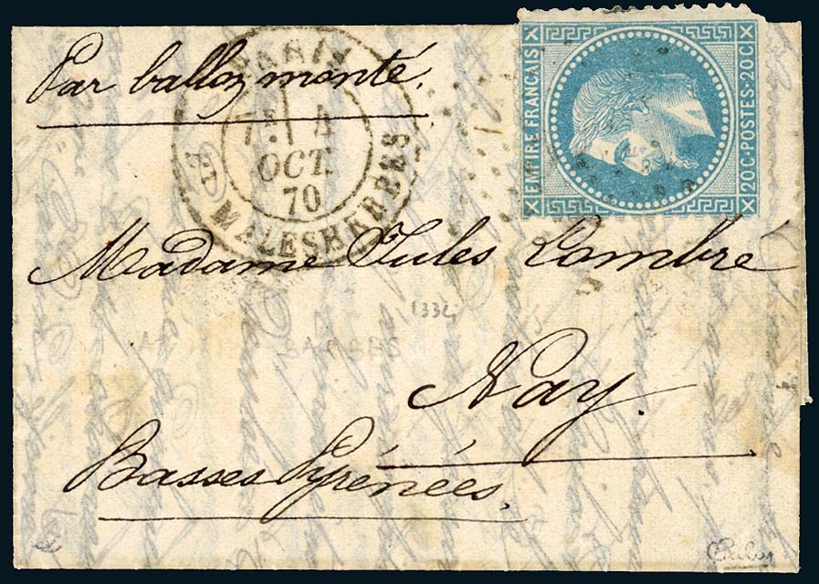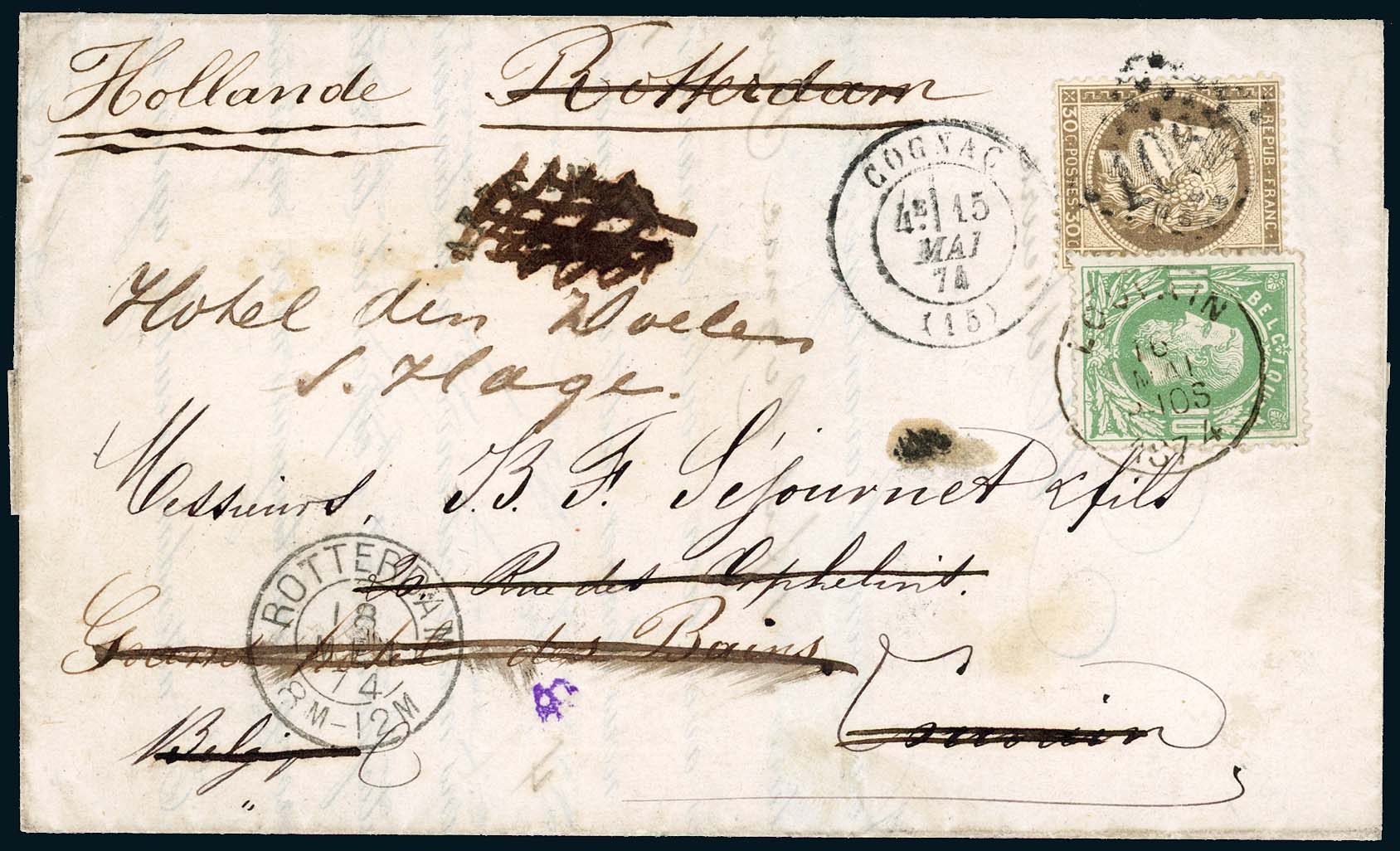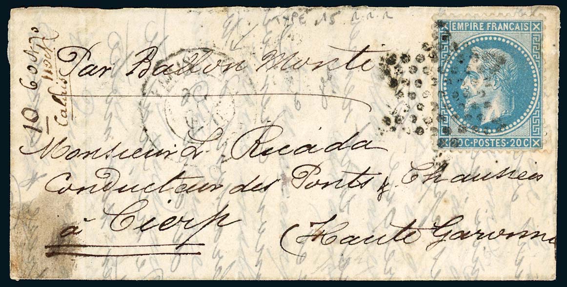 73 | N°3 OB grille sur lettre de Montpellier pour Signant en Camargue avec cursive 12/Albaron (superbe) au verso 1850 TB | 150 | 300 | 150 | enchérir | |