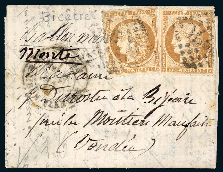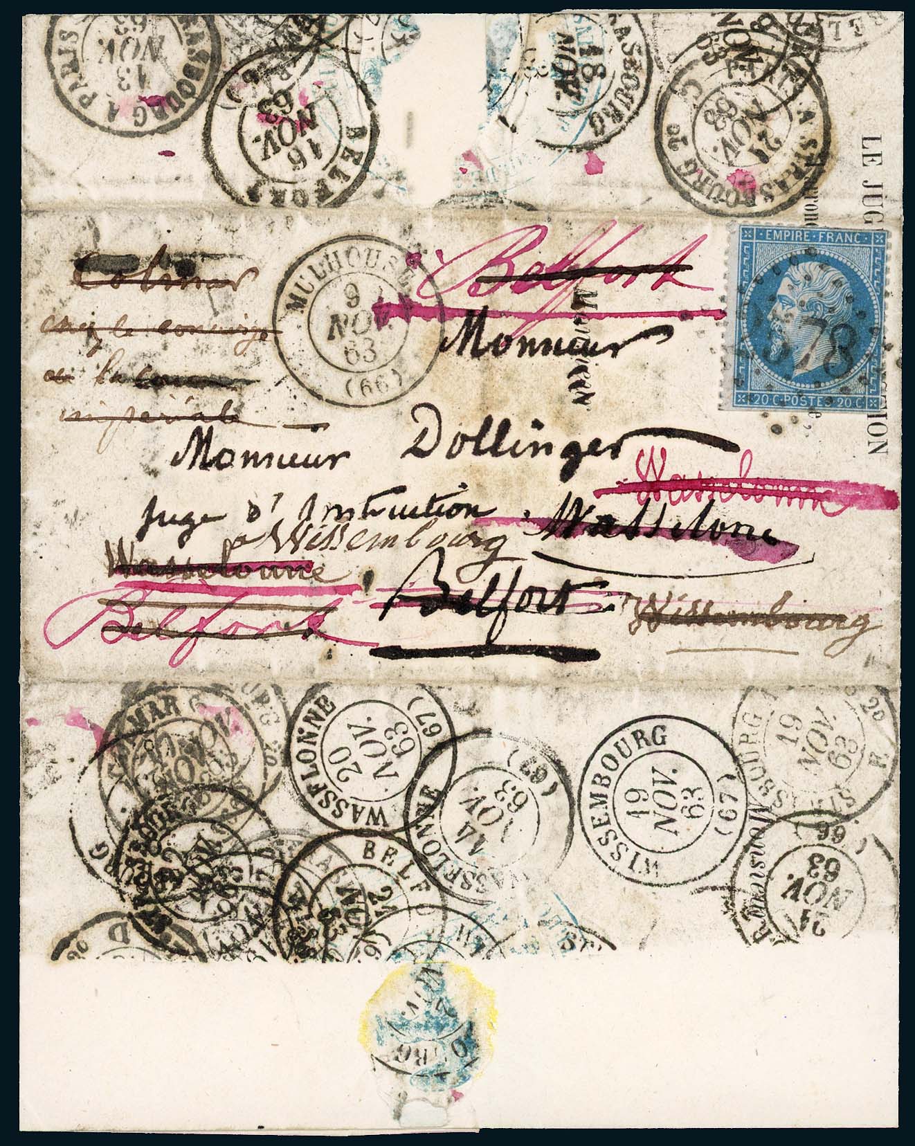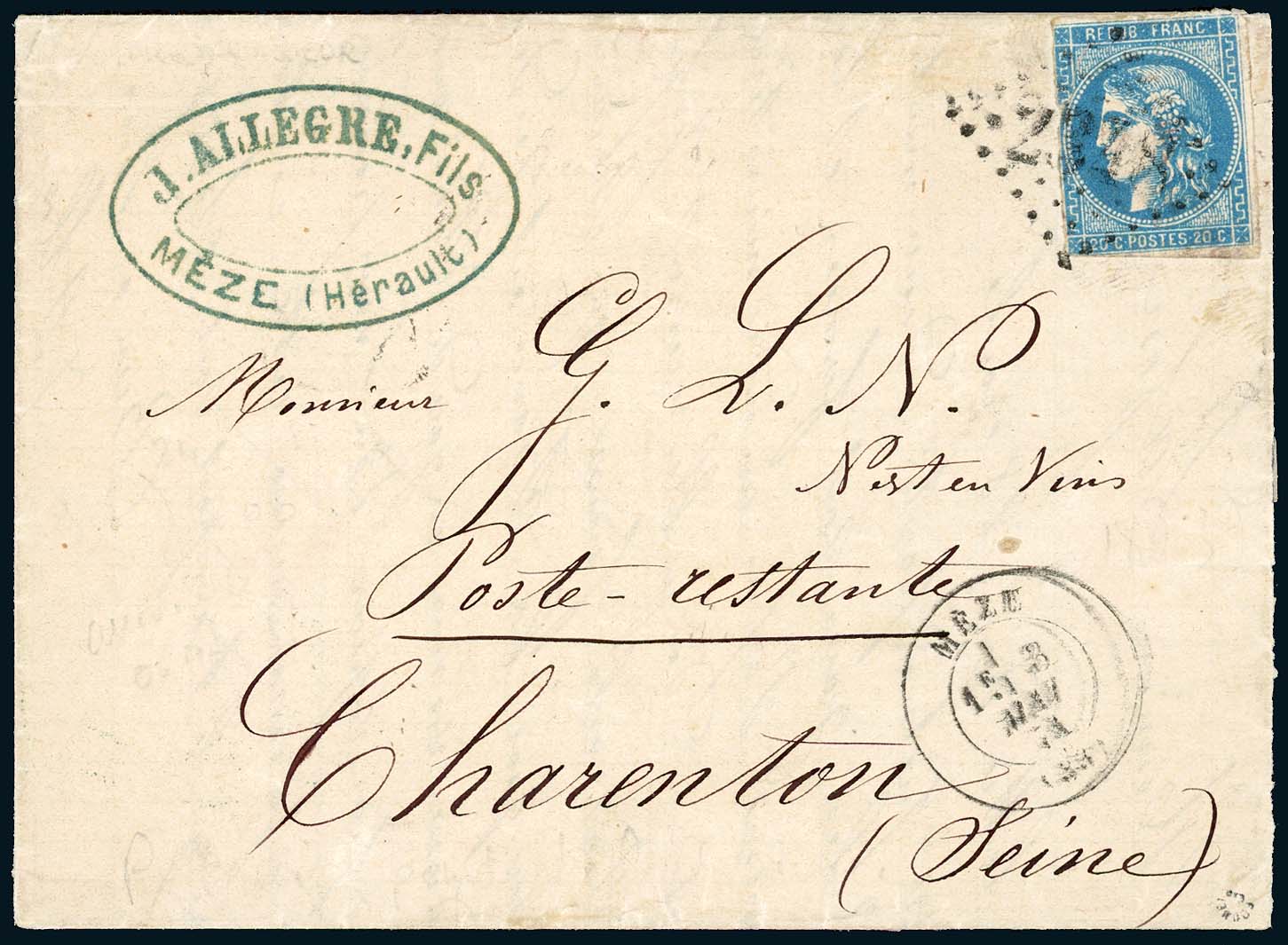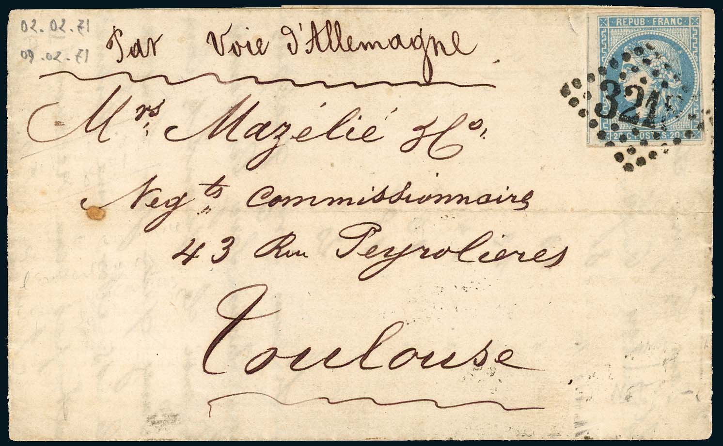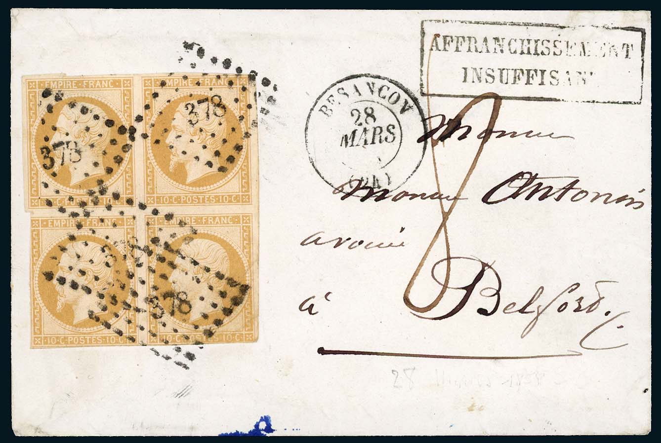 73 | N°3 OB grille sur lettre de Montpellier pour Signant en Camargue avec cursive 12/Albaron (superbe) au verso 1850 TB | 150 | 300 | 150 | enchérir | |