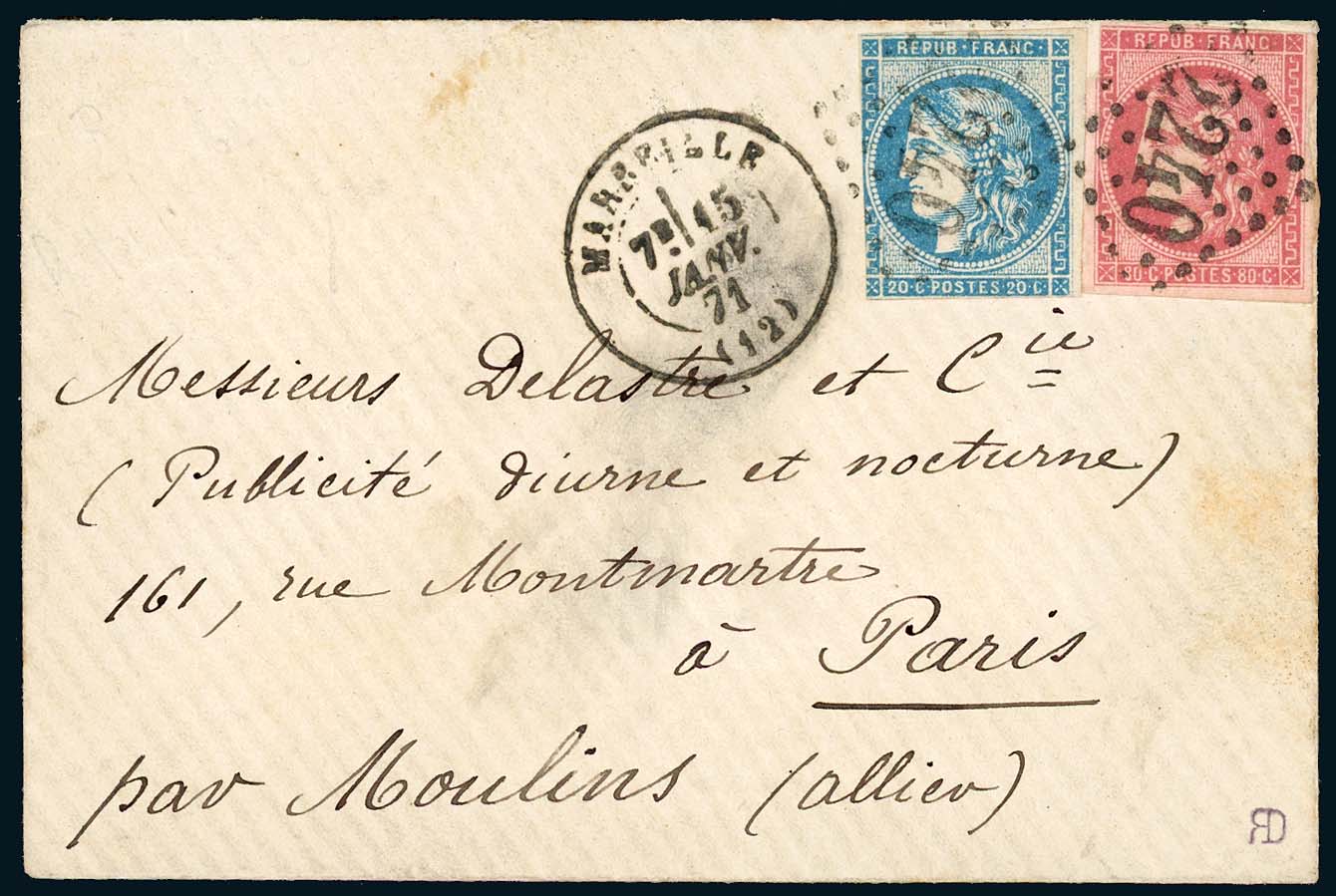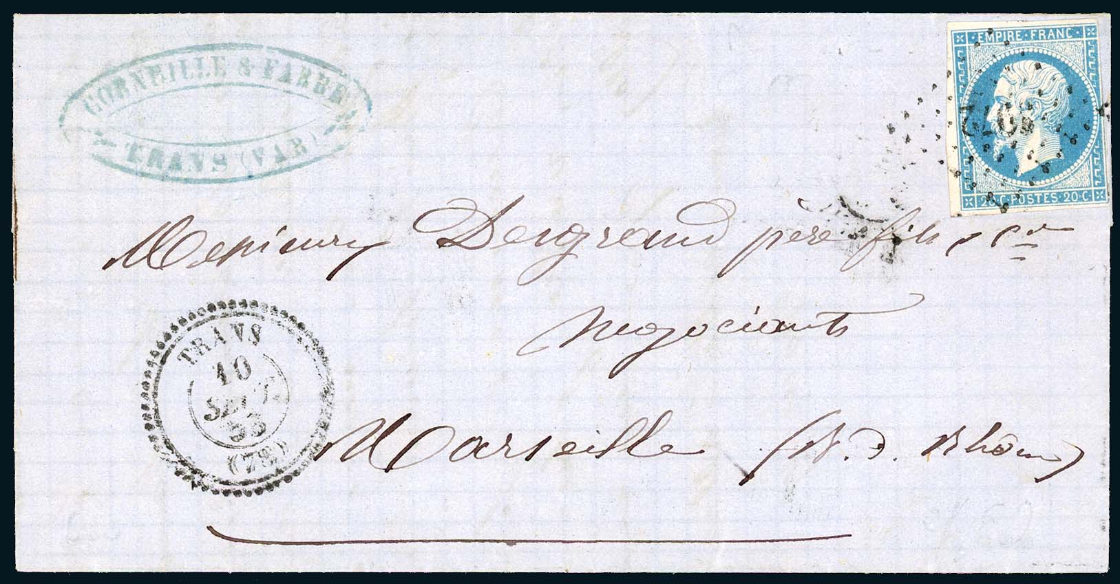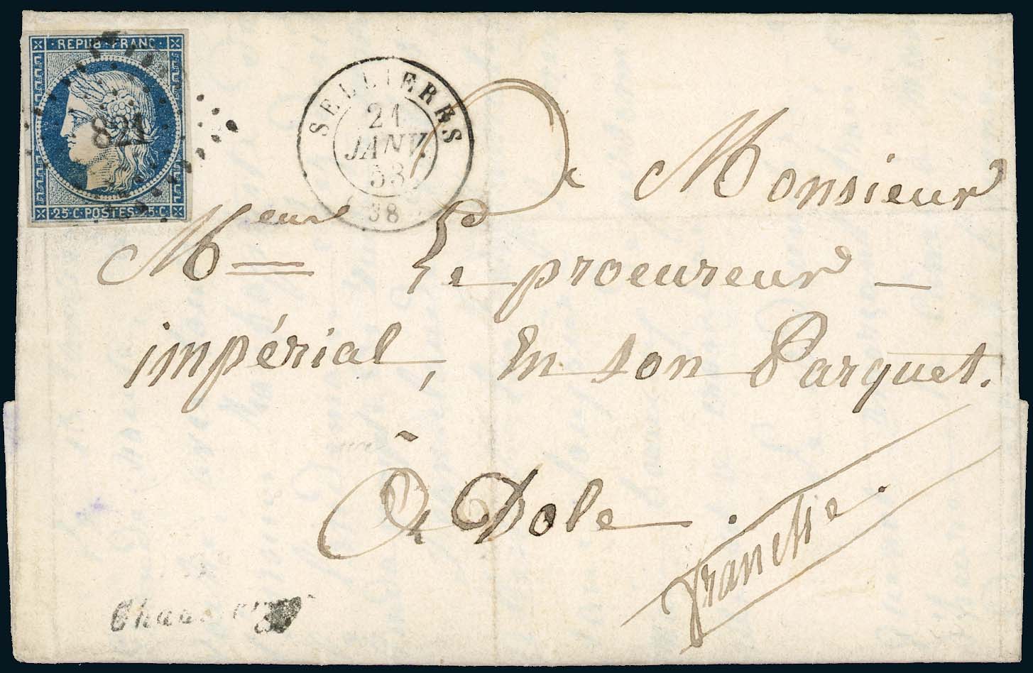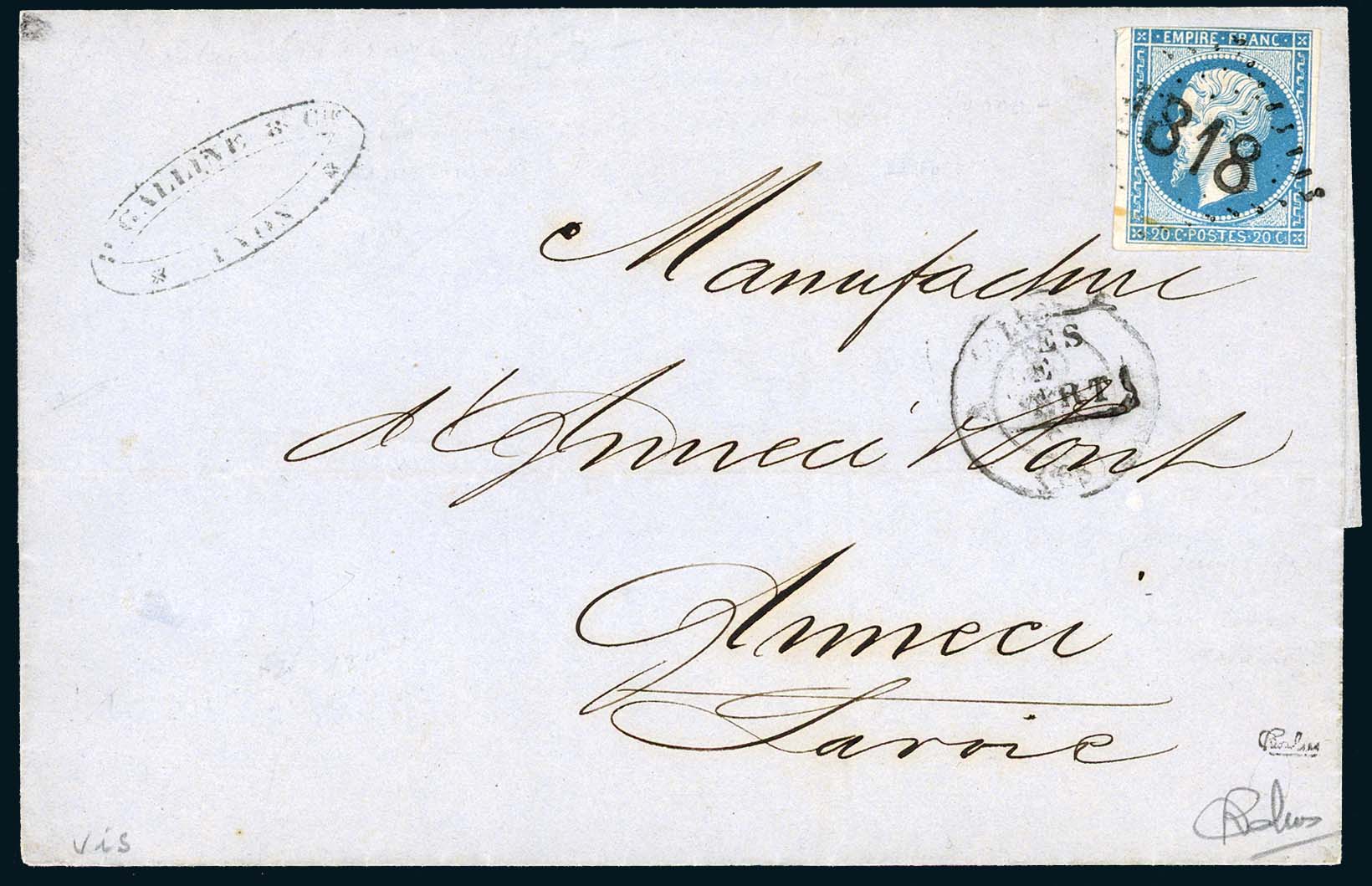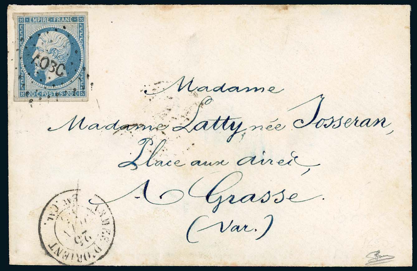 54 | N°3 OB PC 1896 sur lettre de Marseille pour Lyon (ex. Dubus) 29 janvier 1855 TB | 1250 | 1750 | 1250 | enchérir | |