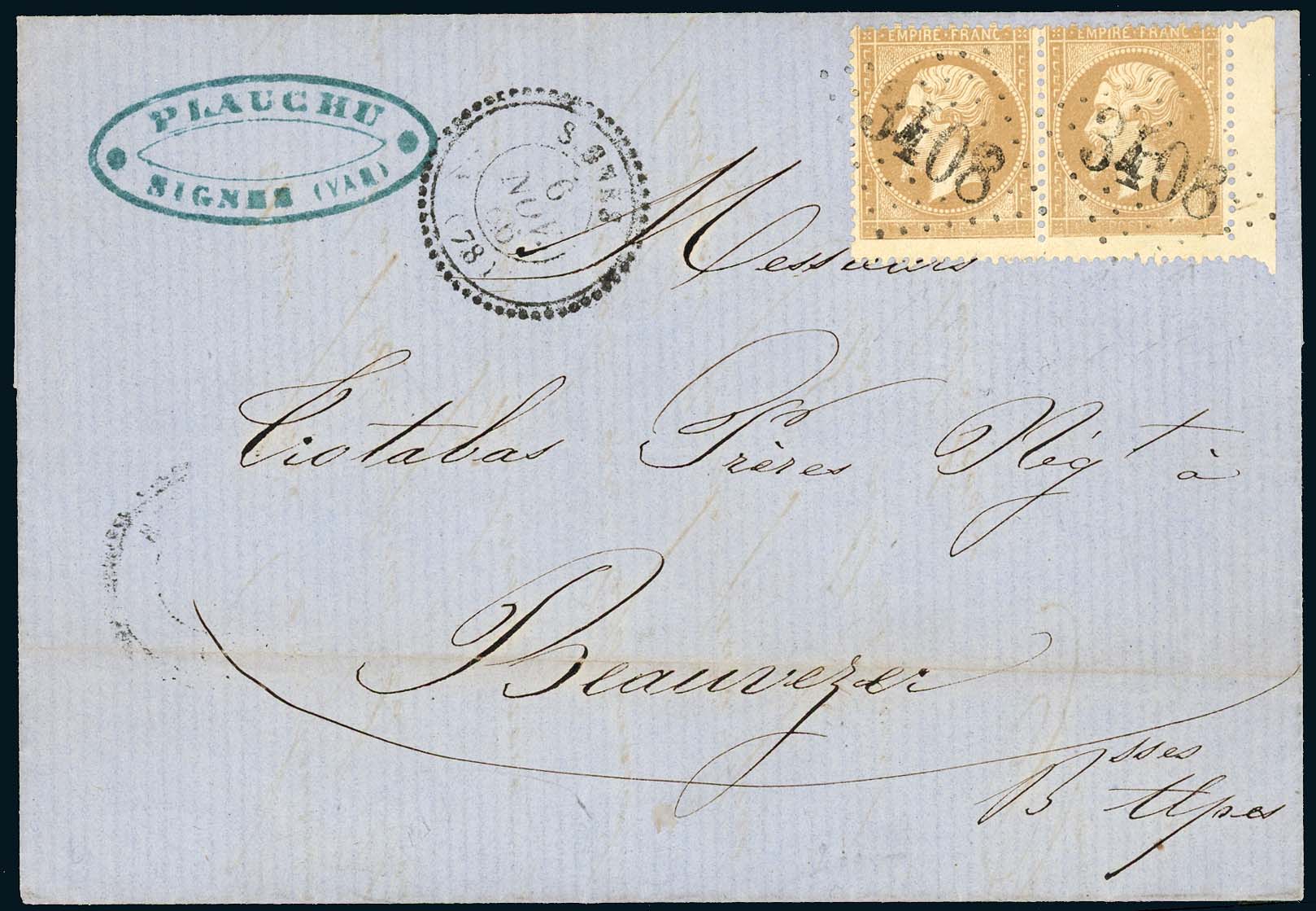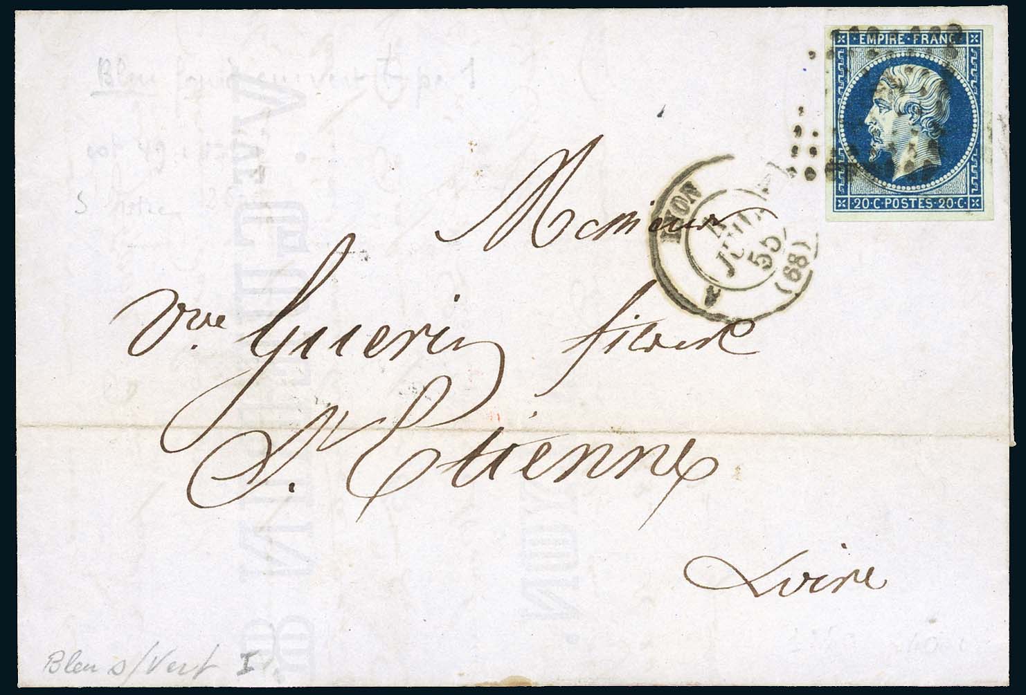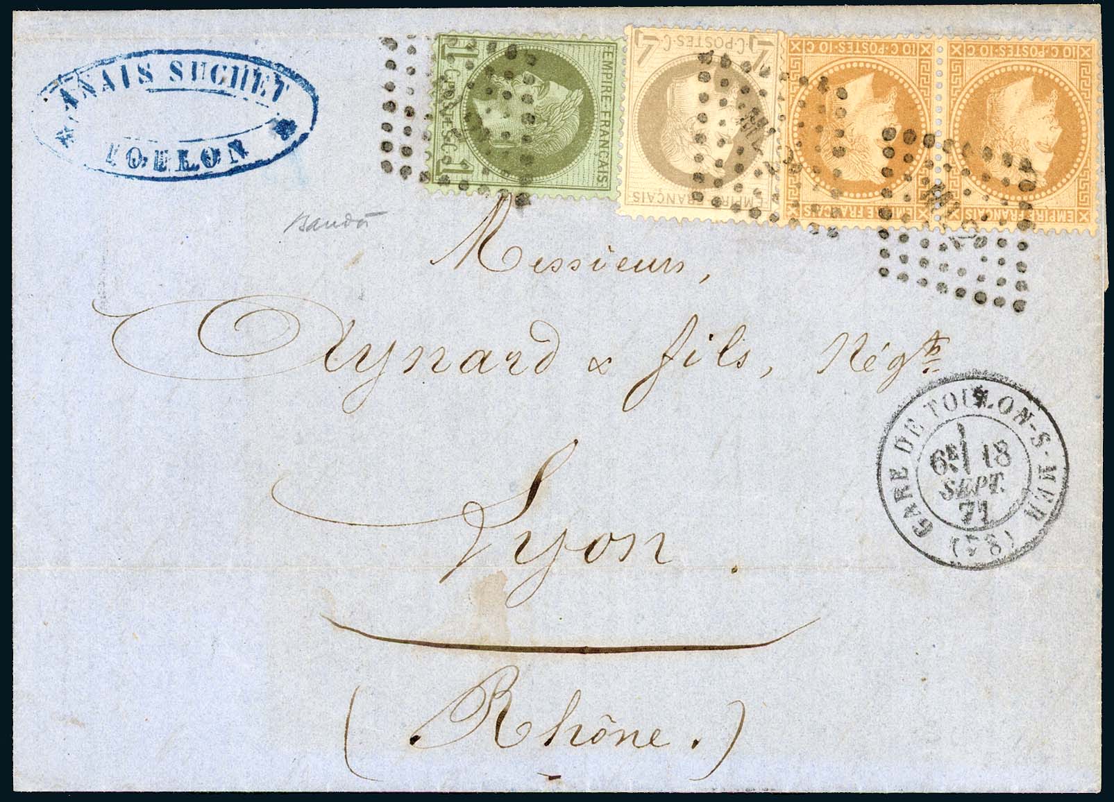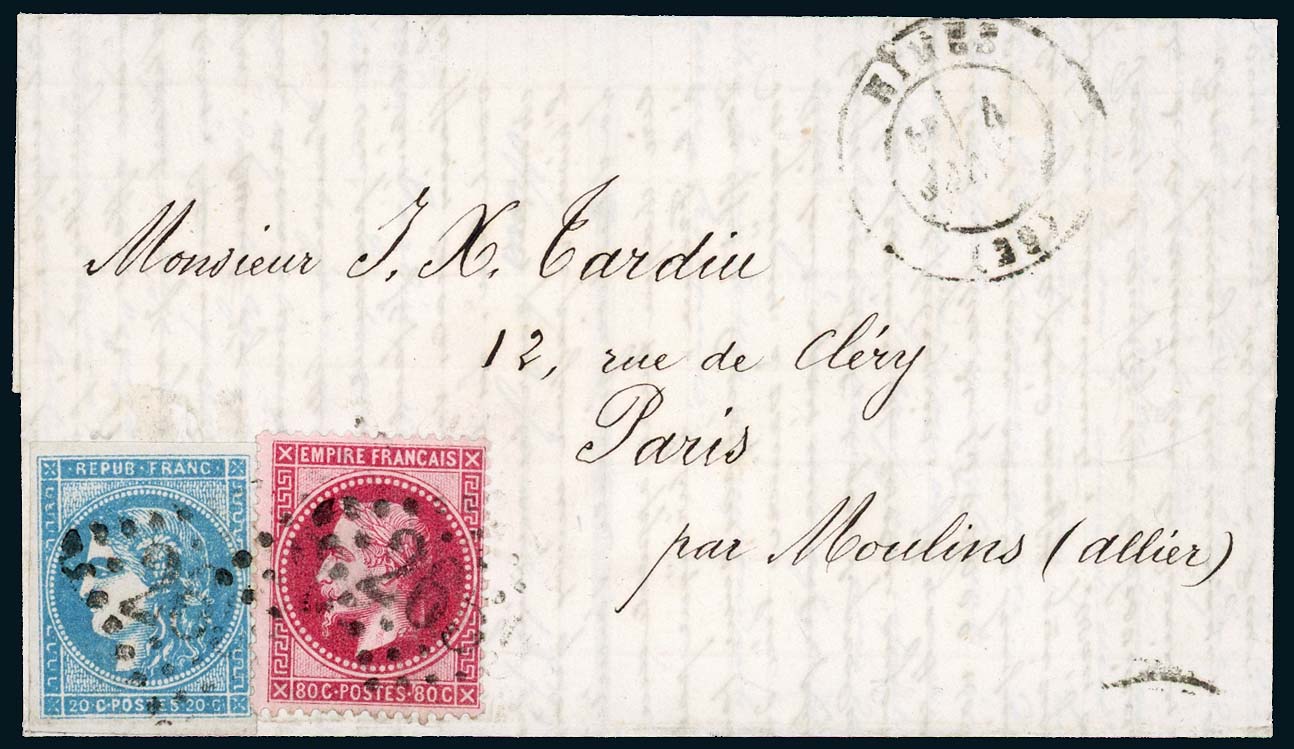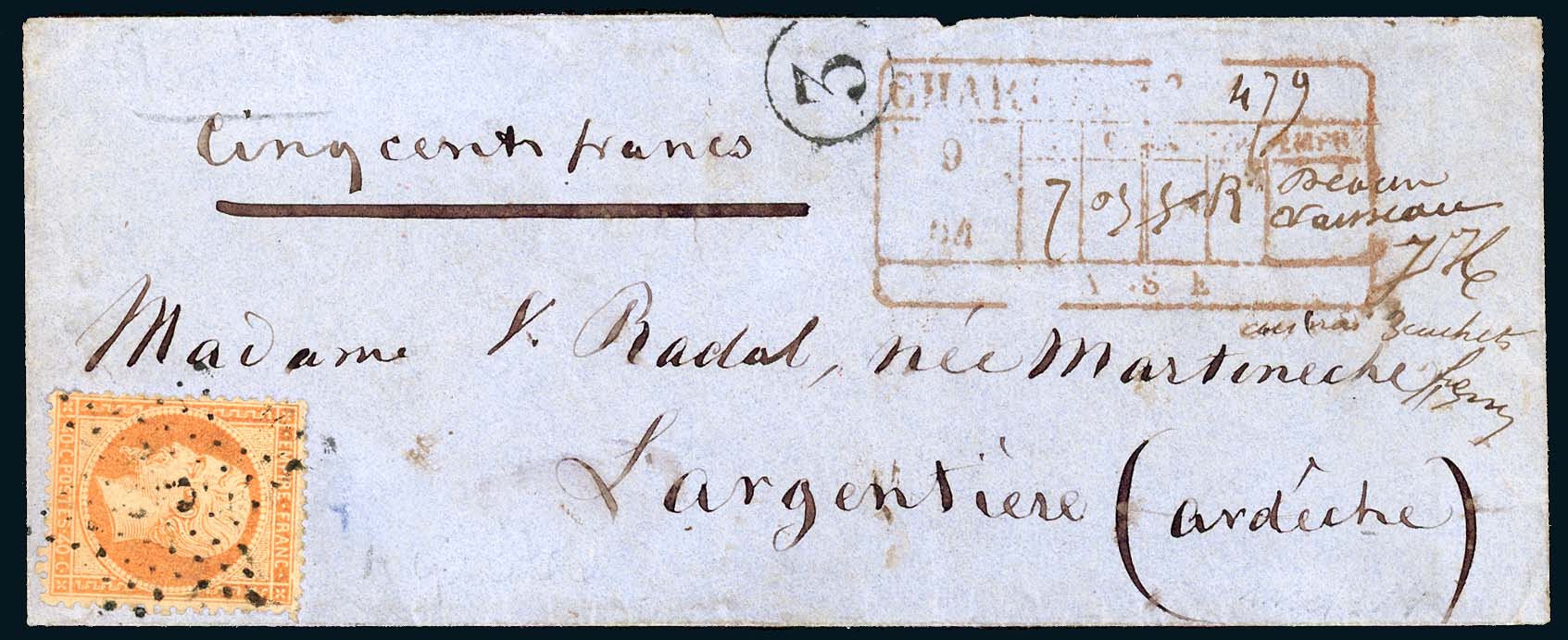 54 | N°3 OB PC 1896 sur lettre de Marseille pour Lyon (ex. Dubus) 29 janvier 1855 TB | 1250 | 1750 | 1250 | enchérir | |