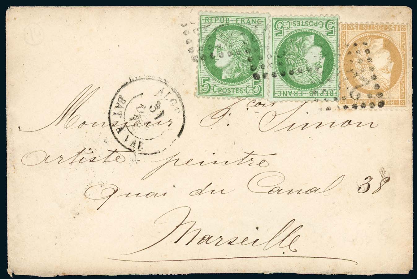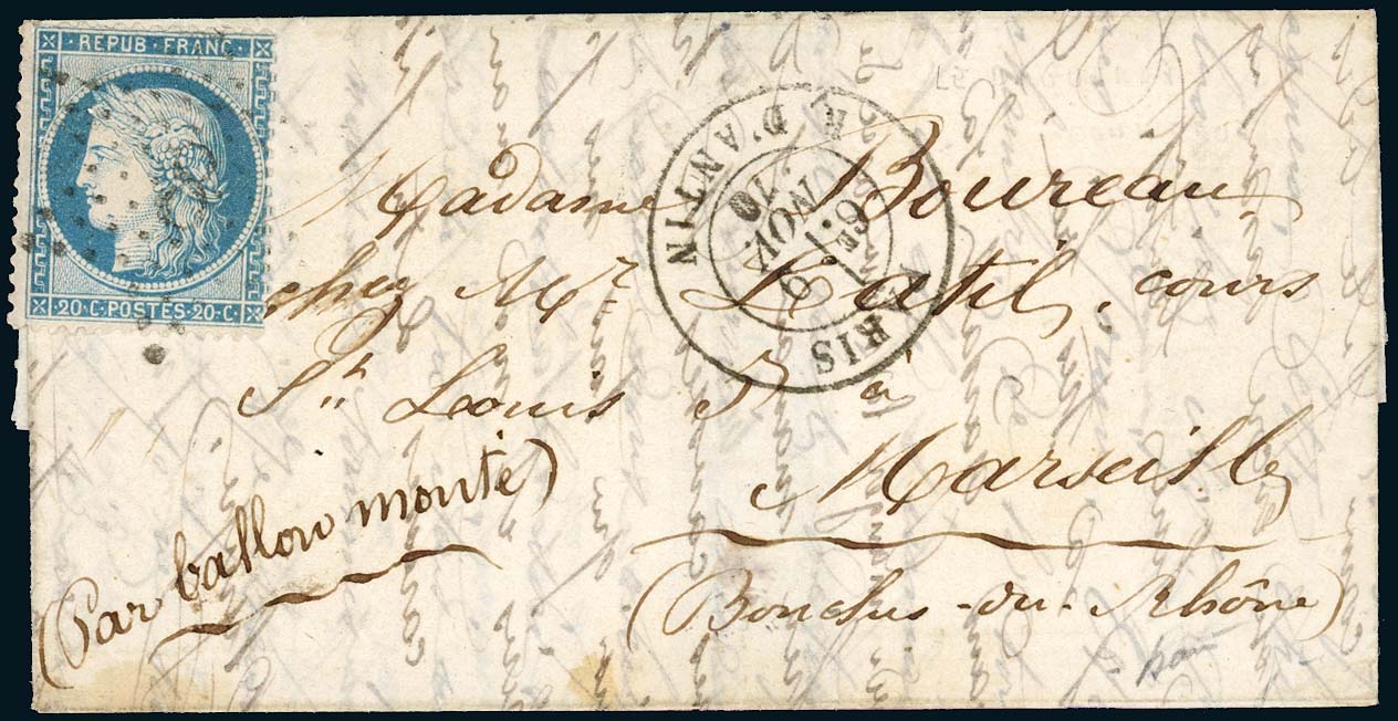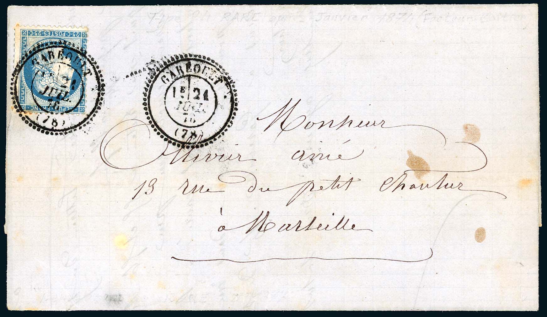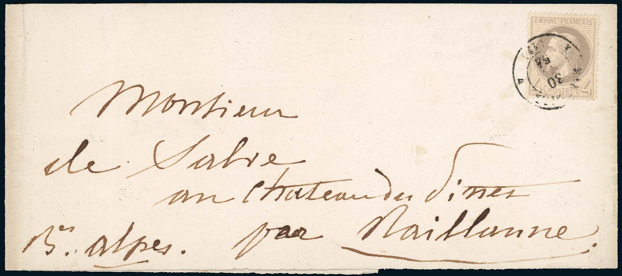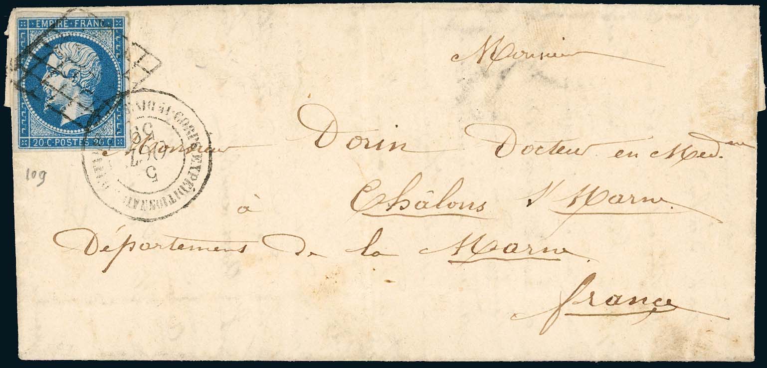 54 | N°3 OB PC 1896 sur lettre de Marseille pour Lyon (ex. Dubus) 29 janvier 1855 TB | 1250 | 1750 | 1250 | enchérir | |