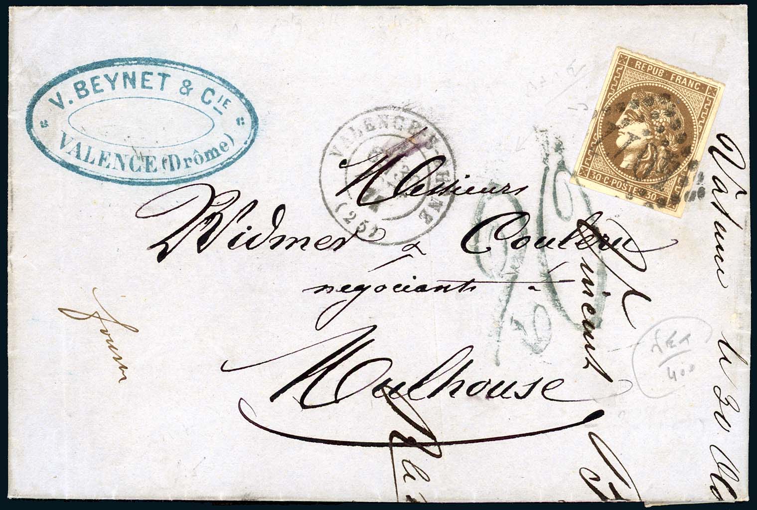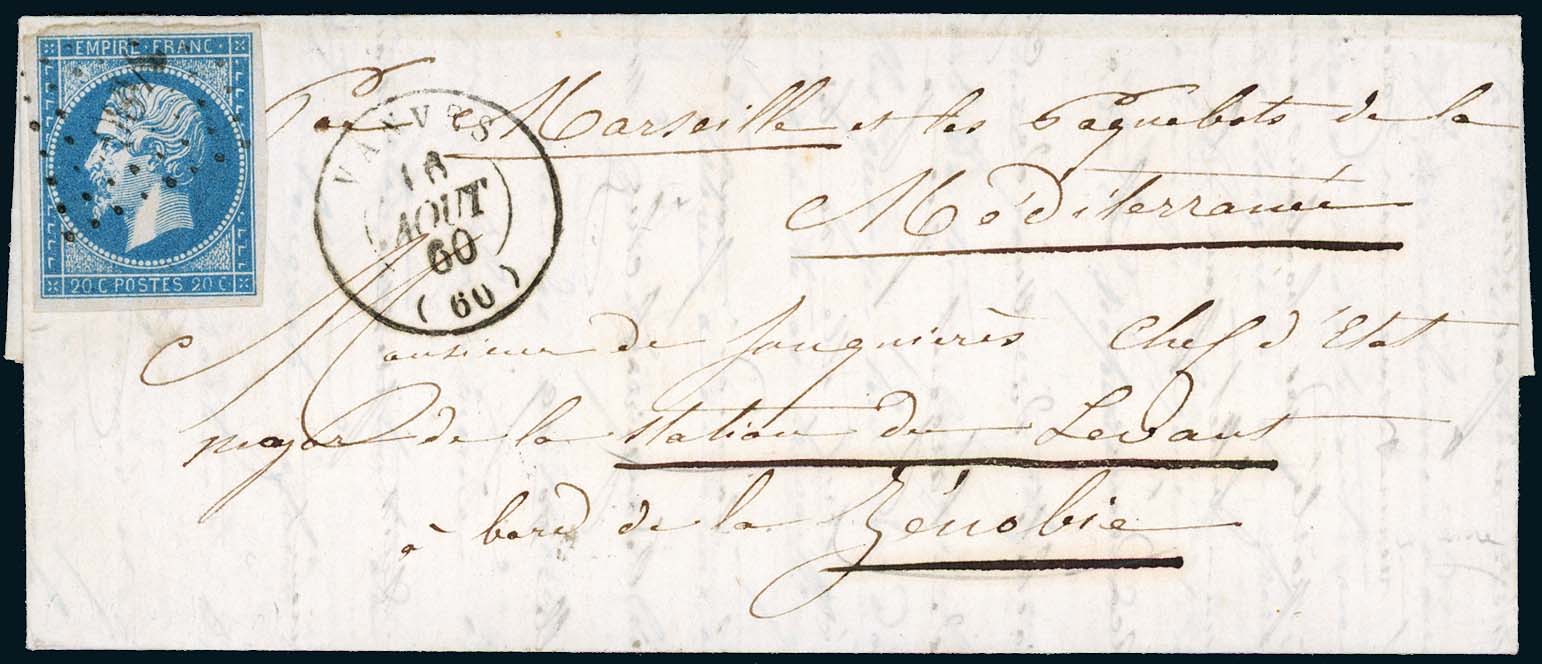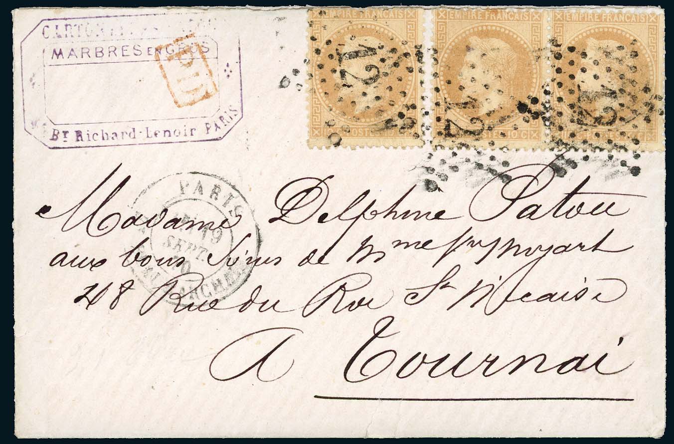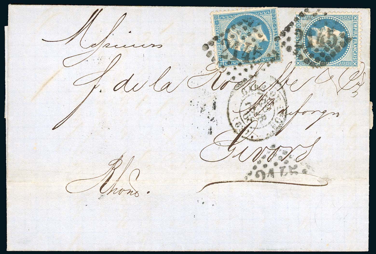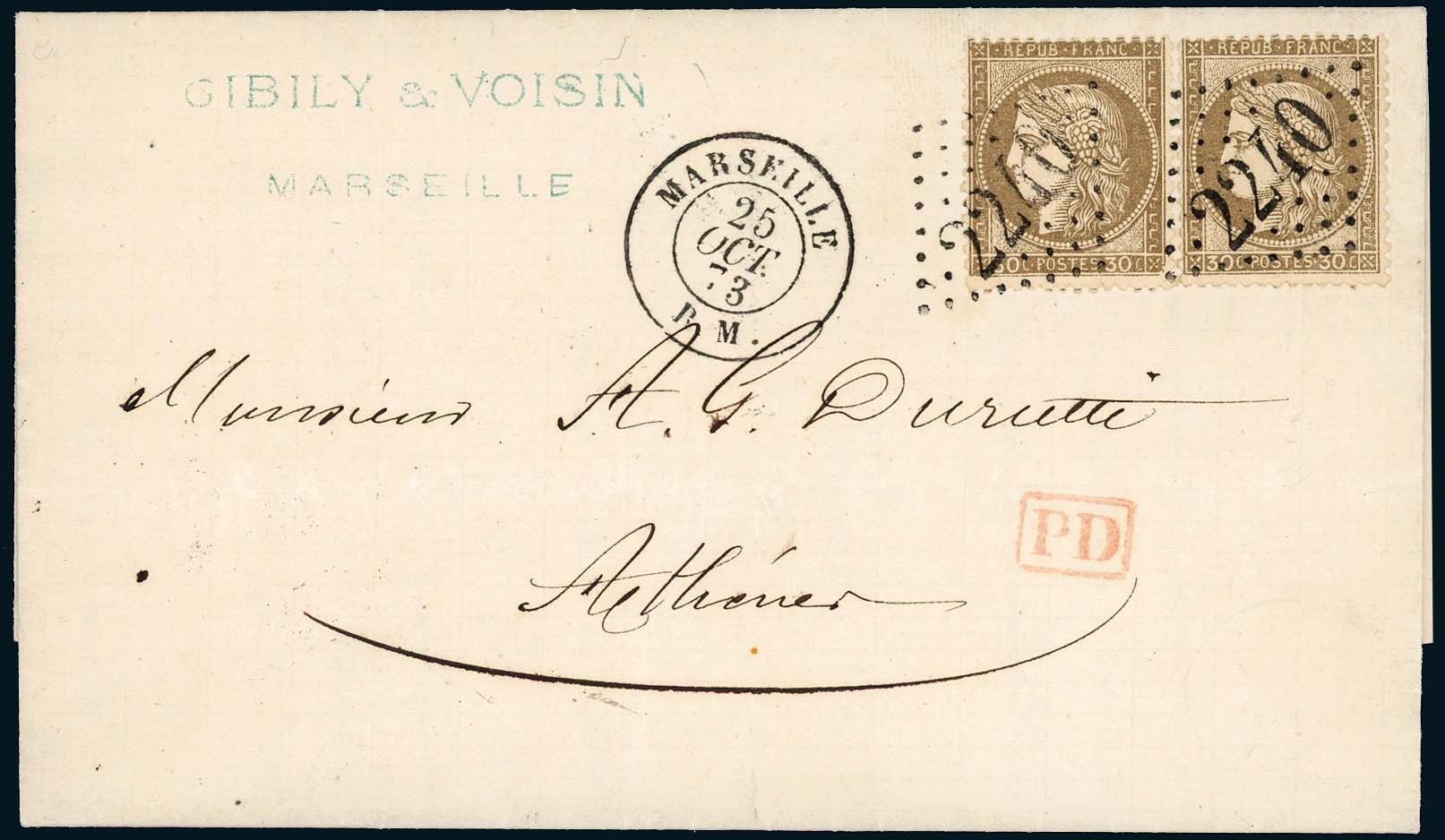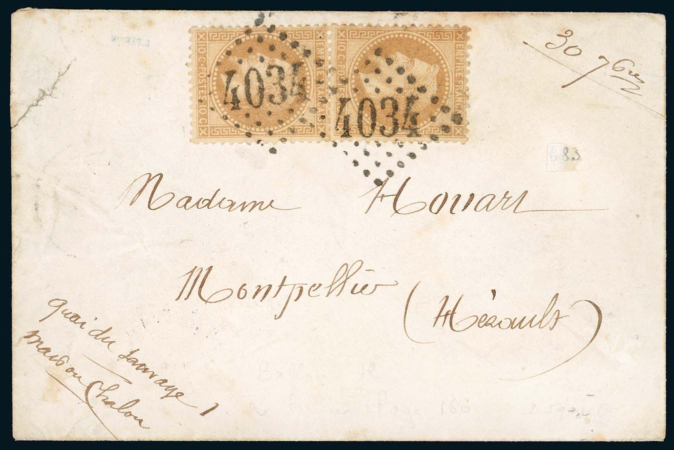 54 | N°3 OB PC 1896 sur lettre de Marseille pour Lyon (ex. Dubus) 29 janvier 1855 TB | 1250 | 1750 | 1250 | enchérir | |