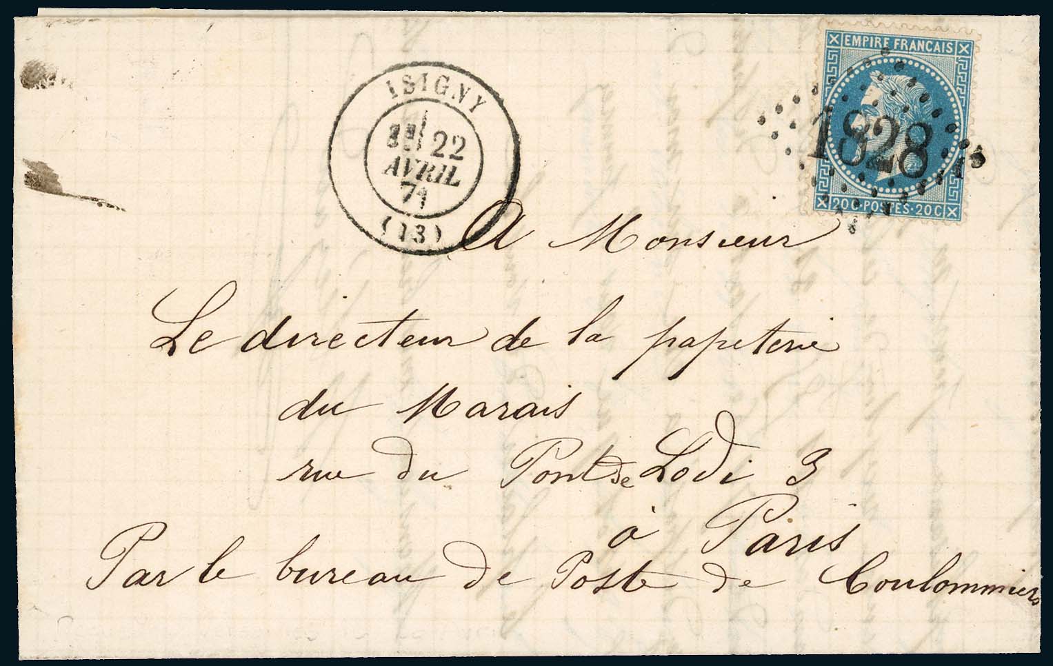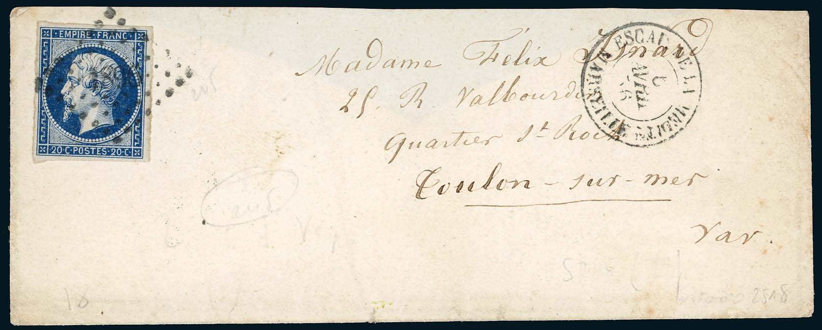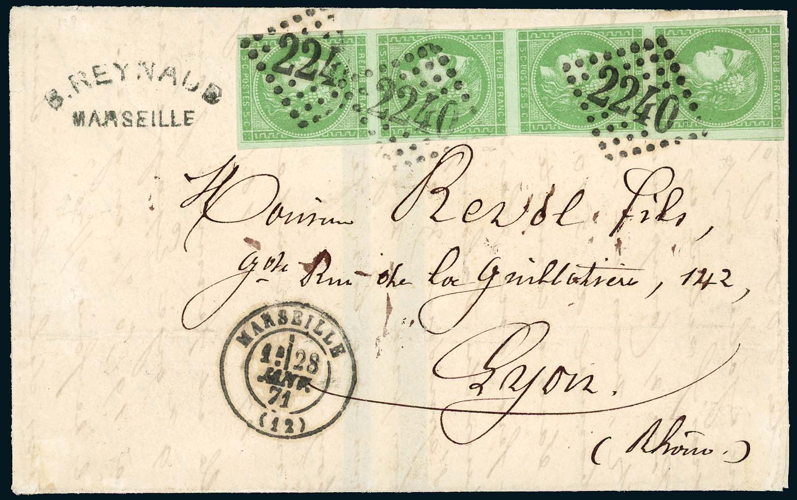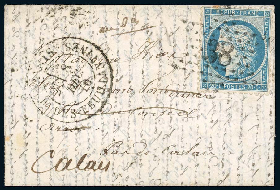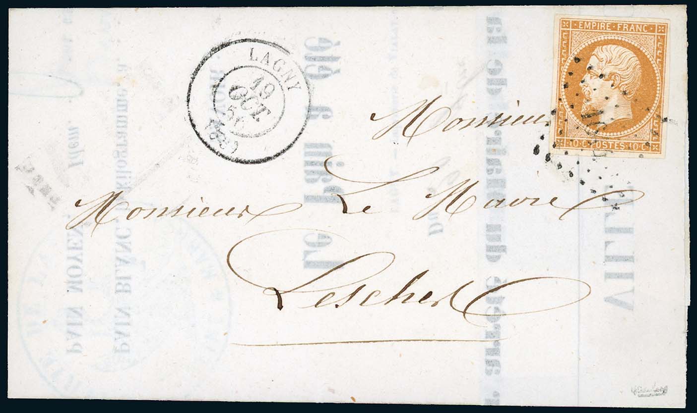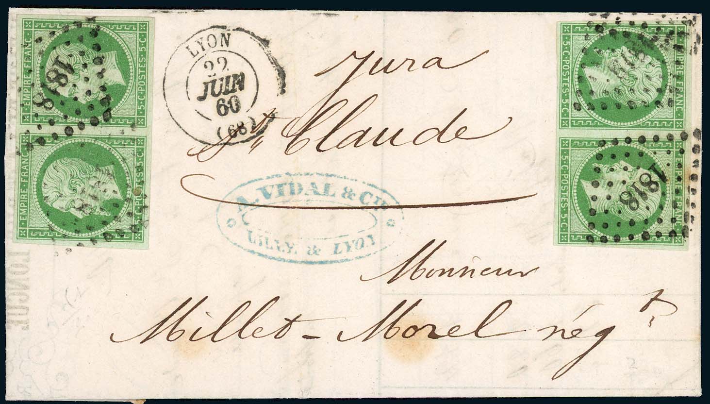 54 | N°3 OB PC 1896 sur lettre de Marseille pour Lyon (ex. Dubus) 29 janvier 1855 TB | 1250 | 1750 | 1250 | enchérir | |