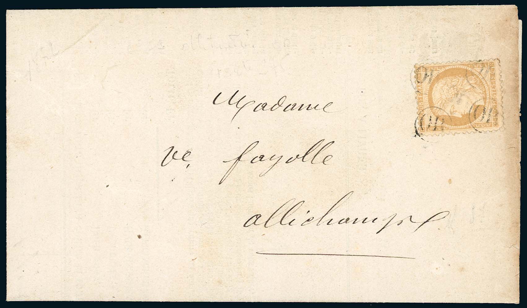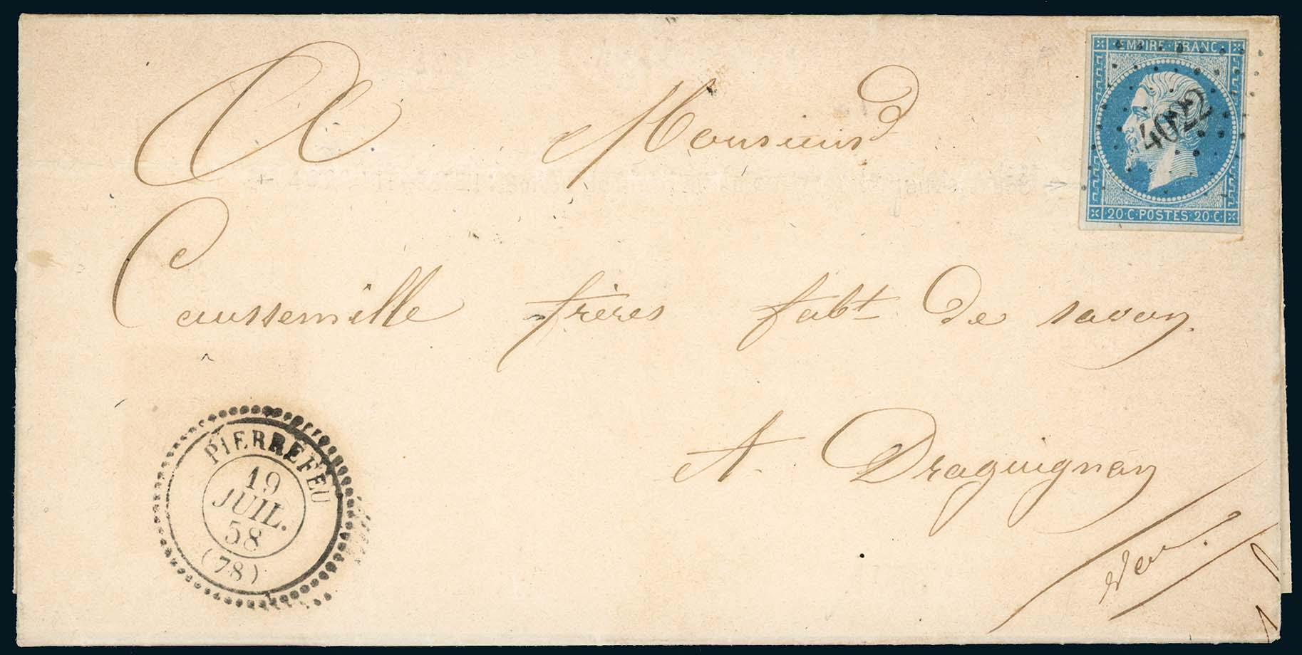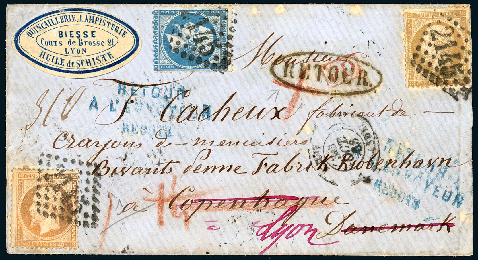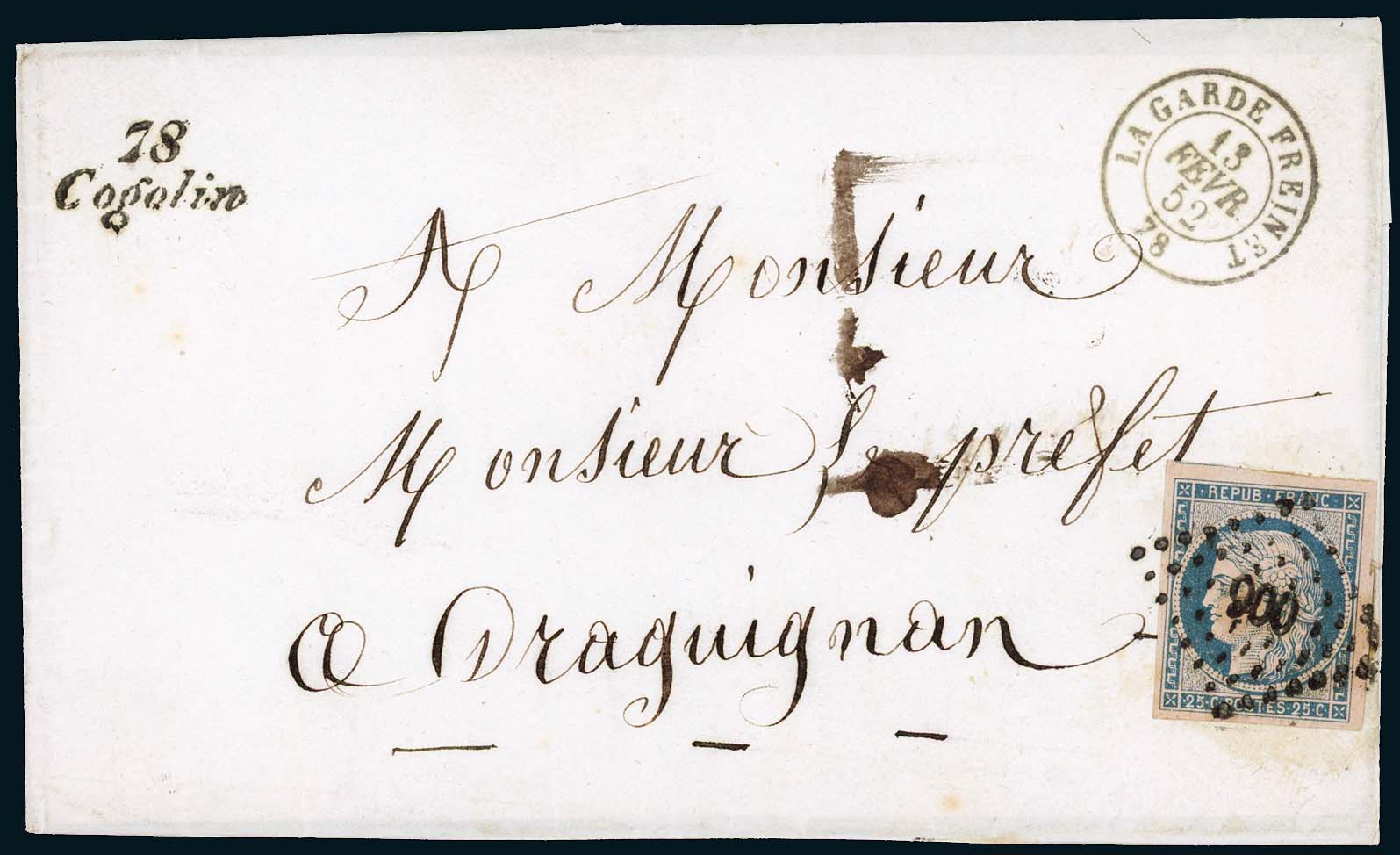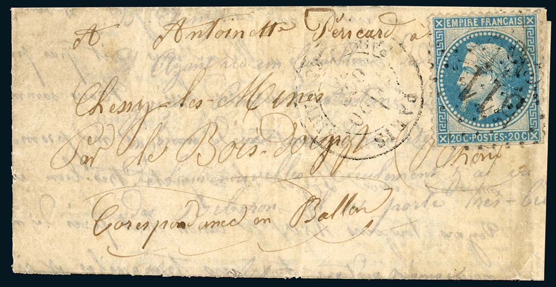 54 | N°3 OB PC 1896 sur lettre de Marseille pour Lyon (ex. Dubus) 29 janvier 1855 TB | 1250 | 1750 | 1250 | enchérir | |