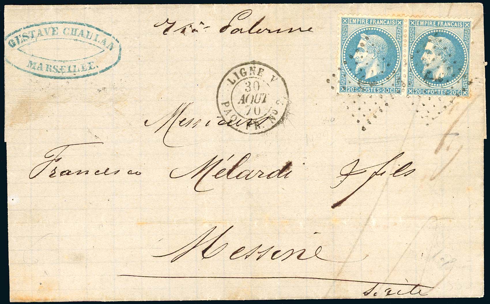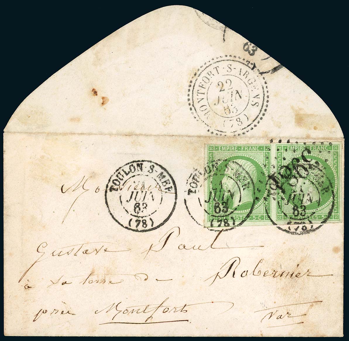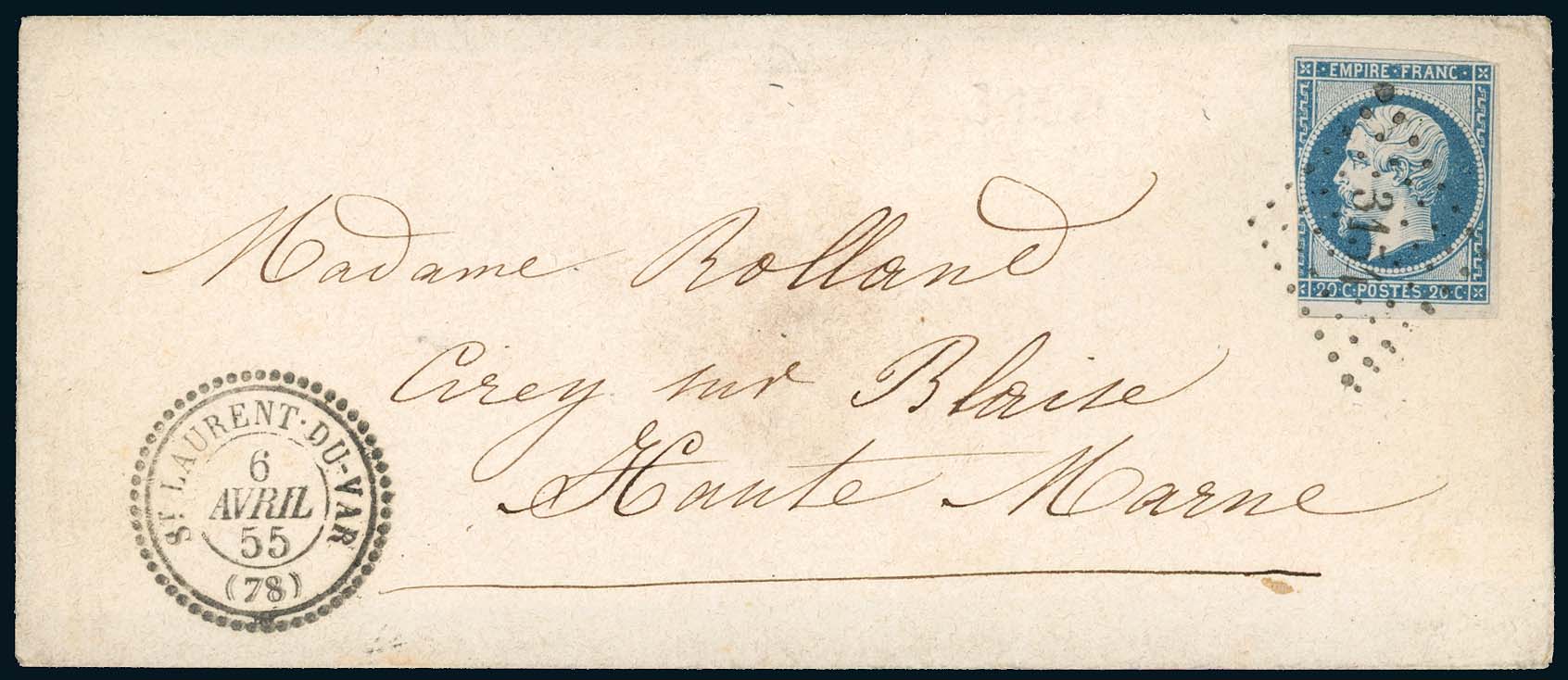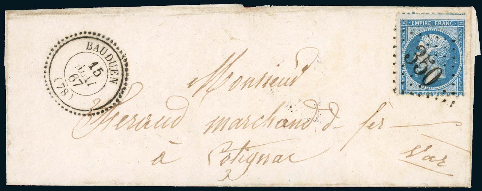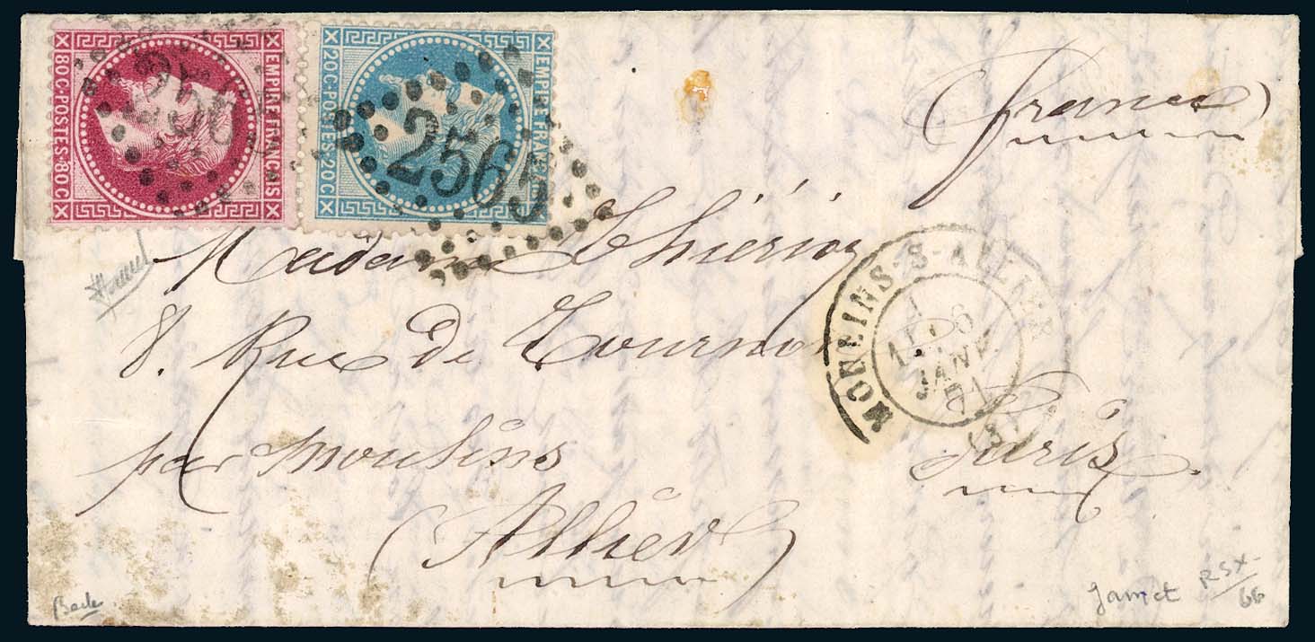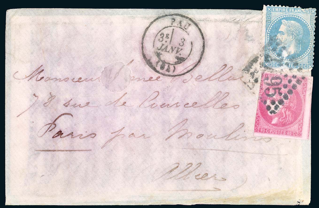 54 | N°3 OB PC 1896 sur lettre de Marseille pour Lyon (ex. Dubus) 29 janvier 1855 TB | 1250 | 1750 | 1250 | enchérir | |
