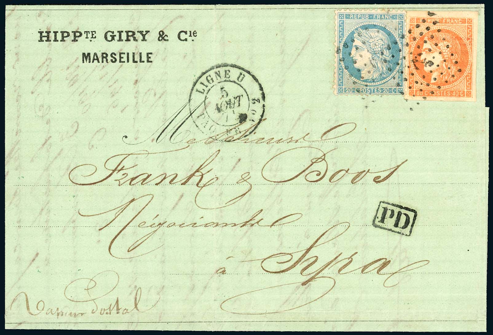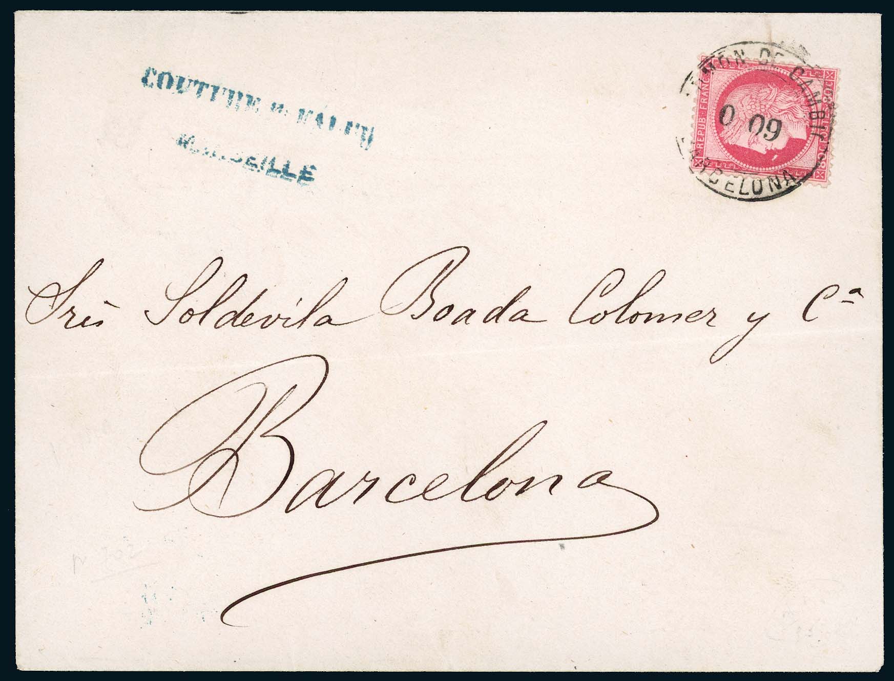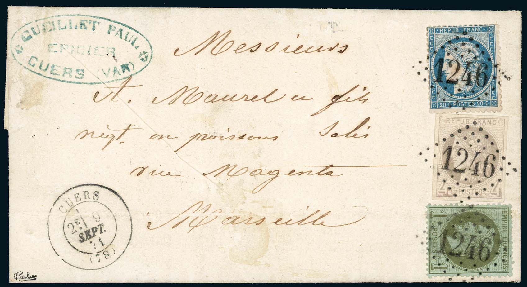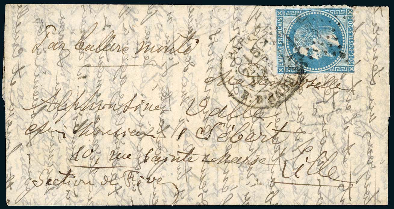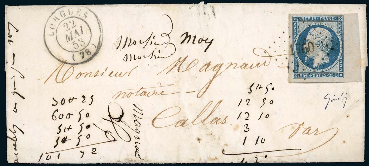 54 | N°3 OB PC 1896 sur lettre de Marseille pour Lyon (ex. Dubus) 29 janvier 1855 TB | 1250 | 1750 | 1250 | enchérir | |