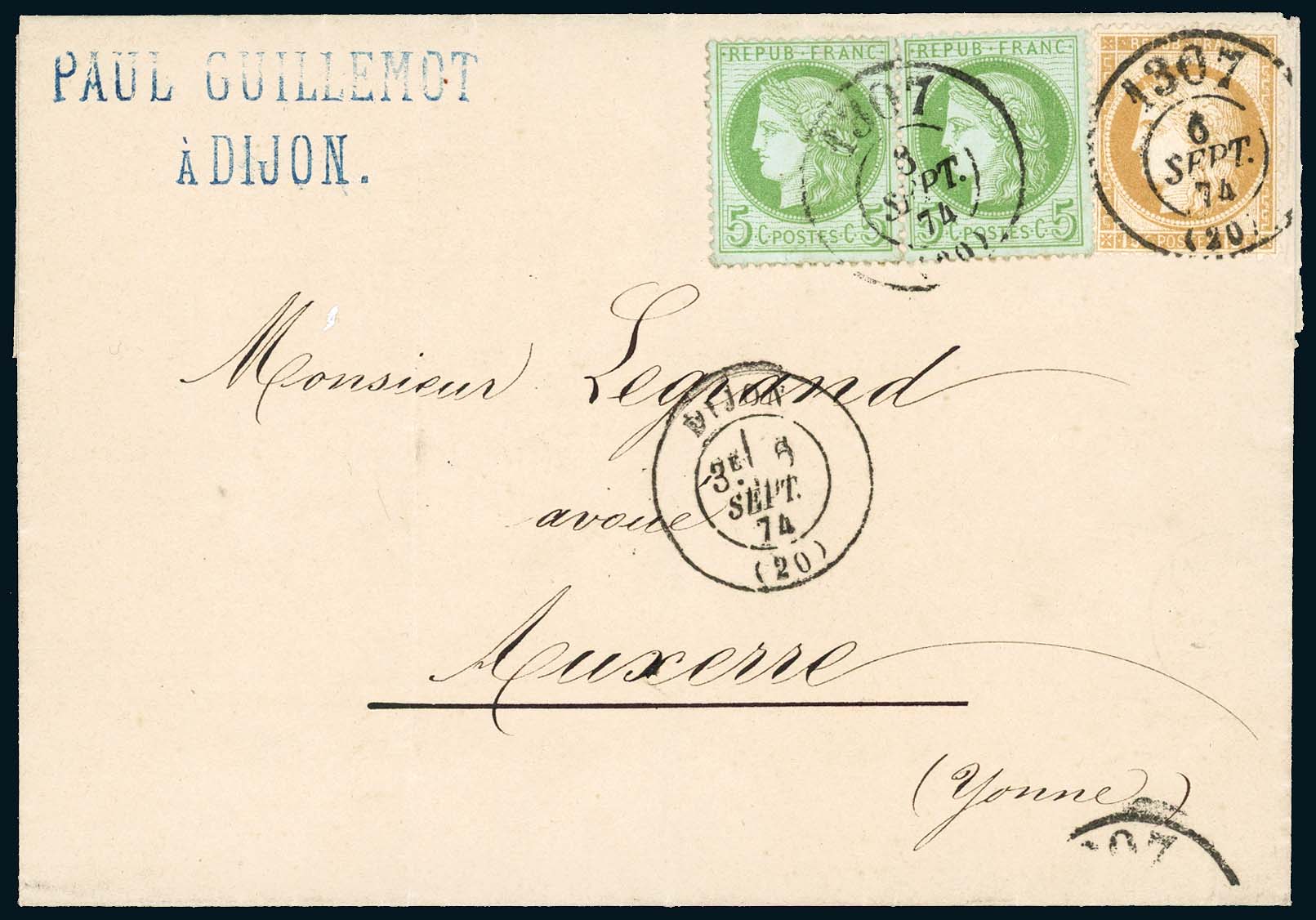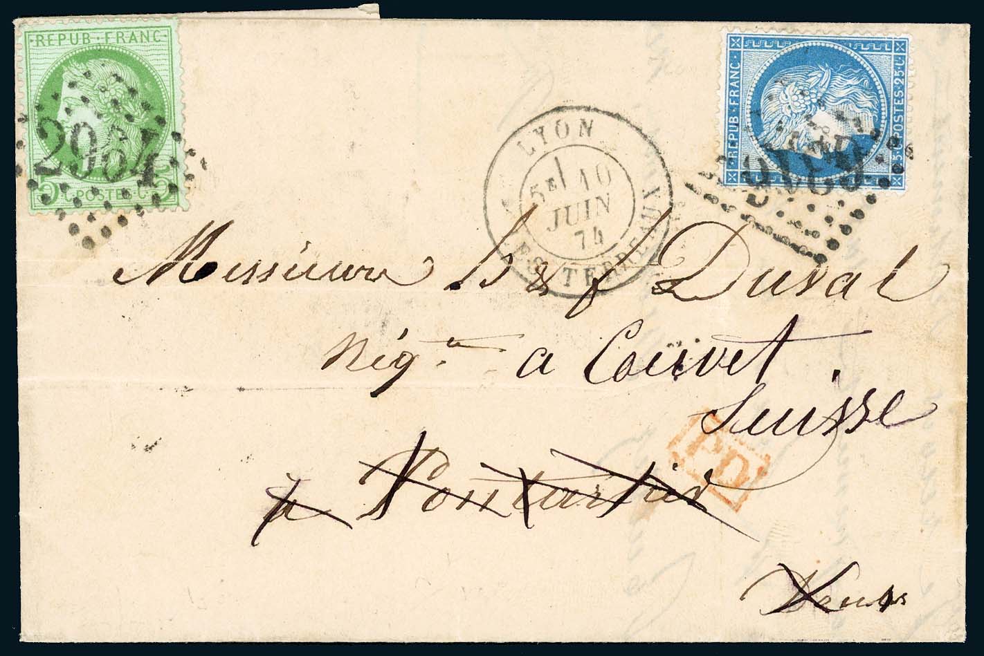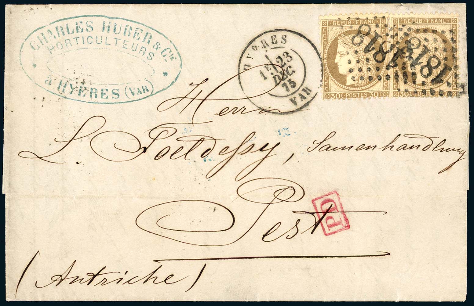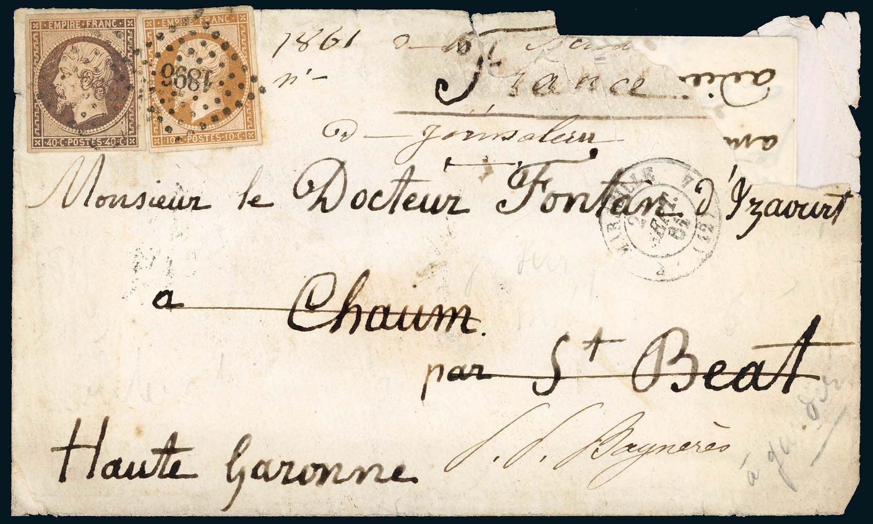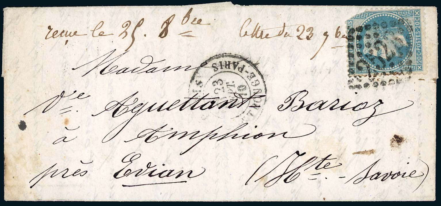 54 | N°3 OB PC 1896 sur lettre de Marseille pour Lyon (ex. Dubus) 29 janvier 1855 TB | 1250 | 1750 | 1250 | enchérir | |