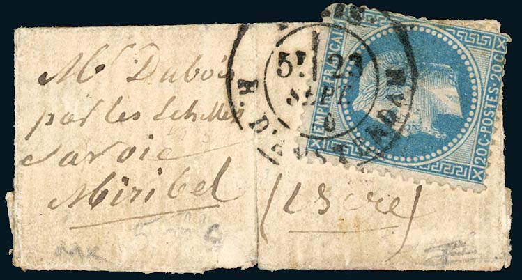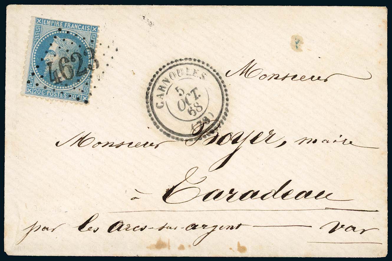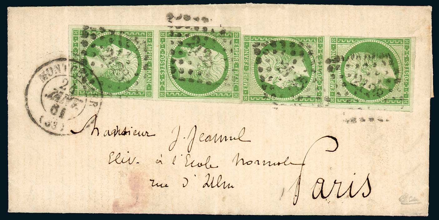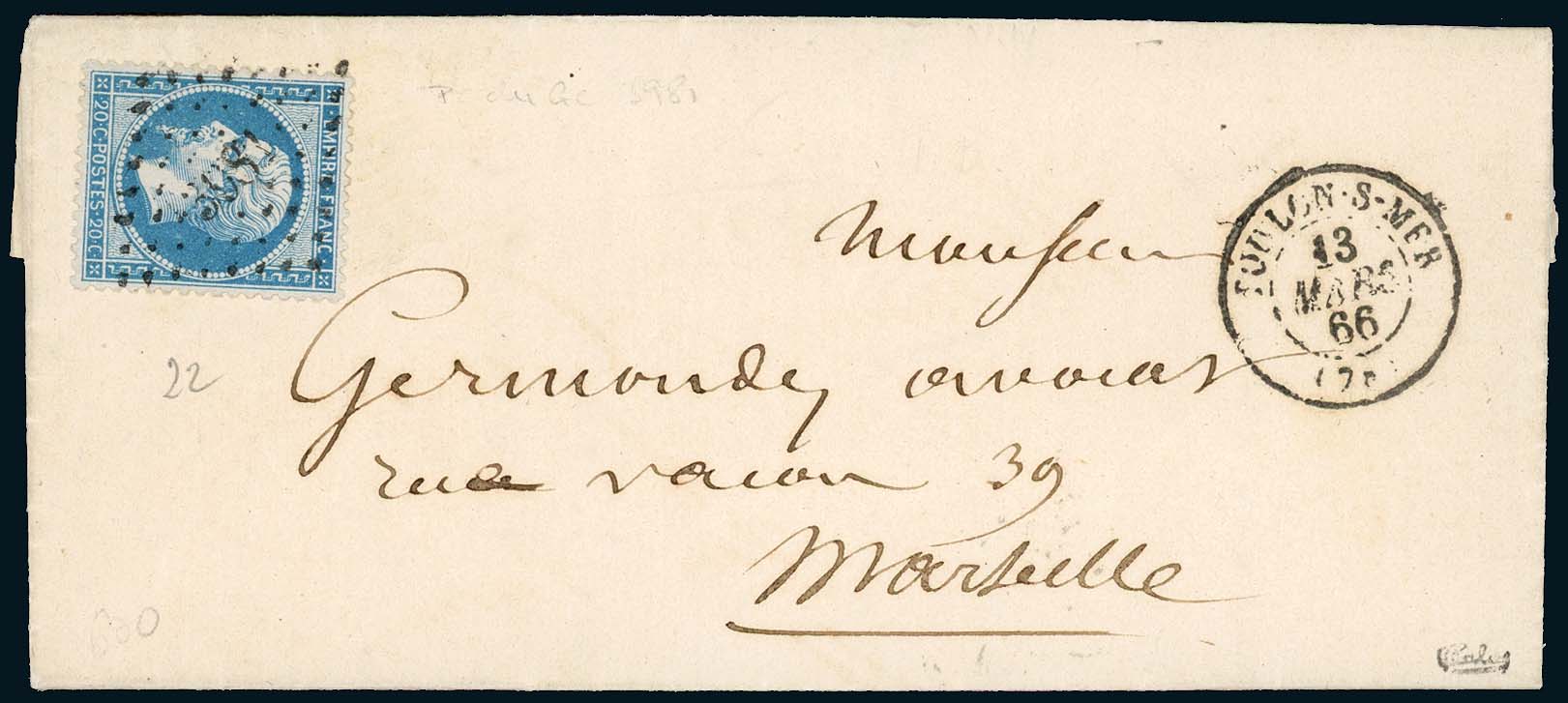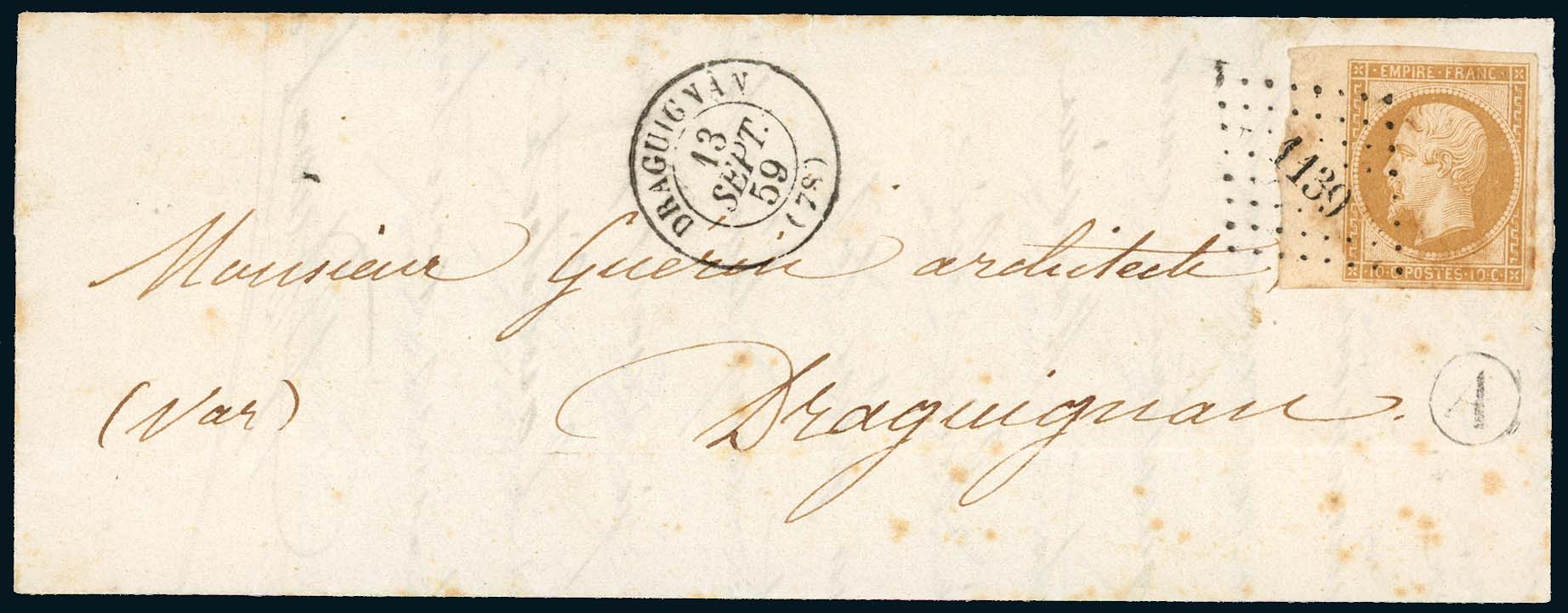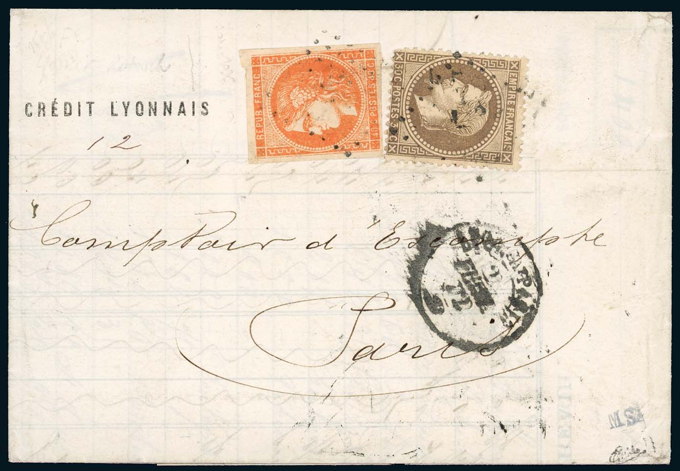 54 | N°3 OB PC 1896 sur lettre de Marseille pour Lyon (ex. Dubus) 29 janvier 1855 TB | 1250 | 1750 | 1250 | enchérir | |