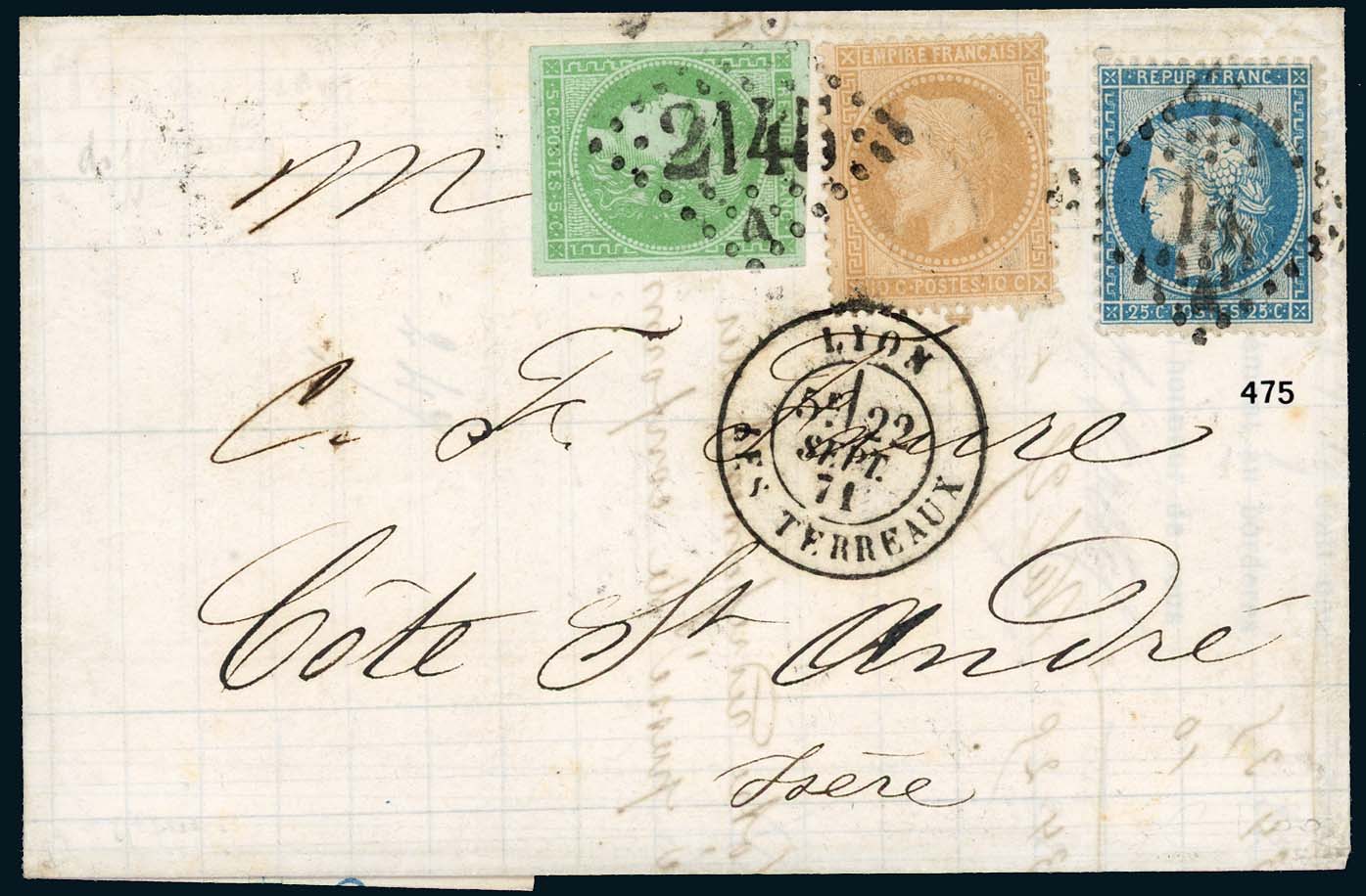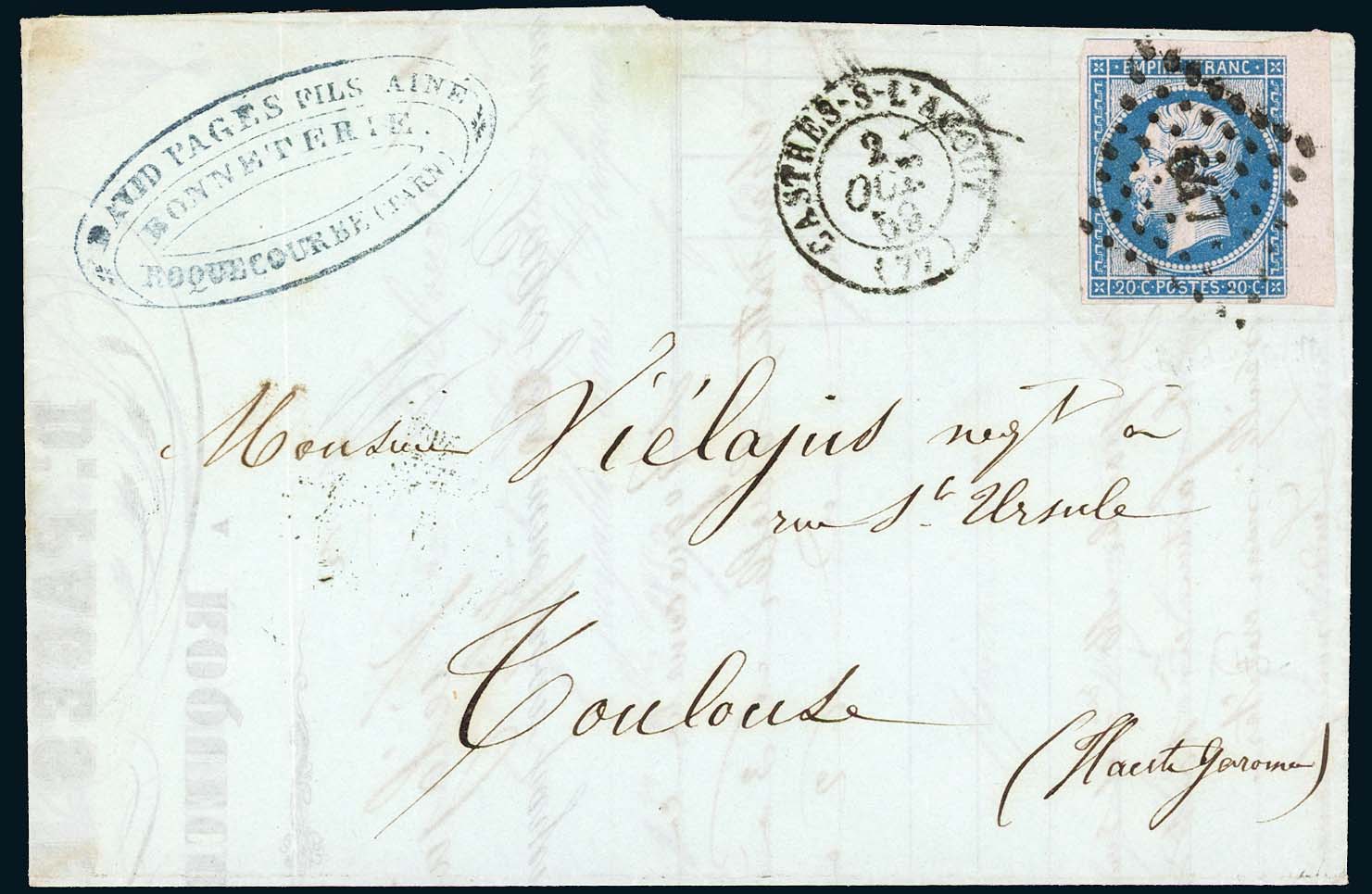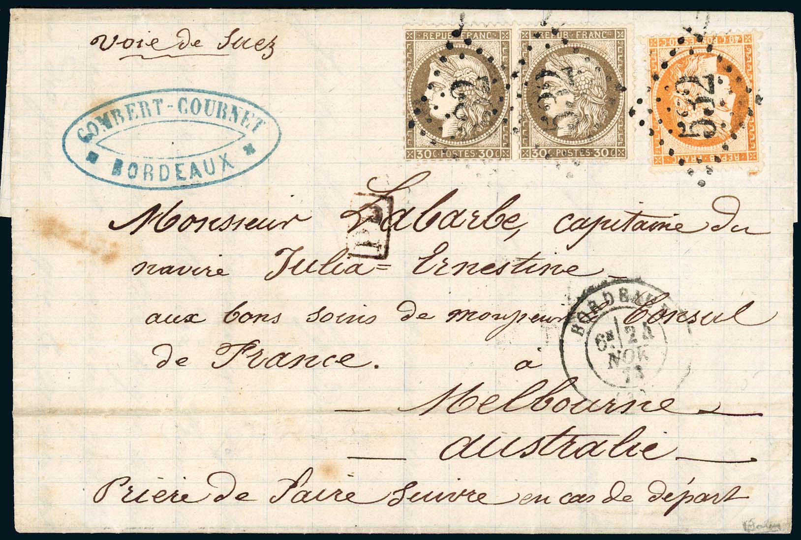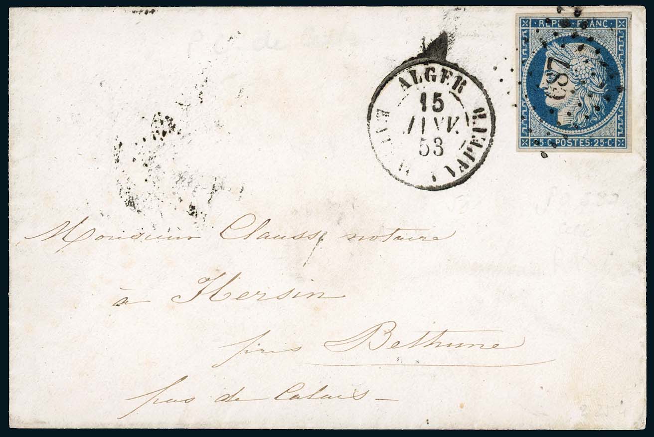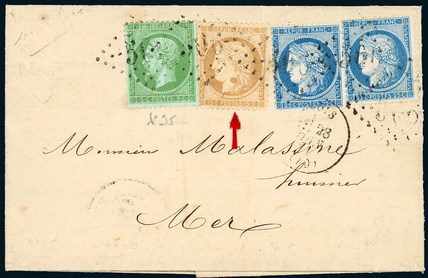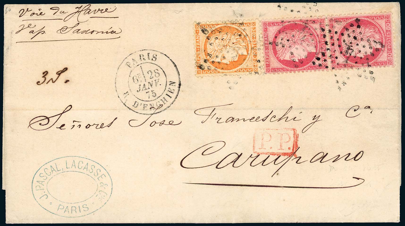 54 | N°3 OB PC 1896 sur lettre de Marseille pour Lyon (ex. Dubus) 29 janvier 1855 TB | 1250 | 1750 | 1250 | enchérir | |