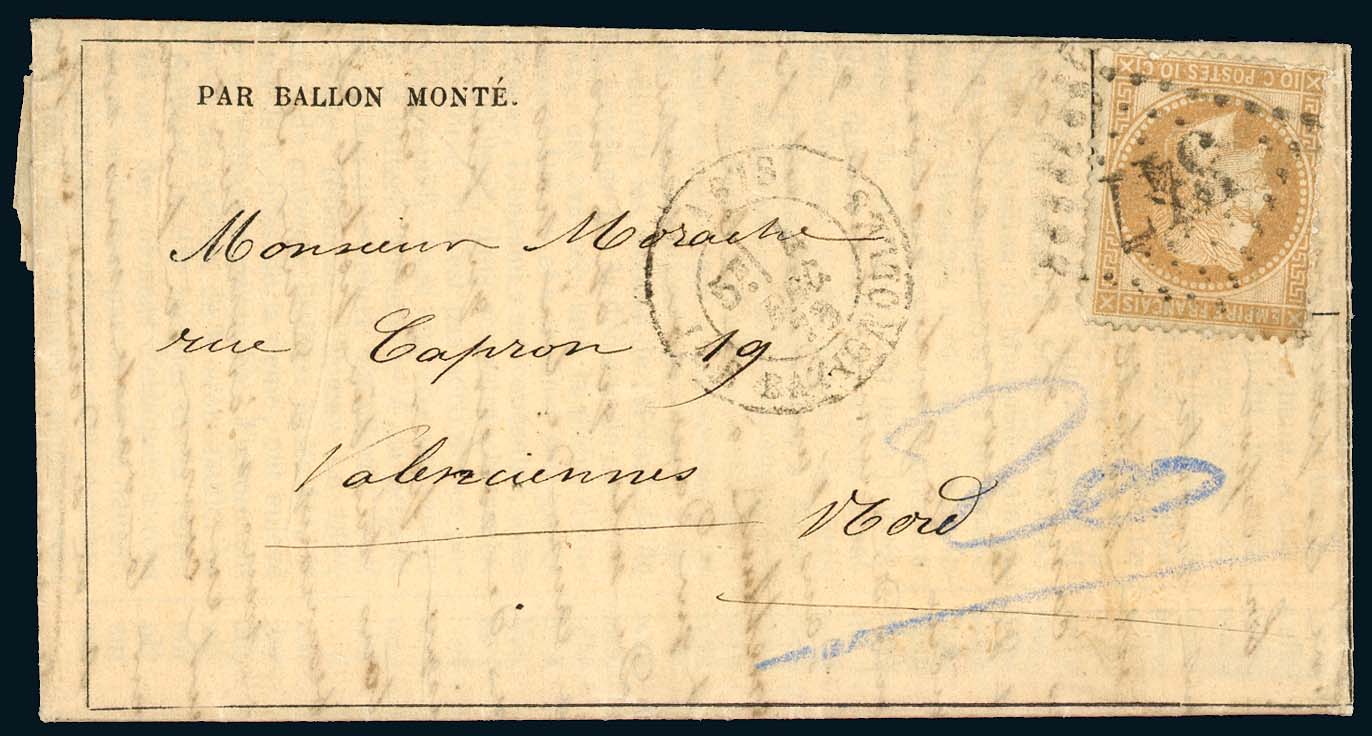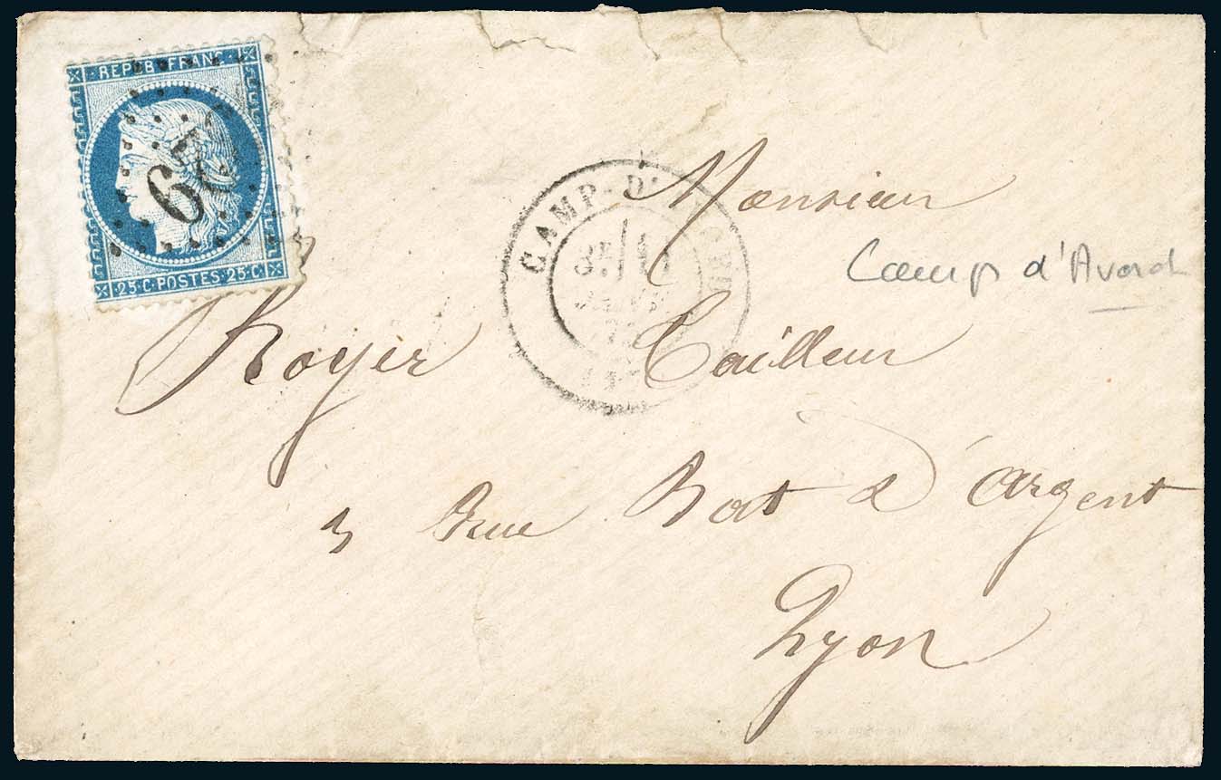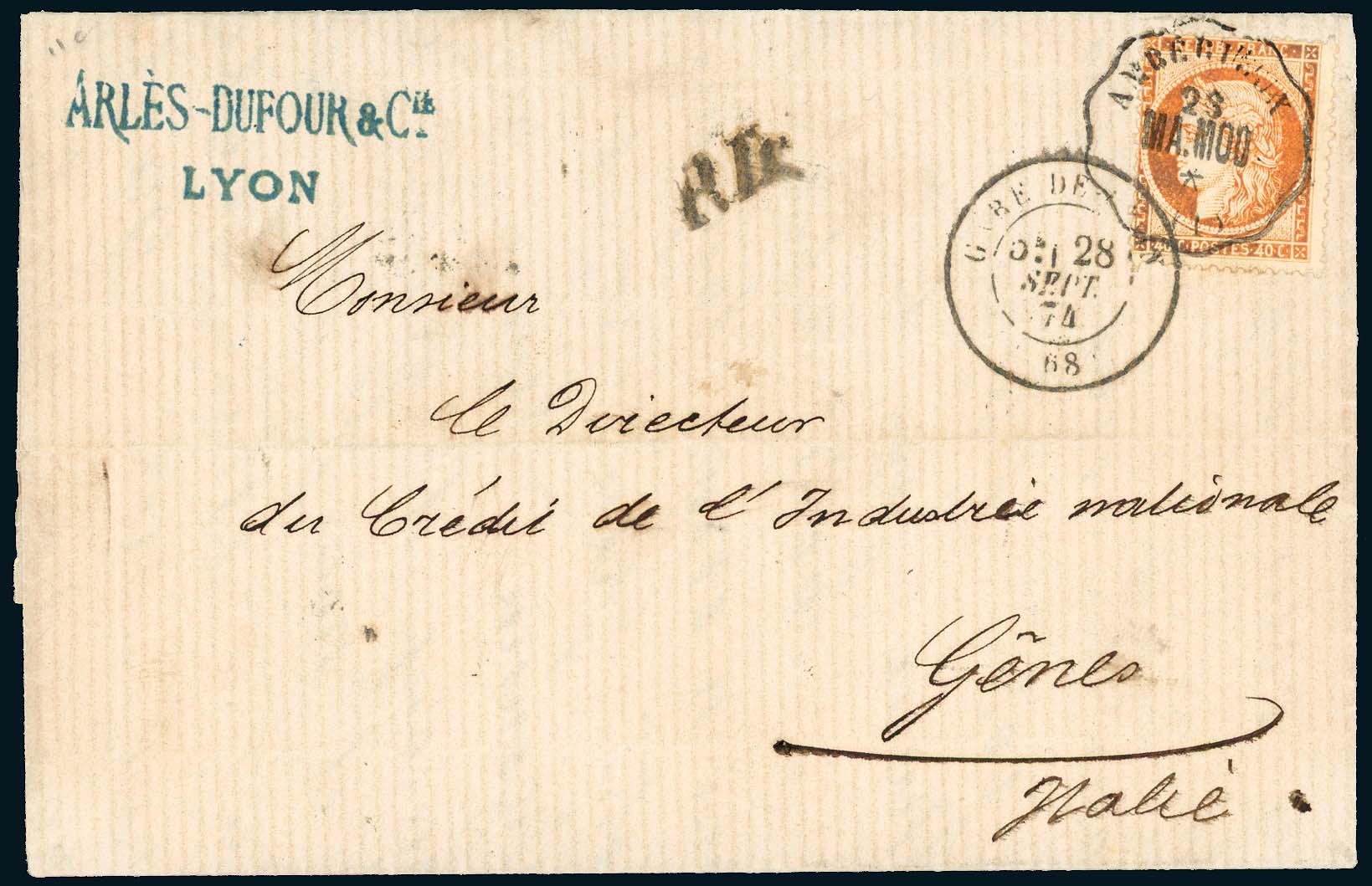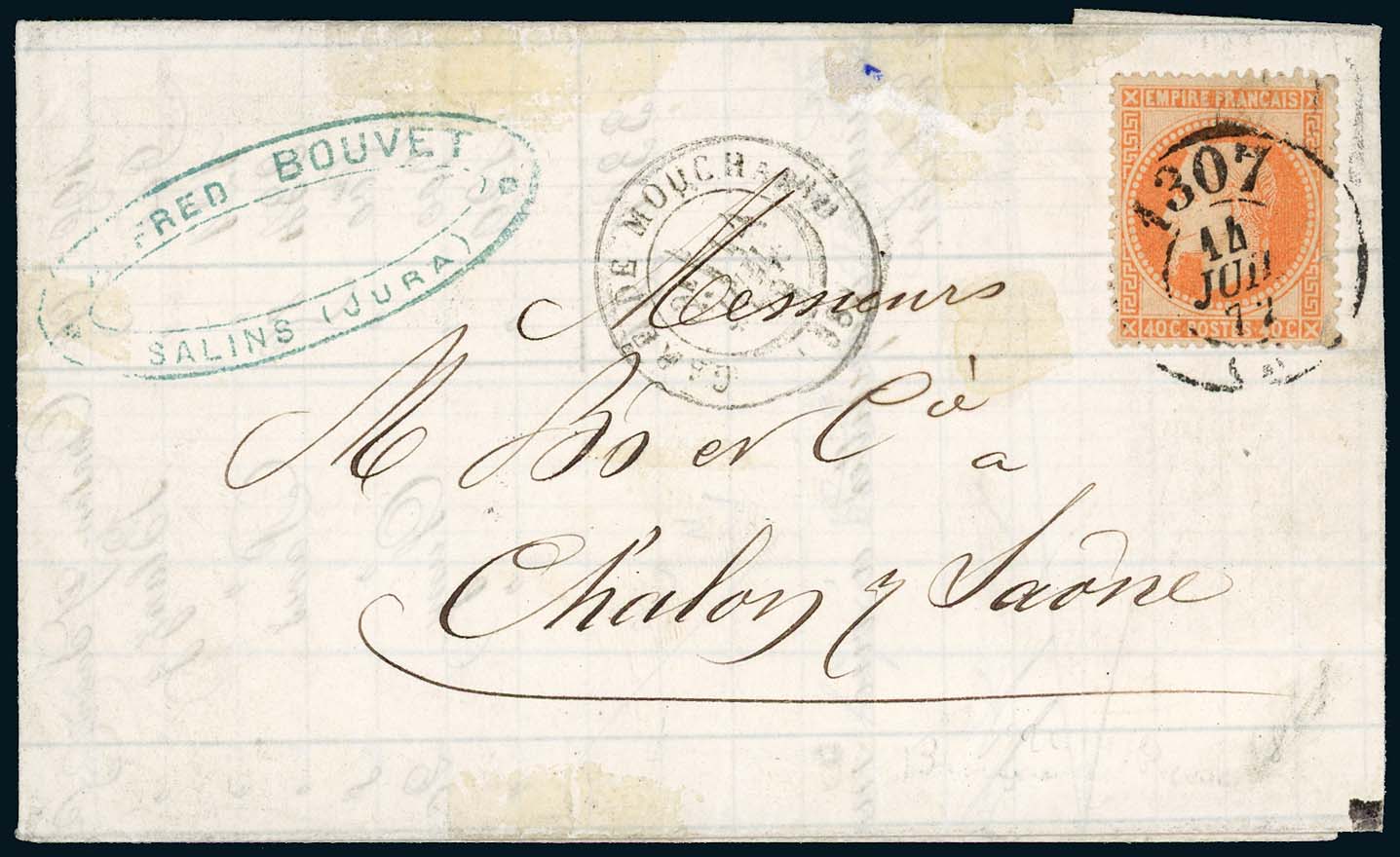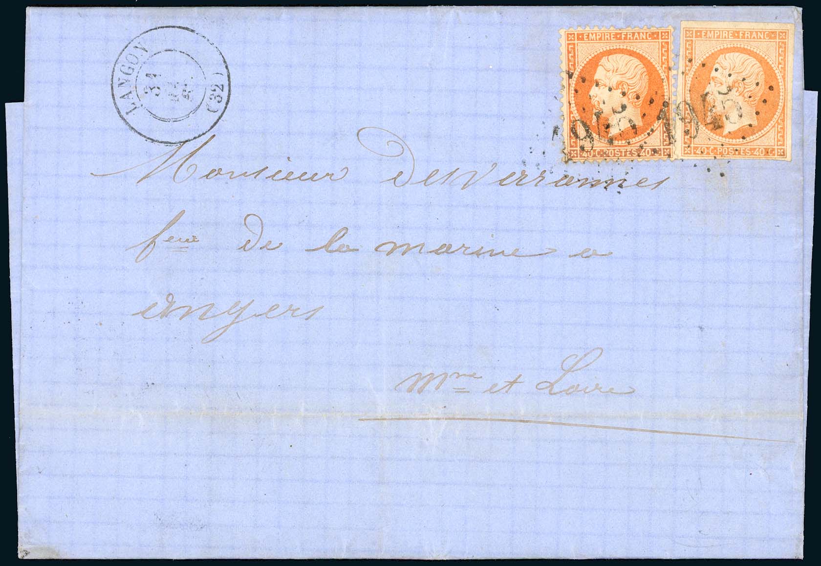 54 | N°3 OB PC 1896 sur lettre de Marseille pour Lyon (ex. Dubus) 29 janvier 1855 TB | 1250 | 1750 | 1250 | enchérir | |