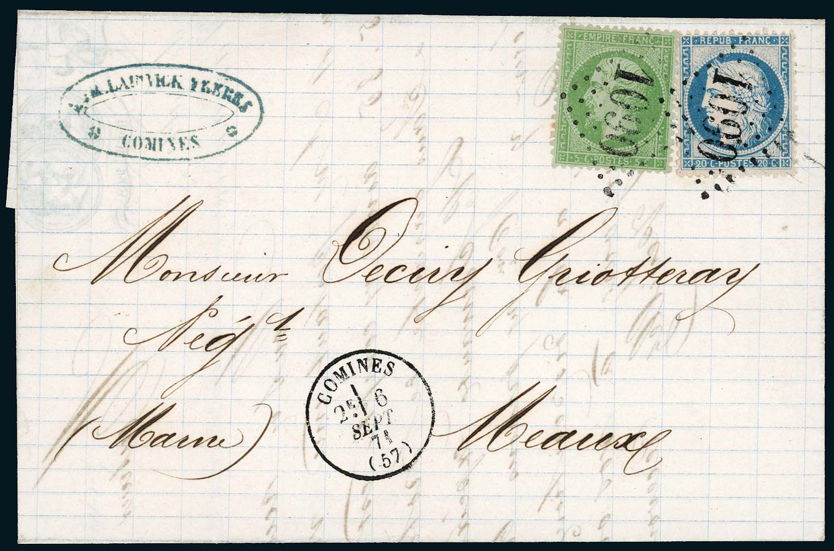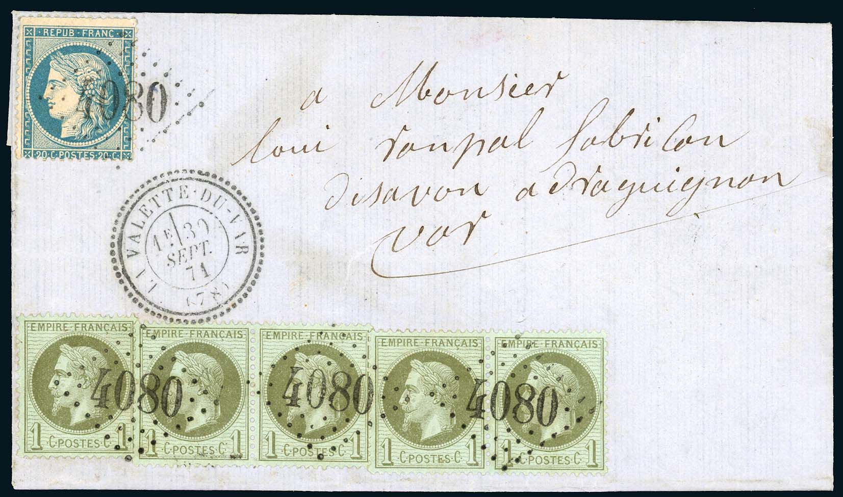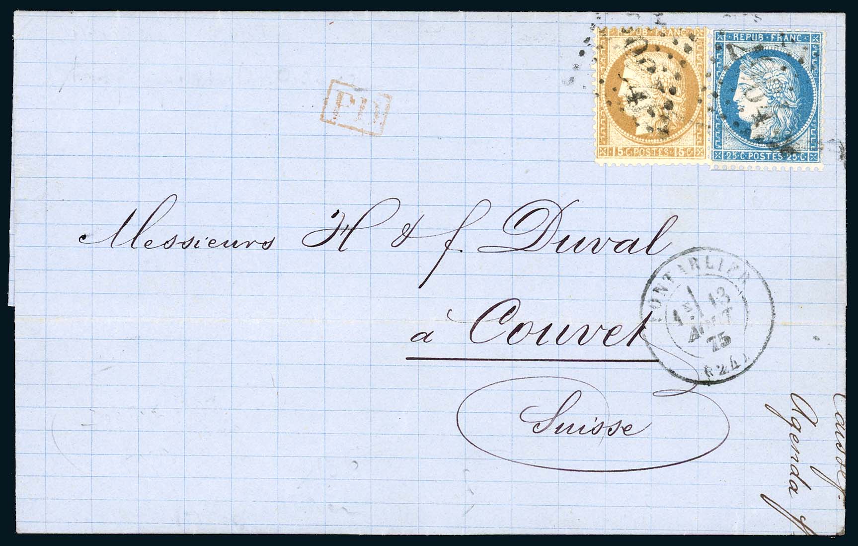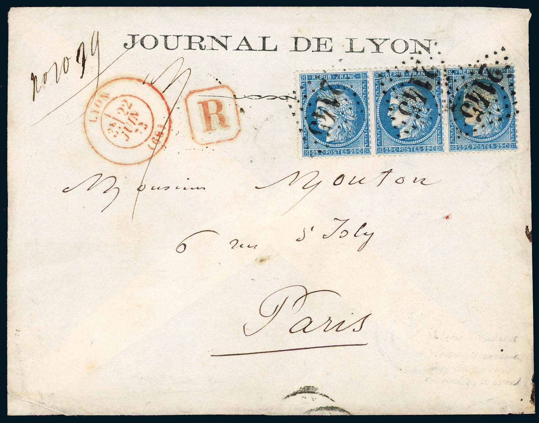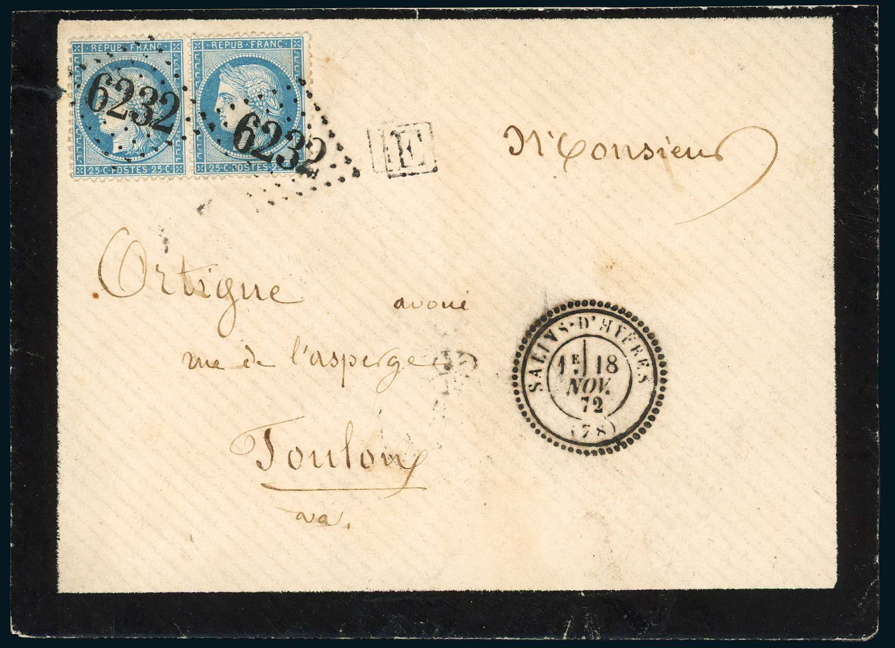 54 | N°3 OB PC 1896 sur lettre de Marseille pour Lyon (ex. Dubus) 29 janvier 1855 TB | 1250 | 1750 | 1250 | enchérir | |