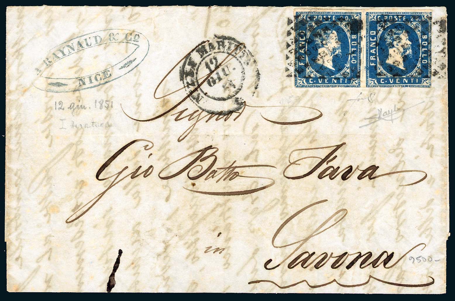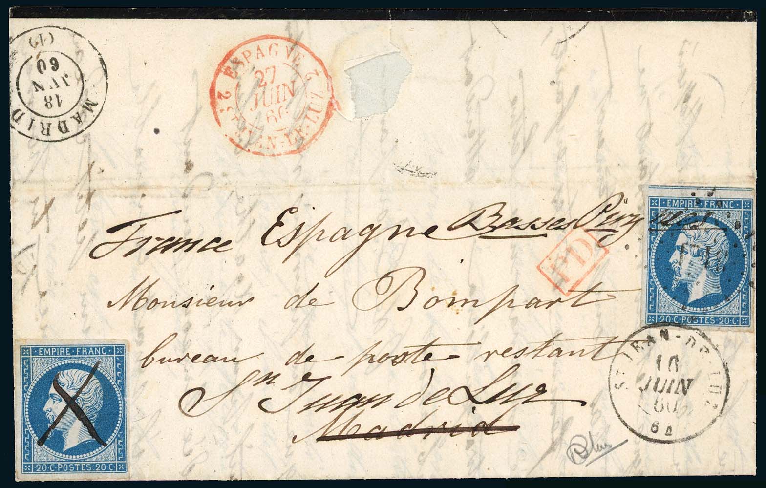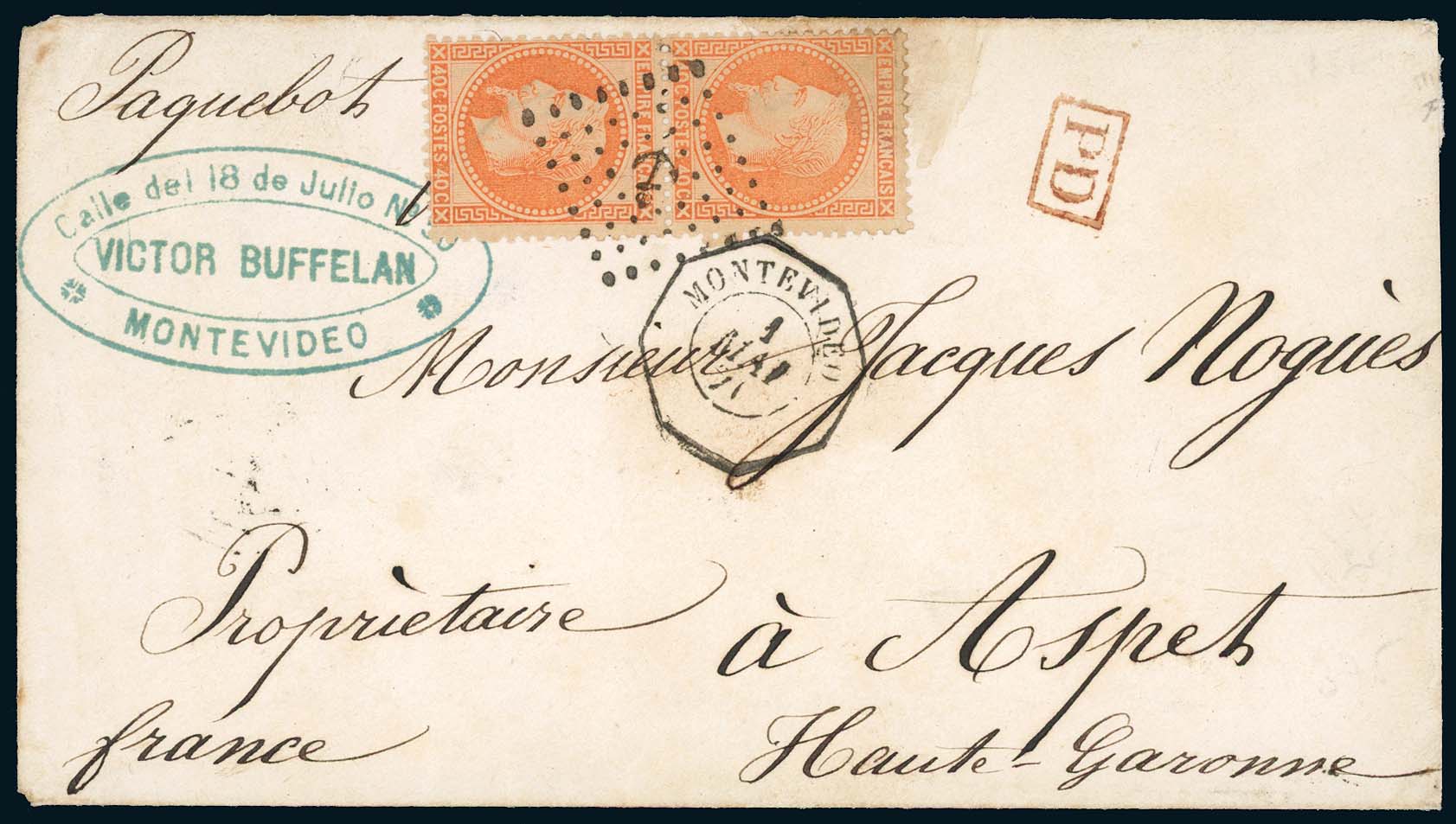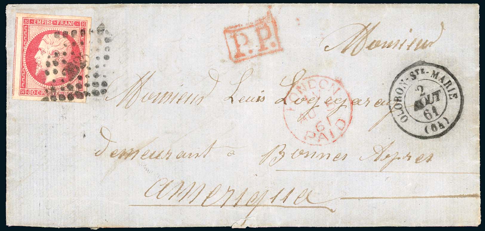 19 | N°1b (bistre verdâtre) en paire OB PC 2488 sur lettre de Pons (Charente-Inférieure) pour Avignon Tarif militaire 1852 TB | 500 | 800 | 500 | enchérir | |