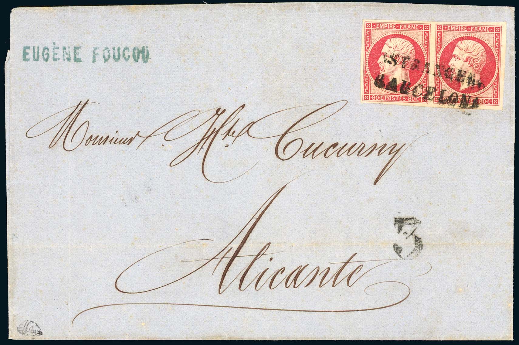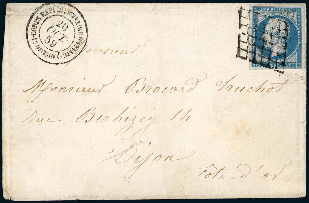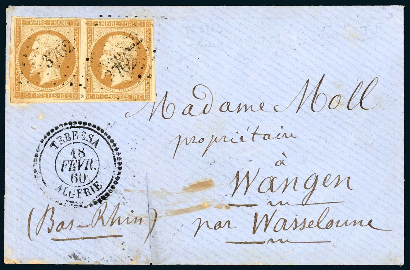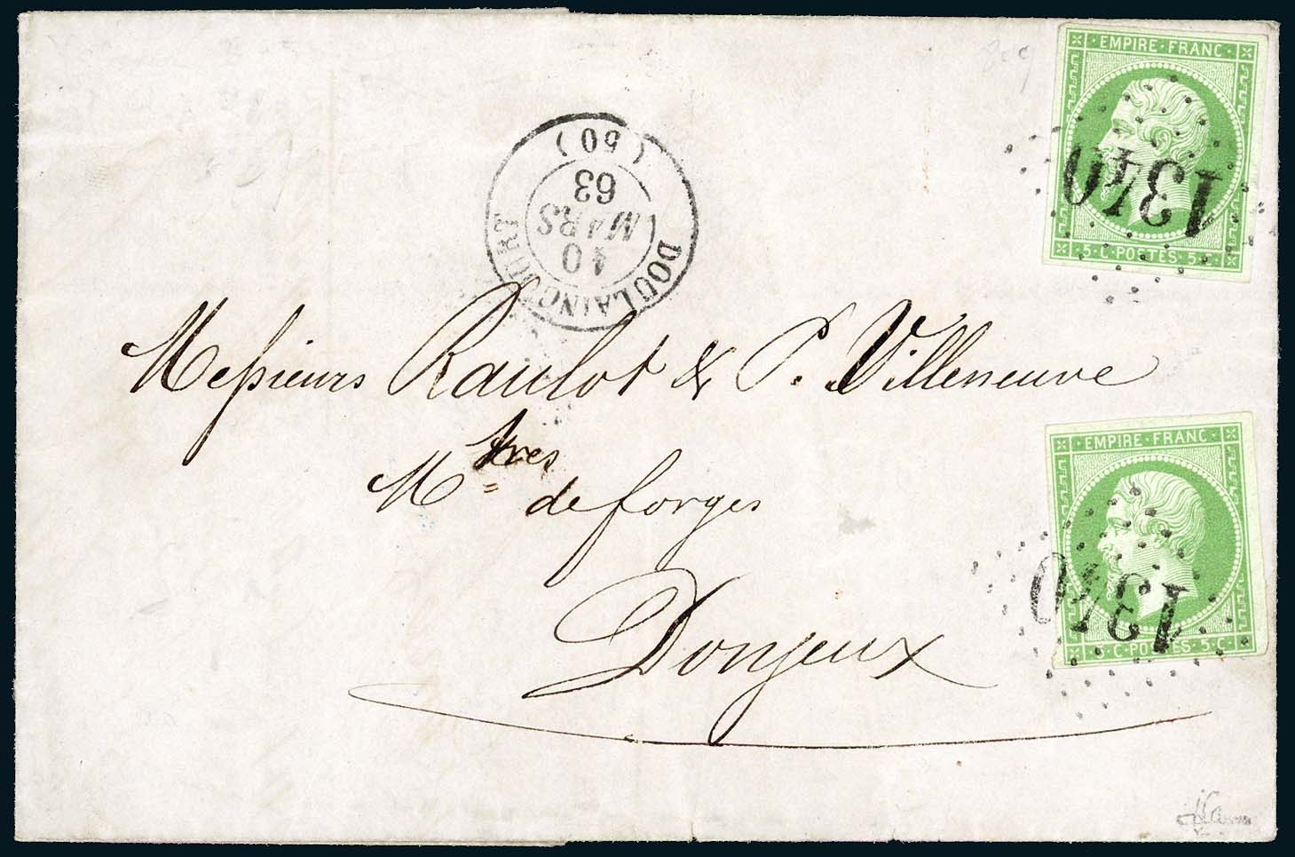 15 | N°1 en paire (tarif militaire) OB grille sur lettre de Montpellier pour Vesoul 5 février 1851 TB | 500 | 800 | 500 | enchérir | |