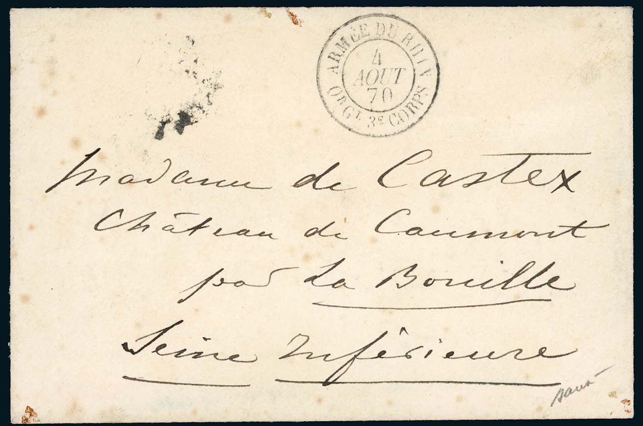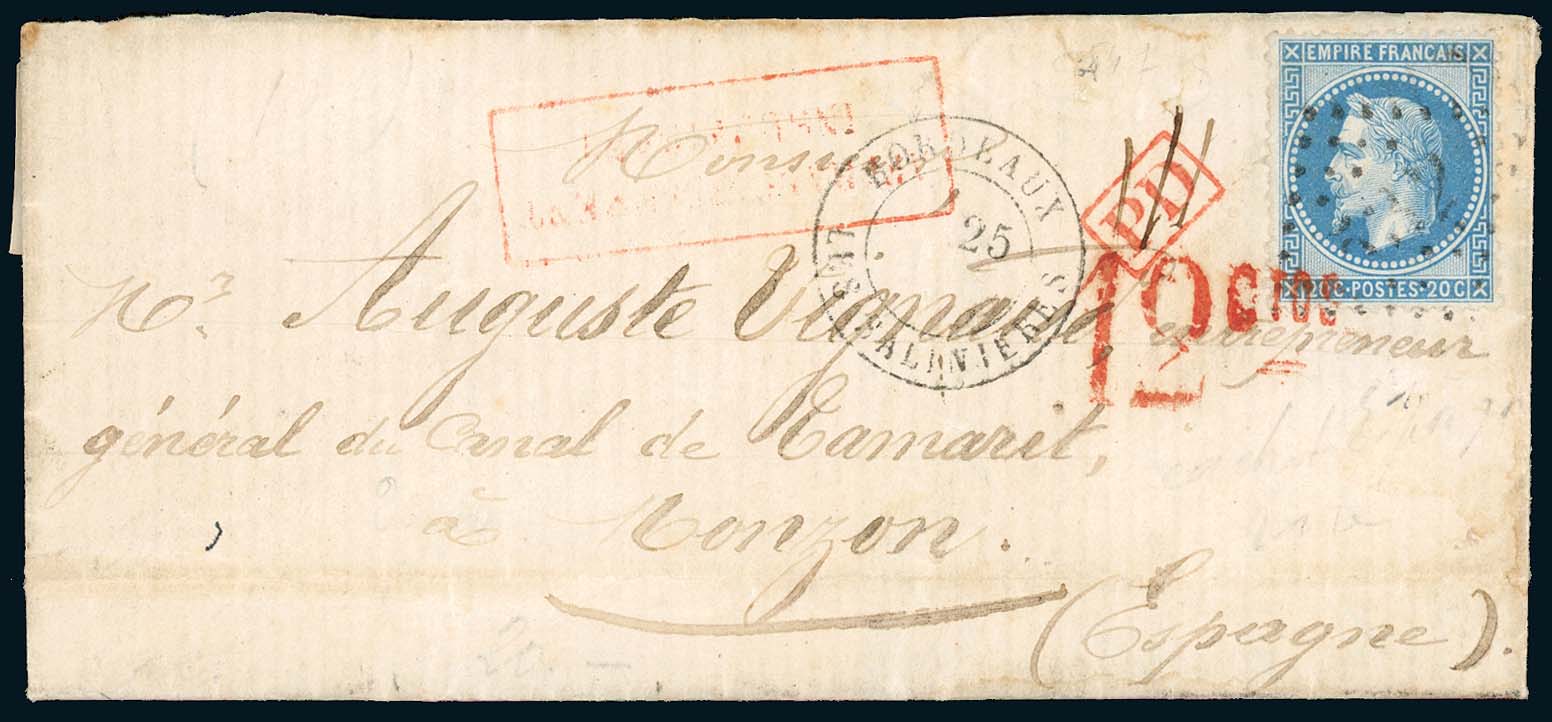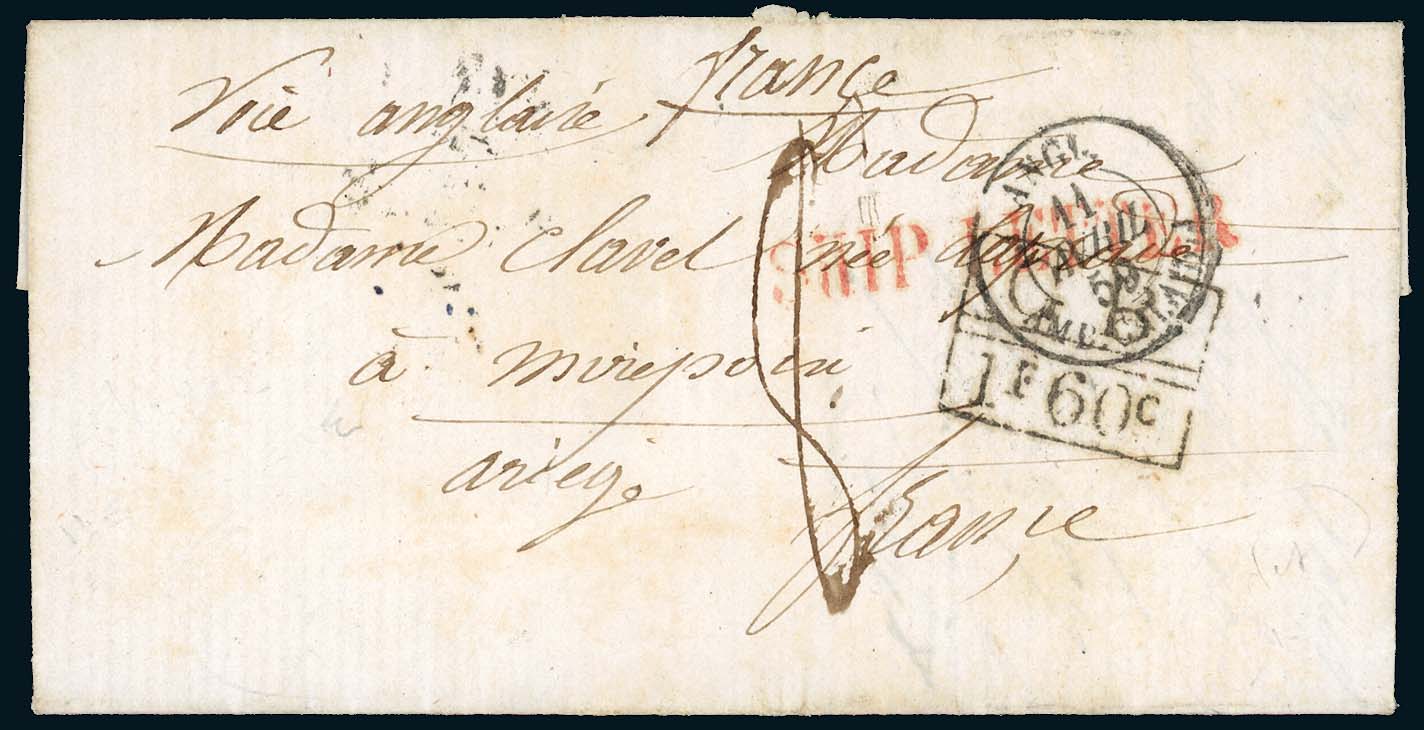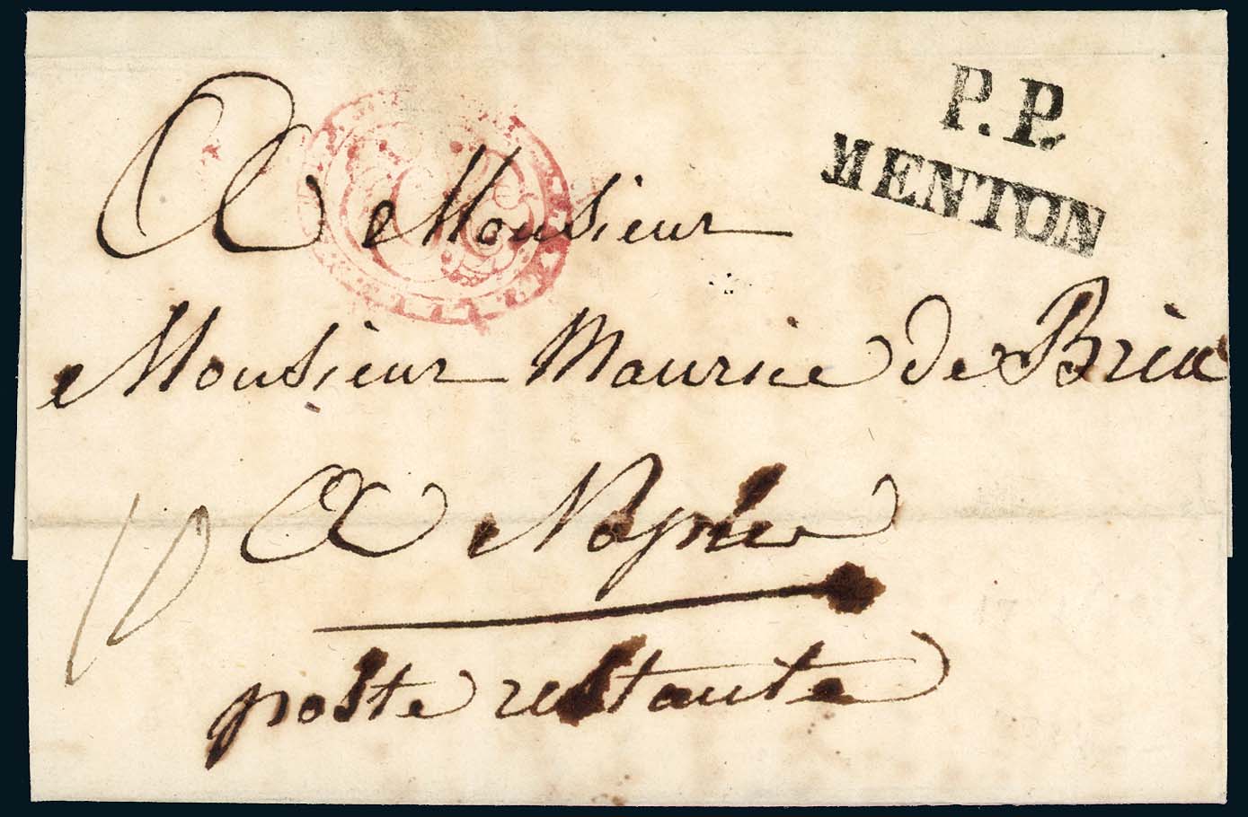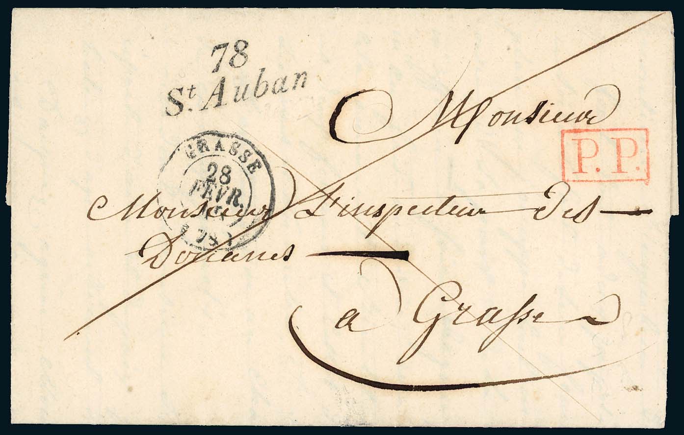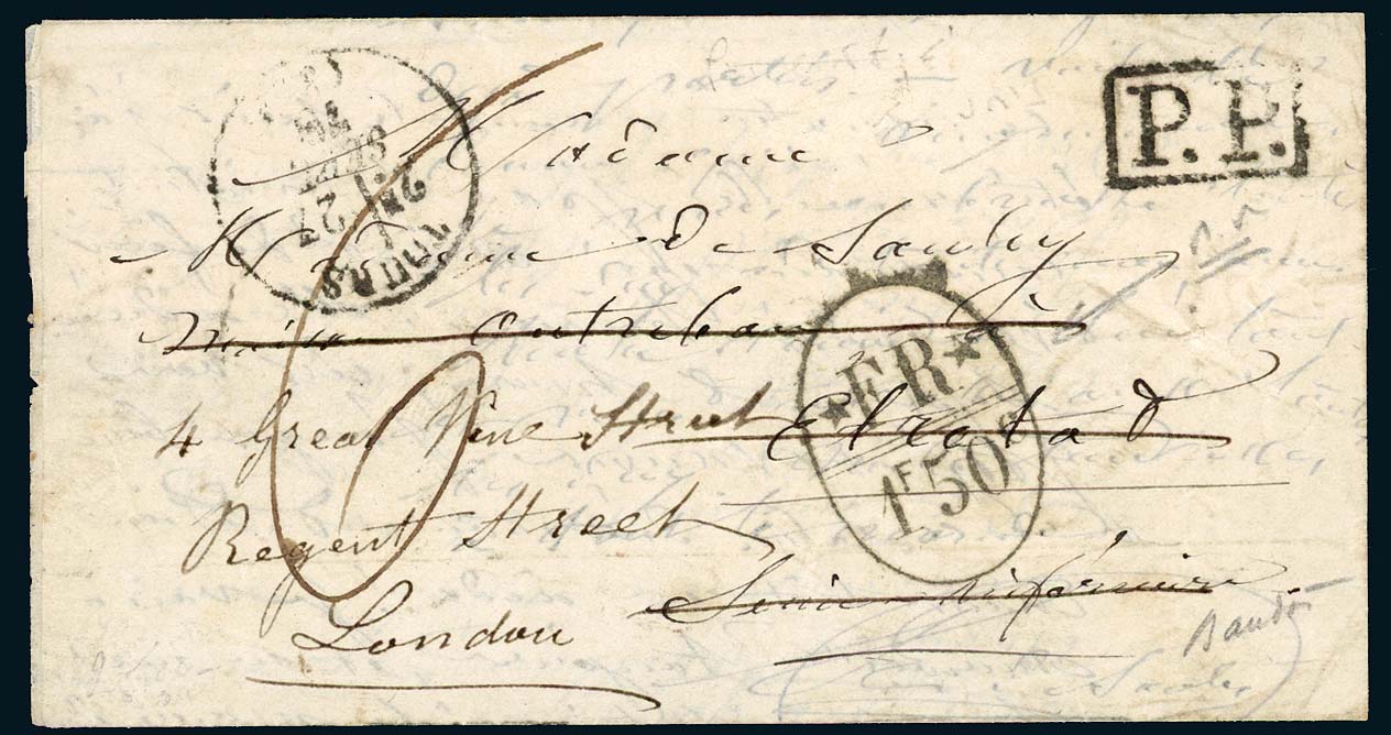 65 | N°3 OB grille, C. MACON et PP en rouge sur faire-part de mariage, tarif au double port des imprimés pour dimension supérieure à 11 dm2, signé Calves 1849 TB | 100 | 200 | 100 | enchérir | |