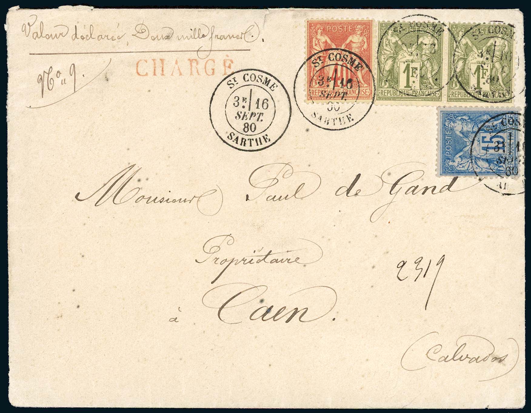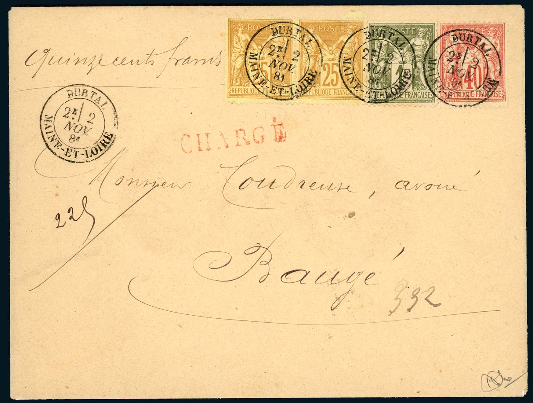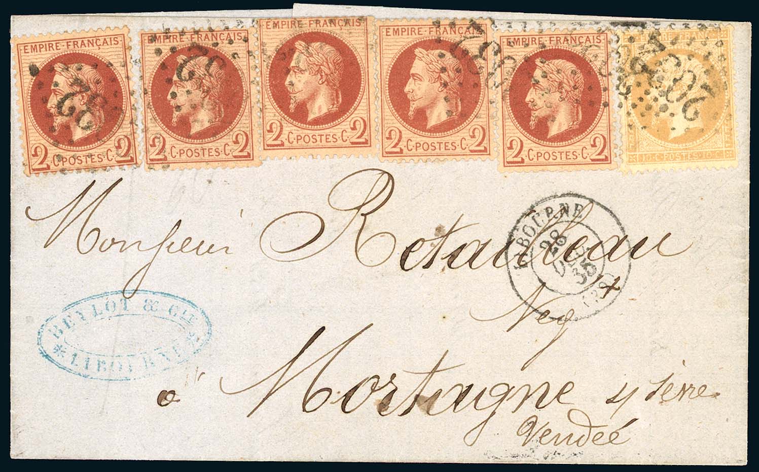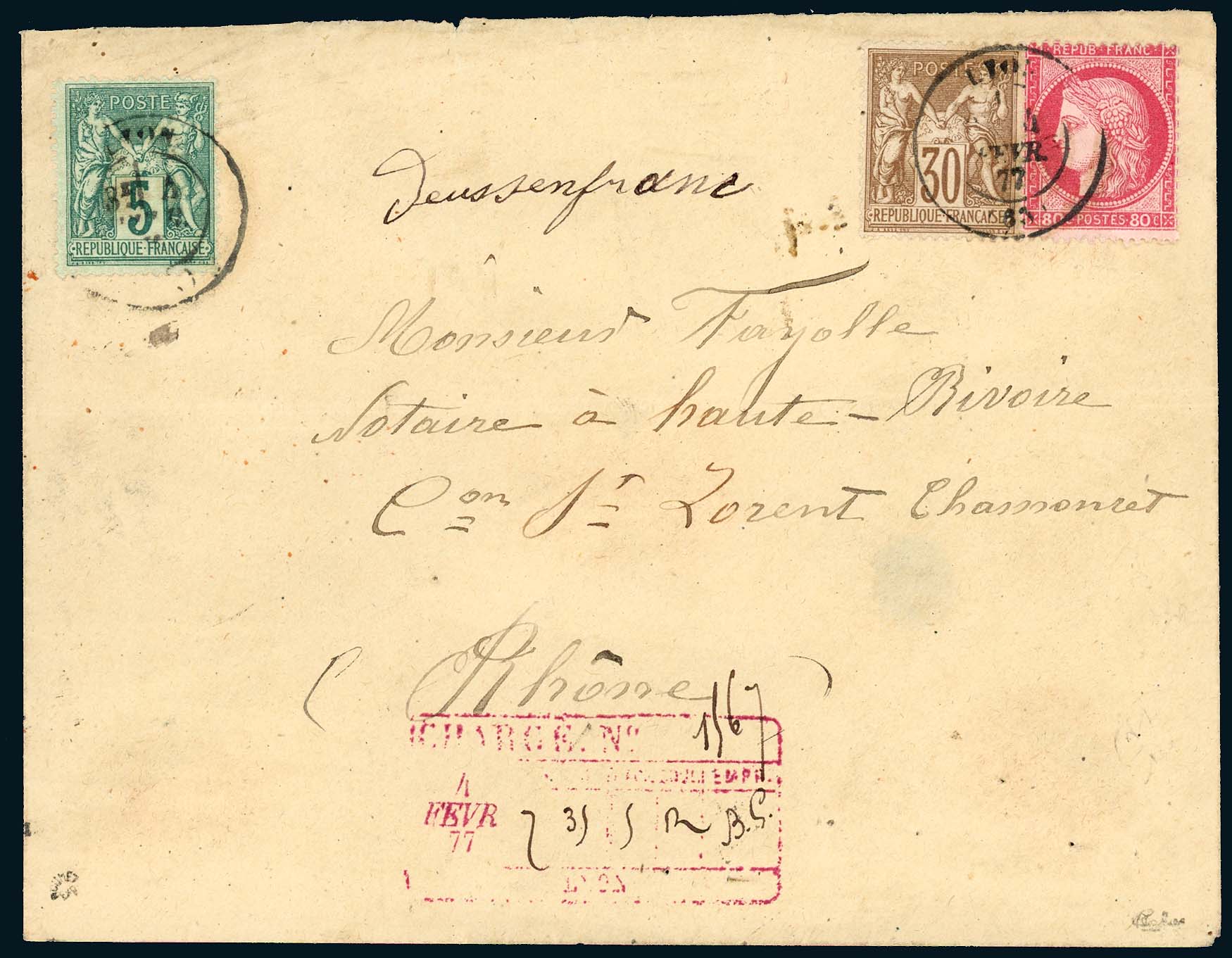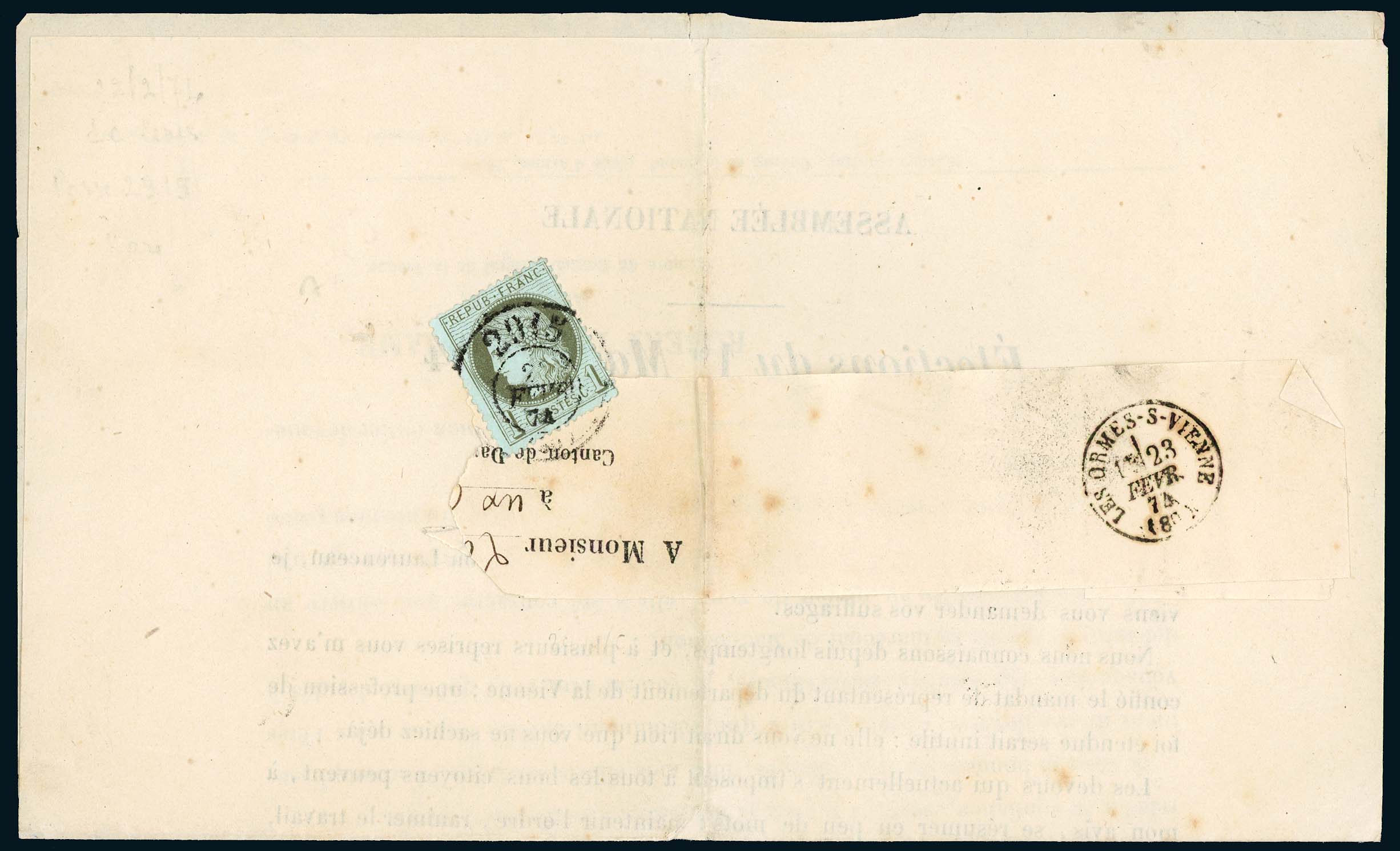 65 | N°3 OB grille, C. MACON et PP en rouge sur faire-part de mariage, tarif au double port des imprimés pour dimension supérieure à 11 dm2, signé Calves 1849 TB | 100 | 200 | 100 | enchérir | |