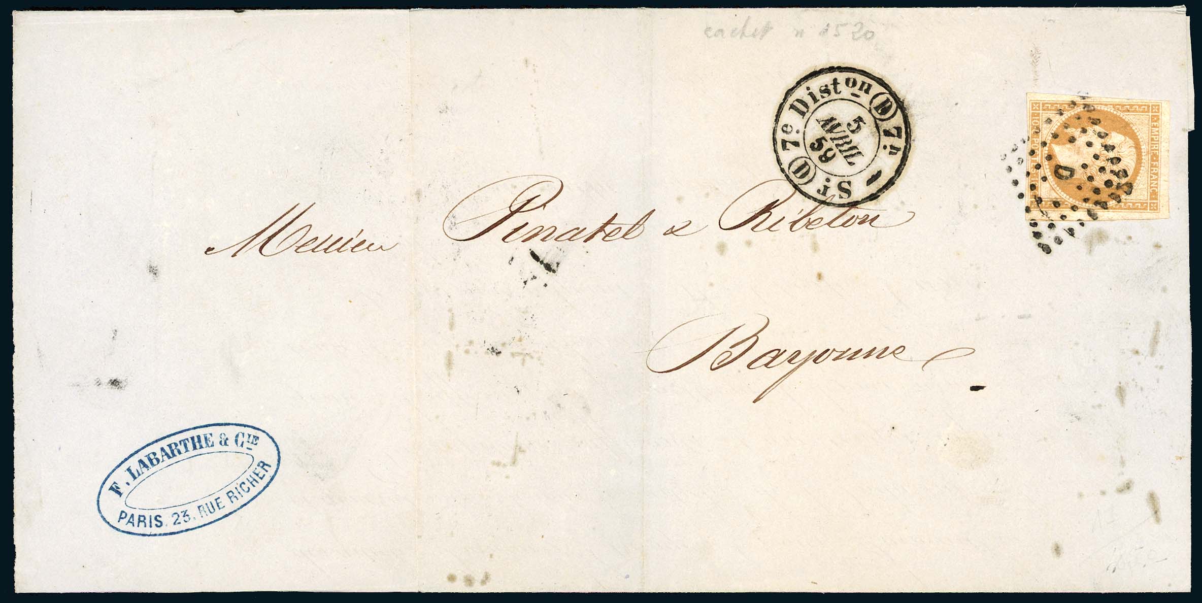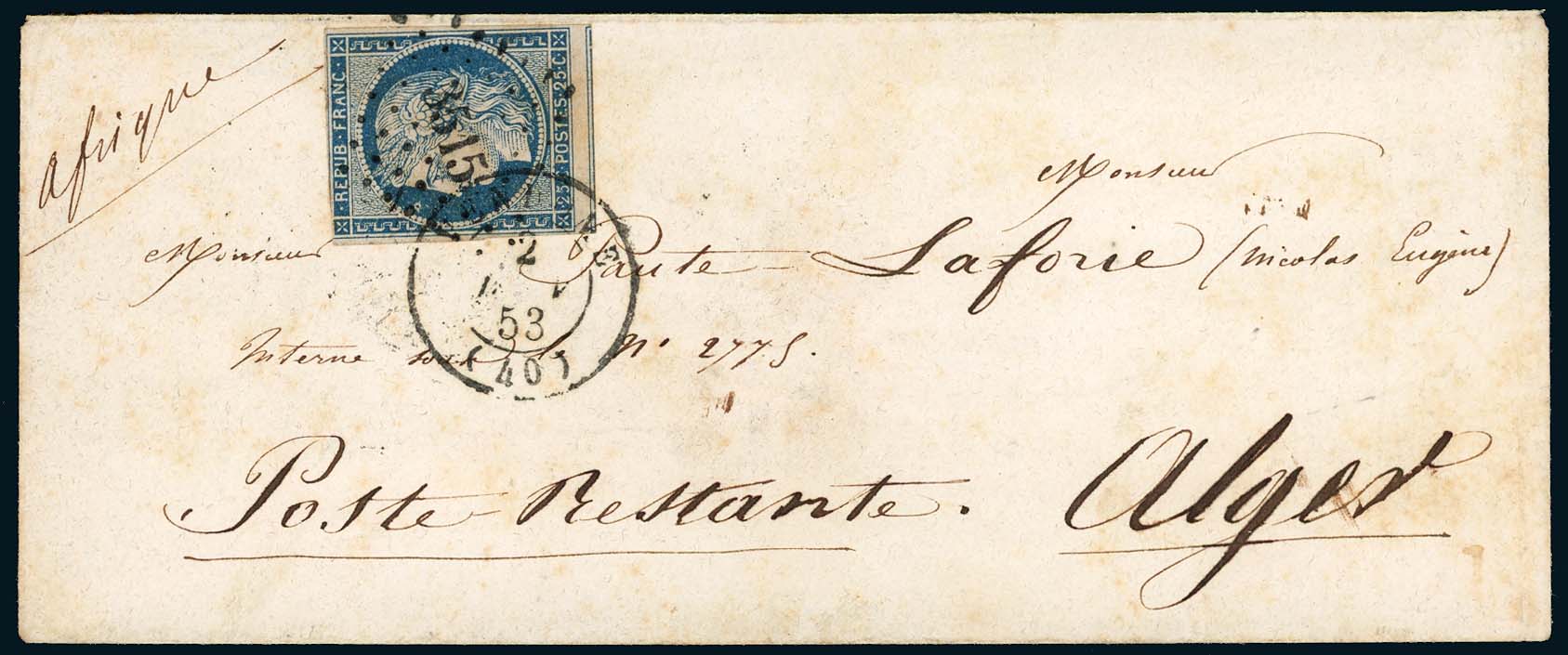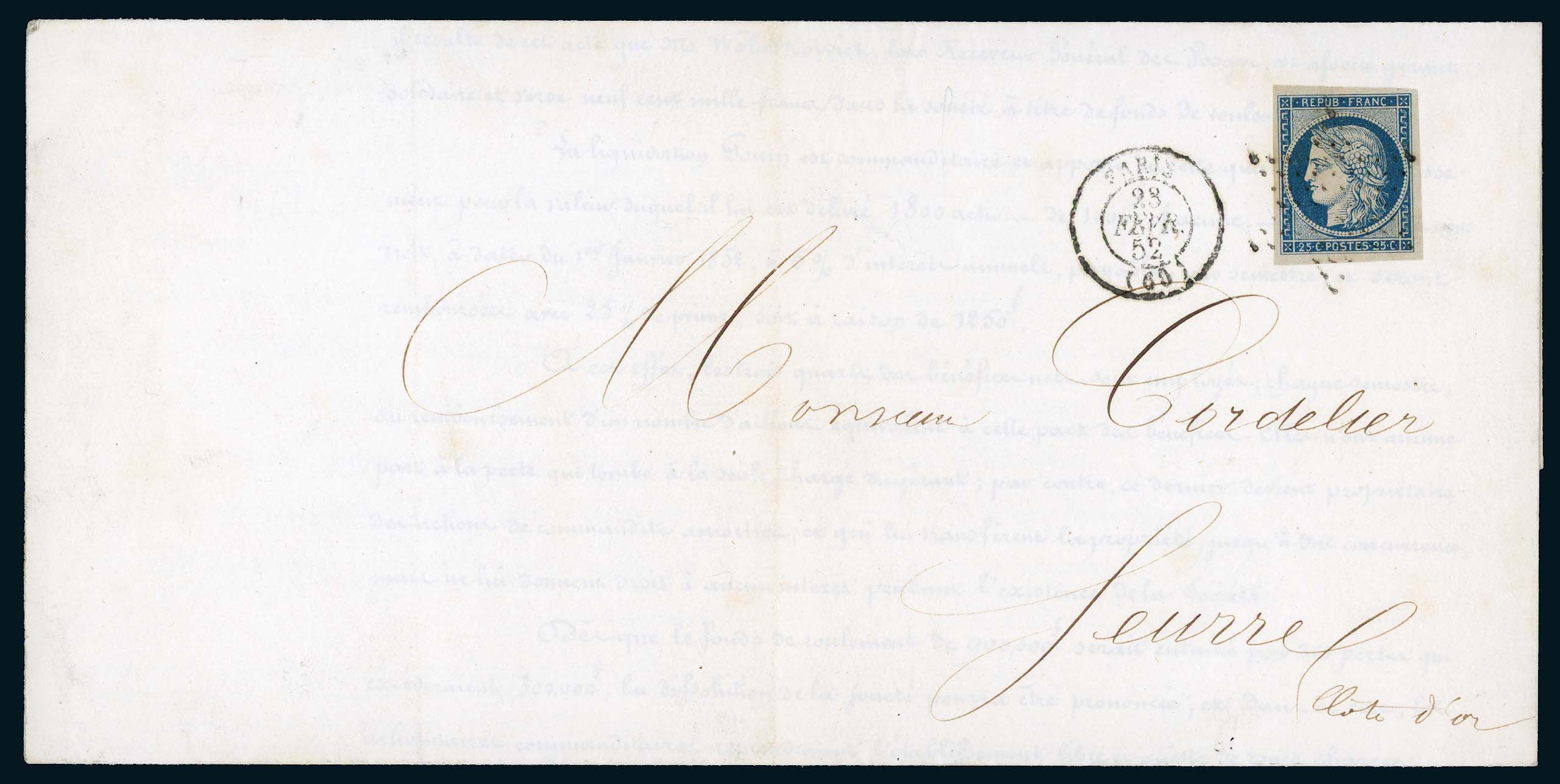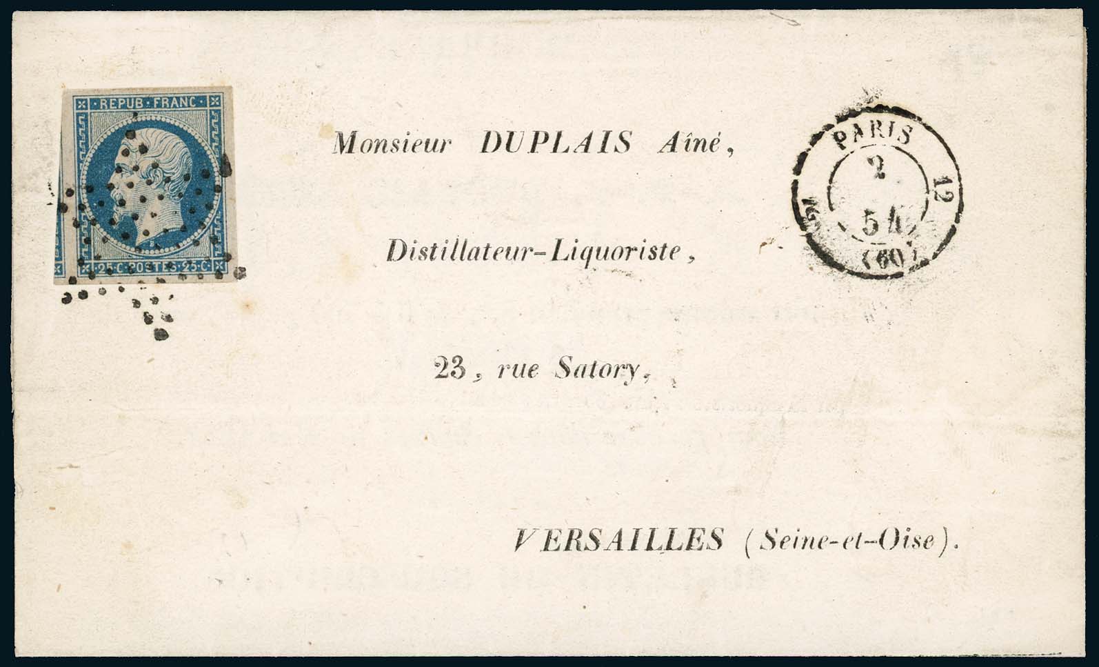 30 | N°2 OB étoile légère dégageant bien l'effigie sur lettre de Paris pour Paris, juin 1853 TB/Sup | 500 | 800 | 500 | enchérir | |