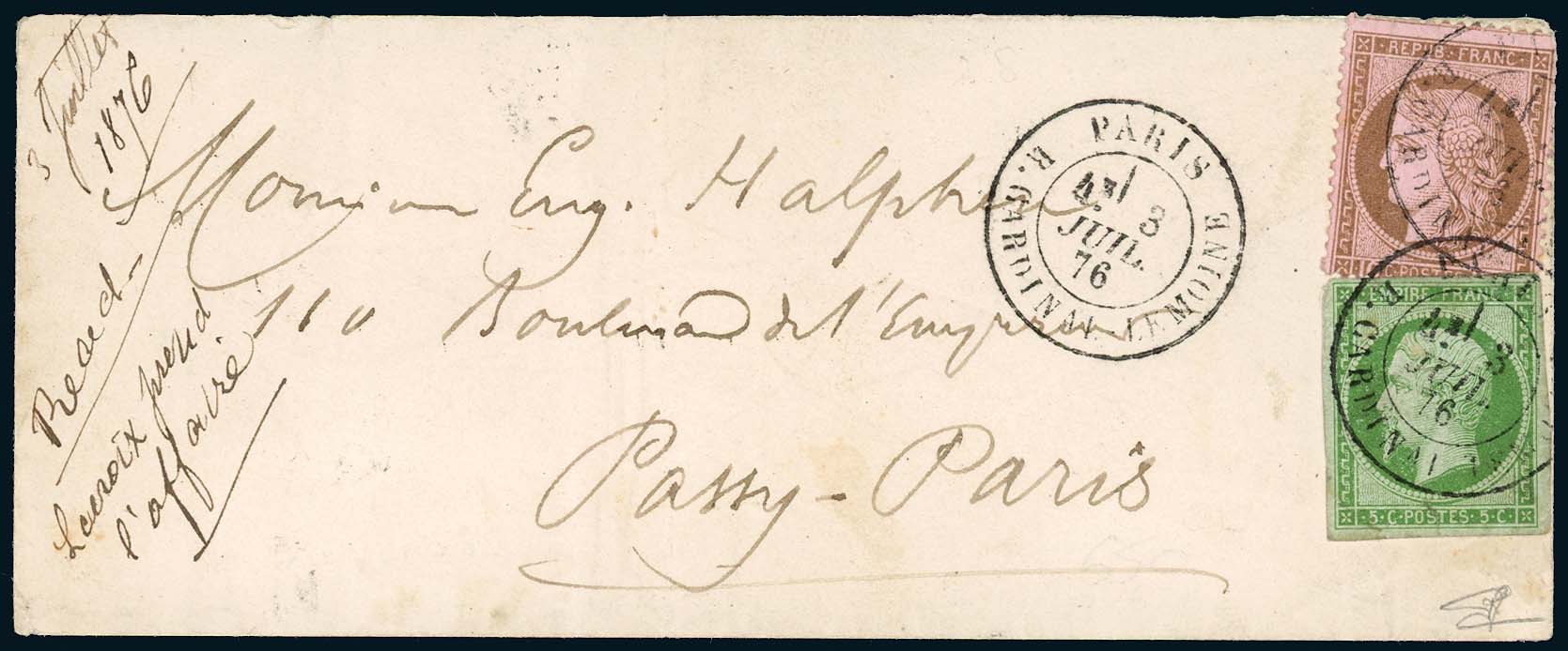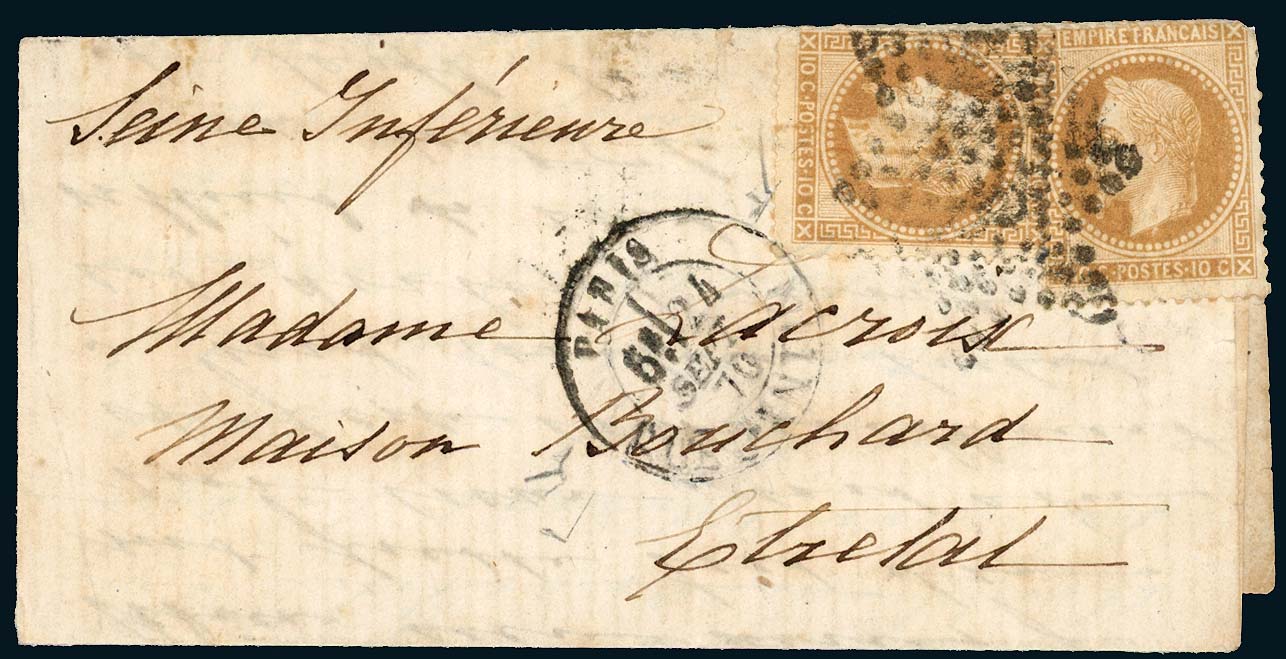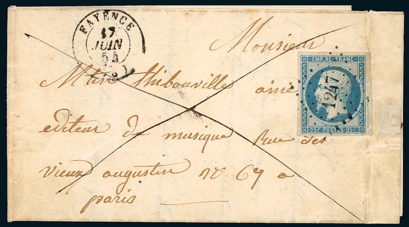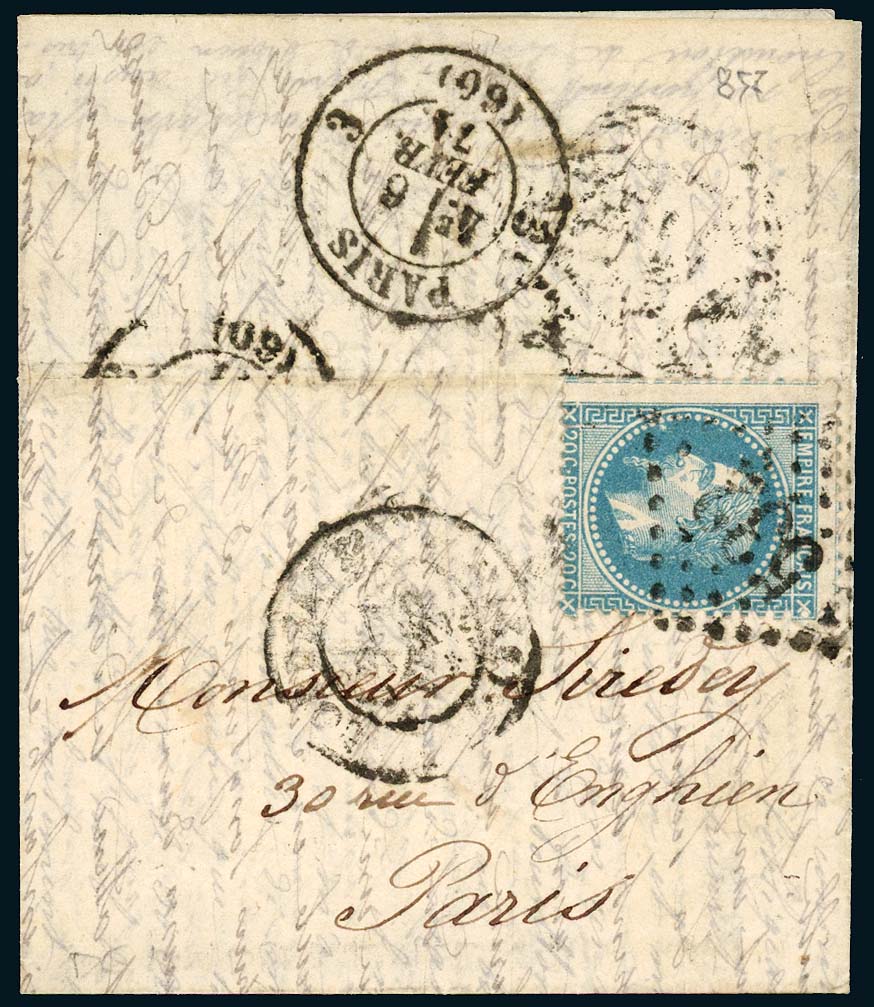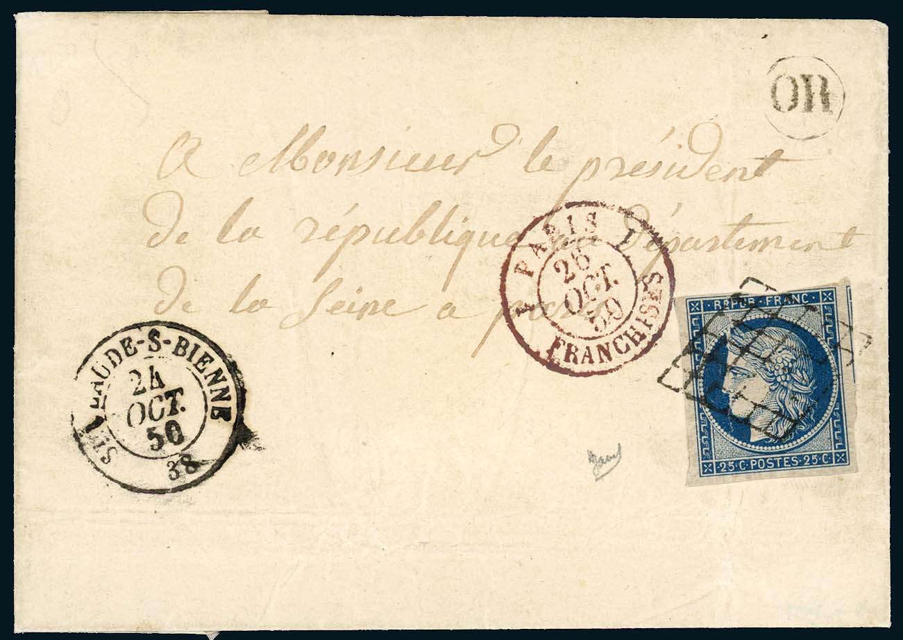 30 | N°2 OB étoile légère dégageant bien l'effigie sur lettre de Paris pour Paris, juin 1853 TB/Sup | 500 | 800 | 500 | enchérir | |