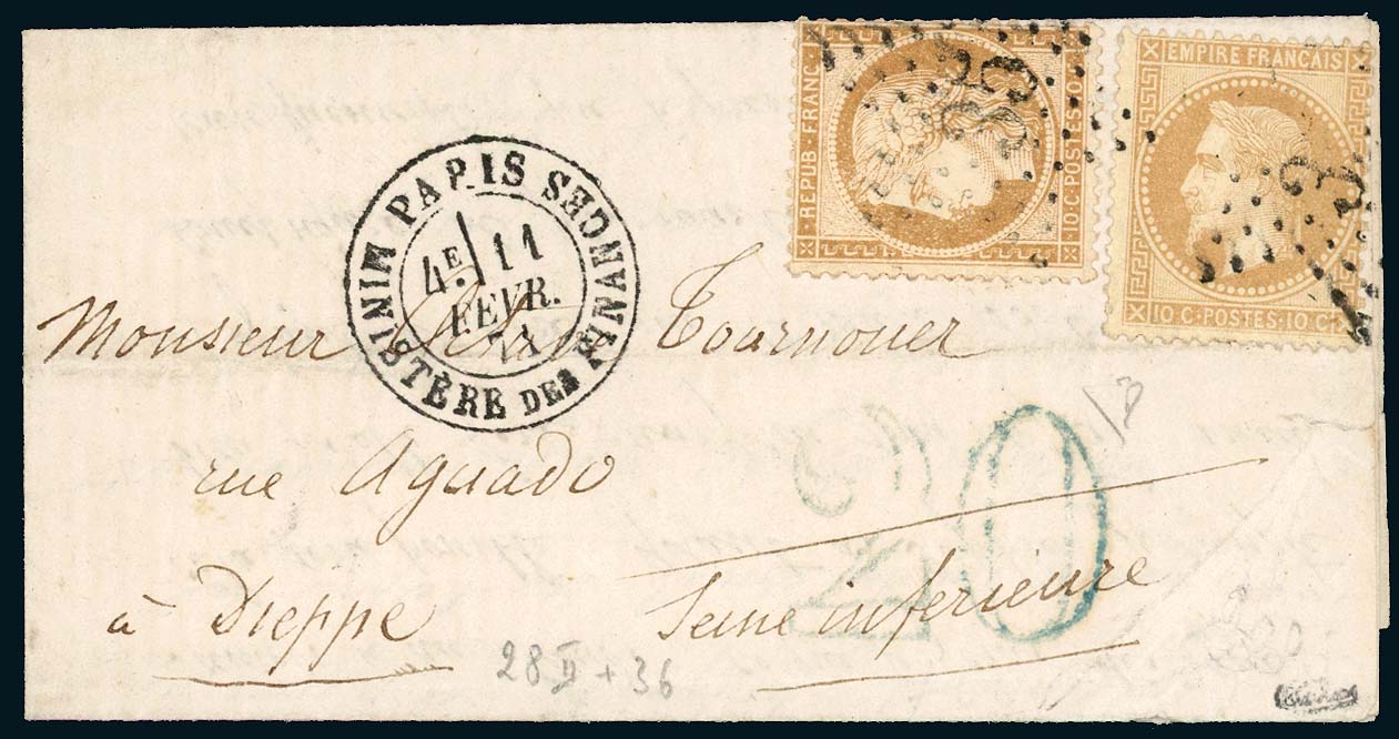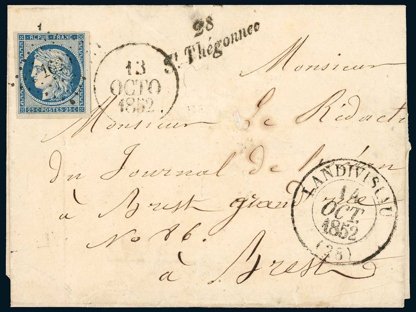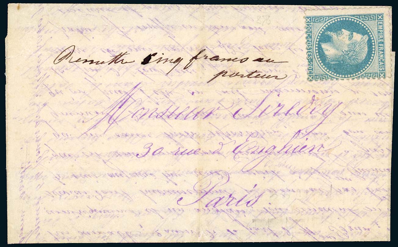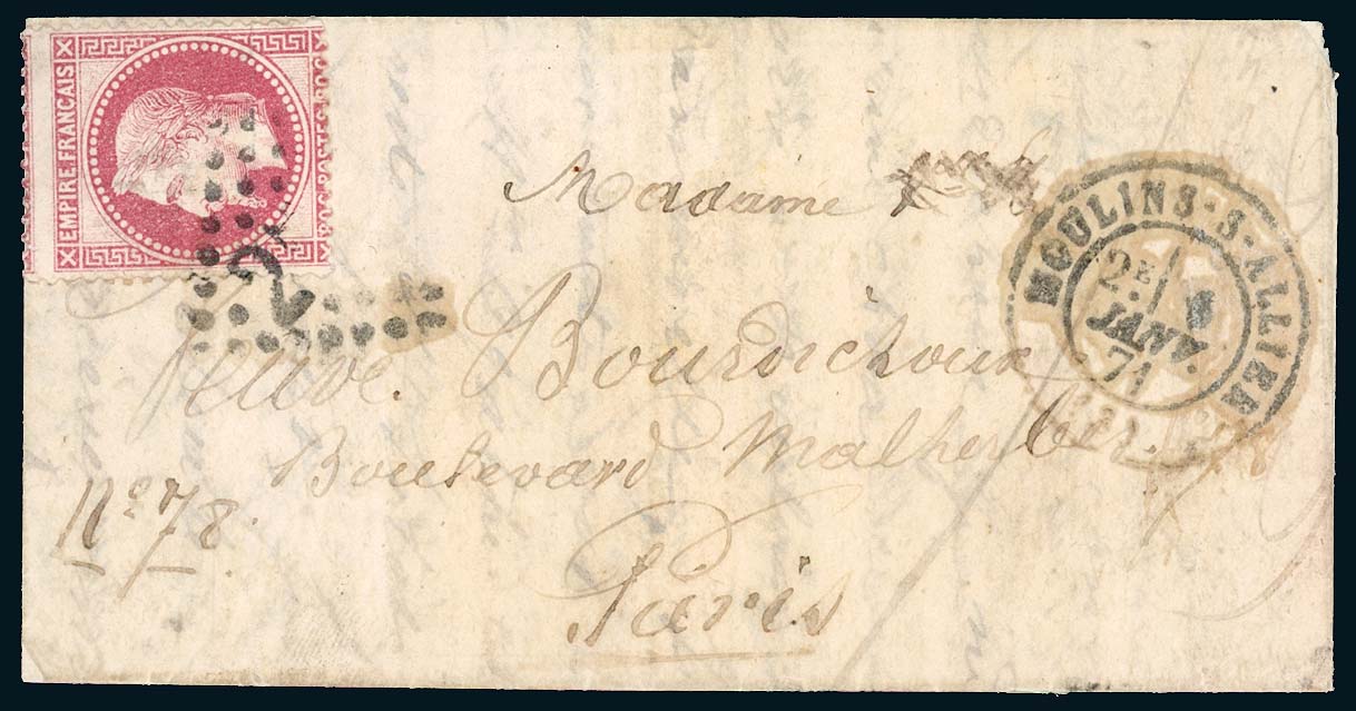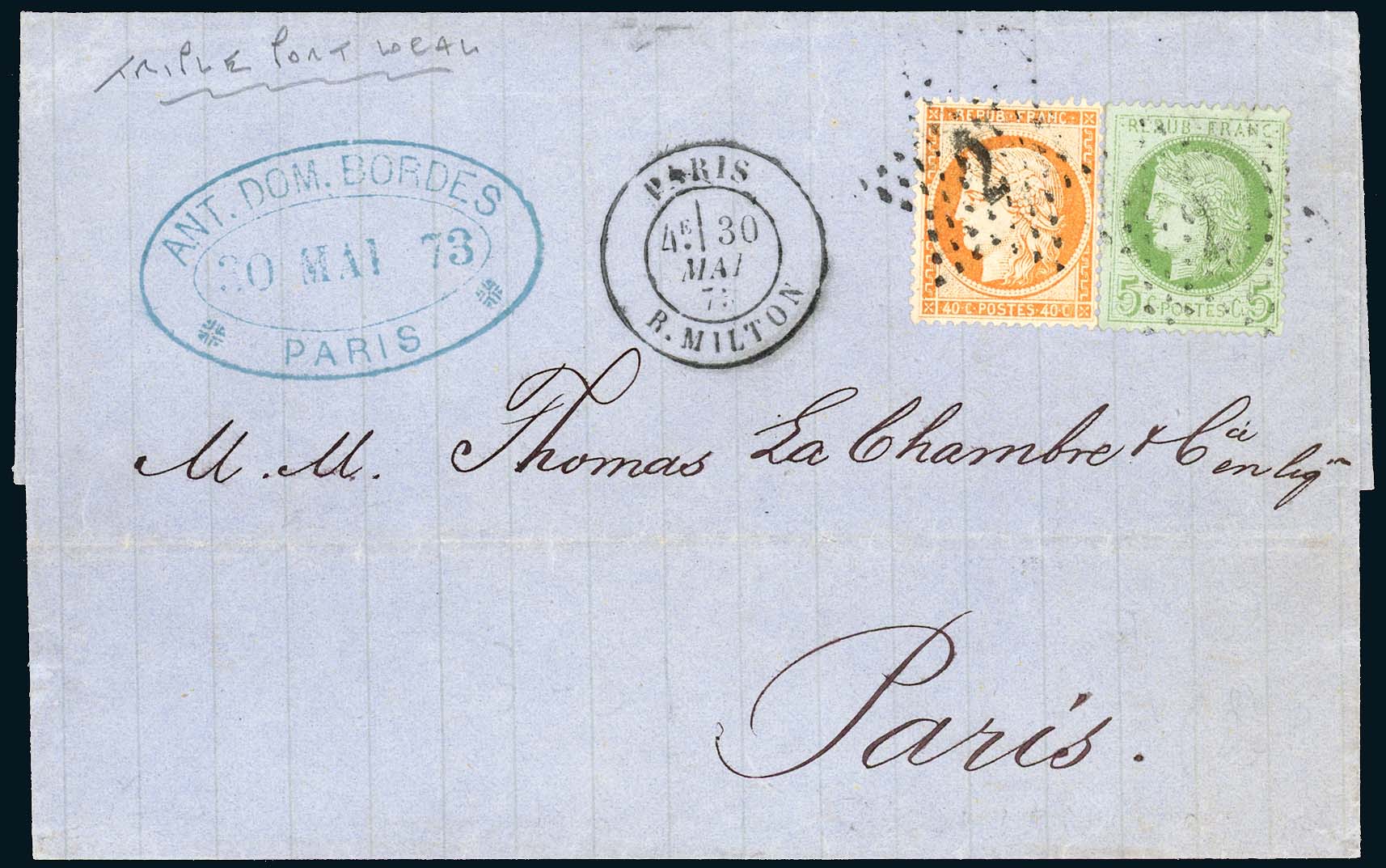 30 | N°2 OB étoile légère dégageant bien l'effigie sur lettre de Paris pour Paris, juin 1853 TB/Sup | 500 | 800 | 500 | enchérir | |